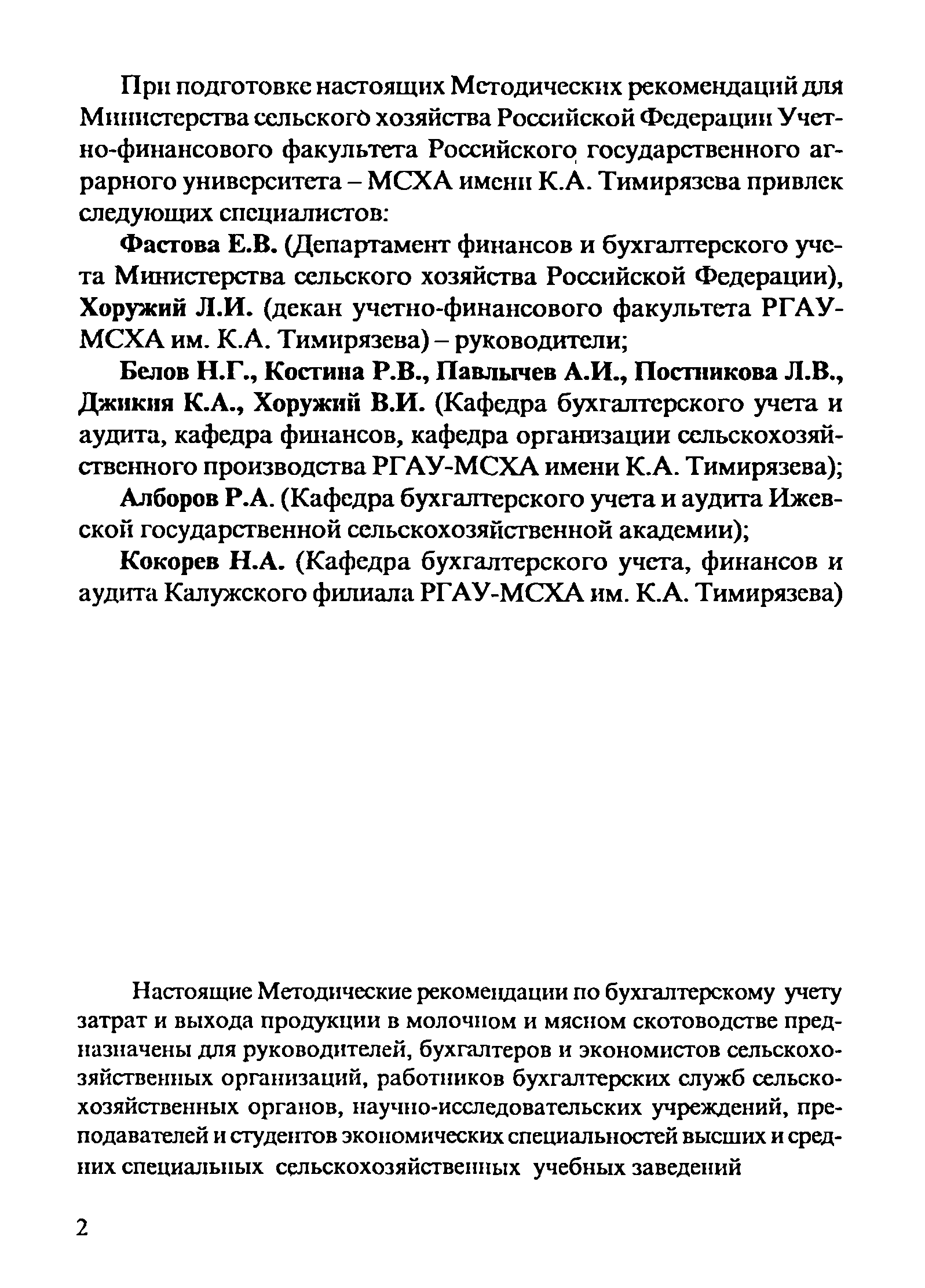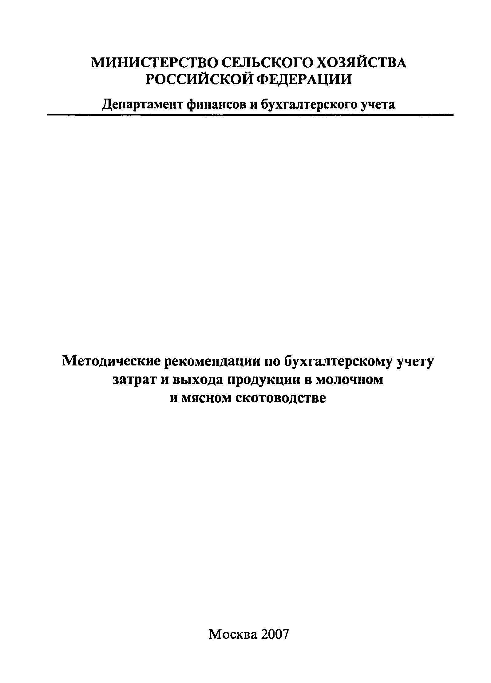 | Название рус.: | Методические рекомендации по бухгалтерскому учету затрат и выхода продукции в молочном и мясном скотоводстве |