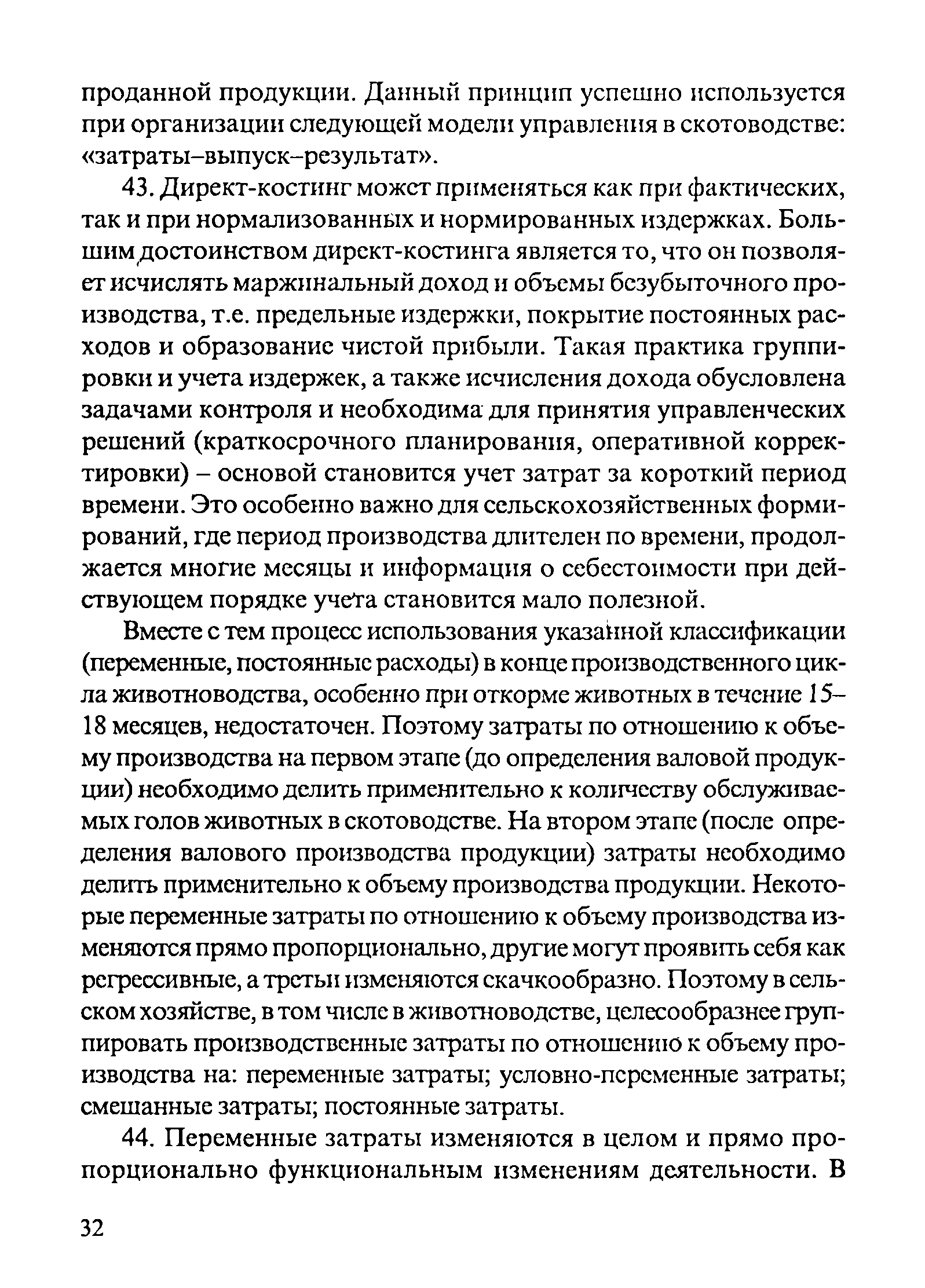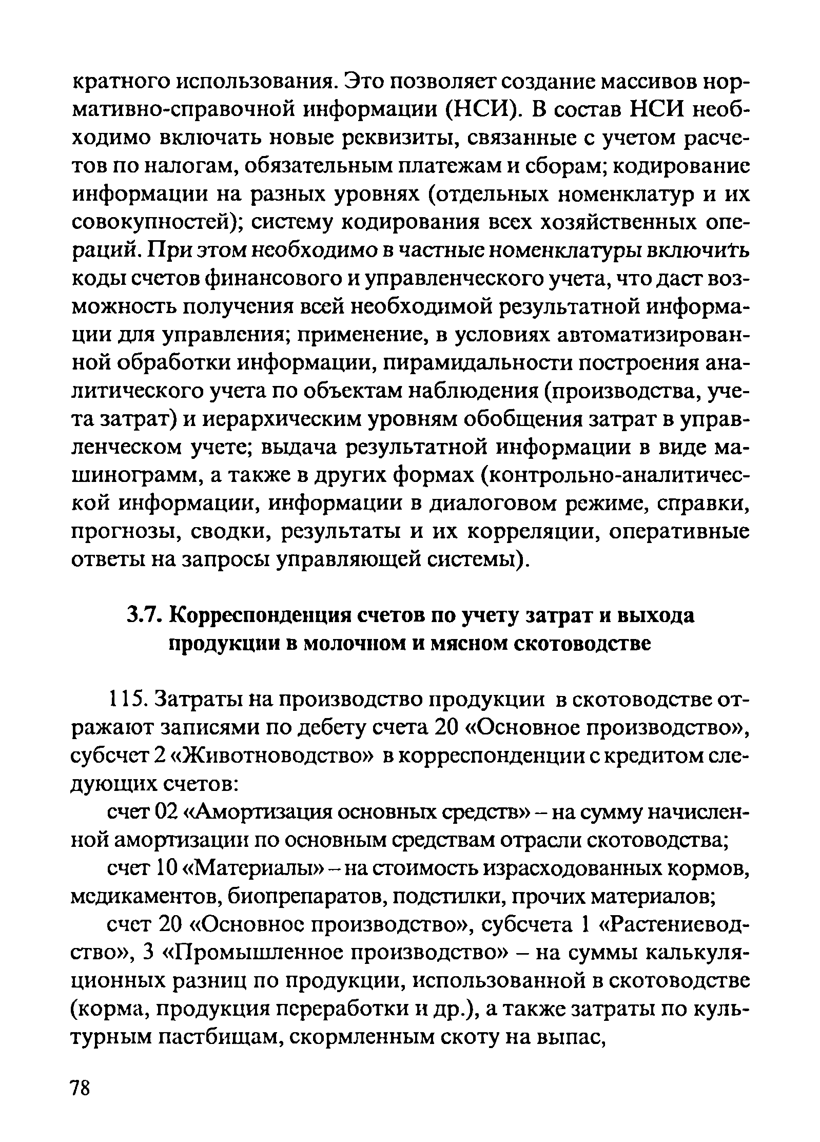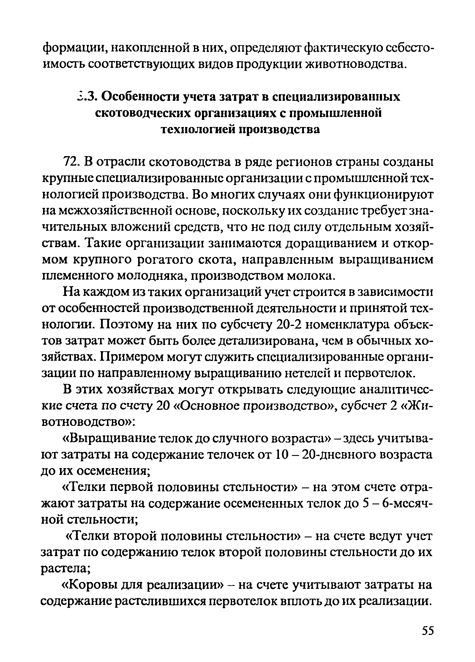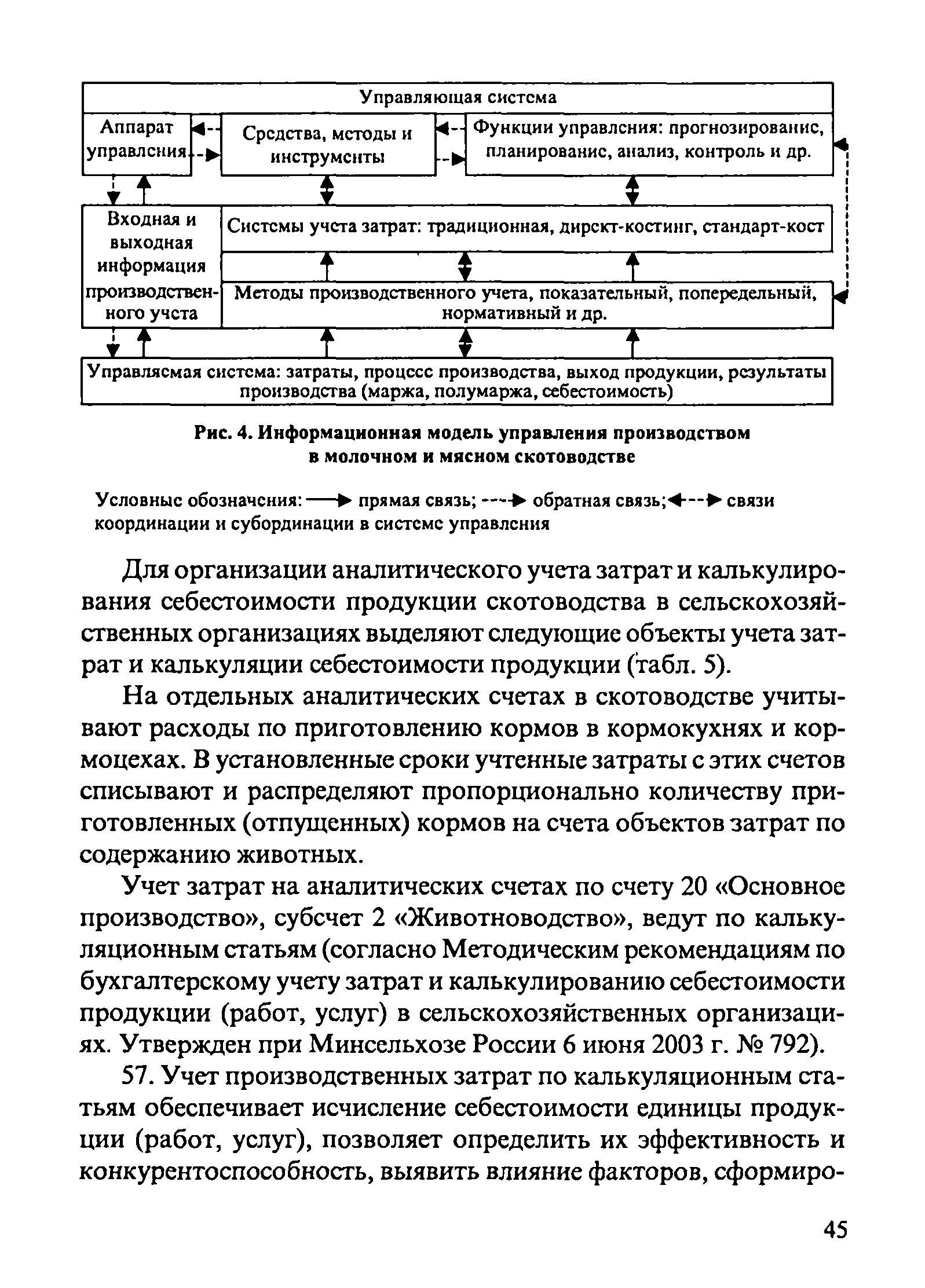 | Оглавление: | 1. Общие положения 2. Организация первичного учёта в молочном и мясном скотоводстве 2.1 Общий порядок ведения первичного учета в молочном и мясном скотоводстве 2.2 Первичная документация по учёту затрат в молочном и мясном скотоводстве 2.3 Первичная документация по учёту продукции молочного и мясного скотоводства 2.4 Первичная документация по учёту продукции переработки молока 2.3 Первичная учётная документация по учёту продукции переработки мясного скота 3. Организация аналитического и синтетического учёта затрат и выхода продукции в молочном и мясном скотоводстве 3.1 Общий порядок ведения производственного учёта в скотоводстве 3.2 Синтетический м аналитический учёт затрат и выхода продукции в молочном и мясном скотоводстве 3.3 Особенности учёта затрат в специализированных скотоводческих организациях с промышленной технологией производства 3.4 Учёт затрат и выхода продукции переработки молока и забоя мясного скота в цехах промышленного производства 3.5 Организация аналитического и синтетического учёта затрат и выхода продукции в молочном и мясном скотоводстве при журнально-ордерной форме 3.6 Организация аналитического и синтетического учёта затрат и выхода продукции в молочном и мясном скотоводстве при автоматизированной форме 3.7 Корреспонденция счетов по учёту затрат и выхода продукции в молочном и мясном скотоводстве 3.8 Корреспонденция счетов по учёту затрат и выхода продукции переработки молока и забоя мясного скота в цехах промышленного производства 4. Калькуляция себестоимости продукции молочного и мясного скотоводства 4.1 Калькуляция себестоимости продукции молочного скотоводства 4.2 Калькуляция себестоимости продукции мясного скотоводства 4.3 Калькуляция себестоимости продукции переработки молока и забоя скота в цехах промышленного производства 5. Управленческие аспекты учёта затрат и продукции в молочном и мясном скотоводстве |