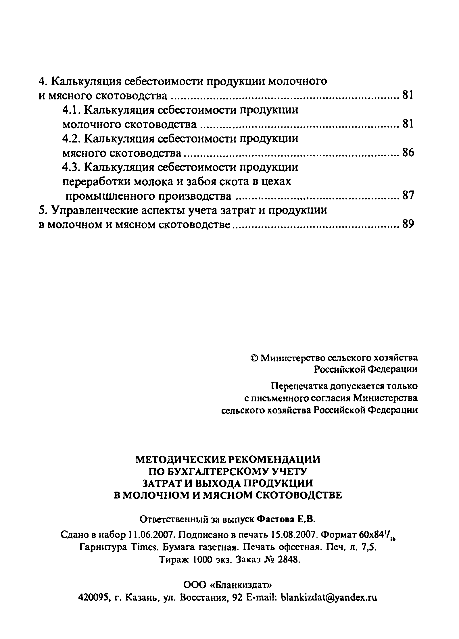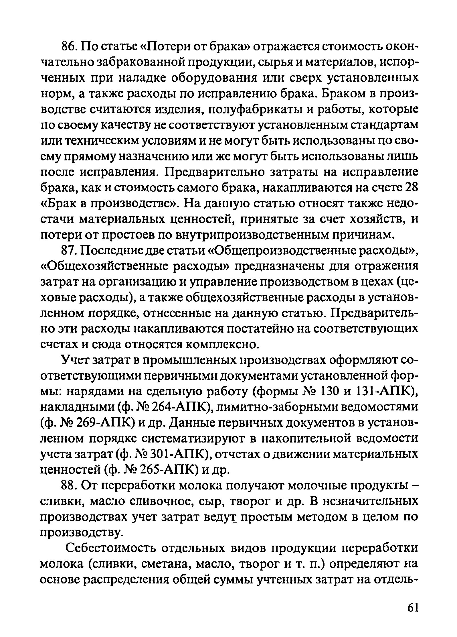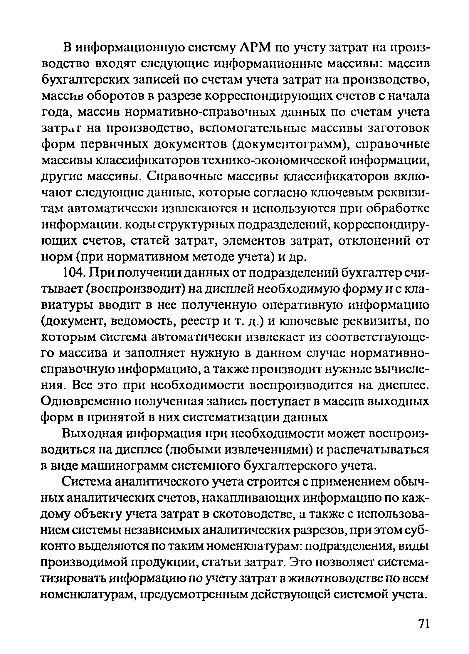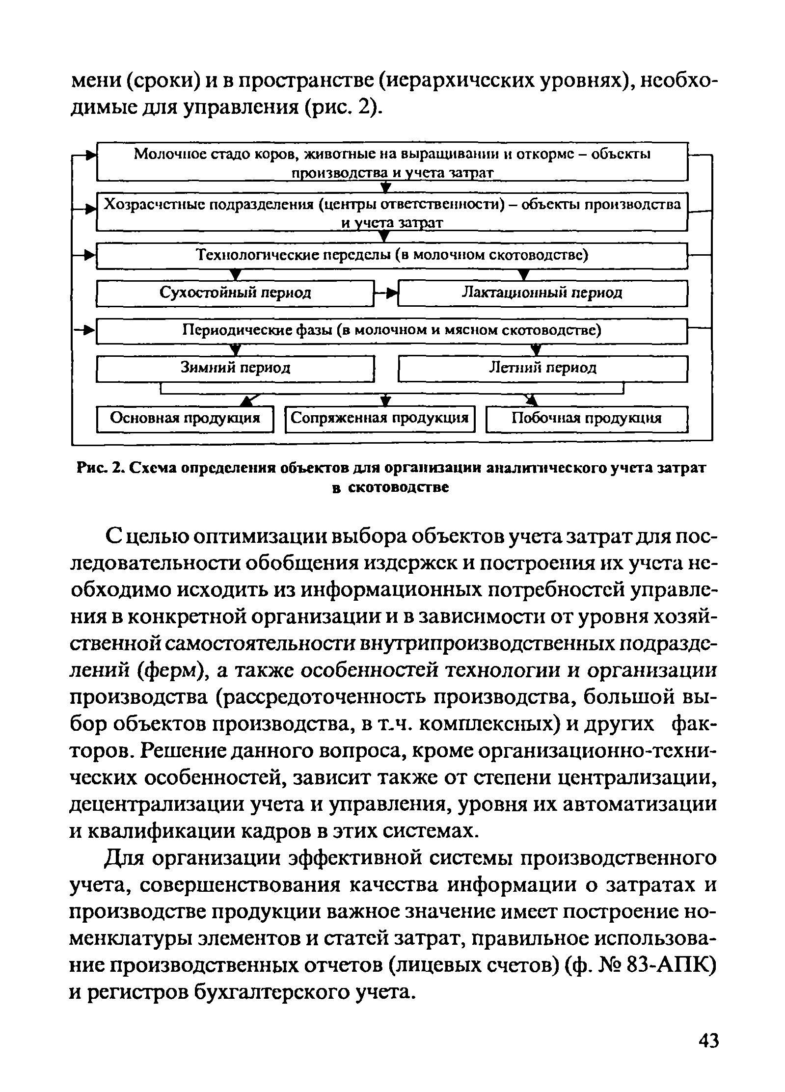 | Оглавление: | 1. Общие положения 2. Организация первичного учёта в молочном и мясном скотоводстве 2.1 Общий порядок ведения первичного учета в молочном и мясном скотоводстве 2.2 Первичная документация по учёту затрат в молочном и мясном скотоводстве 2.3 Первичная документация по учёту продукции молочного и мясного скотоводства 2.4 Первичная документация по учёту продукции переработки молока 2.3 Первичная учётная документация по учёту продукции переработки мясного скота 3. Организация аналитического и синтетического учёта затрат и выхода продукции в молочном и мясном скотоводстве 3.1 Общий порядок ведения производственного учёта в скотоводстве 3.2 Синтетический м аналитический учёт затрат и выхода продукции в молочном и мясном скотоводстве 3.3 Особенности учёта затрат в специализированных скотоводческих организациях с промышленной технологией производства 3.4 Учёт затрат и выхода продукции переработки молока и забоя мясного скота в цехах промышленного производства 3.5 Организация аналитического и синтетического учёта затрат и выхода продукции в молочном и мясном скотоводстве при журнально-ордерной форме 3.6 Организация аналитического и синтетического учёта затрат и выхода продукции в молочном и мясном скотоводстве при автоматизированной форме 3.7 Корреспонденция счетов по учёту затрат и выхода продукции в молочном и мясном скотоводстве 3.8 Корреспонденция счетов по учёту затрат и выхода продукции переработки молока и забоя мясного скота в цехах промышленного производства 4. Калькуляция себестоимости продукции молочного и мясного скотоводства 4.1 Калькуляция себестоимости продукции молочного скотоводства 4.2 Калькуляция себестоимости продукции мясного скотоводства 4.3 Калькуляция себестоимости продукции переработки молока и забоя скота в цехах промышленного производства 5. Управленческие аспекты учёта затрат и продукции в молочном и мясном скотоводстве |