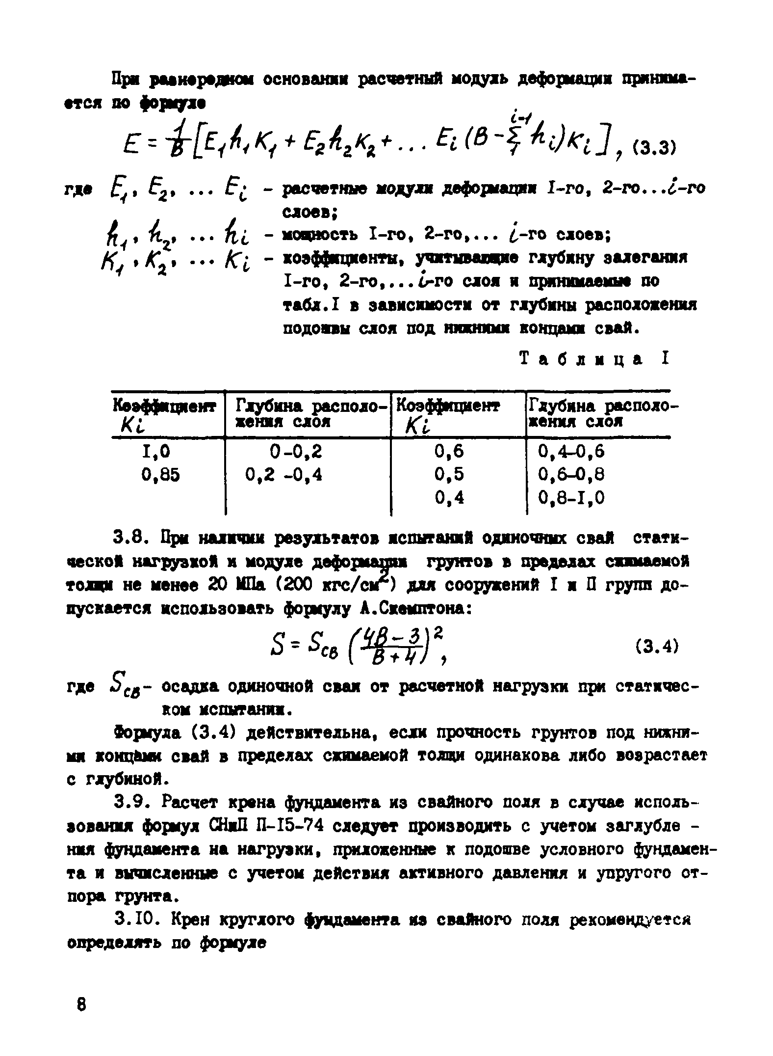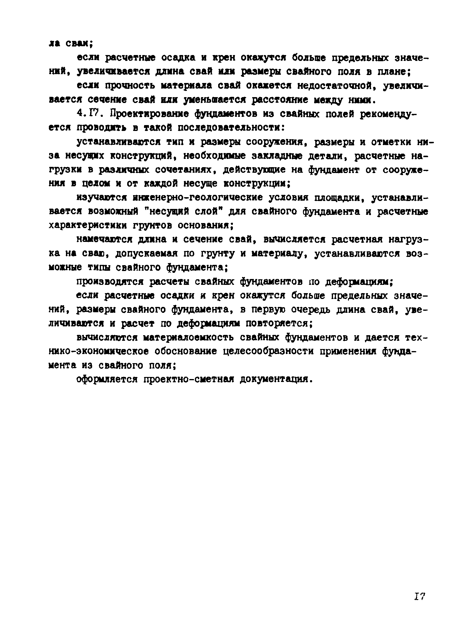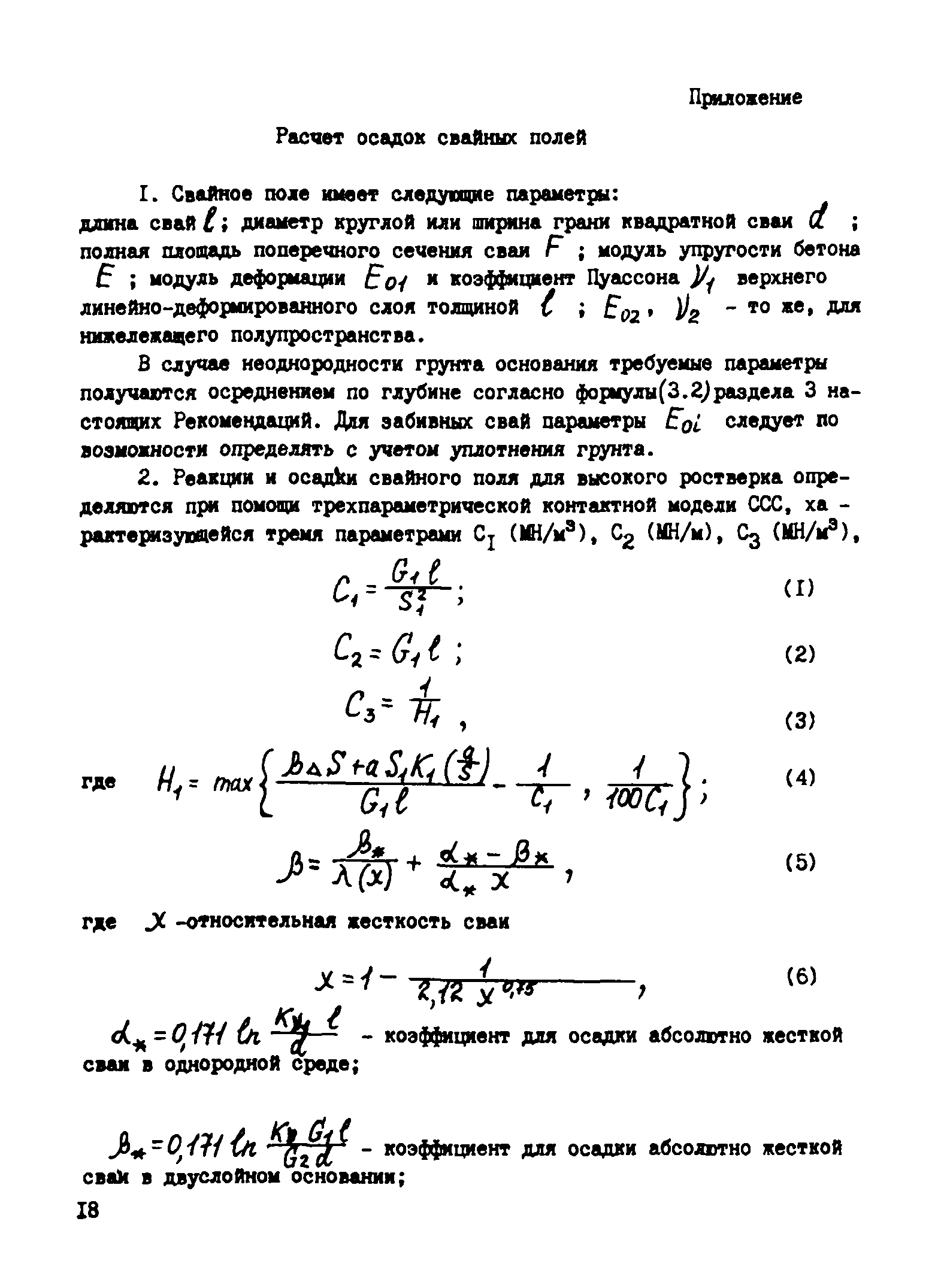 | Оглавление: | 1 Общие положения 2 Дополнительные требования к изысканиям 3 Особенности расчета фундаментов из свайных полей 4 Основные положения по проектированию фундаментов из свайных полей Приложение. Расчет осадок свайных полей Пример расчета |