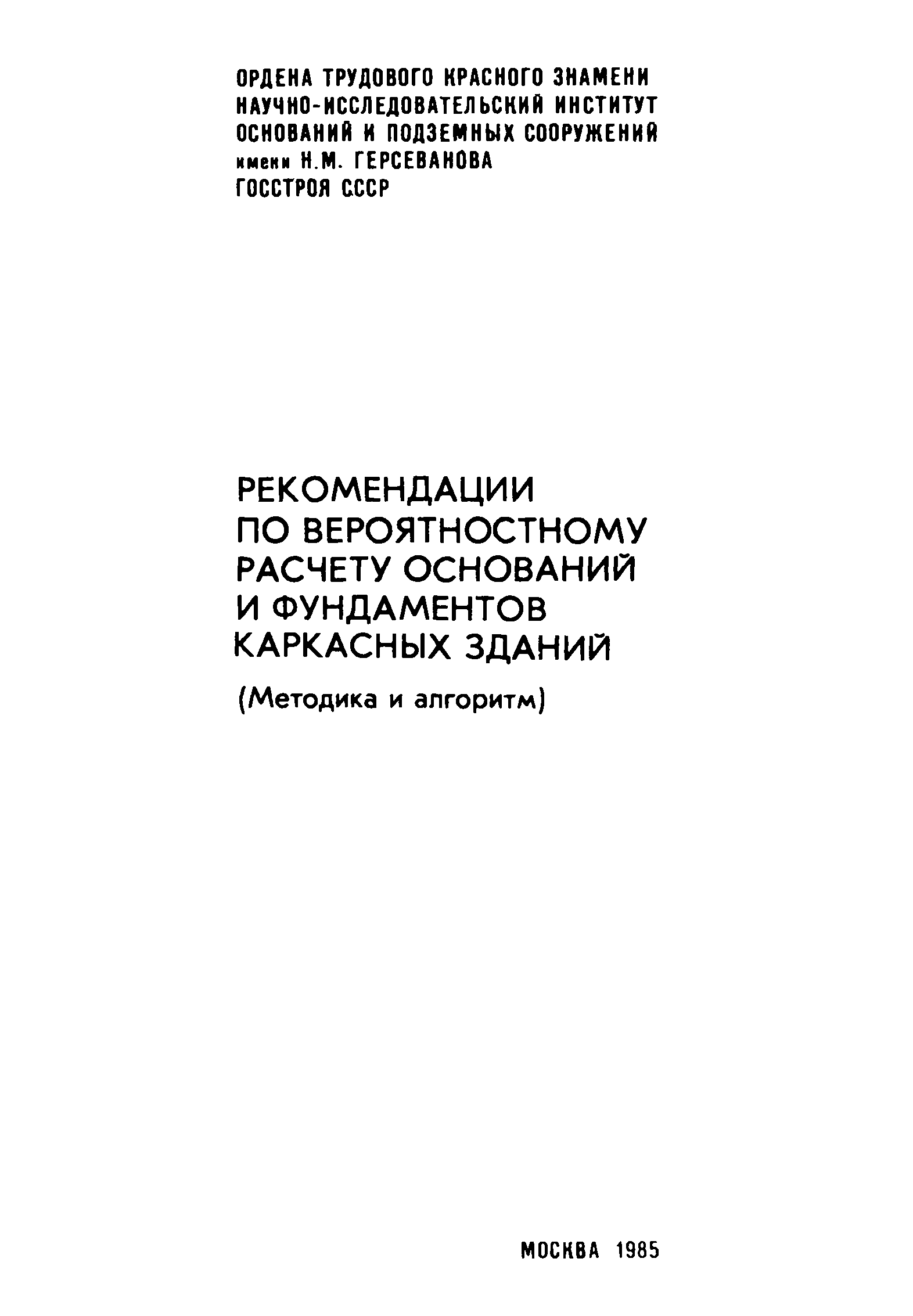 | Название рус.: | Рекомендации по вероятностному расчету оснований и фундаментов каркасных зданий. (Методика и алгоритм) |