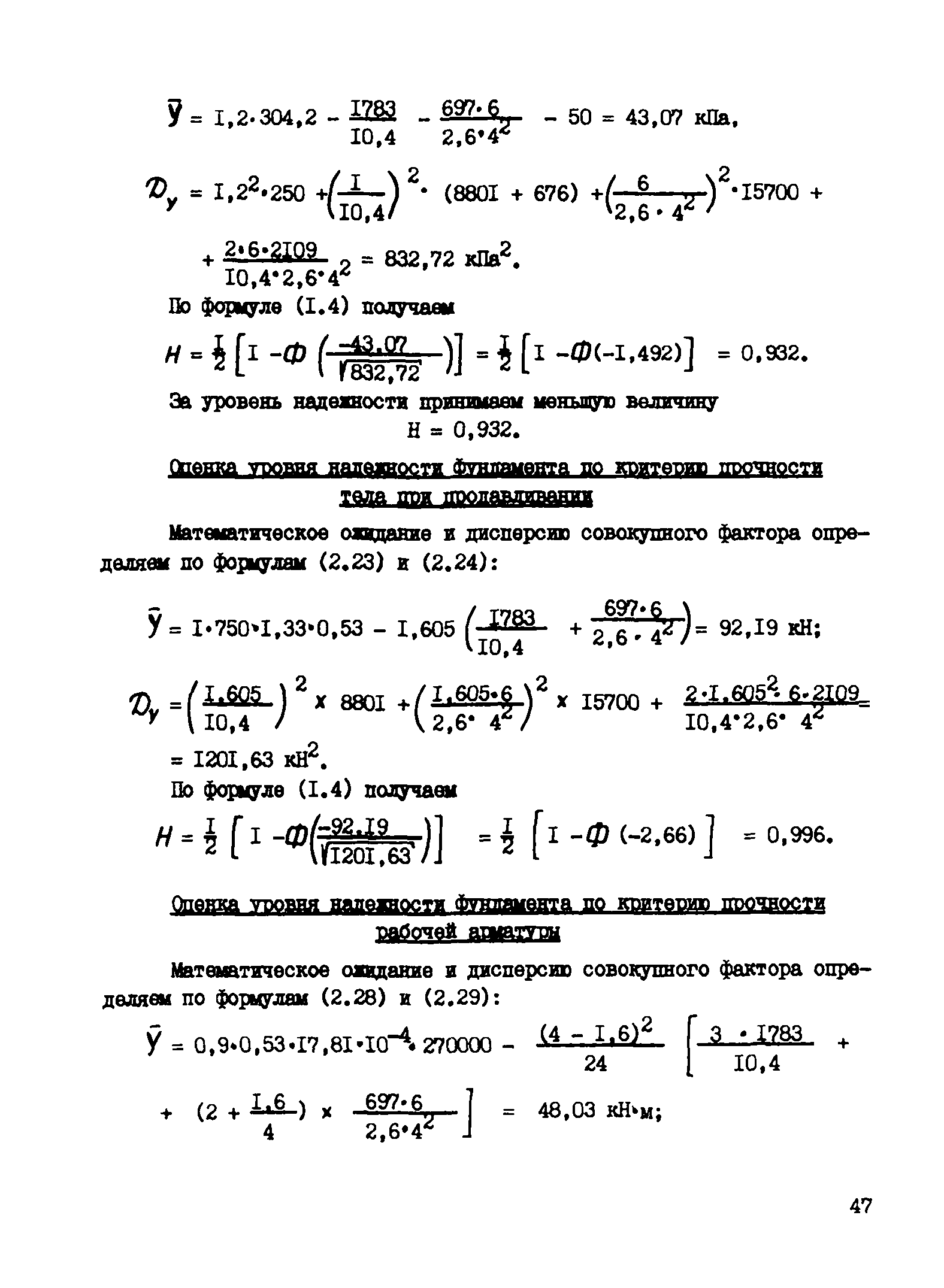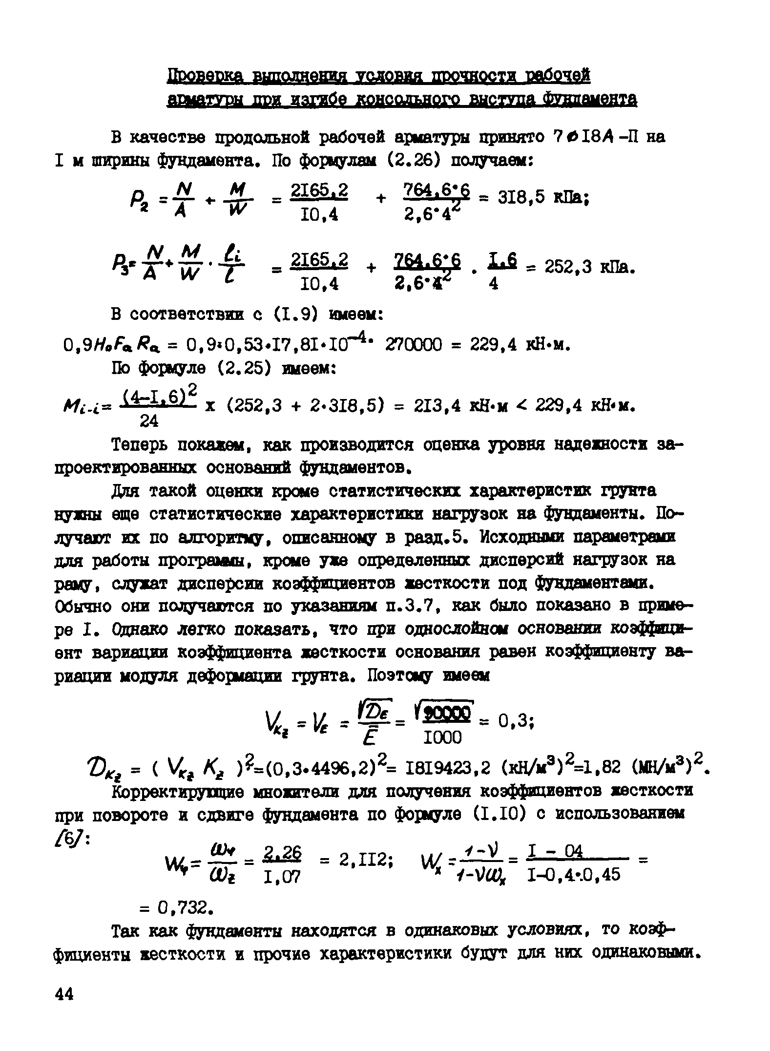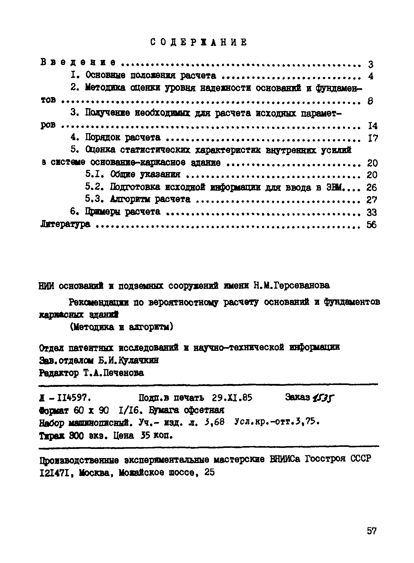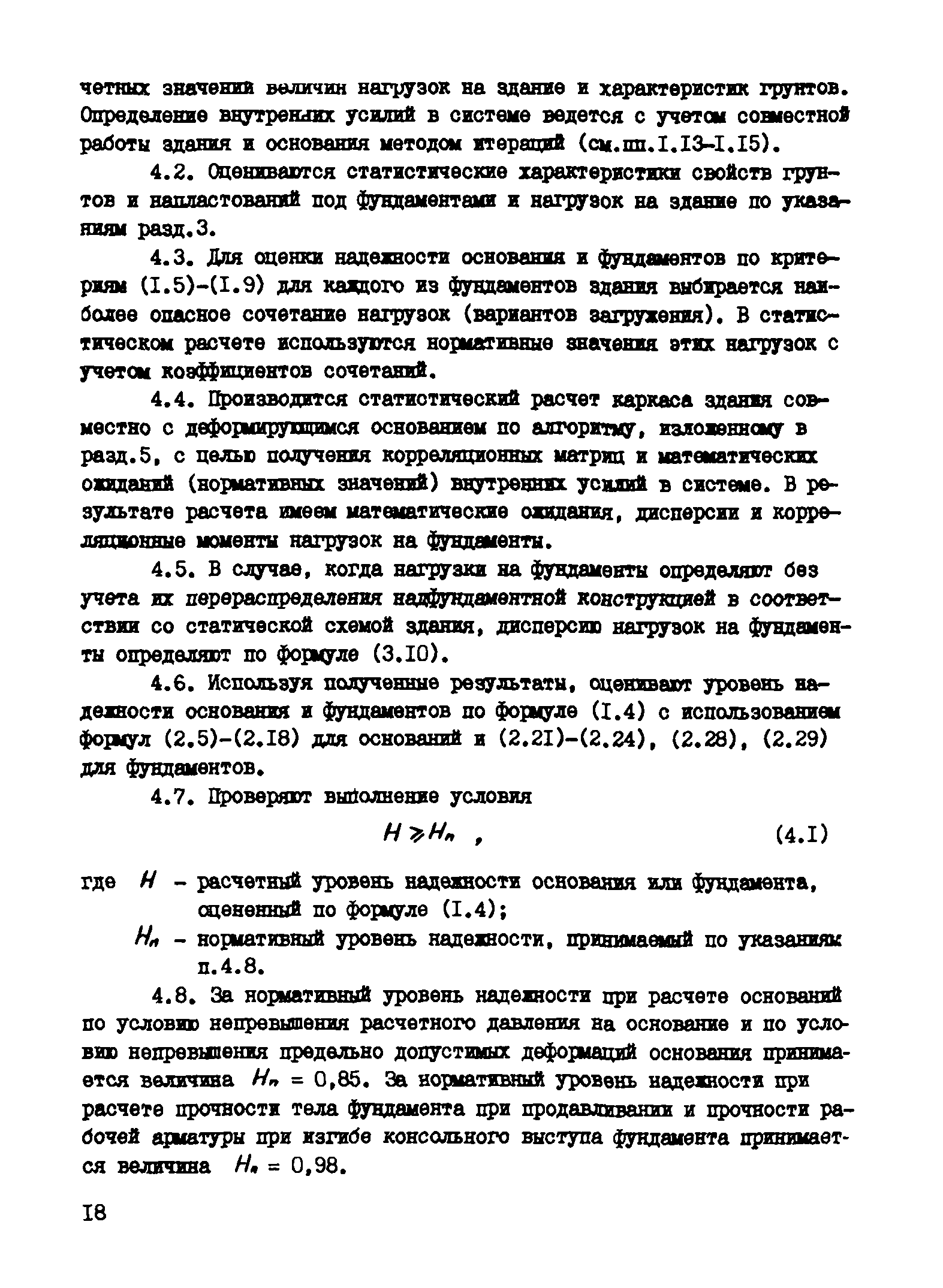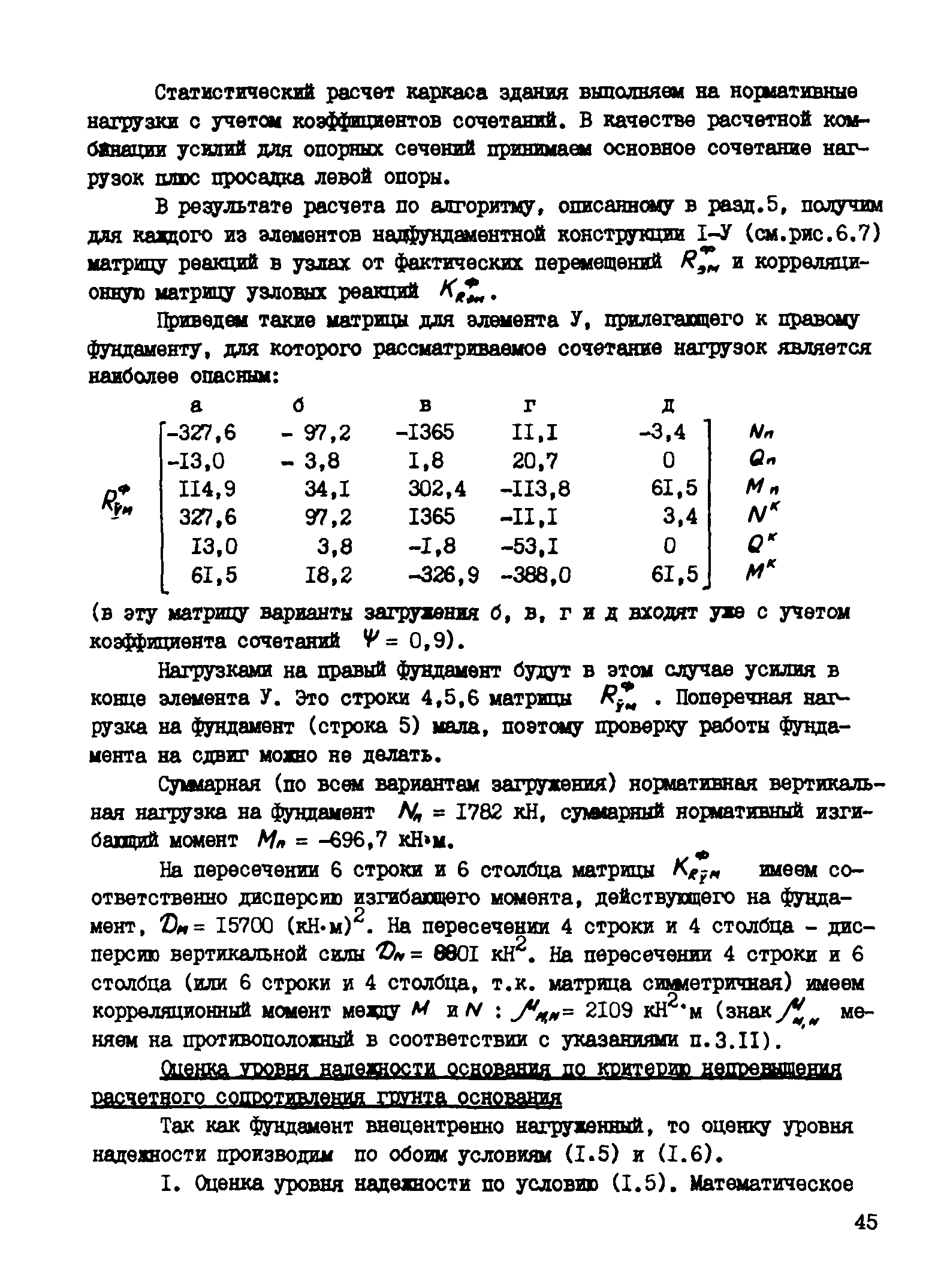 | Оглавление: | Введение 1 Основные положения расчета 2 Методика оценки уровня надежности оснований и фундаментов 3 Получение необходимых для расчета исходных параметров 4 Порядок расчета 5 Оценка статистических характеристик внутренних усилий в системе основание-каркасное здание 6 Примеры расчета Литература |