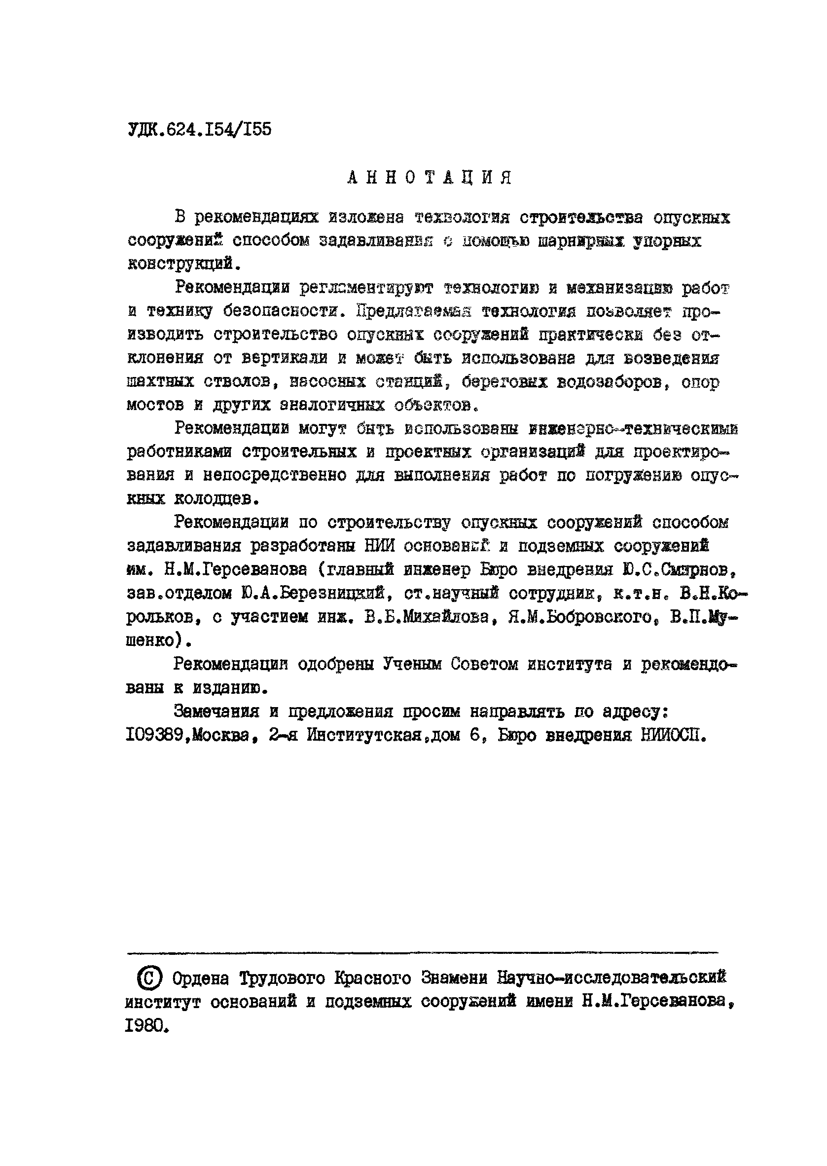 | Название рус.: | Рекомендации по строительству опускных сооружений способом задавливания |