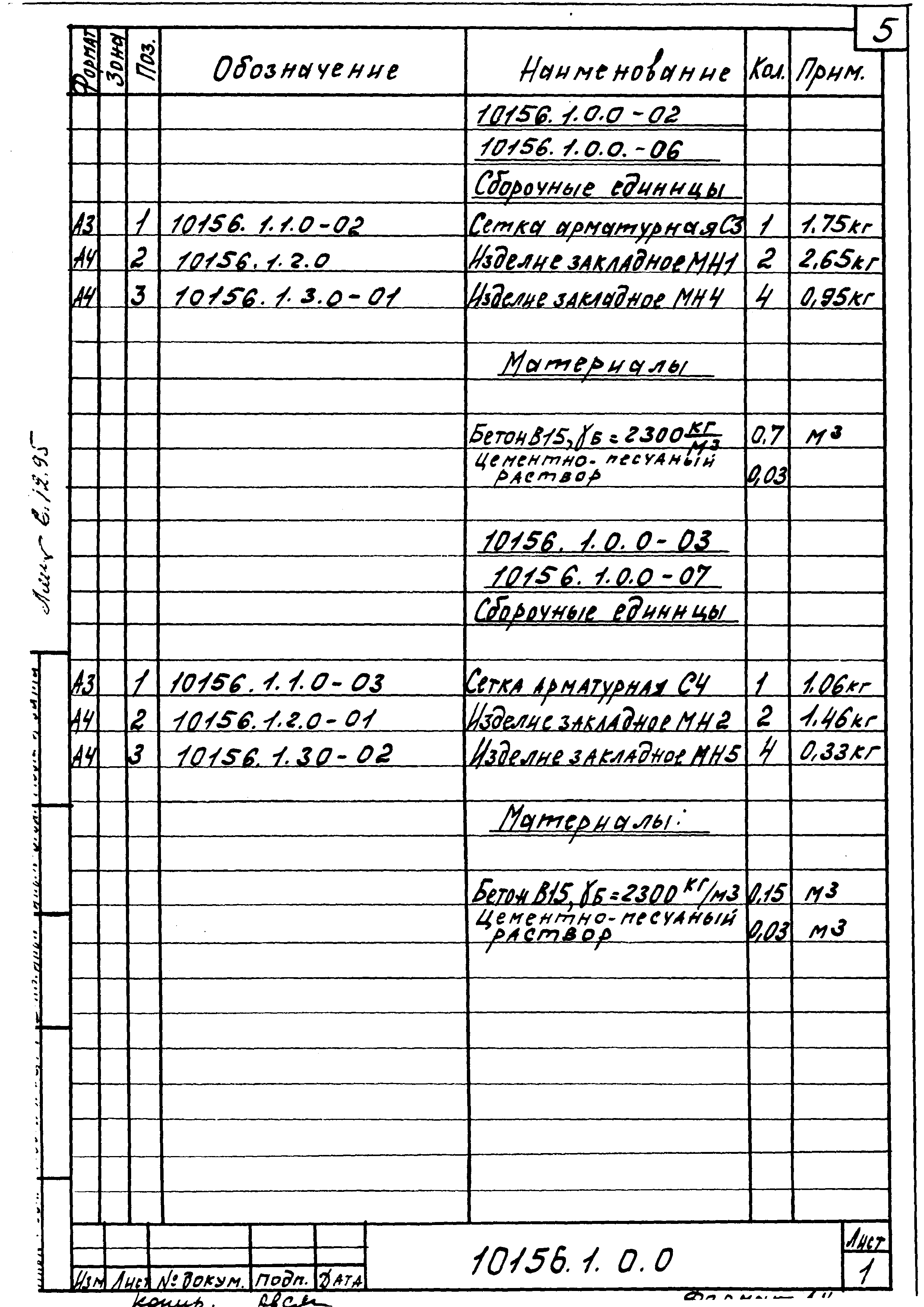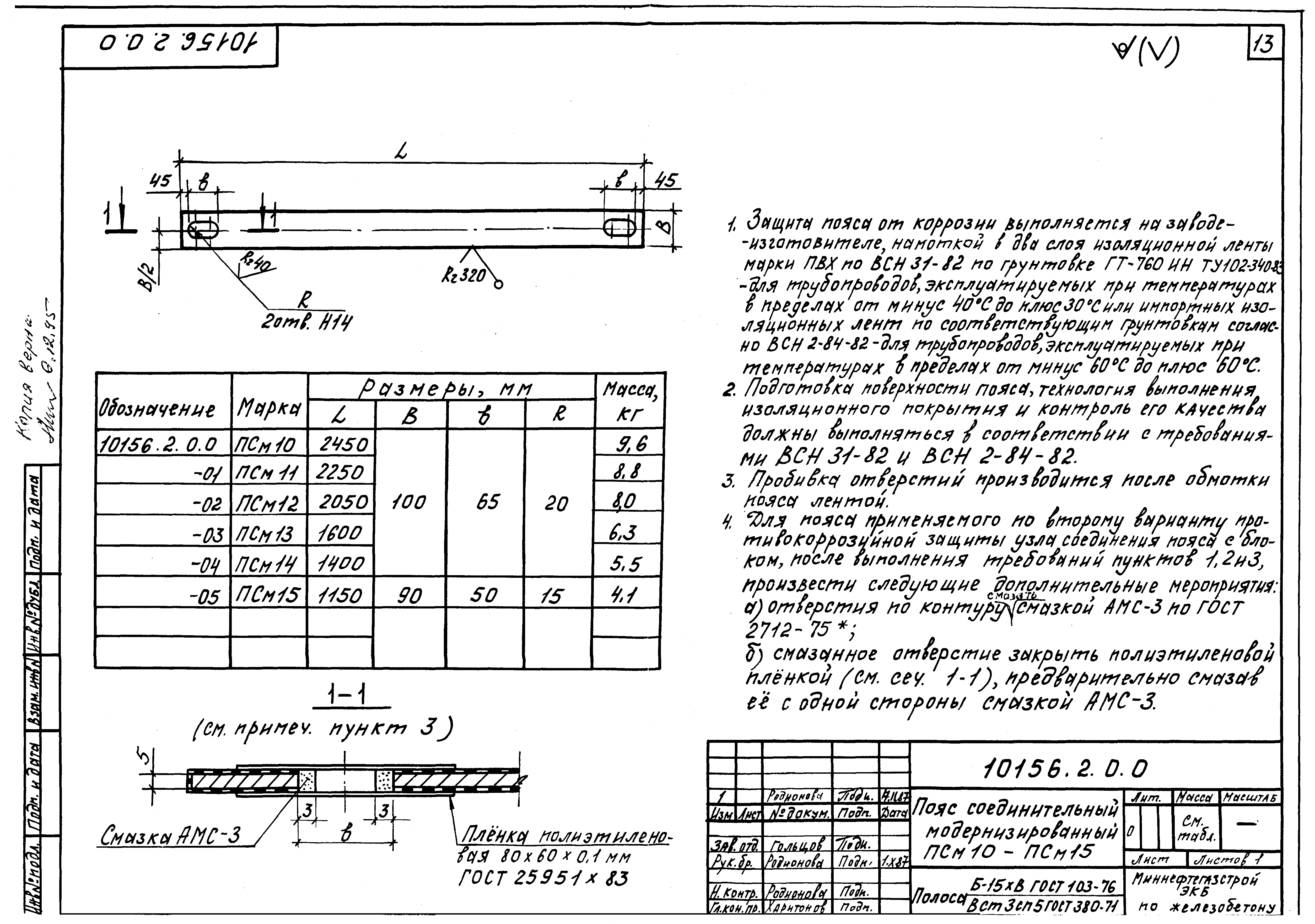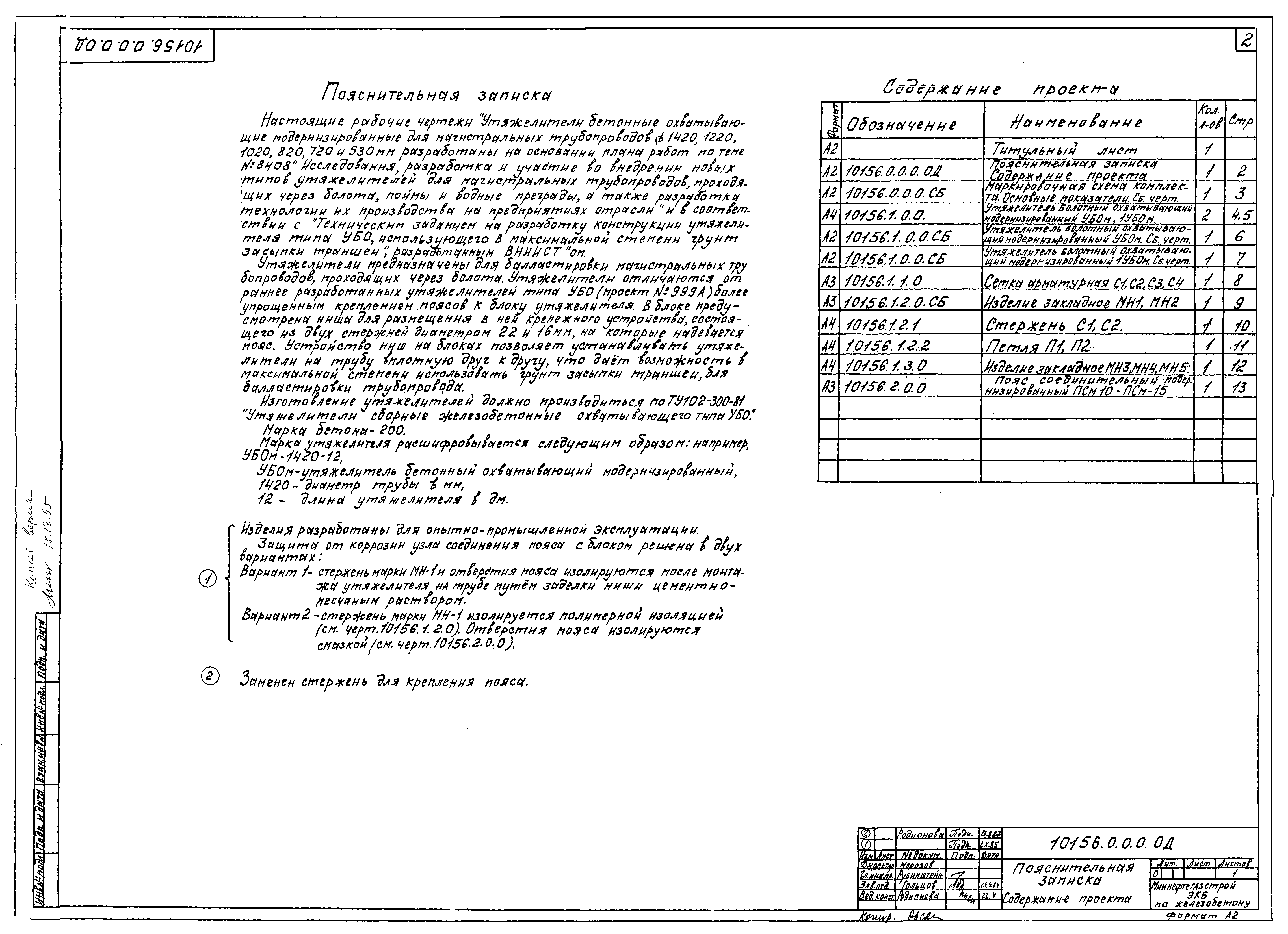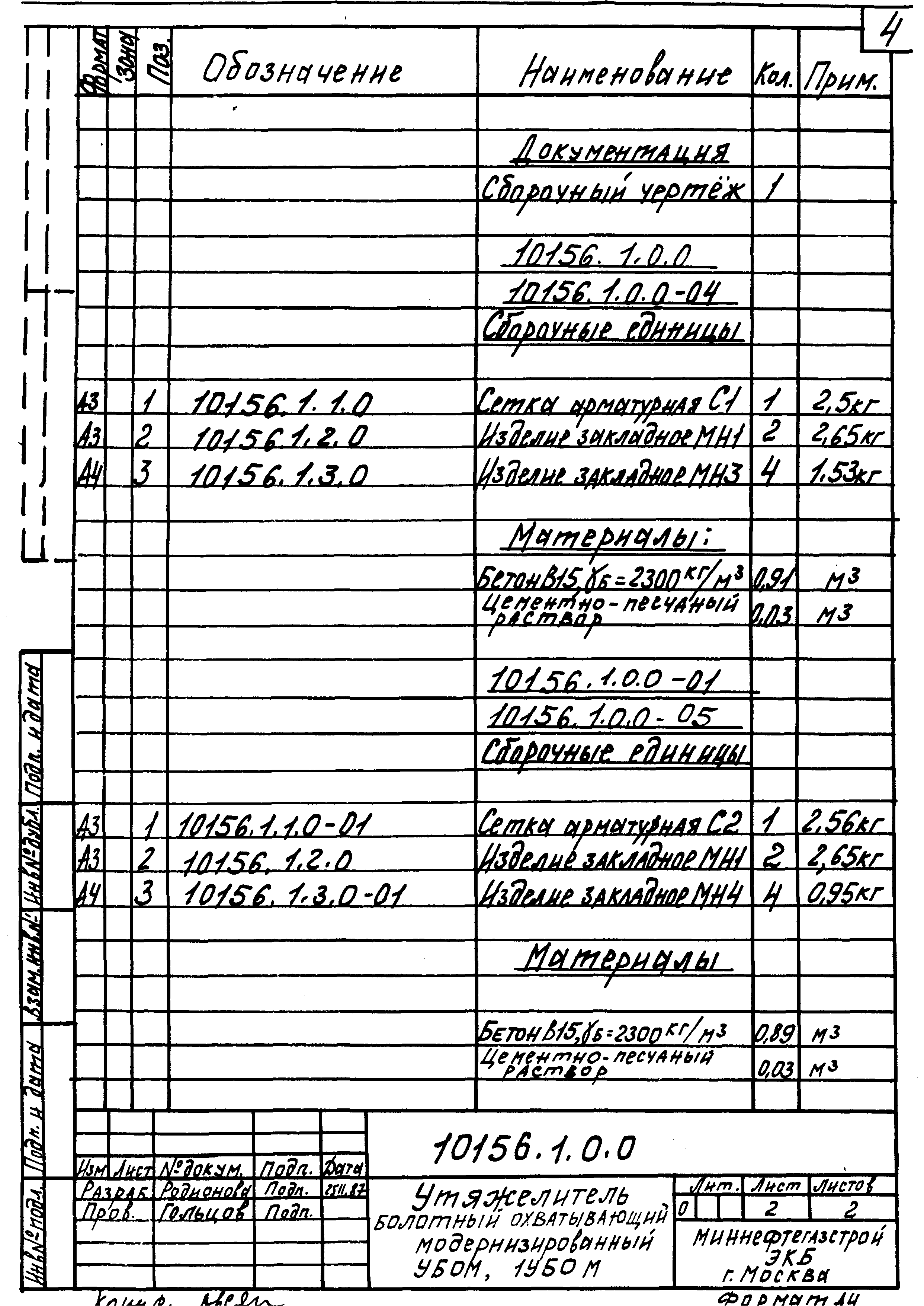 Утяжелители болотные охватывающие модернизированные для магистральных трубопроводов диаметром 1420, 1220, 1020, 820, 720, 530 мм. Рабочие чертежи| Статус: | не определен законодательством | | Название рус.: | Утяжелители болотные охватывающие модернизированные для магистральных трубопроводов диаметром 1420, 1220, 1020, 820, 720, 530 мм. Рабочие чертежи | | Дата добавления в базу: | 01.09.2013 | | Дата актуализации: | 01.01.2021 | | Дата введения: | 01.01.1984 | | Дата окончания срока действия: | 30.06.2003 | | Оглавление: | Титульный лист 10156.0.0.0.ОД Пояснительная записка. Содержание проекта 10156.0.0.0.СБ Маркировочная схема комплекта. Основные показатели. Сборочный чертеж 10156.1.0.0. Утяжелитель болотный охватывающий модернизированный УБОм, 1УБОм 10156.1.0.0.СБ Утяжелитель болотный охватывающий модернизированный УБОм. Сборочный чертеж 10156.1.0.0.СБ Утяжелитель болотный охватывающий модернизированный 1УБОм. Сборочный чертеж 10156.1.1.0. Сетка арматурная С1, С2, С3, С4 10156.1.2.0.СБ Изделие закладное МН1, МН2 10156.1.2.1 Стержень С1, С2 10156.1.2.2 Петля П1, П2 10156.1.3.0 Изделие закладное МН3, МН4, МН5 10156.2.0.0 Пояс соединительный модернизированный ПСМ 10-ПСМ-15 | | Разработан: | Миннефтегазстрой СССР