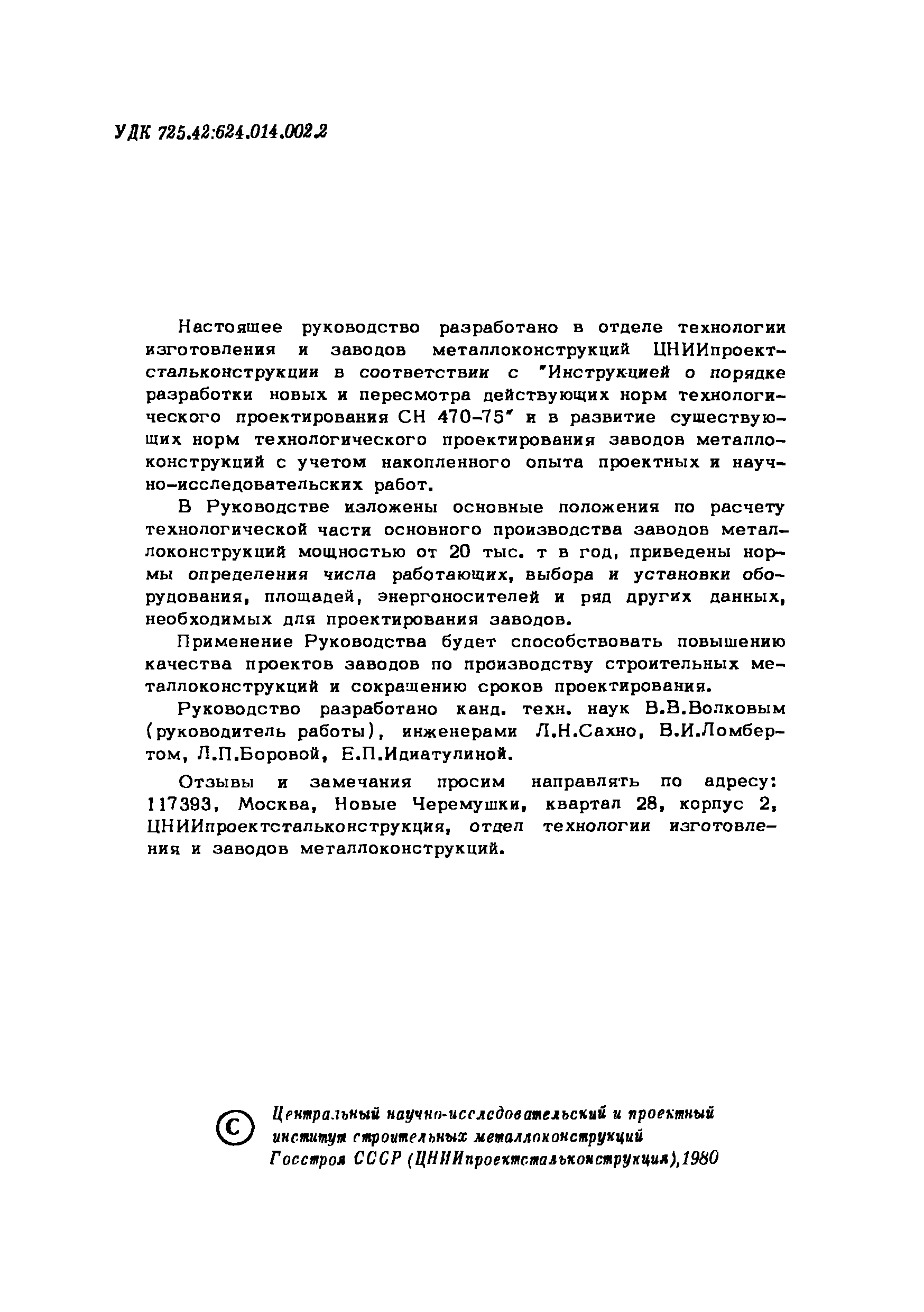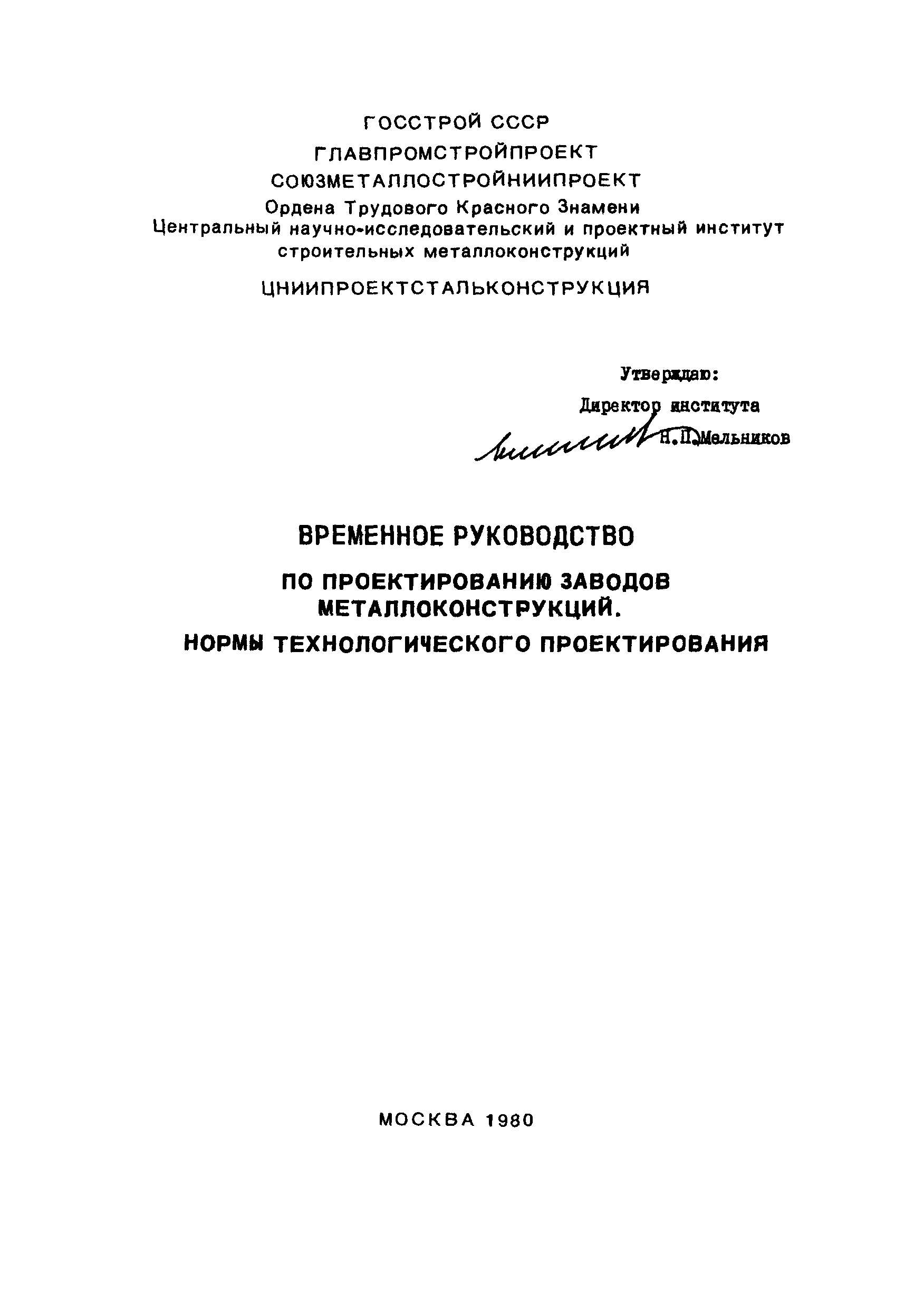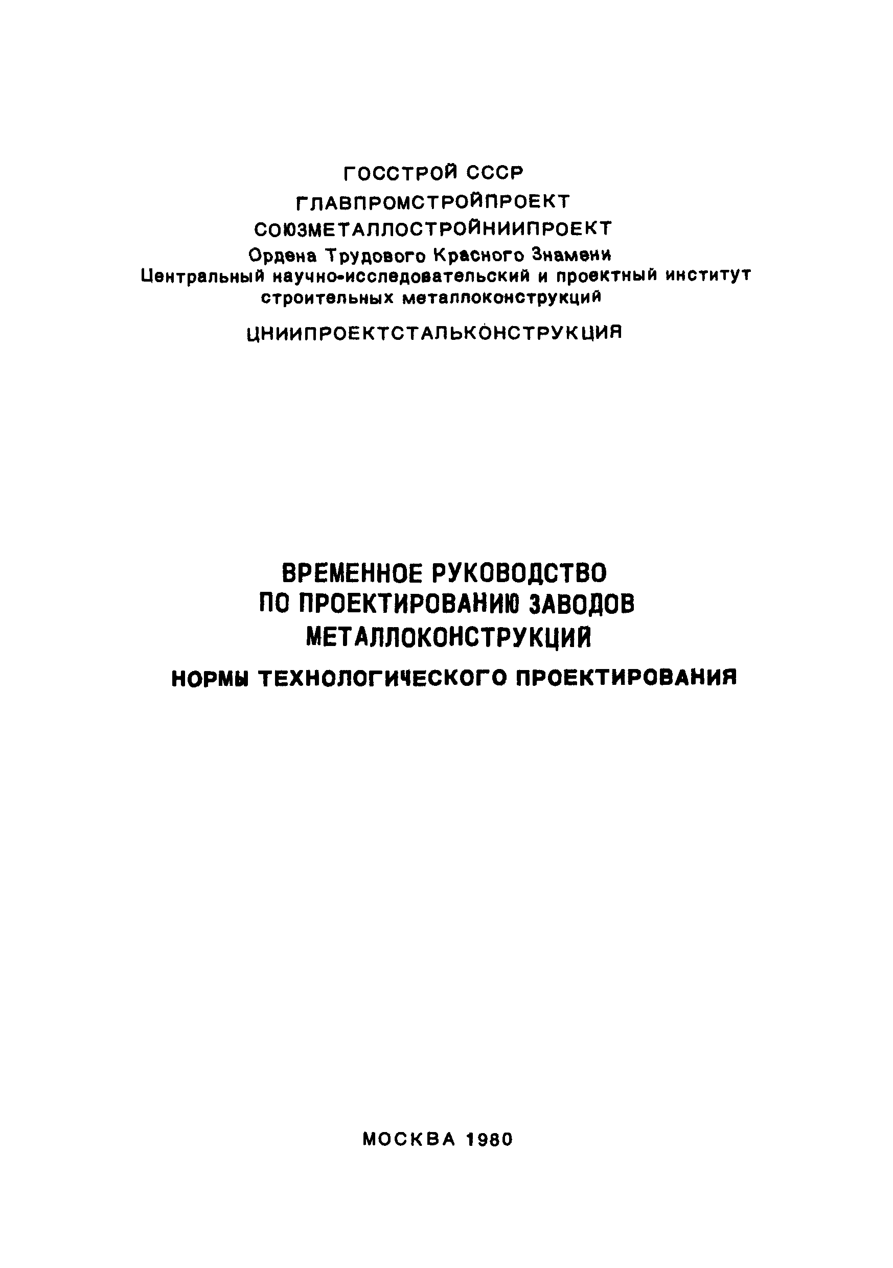 | Утверждён: | Госстрой СССР (Государственный комитет Совета Министров СССР по делам строительства) (USSR Gosstroy ) Союзметаллостройниипроект (Soyuzmetallostroyniiproject ) Главпромстройпроект Госстроя СССР