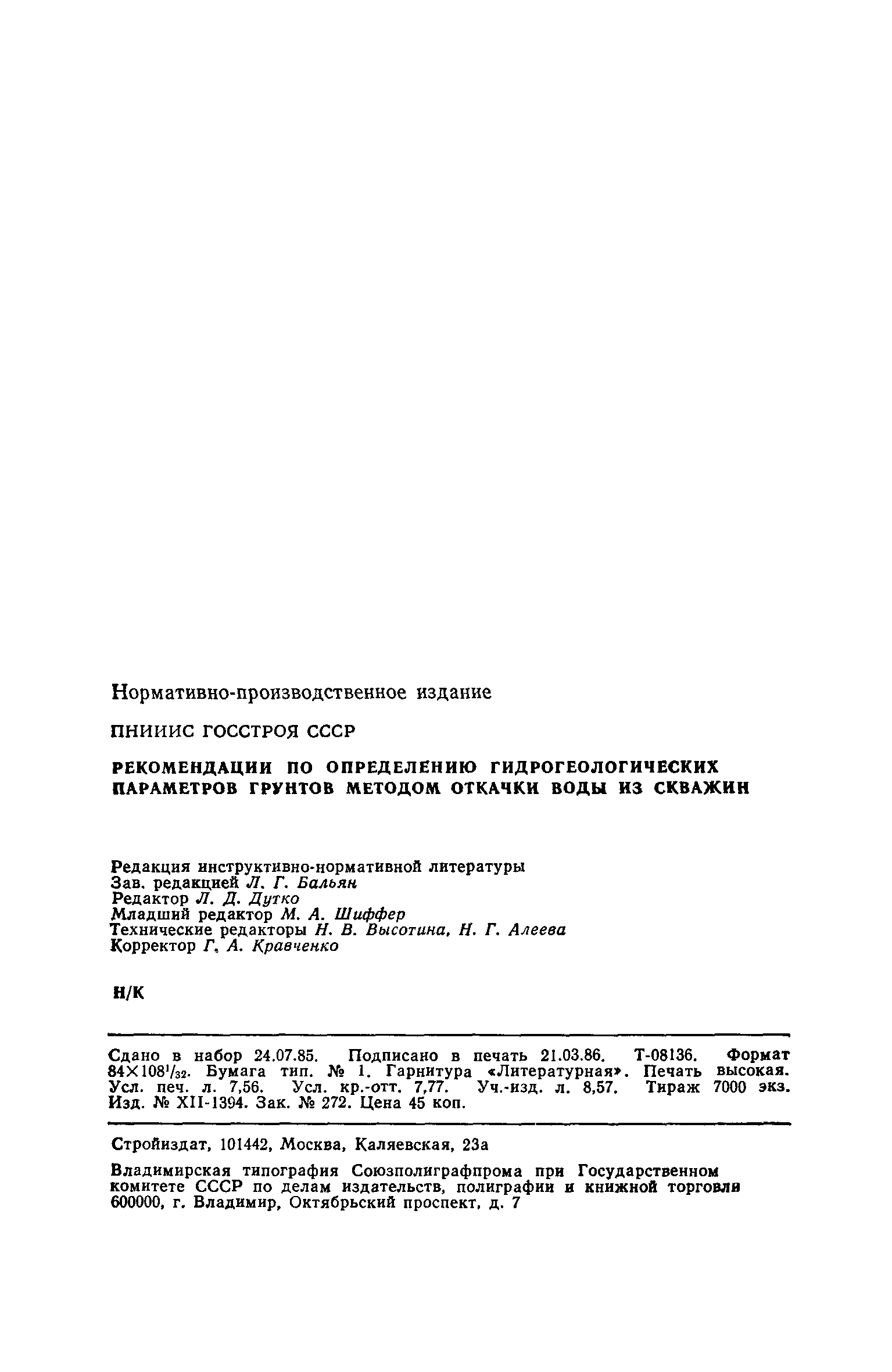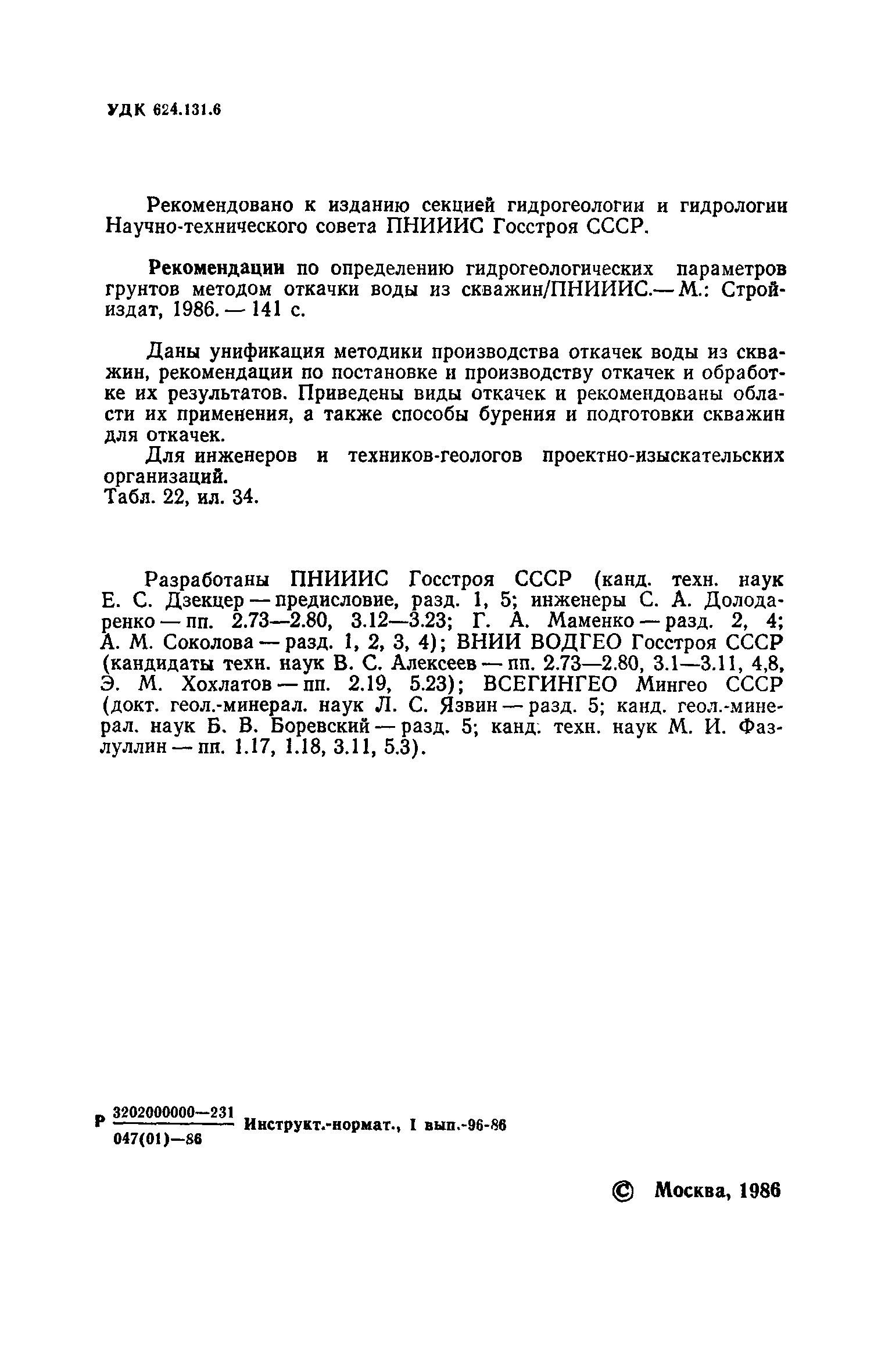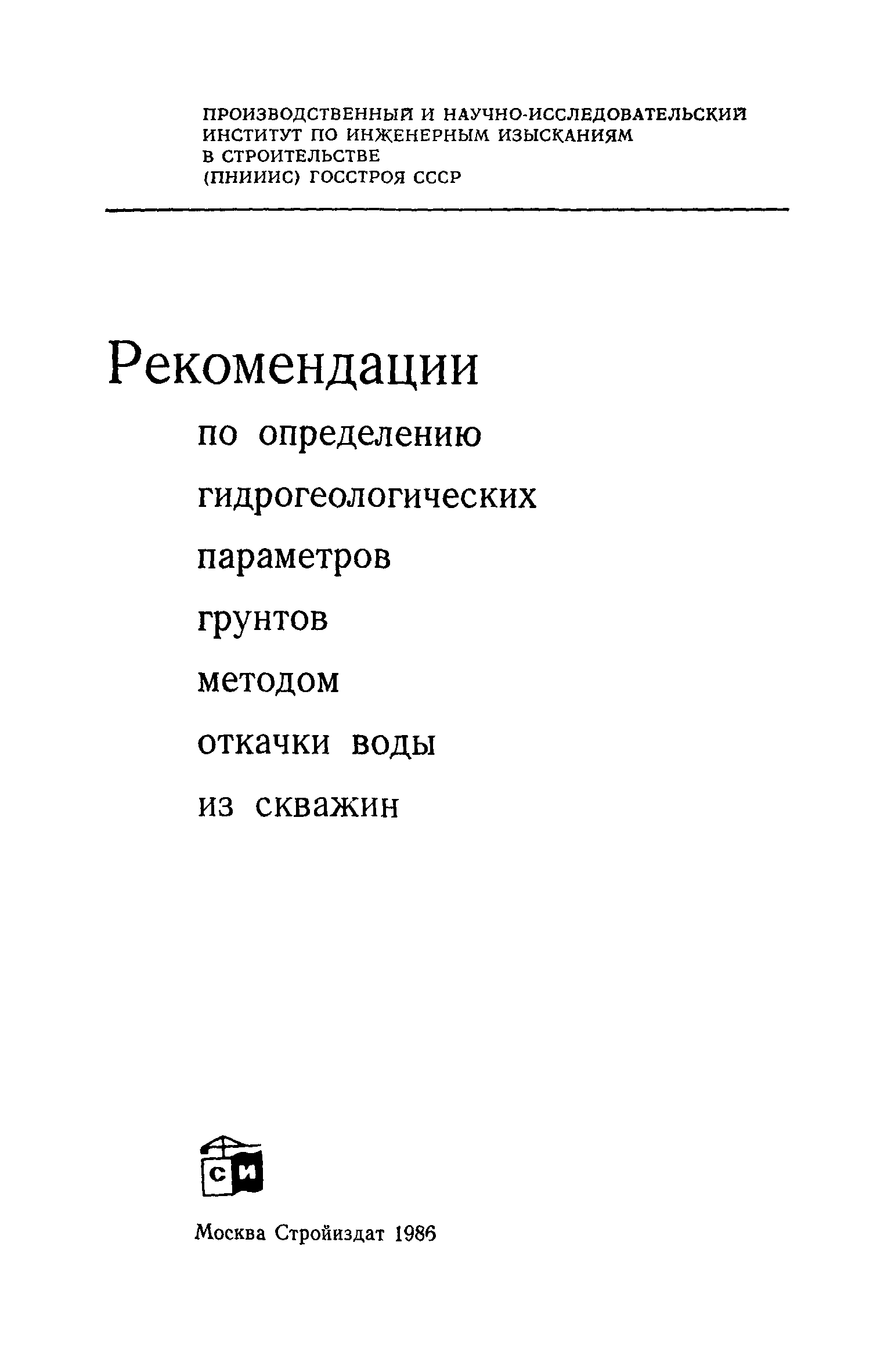 | Название рус.: | Рекомендации по определению гидрогеологических параметров грунтов методом откачки воды из скважин |