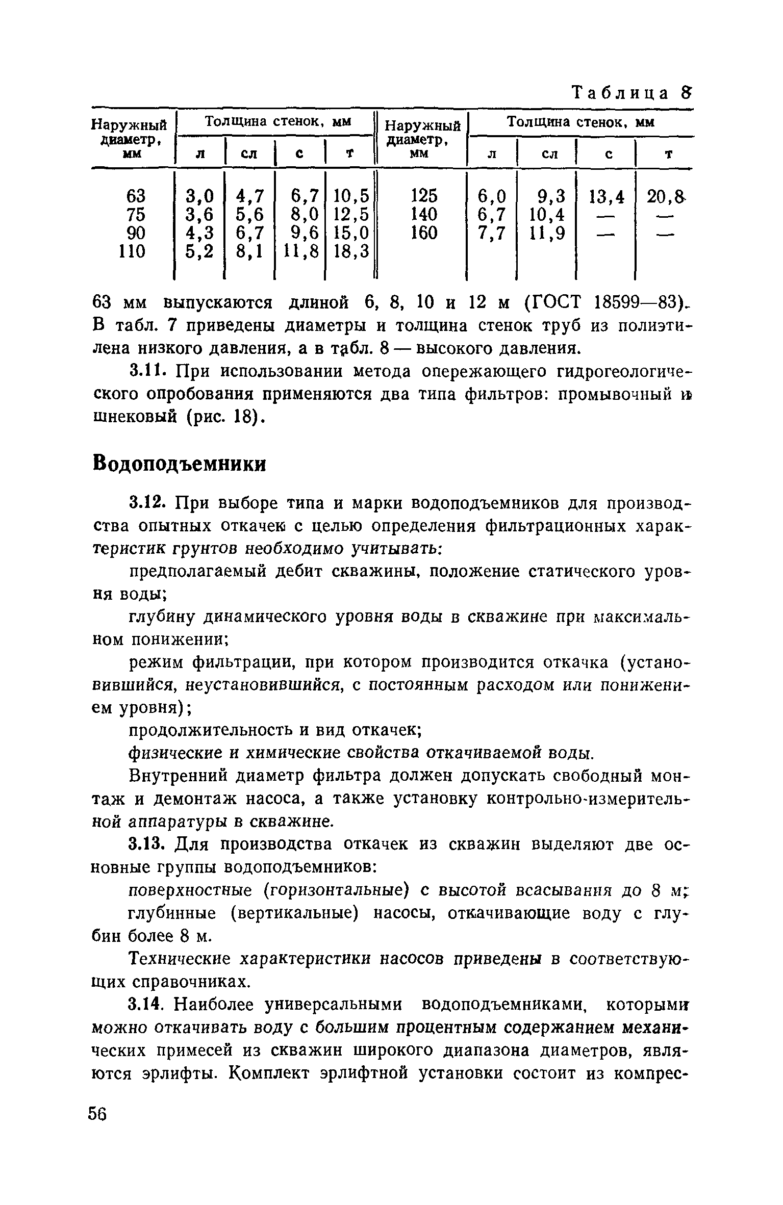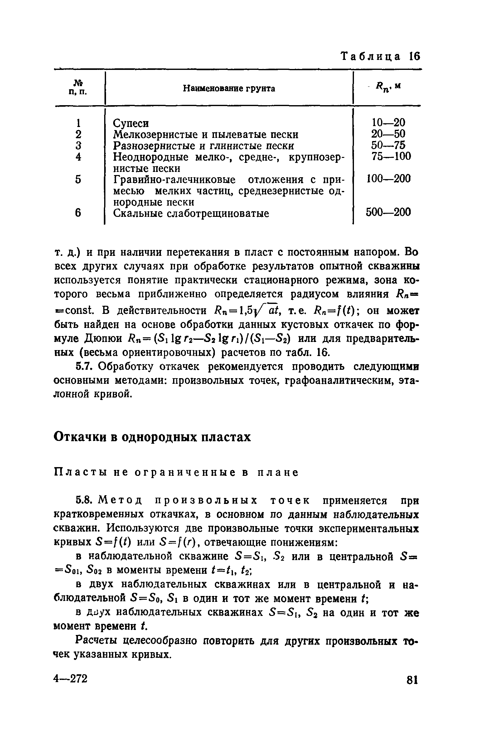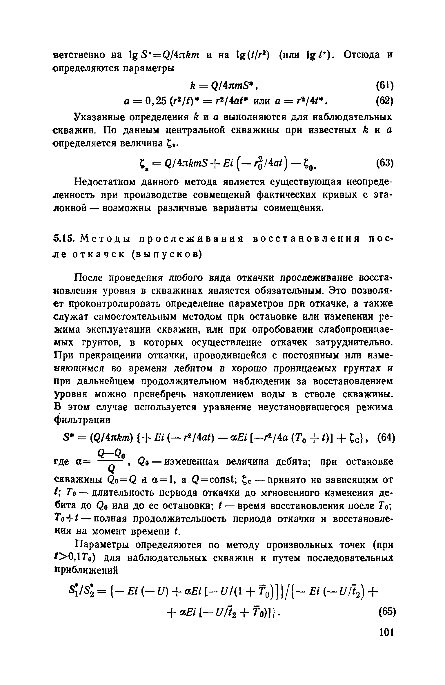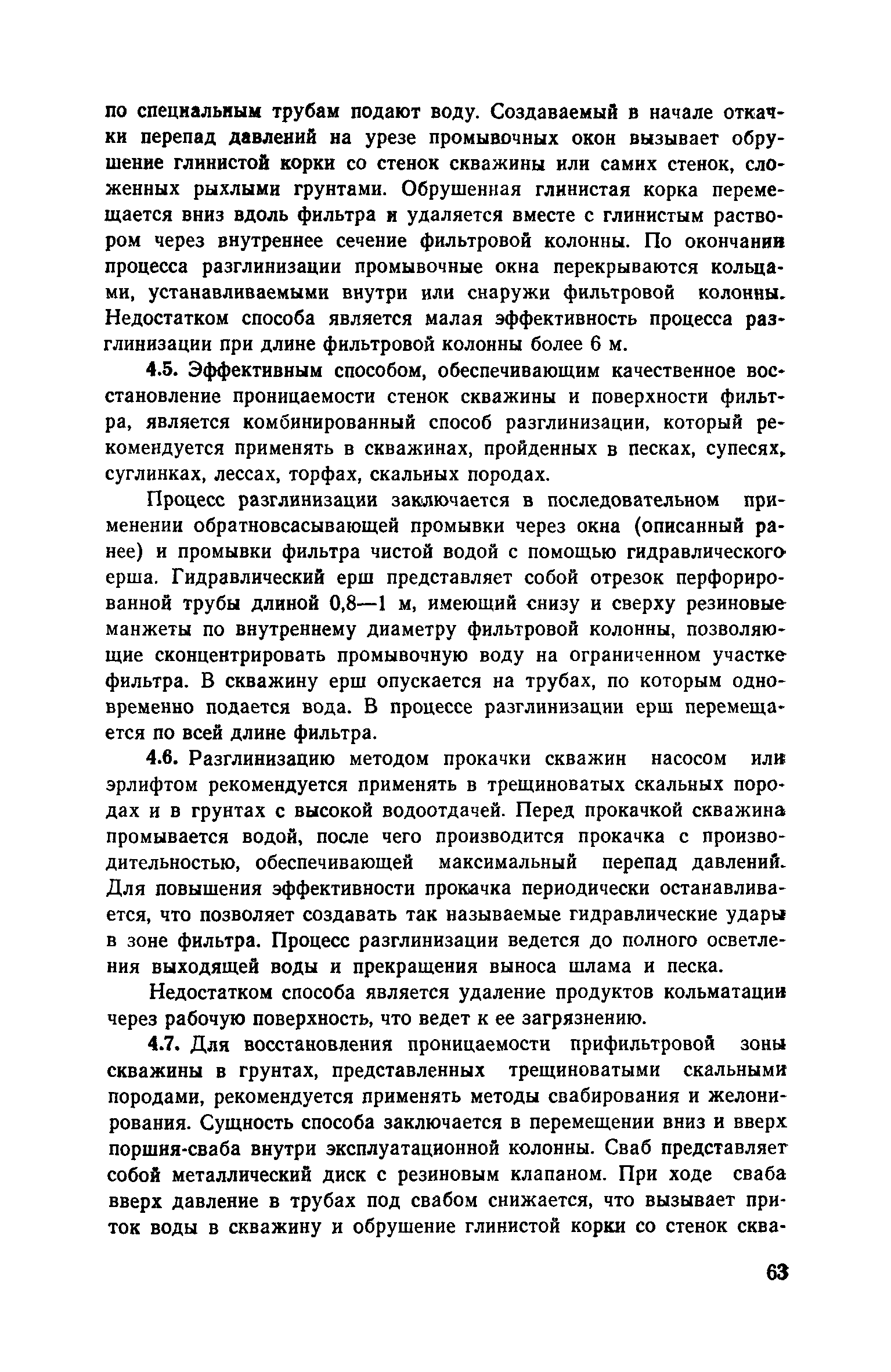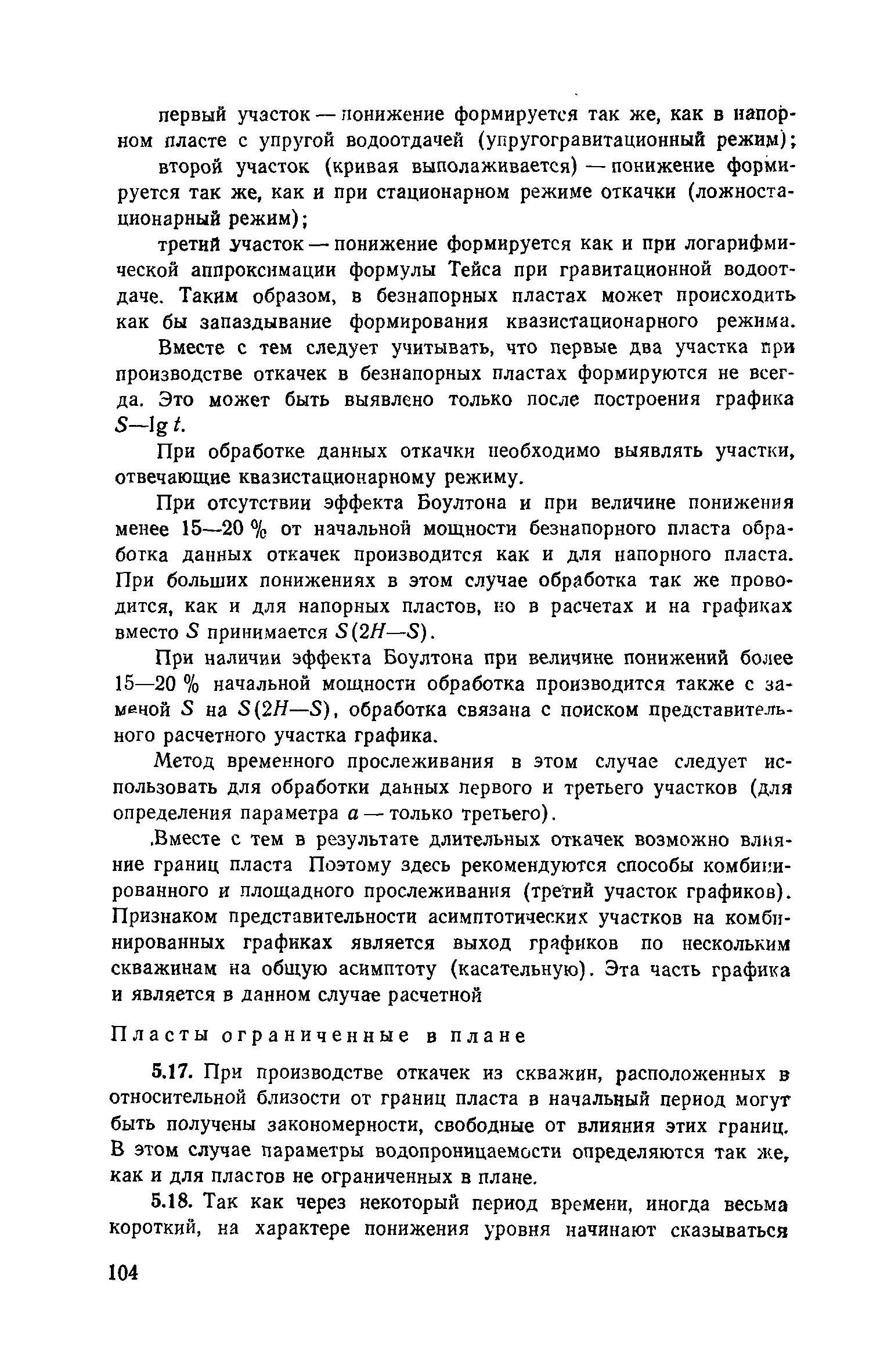 | Оглавление: | Предисловие 1. Общие положения Основные гидрологические параметры Виды откачек и область их применения Рекомендации по выбору технологических схем испытаний при изысканиях для строительства Достоверность определения гидрологических параметров методом откачек воды из скважин Схематизация природных условий 2. Условия проведения откачек Выбор местоположения и схемы проведения испытаний Режим и продолжительность испытаний Выбор способа бурения и конструкции скважин для проведения испытаний и технологические требования к их сооружению 3. Оборудование и приборы Фильтры Водоподъемники Измерительные приборы 4. Проведение испытания Подготовка к откачке Производство откачки Первичная камеральная обработка результатов испытания 5. Обработка и интерпретация результатов испытаний Общие положения Откачки в однородных пластах Откачки в неоднородных пластах Откачки в породах, имеющих специфические фильтрационные свойства Экспресс методы Список литературы |