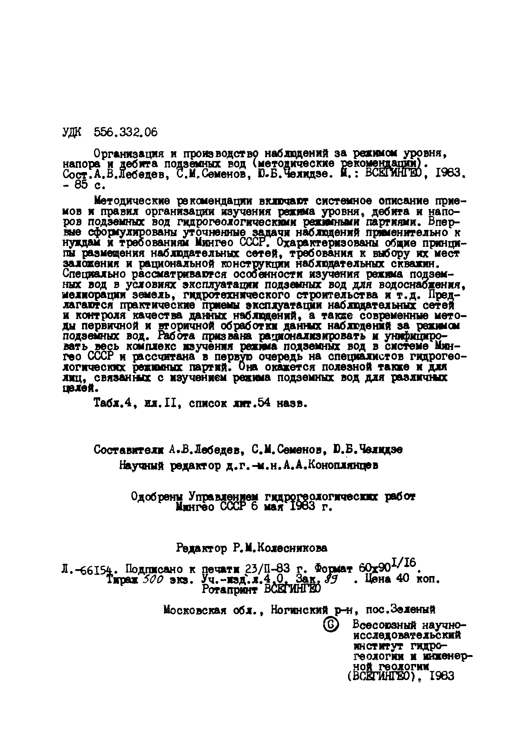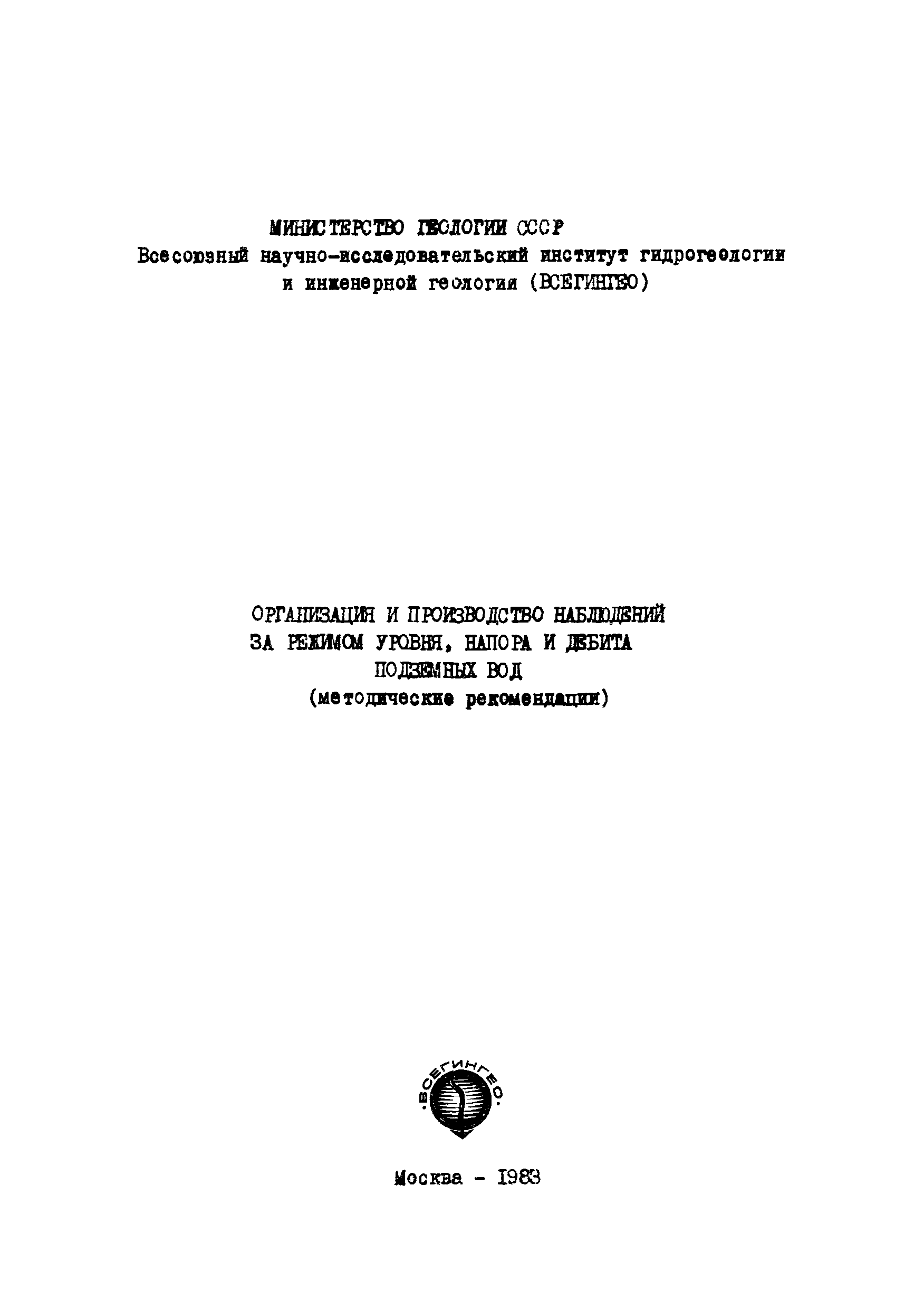 | Название рус.: | Организация и производство наблюдений за режимом уровня и дебита подземных вод (методические рекомендации) |