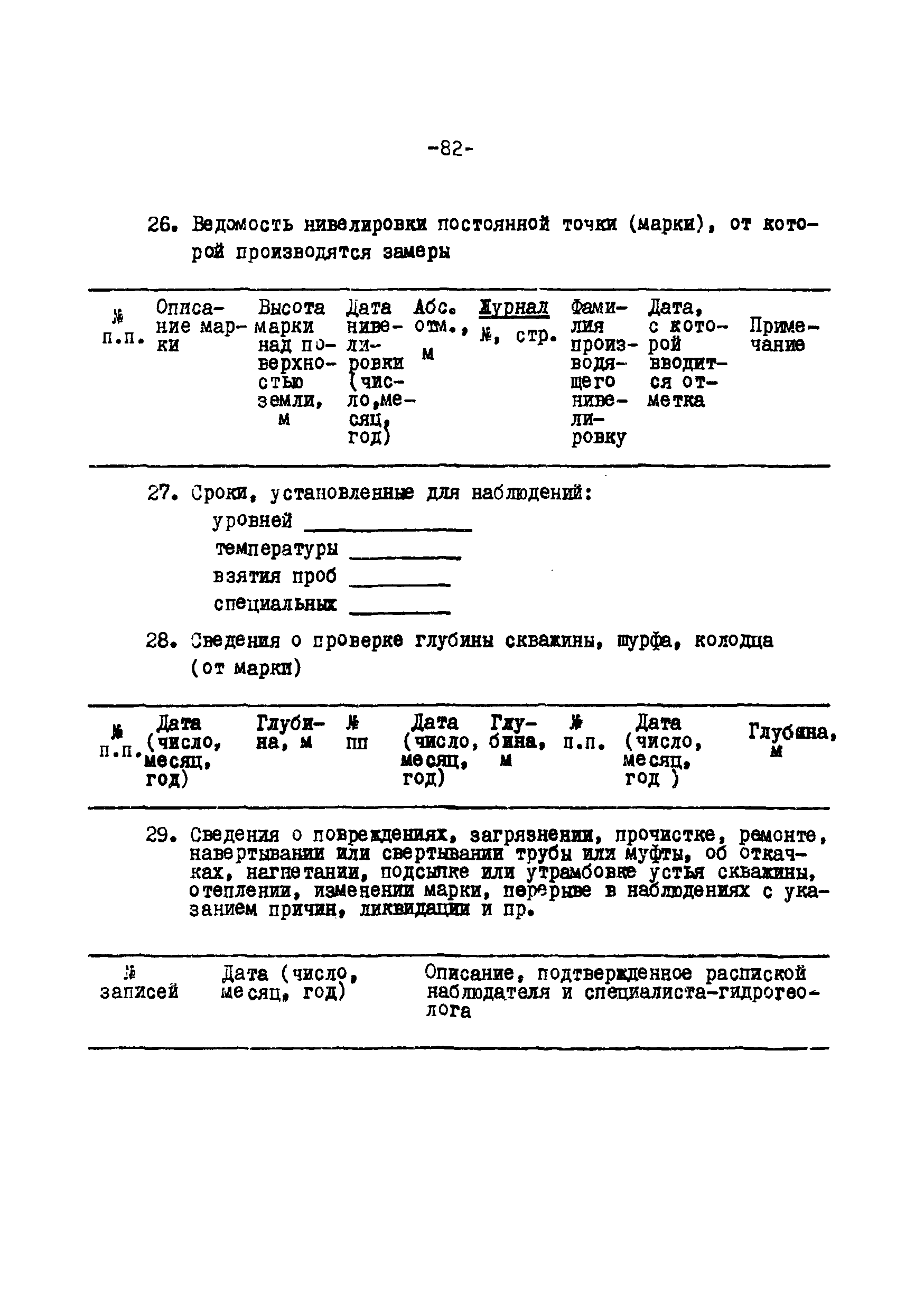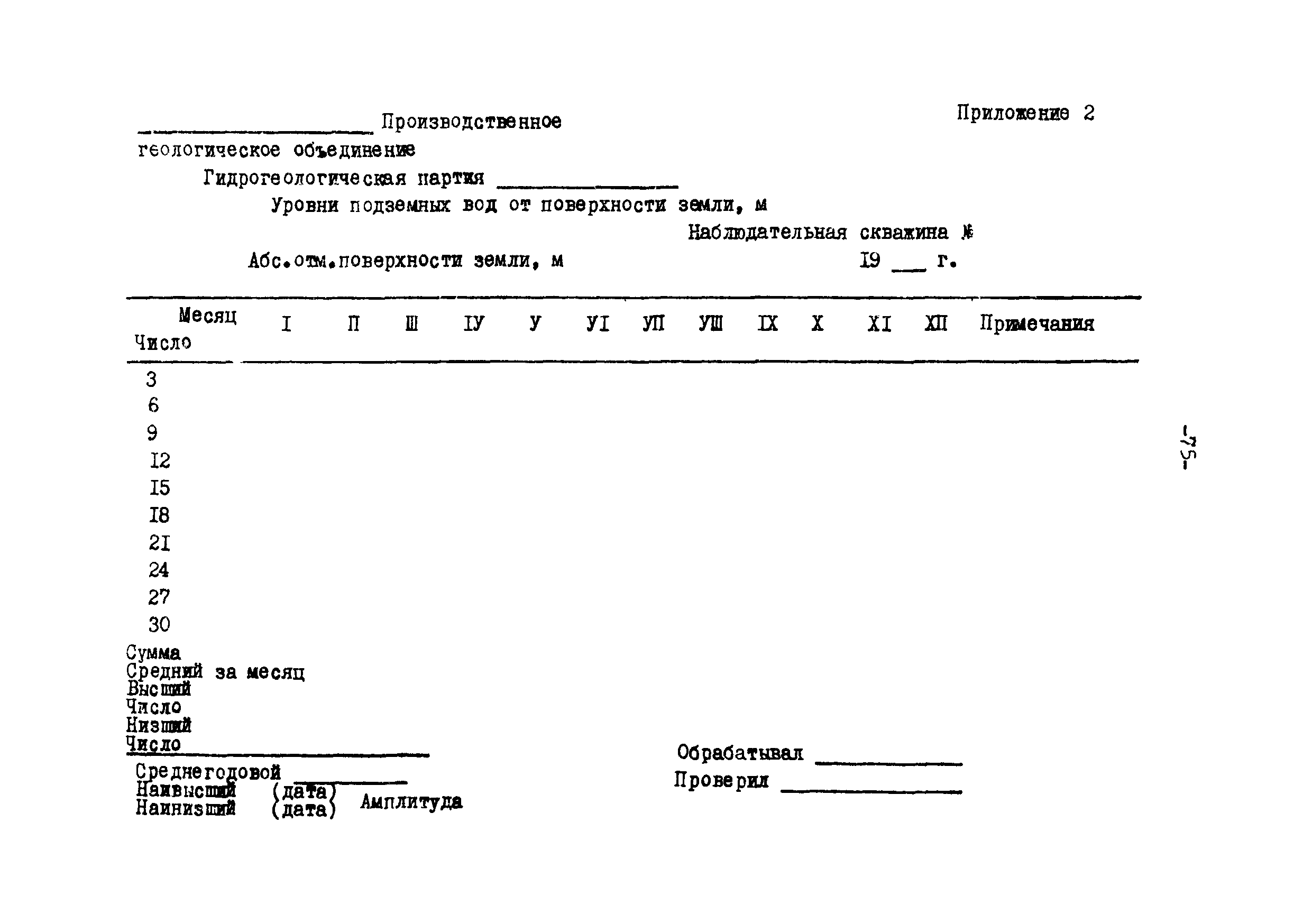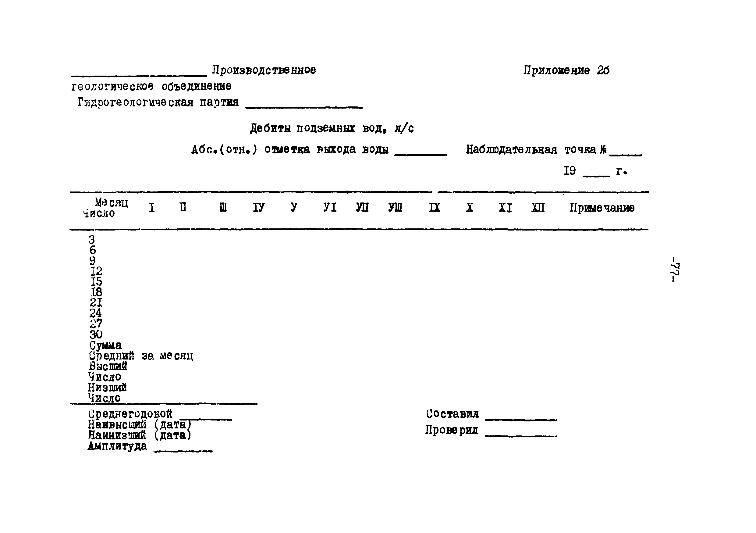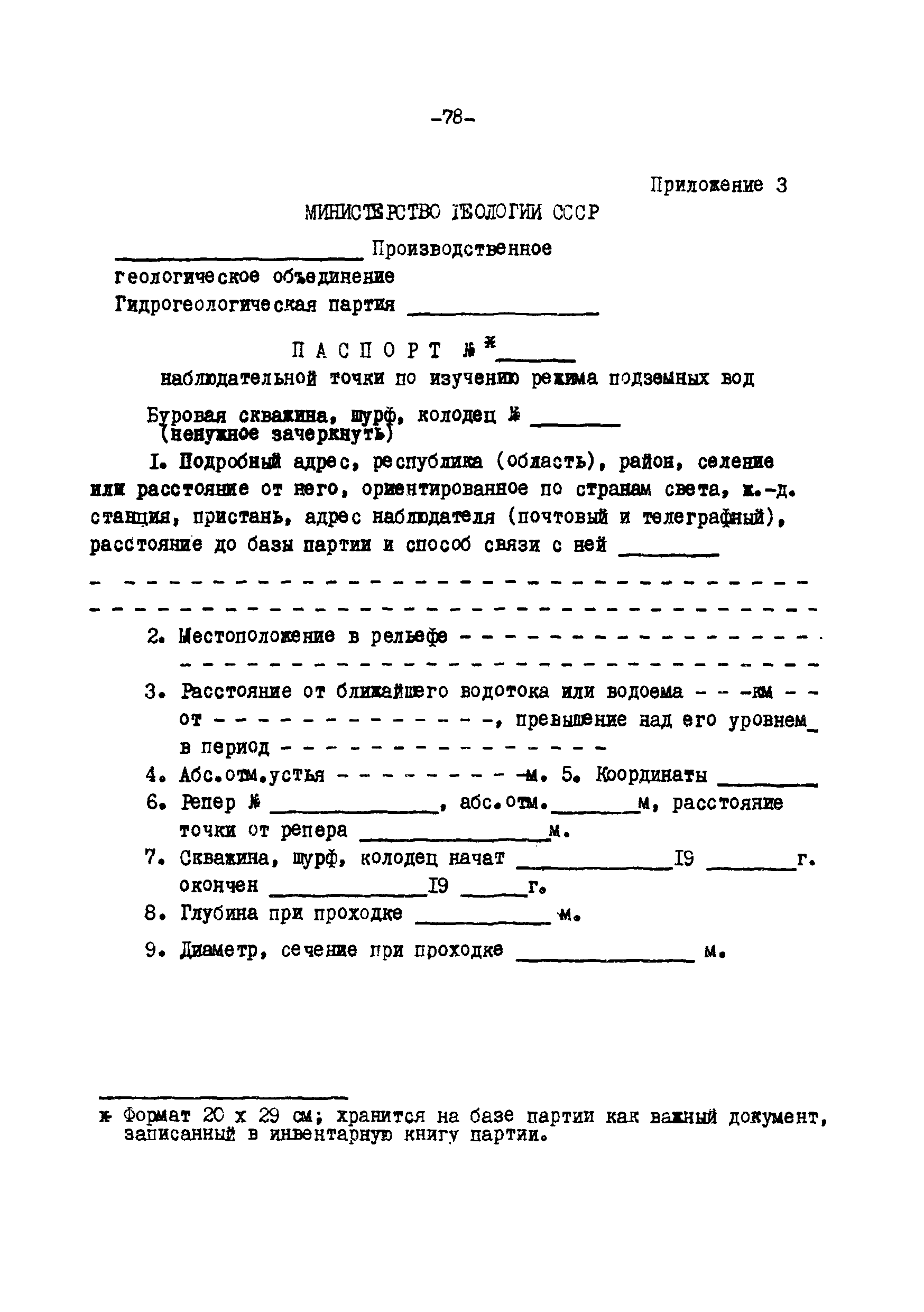 | Оглавление: | Введение 1. Назначение и задачи наблюдений 2. Требования к составу и размещению сети наблюдательных пунктов 3. Оборудование и конструкции наблюдательных скважин 4. Особенности изучения режима уровня, напора и дебита подземных вод для различных целей 5. Методика производства наблюдений 6. Контроль работы наблюдательной сети 7. Документация и обработка данных наблюдений 8. Приборы и оборудование для наблюдений Список литературы Приложение 1 Приложение 2 Приложение 3 |
