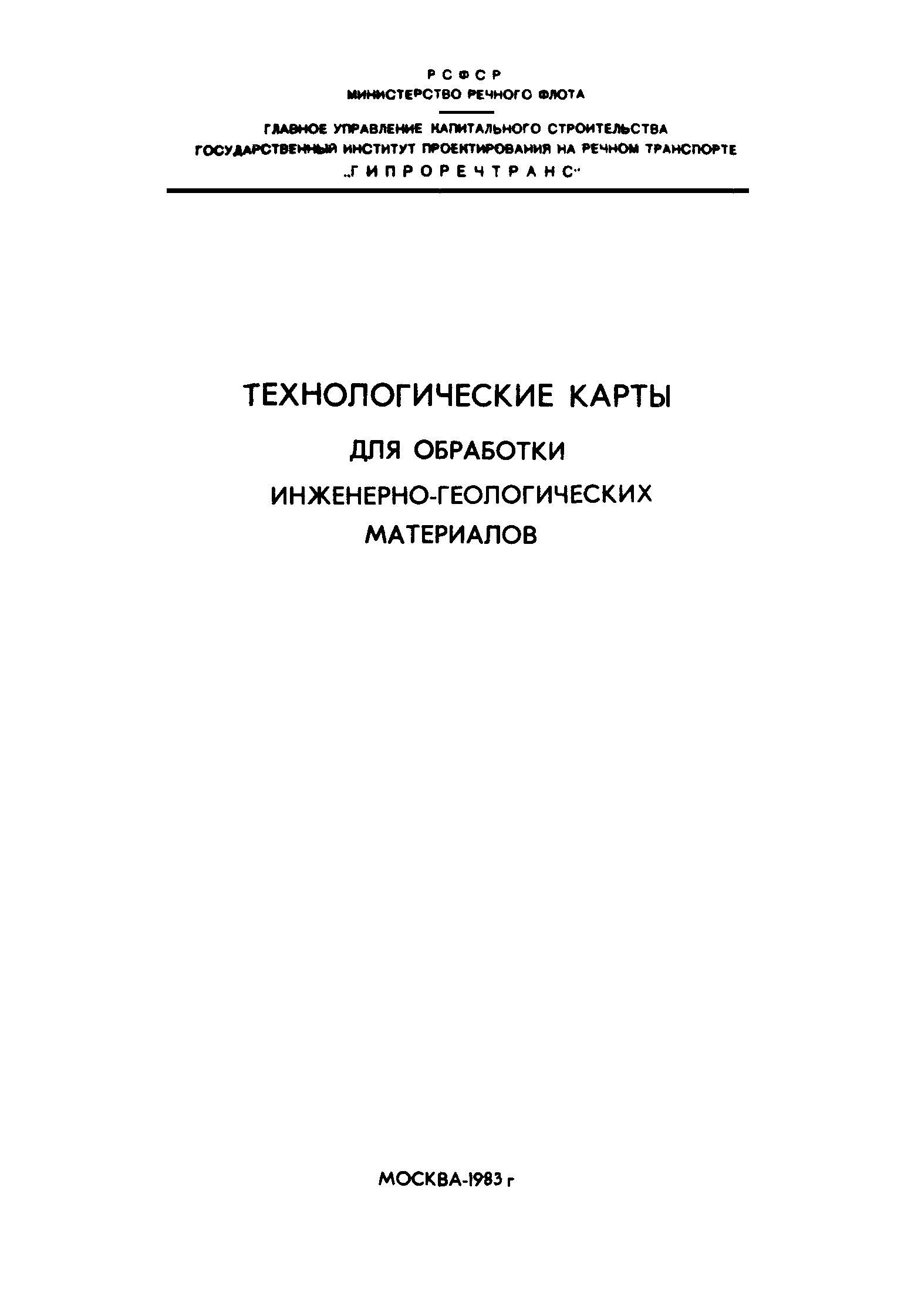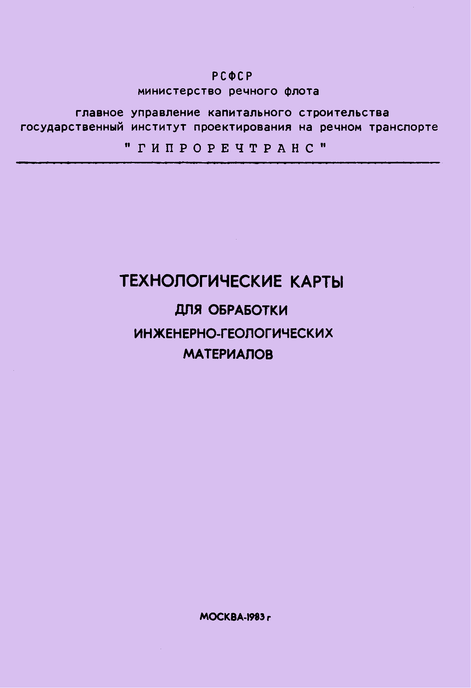 | Область применения: | Технологические карты предназначены для камеральной обработки инженерно-геологических материалов изысканий на участках расположения различных объектов речного транспорта |