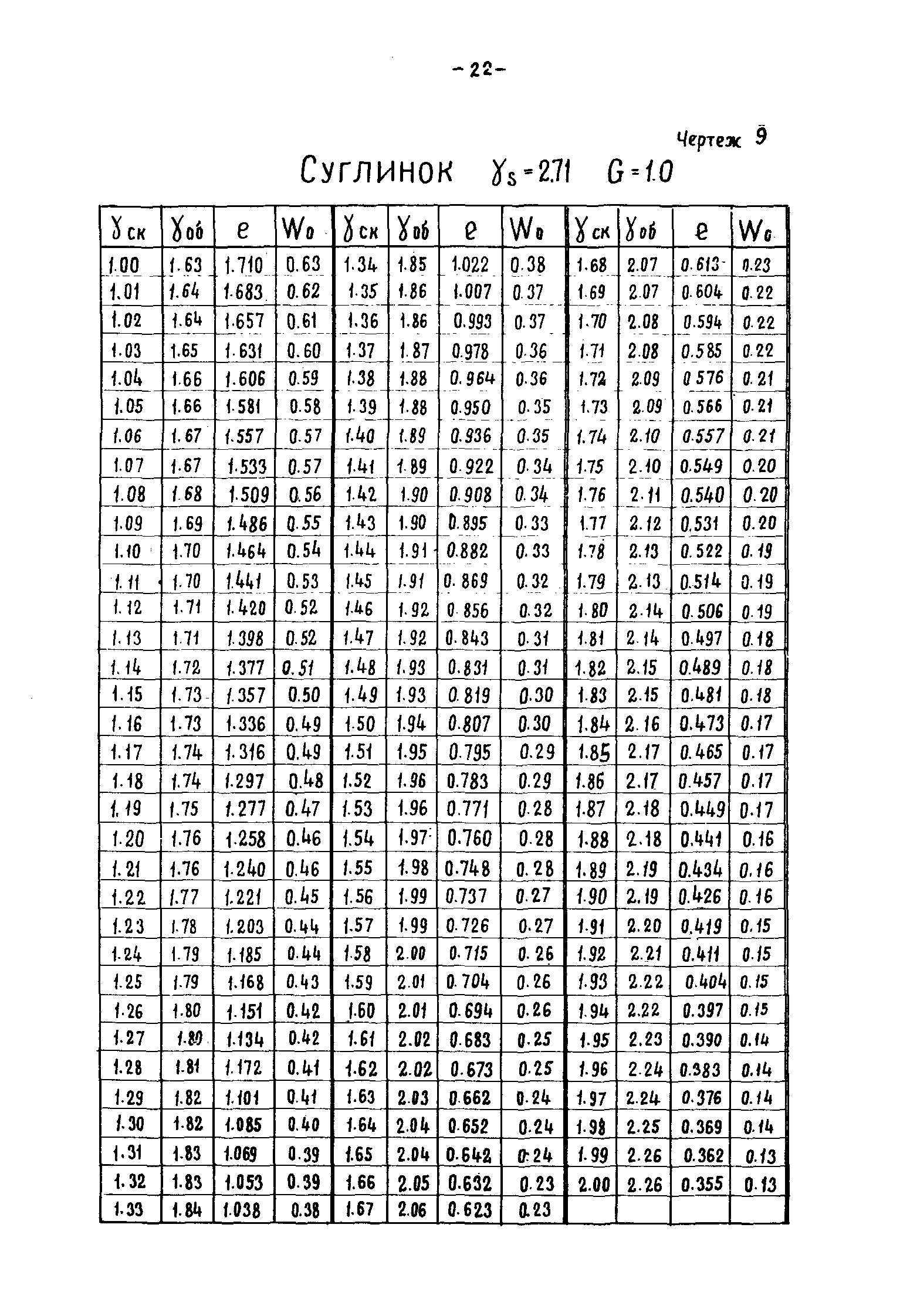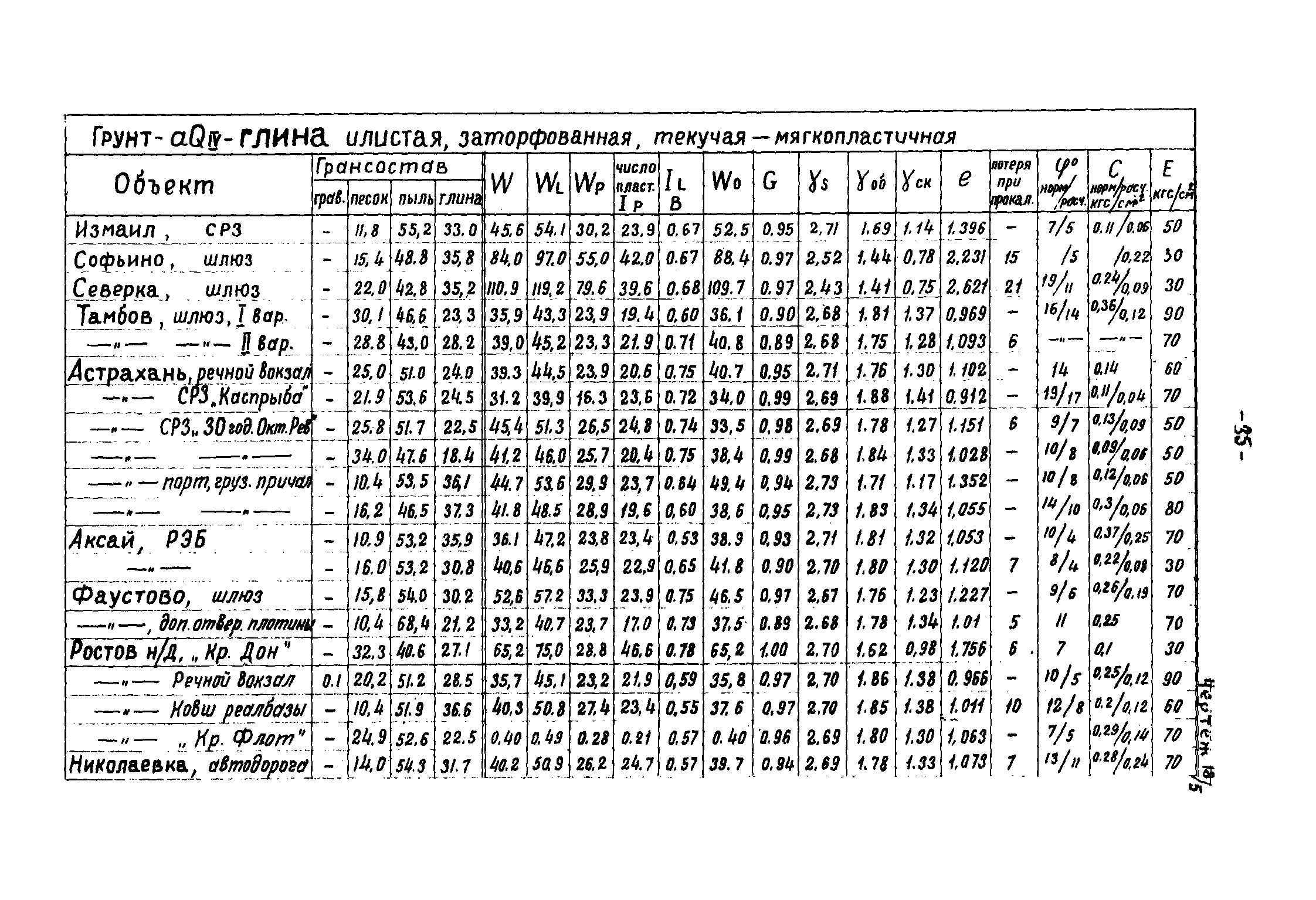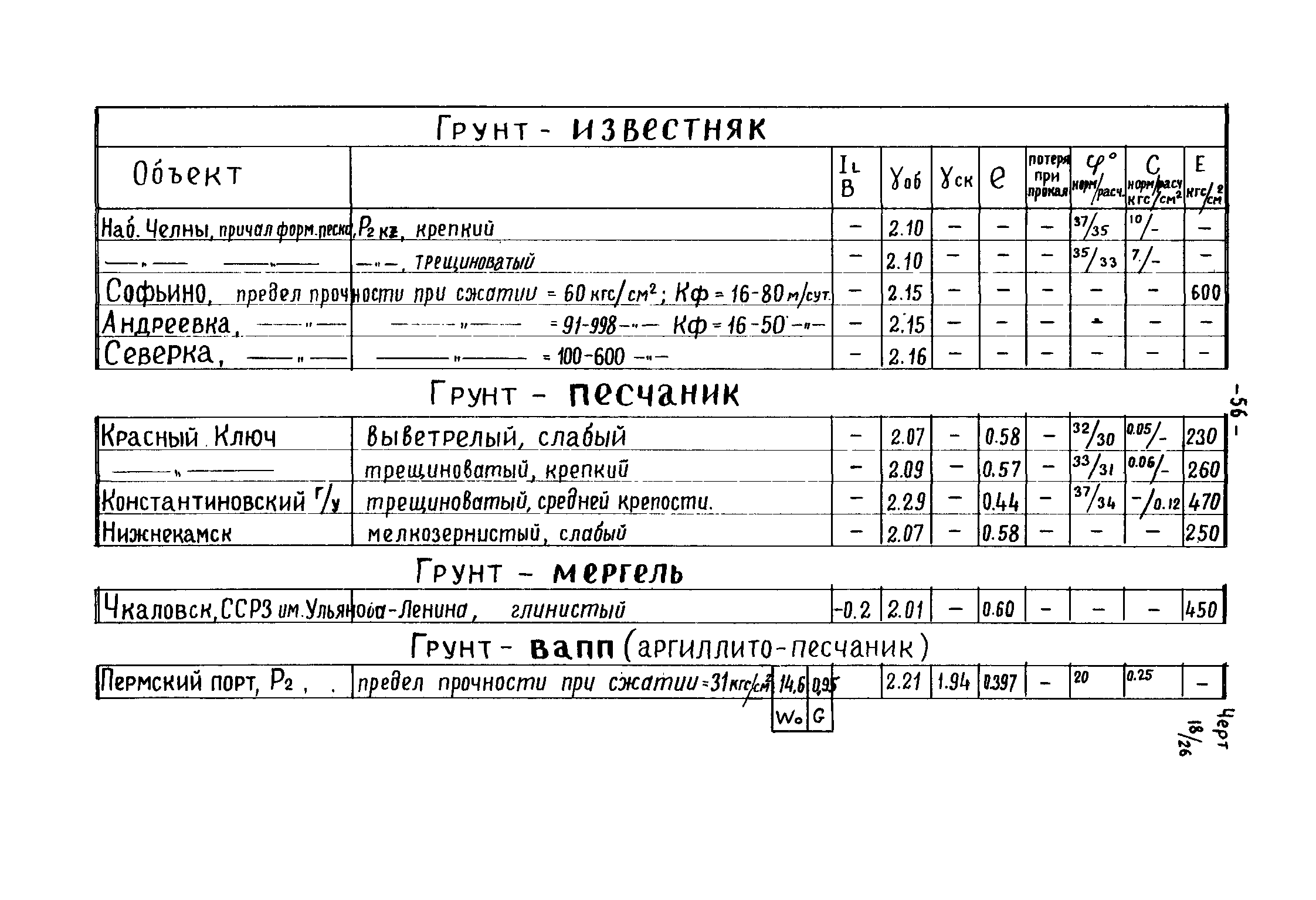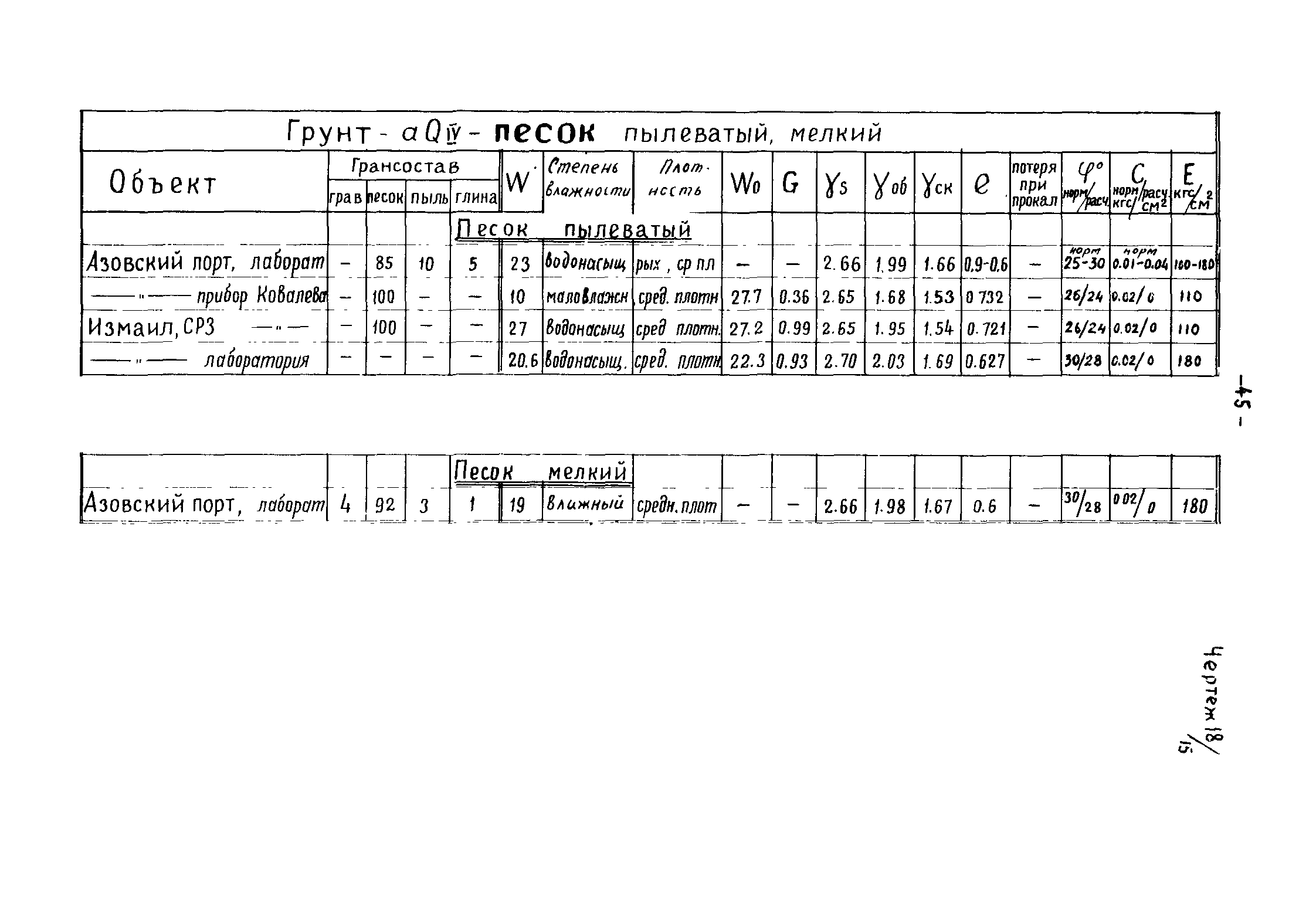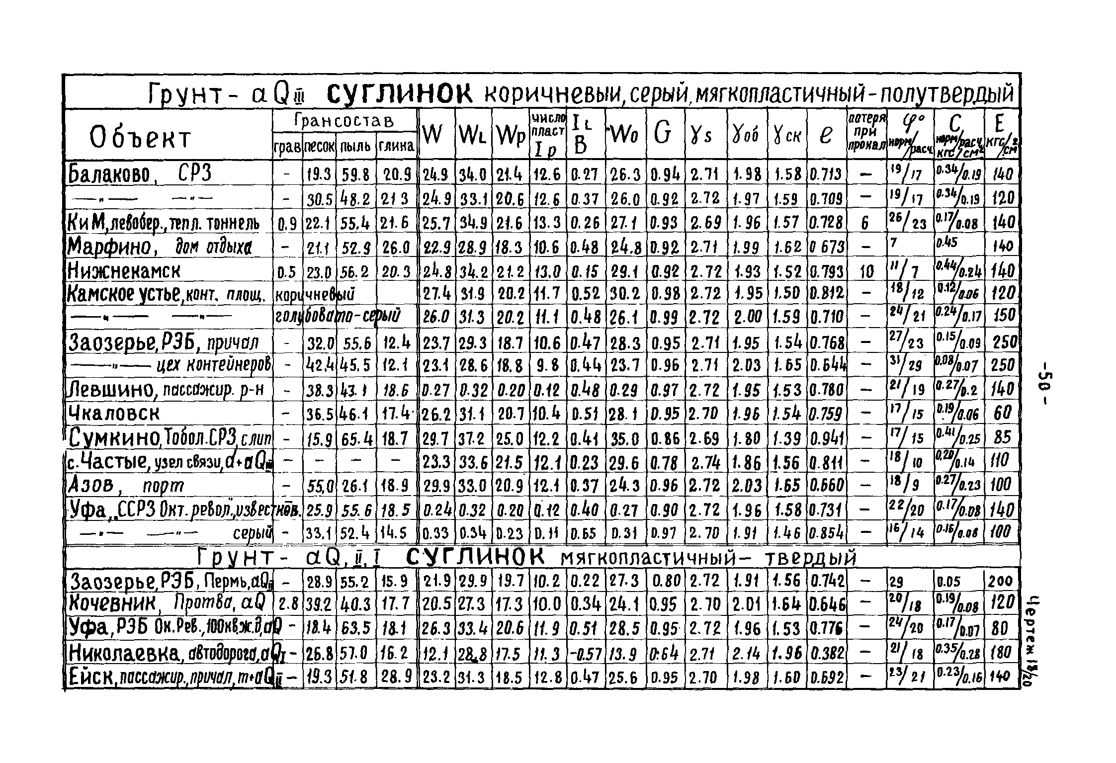 | Оглавление: | Введение 1. Геотехнические характеристики Формулы для расчета характеристик грунтов Песчаные грунты Глинистые грунты Физико-механические свойства грунтов по данным Гипроречтранса Насыпной грунт Торф Ил Современные аллювиальные отложения Грунты более раннего образования Физико-механические свойства скальных грунтов по данным справочника Ш.М.Шнайдера То же, по данным справочника техника-геолога Прочностные свойства скальных грунтов Украины Группы грунтов по трудности разработки их одноковшовым экскаватором Распределение грунтов по группам при разработке их плавучими земснарядами и гидромониторами 2. Просадочность грунтов Определение показателя просадочности П Определение коэффициента пористости, соответствующего влажности на границе текучести Расчетная схема вычисления просадки от бытового давления 3. Морозное пучение грунтов Схематическая карта нормативных глубин промерзания грунтов на территории СССР Пучение промерзающих грунтов и его влияние на фундаменты сооружений Номограмма для определения величины морозного пучения элювиальных глинистых грунтов 4. Динамическое зондирование 5. Статическое зондирование 6. Коррозионная активность 7. Агрессивность среды 8. Гидрогеологические расчеты 9. Прогноз переработки берегов Условные обозначения на геолого-литологических разрезах Основные условия применения шпунтовых и свайных конструкций Основные условия применения гравитационных конструкций |