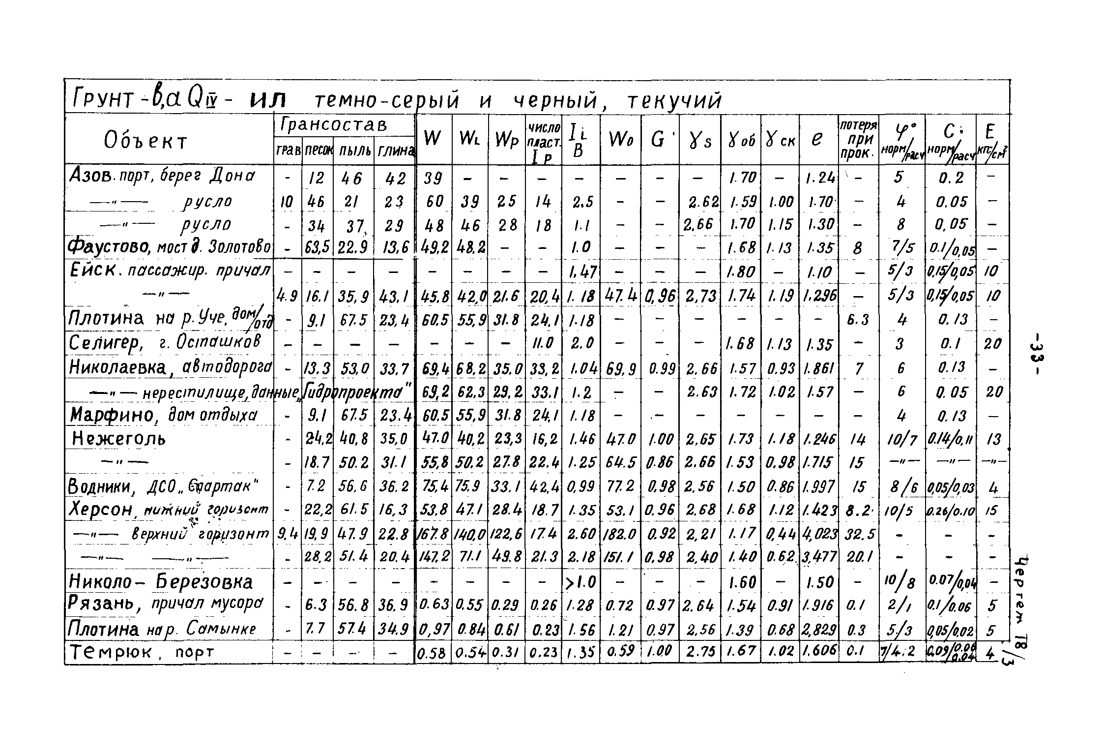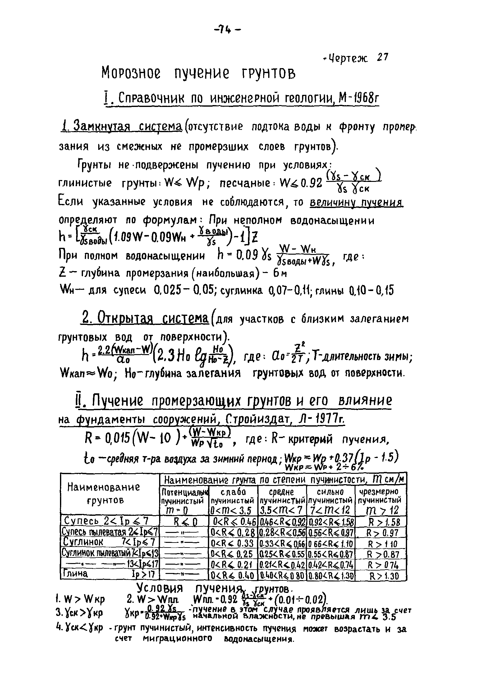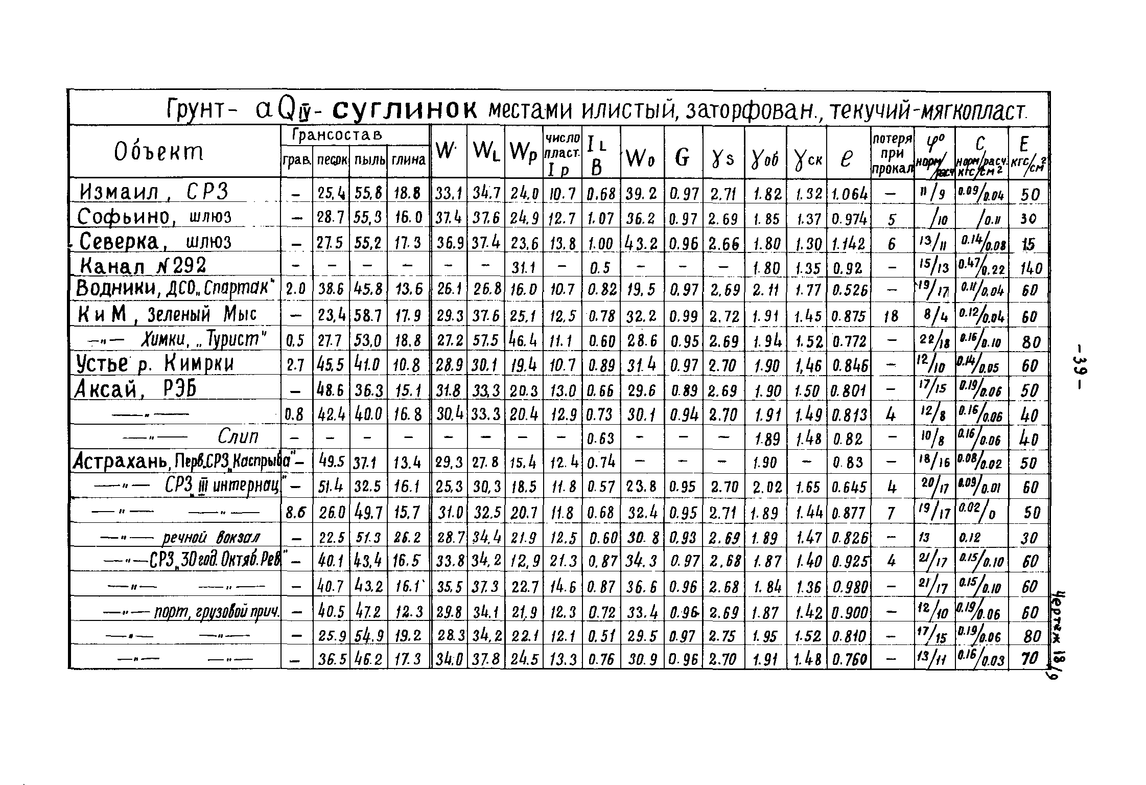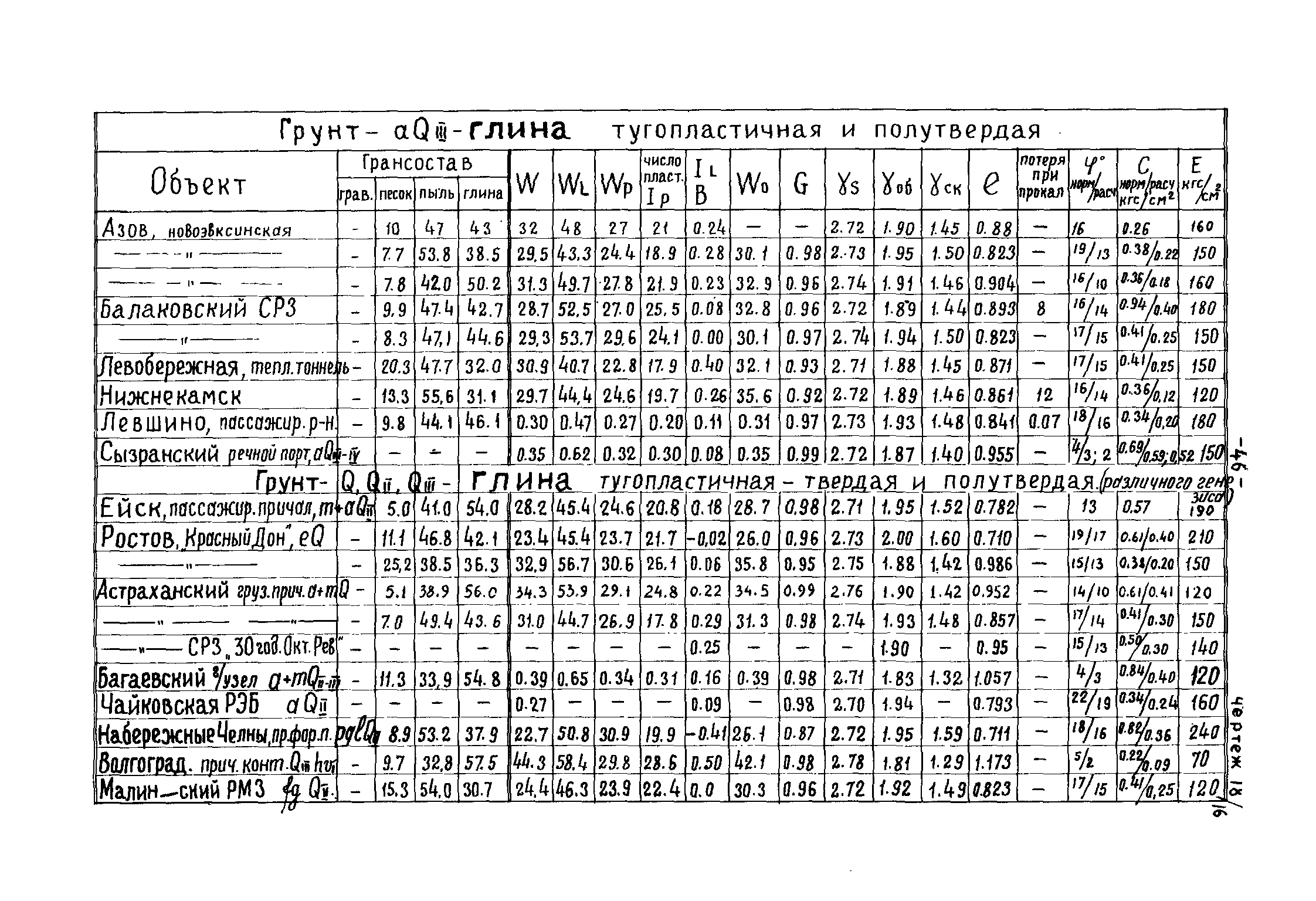 | Оглавление: | Введение 1. Геотехнические характеристики Формулы для расчета характеристик грунтов Песчаные грунты Глинистые грунты Физико-механические свойства грунтов по данным Гипроречтранса Насыпной грунт Торф Ил Современные аллювиальные отложения Грунты более раннего образования Физико-механические свойства скальных грунтов по данным справочника Ш.М.Шнайдера То же, по данным справочника техника-геолога Прочностные свойства скальных грунтов Украины Группы грунтов по трудности разработки их одноковшовым экскаватором Распределение грунтов по группам при разработке их плавучими земснарядами и гидромониторами 2. Просадочность грунтов Определение показателя просадочности П Определение коэффициента пористости, соответствующего влажности на границе текучести Расчетная схема вычисления просадки от бытового давления 3. Морозное пучение грунтов Схематическая карта нормативных глубин промерзания грунтов на территории СССР Пучение промерзающих грунтов и его влияние на фундаменты сооружений Номограмма для определения величины морозного пучения элювиальных глинистых грунтов 4. Динамическое зондирование 5. Статическое зондирование 6. Коррозионная активность 7. Агрессивность среды 8. Гидрогеологические расчеты 9. Прогноз переработки берегов Условные обозначения на геолого-литологических разрезах Основные условия применения шпунтовых и свайных конструкций Основные условия применения гравитационных конструкций |