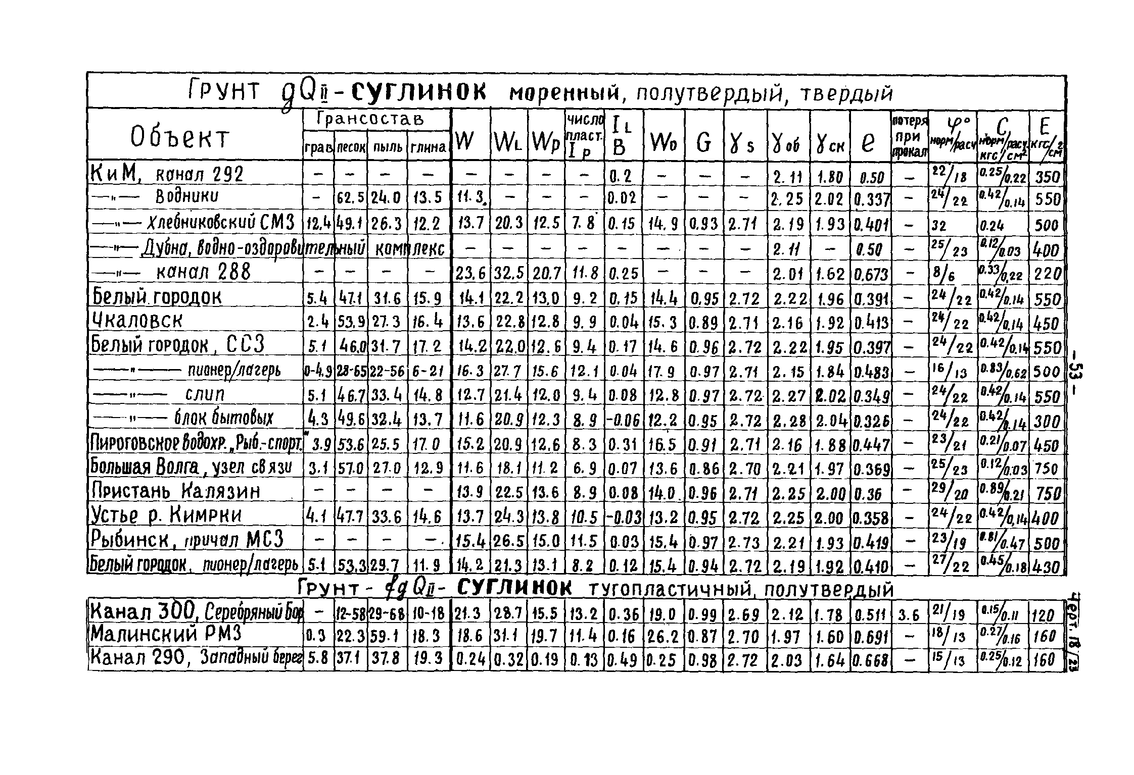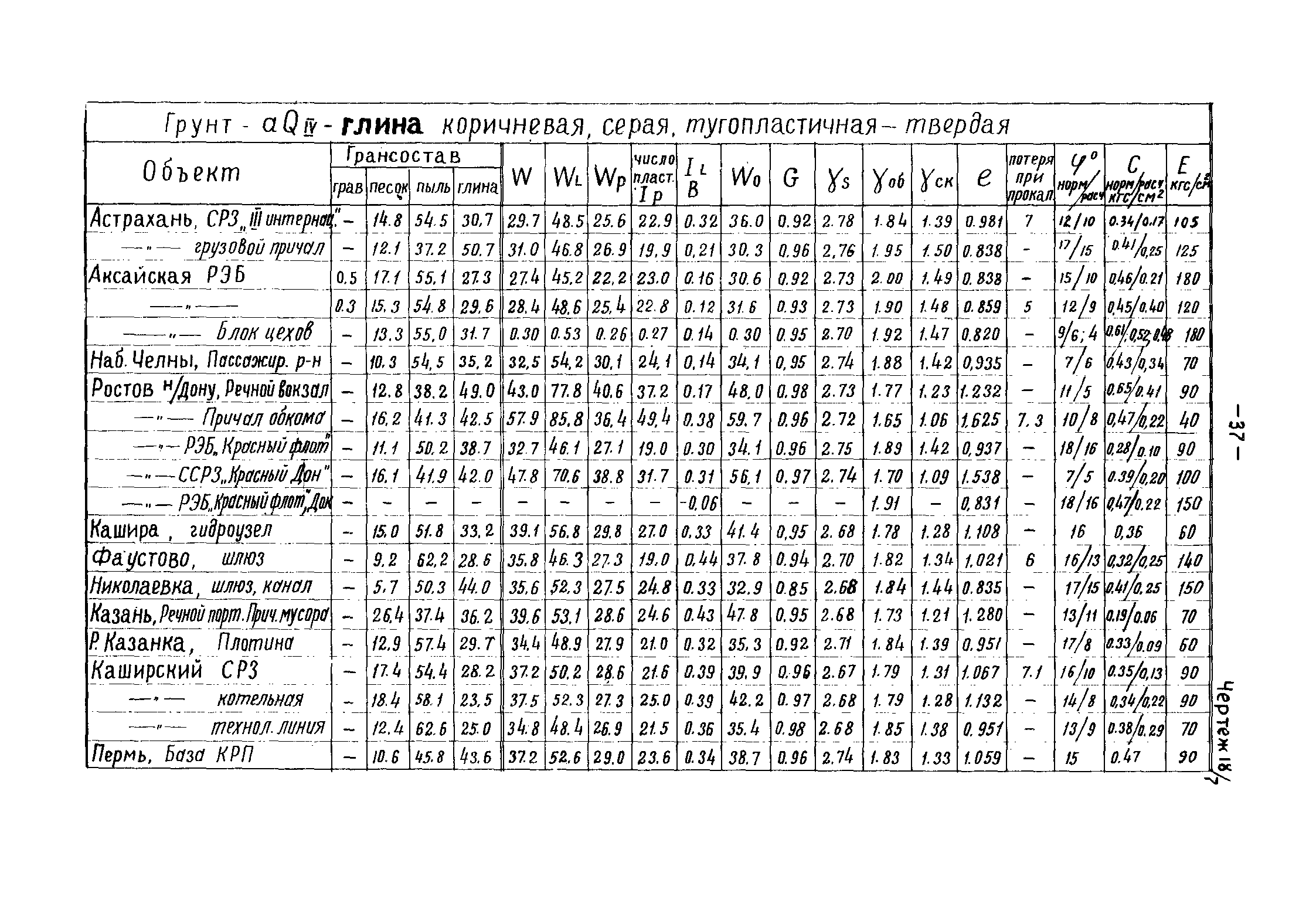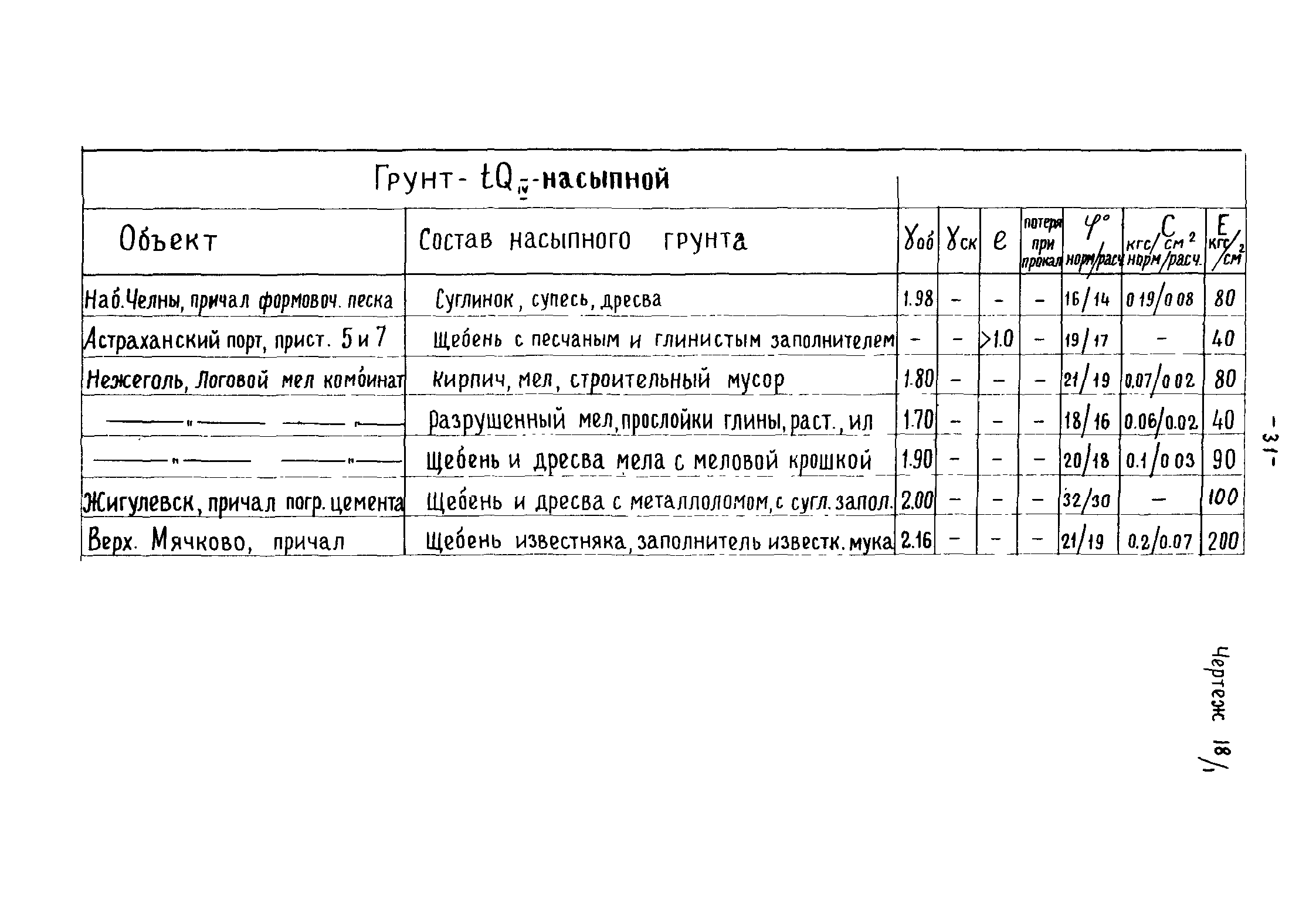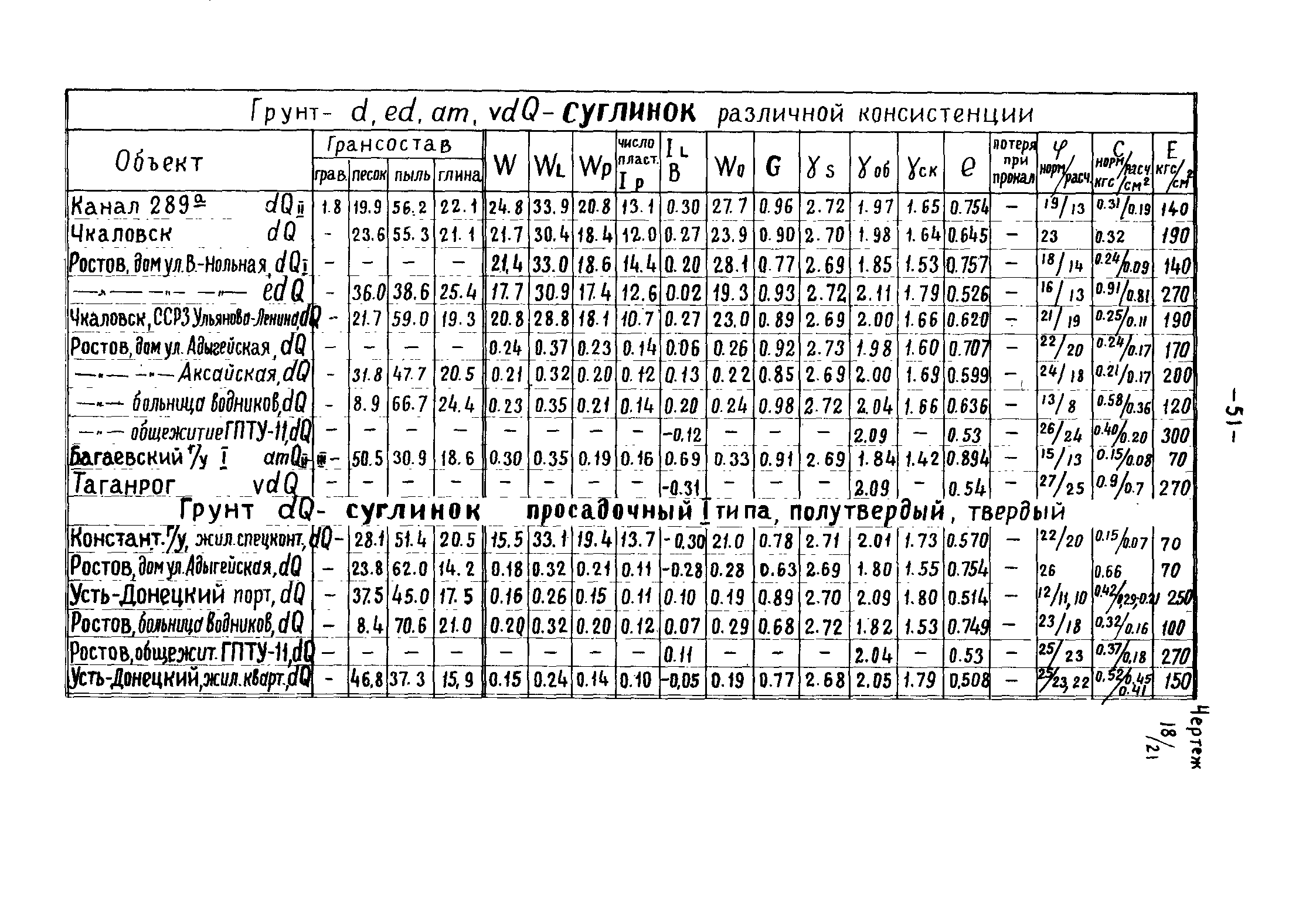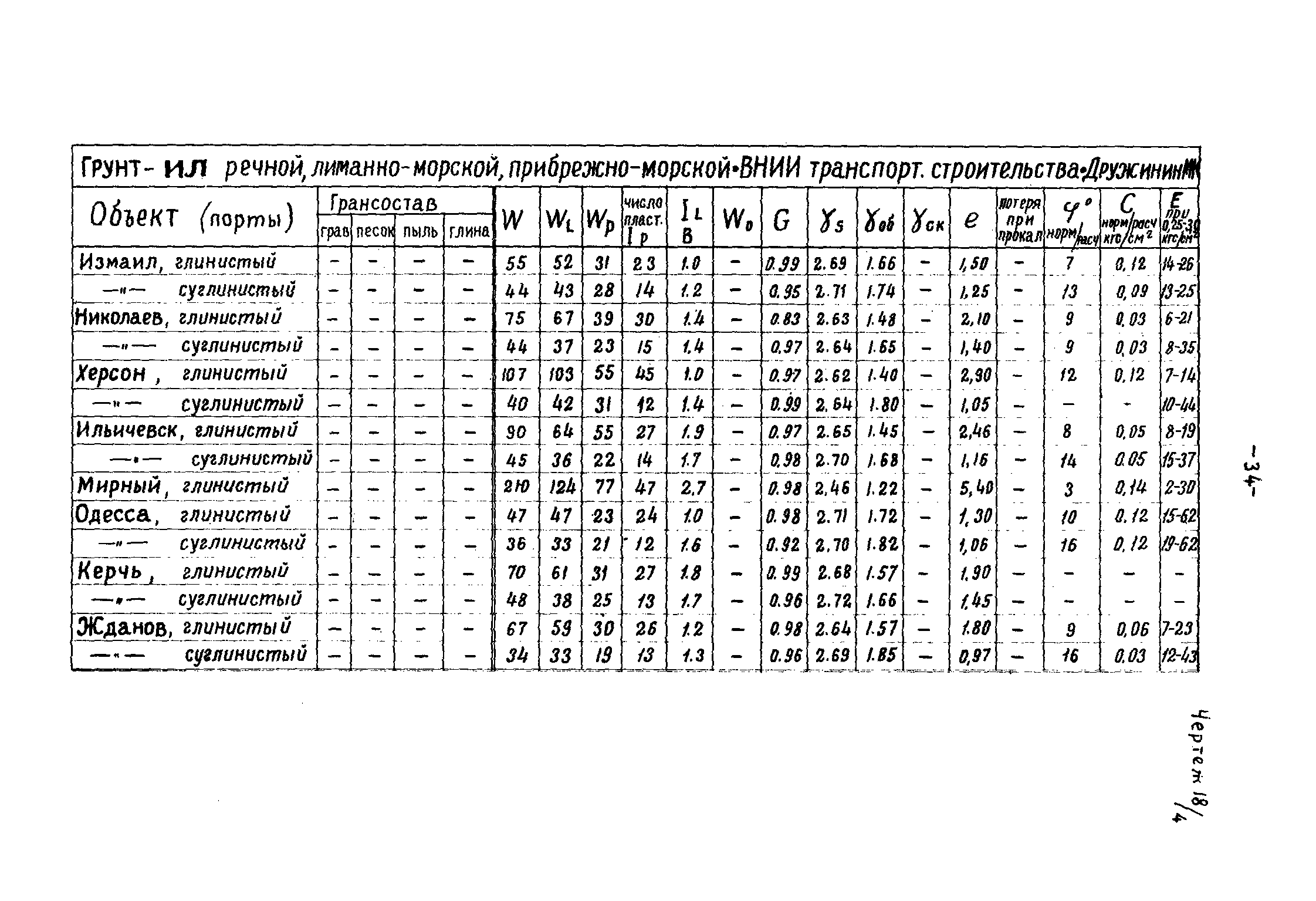 | Оглавление: | Введение 1. Геотехнические характеристики Формулы для расчета характеристик грунтов Песчаные грунты Глинистые грунты Физико-механические свойства грунтов по данным Гипроречтранса Насыпной грунт Торф Ил Современные аллювиальные отложения Грунты более раннего образования Физико-механические свойства скальных грунтов по данным справочника Ш.М.Шнайдера То же, по данным справочника техника-геолога Прочностные свойства скальных грунтов Украины Группы грунтов по трудности разработки их одноковшовым экскаватором Распределение грунтов по группам при разработке их плавучими земснарядами и гидромониторами 2. Просадочность грунтов Определение показателя просадочности П Определение коэффициента пористости, соответствующего влажности на границе текучести Расчетная схема вычисления просадки от бытового давления 3. Морозное пучение грунтов Схематическая карта нормативных глубин промерзания грунтов на территории СССР Пучение промерзающих грунтов и его влияние на фундаменты сооружений Номограмма для определения величины морозного пучения элювиальных глинистых грунтов 4. Динамическое зондирование 5. Статическое зондирование 6. Коррозионная активность 7. Агрессивность среды 8. Гидрогеологические расчеты 9. Прогноз переработки берегов Условные обозначения на геолого-литологических разрезах Основные условия применения шпунтовых и свайных конструкций Основные условия применения гравитационных конструкций |
