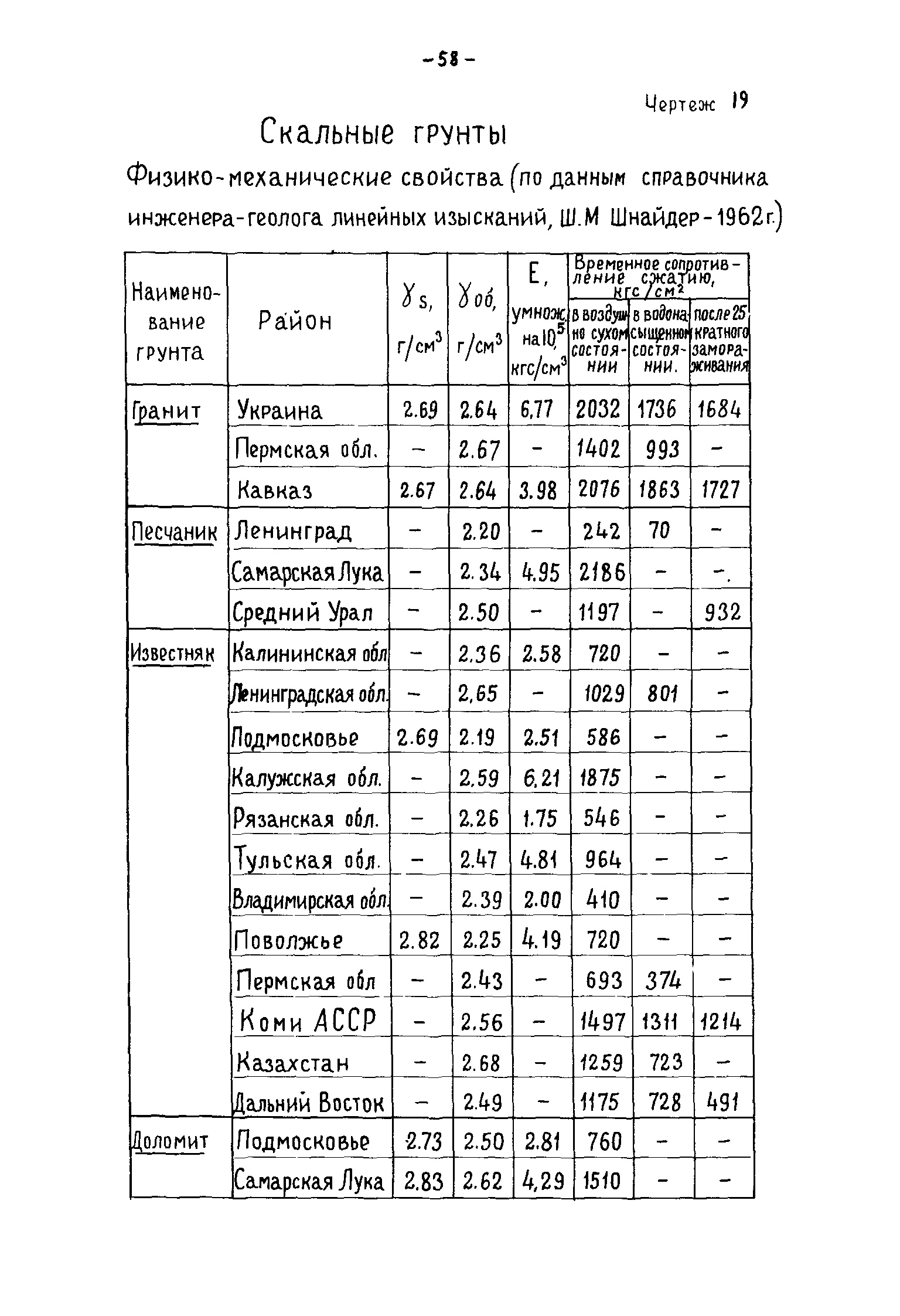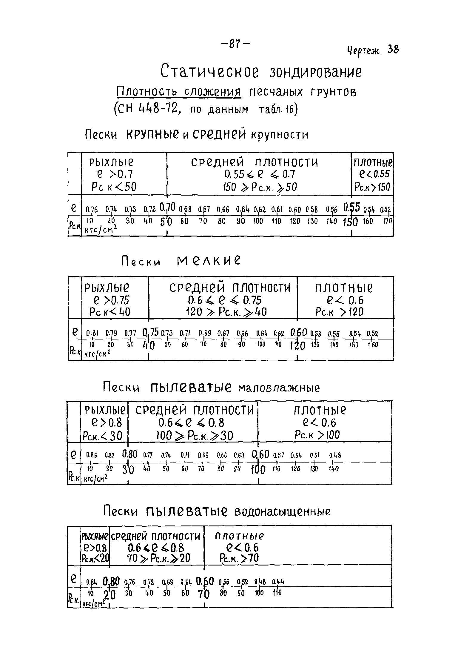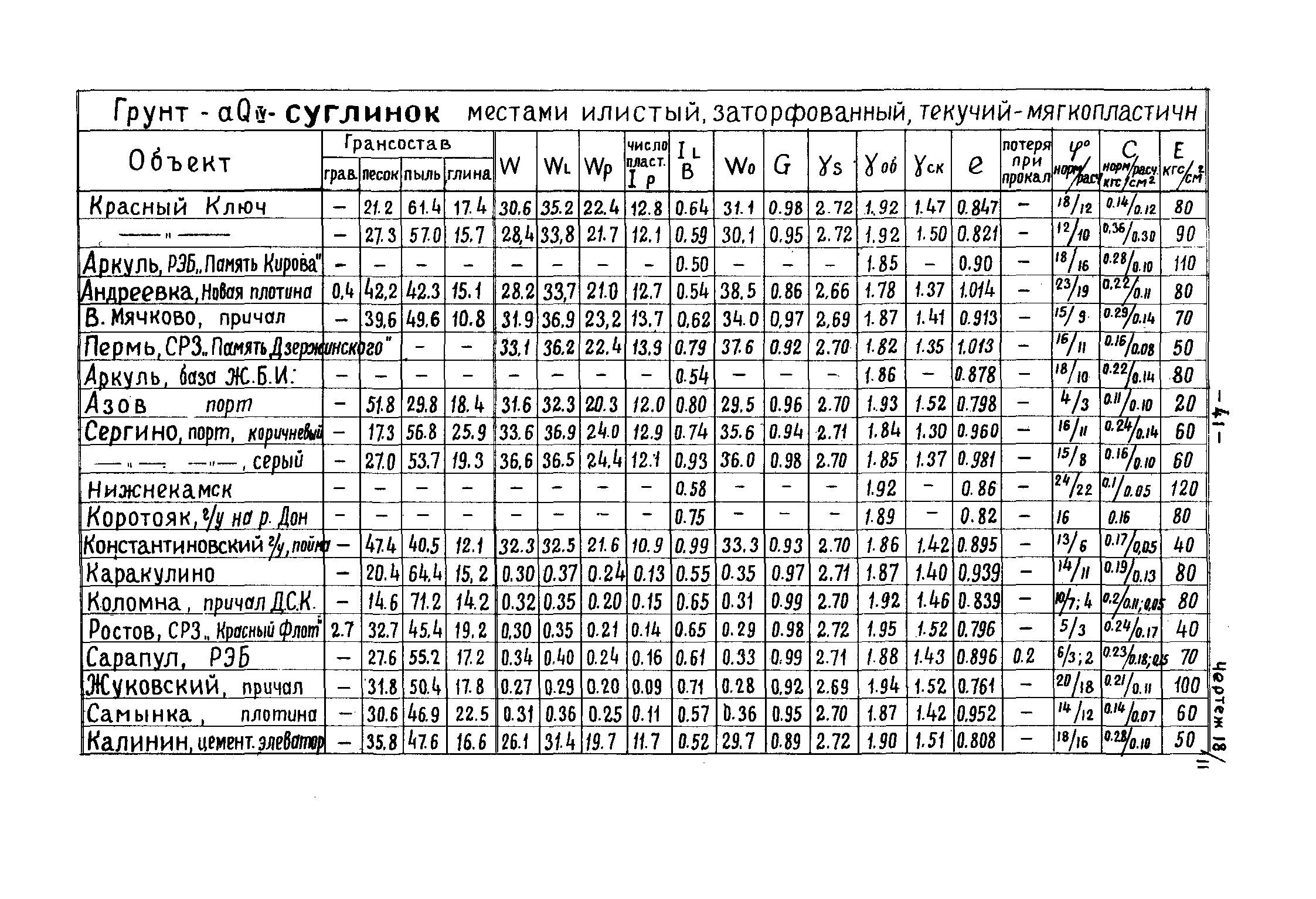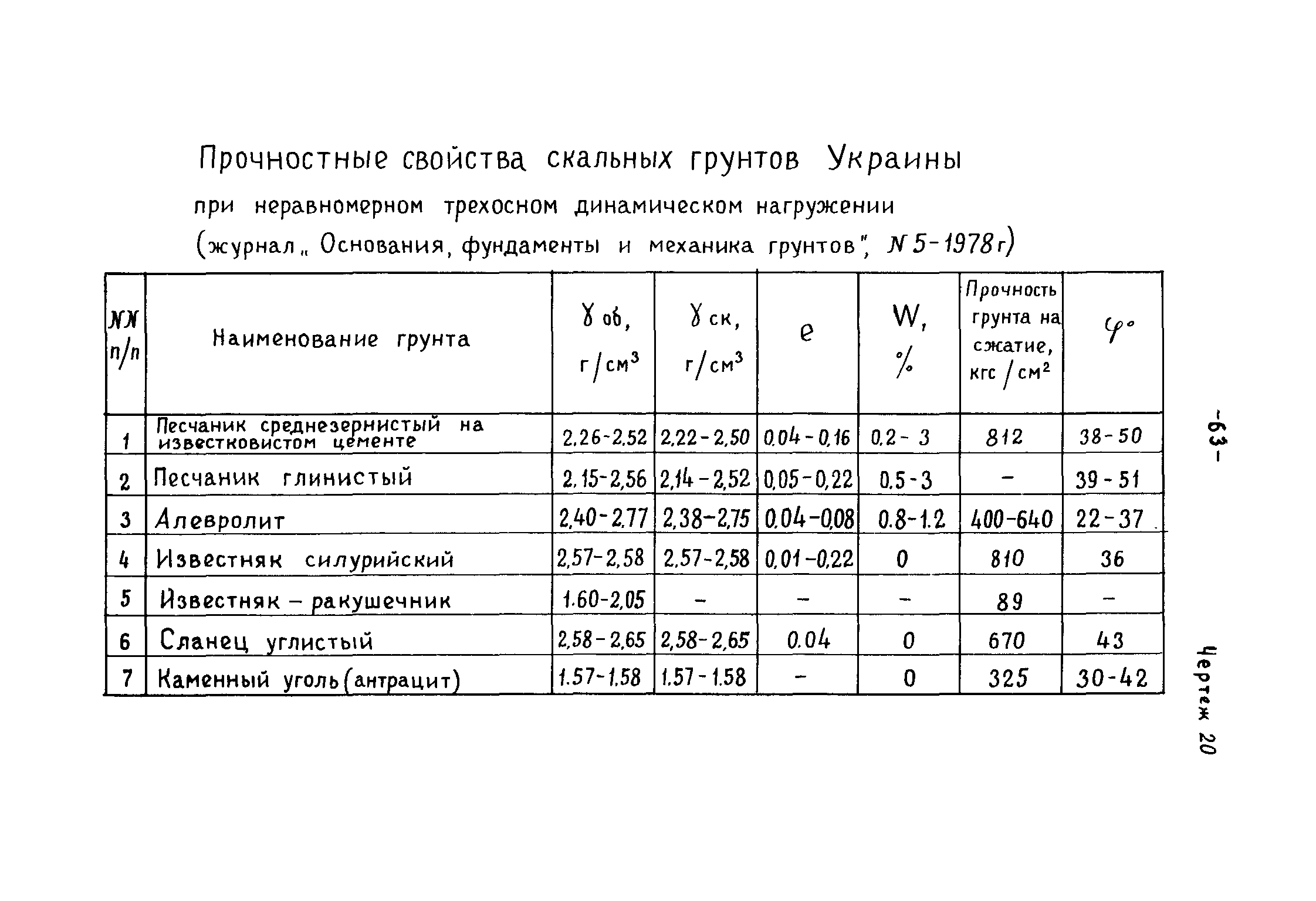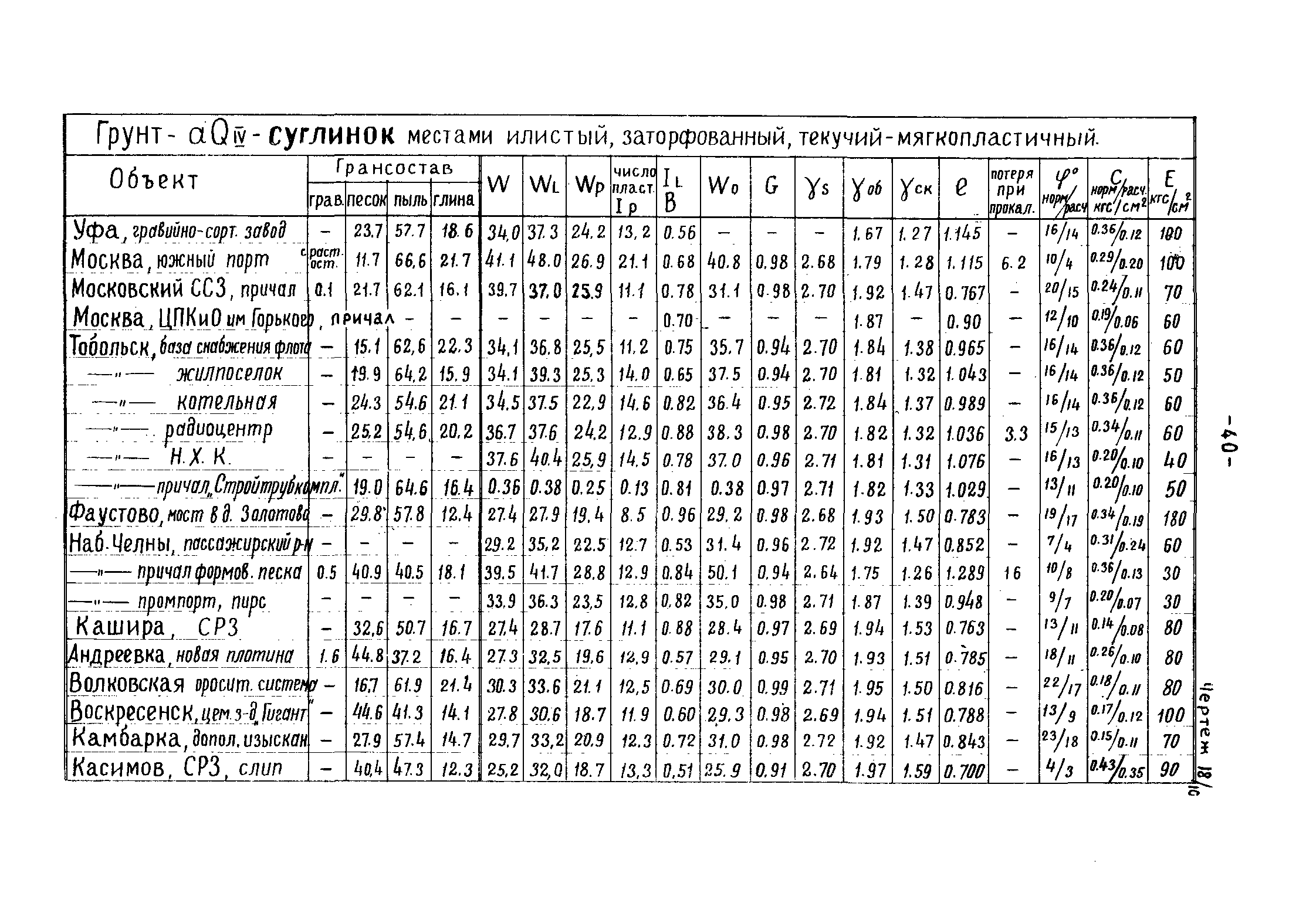| Оглавление: | Введение 1. Геотехнические характеристики Формулы для расчета характеристик грунтов Песчаные грунты Глинистые грунты Физико-механические свойства грунтов по данным Гипроречтранса Насыпной грунт Торф Ил Современные аллювиальные отложения Грунты более раннего образования Физико-механические свойства скальных грунтов по данным справочника Ш.М.Шнайдера То же, по данным справочника техника-геолога Прочностные свойства скальных грунтов Украины Группы грунтов по трудности разработки их одноковшовым экскаватором Распределение грунтов по группам при разработке их плавучими земснарядами и гидромониторами 2. Просадочность грунтов Определение показателя просадочности П Определение коэффициента пористости, соответствующего влажности на границе текучести Расчетная схема вычисления просадки от бытового давления 3. Морозное пучение грунтов Схематическая карта нормативных глубин промерзания грунтов на территории СССР Пучение промерзающих грунтов и его влияние на фундаменты сооружений Номограмма для определения величины морозного пучения элювиальных глинистых грунтов 4. Динамическое зондирование 5. Статическое зондирование 6. Коррозионная активность 7. Агрессивность среды 8. Гидрогеологические расчеты 9. Прогноз переработки берегов Условные обозначения на геолого-литологических разрезах Основные условия применения шпунтовых и свайных конструкций Основные условия применения гравитационных конструкций |