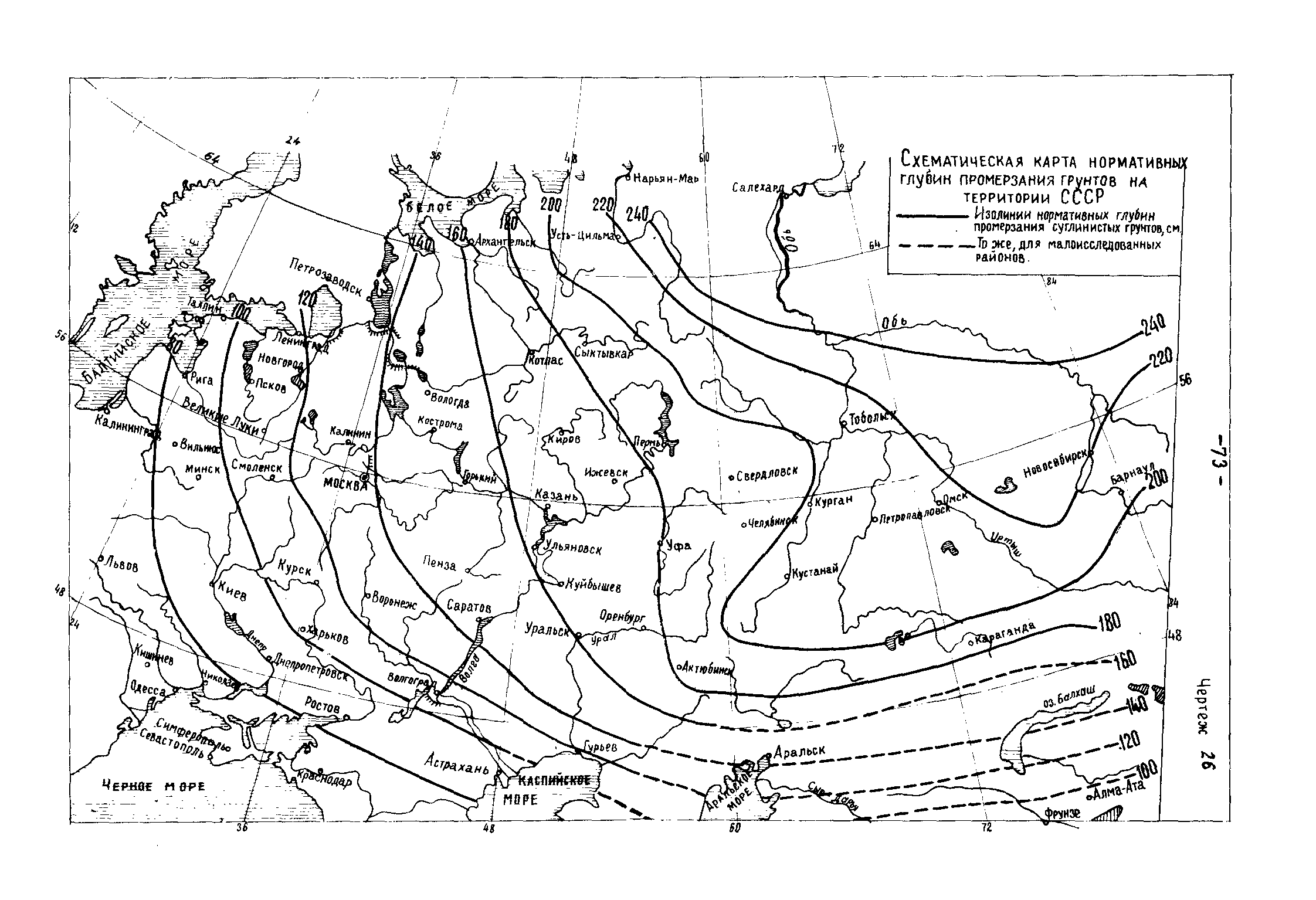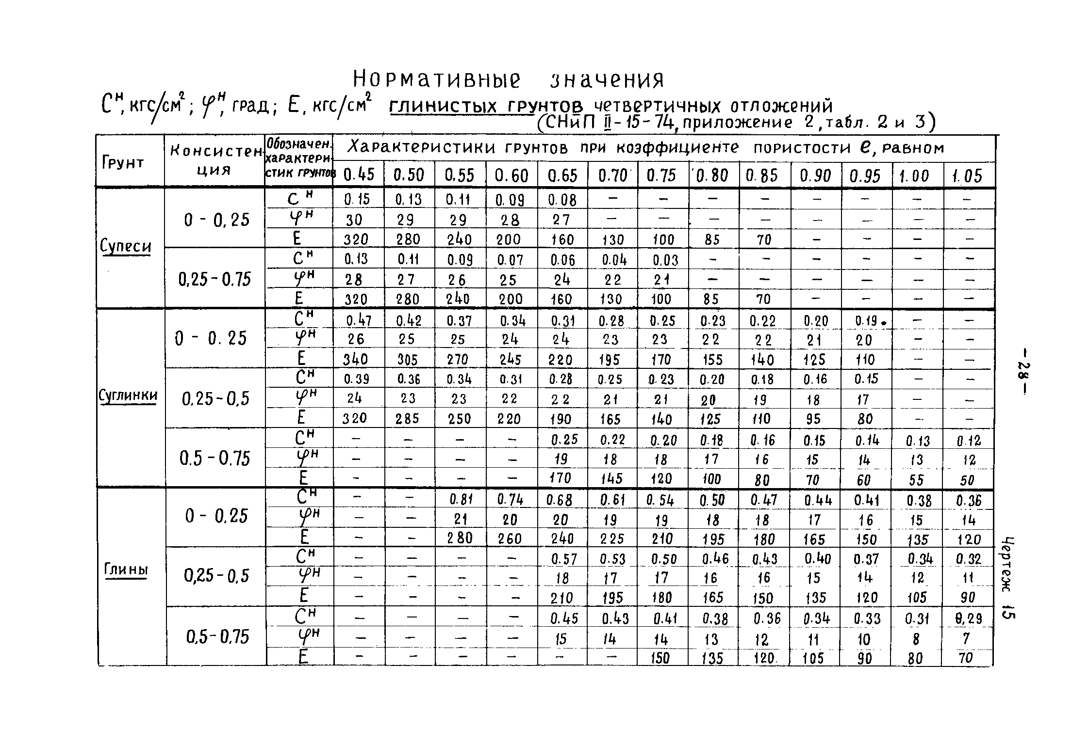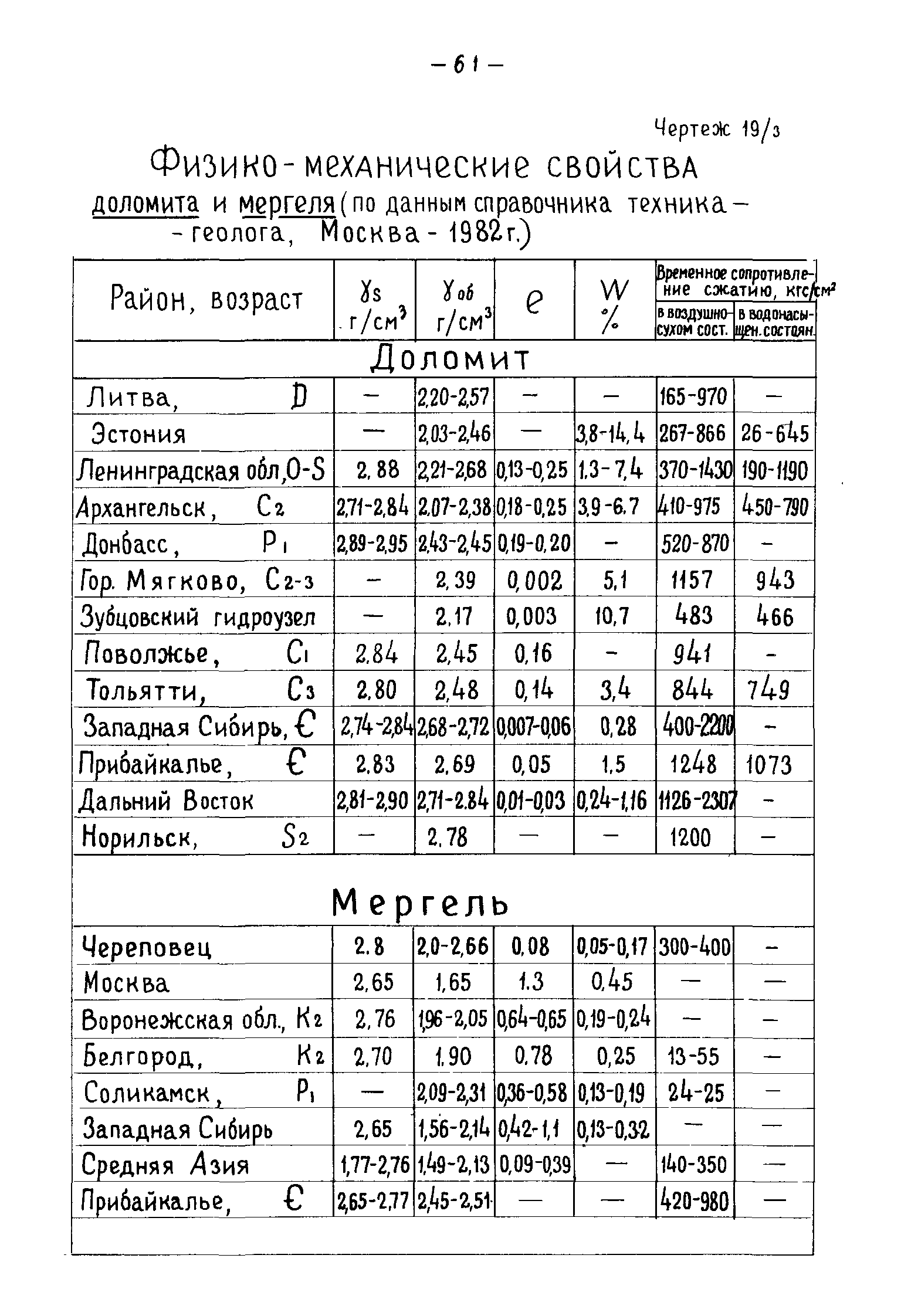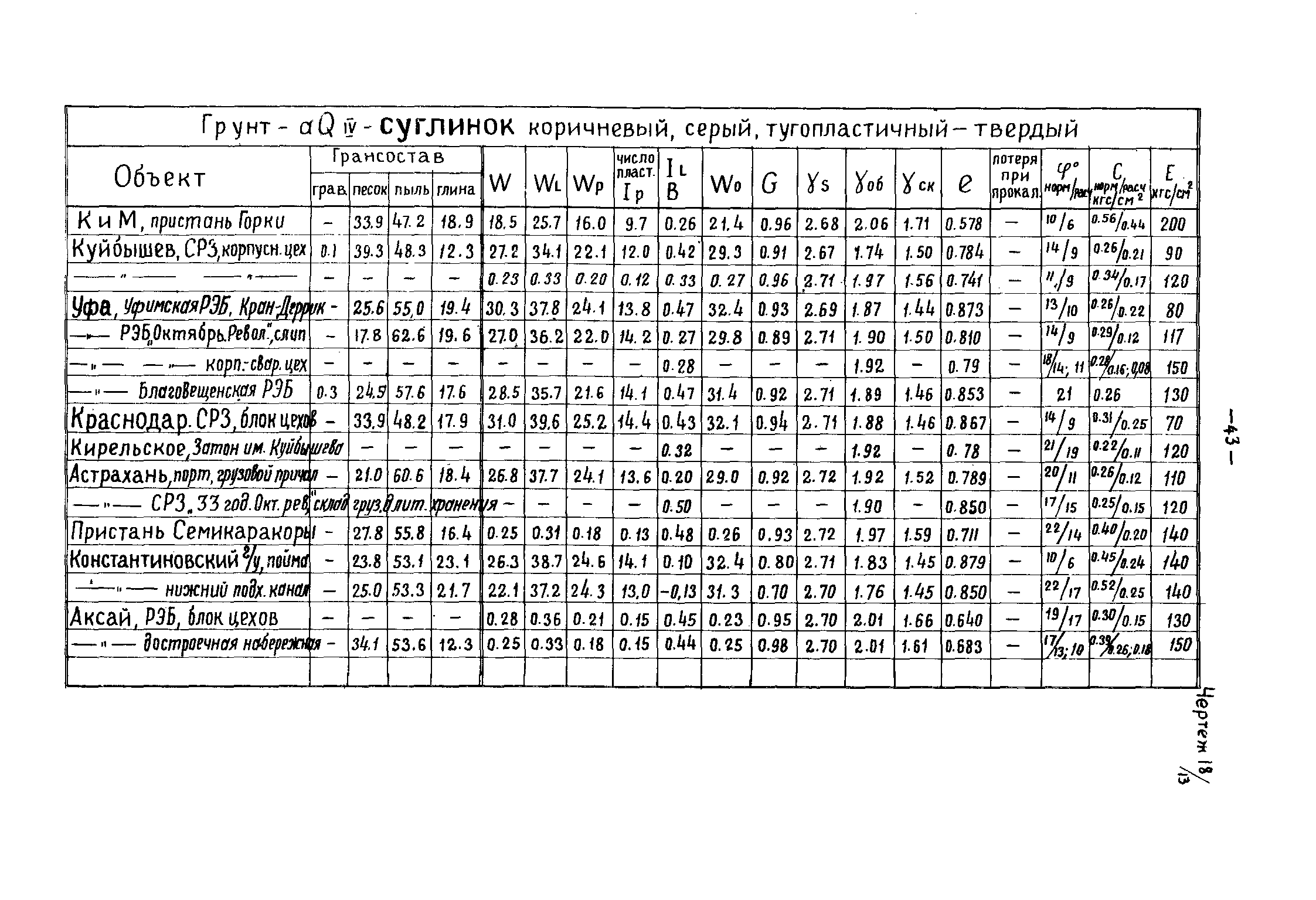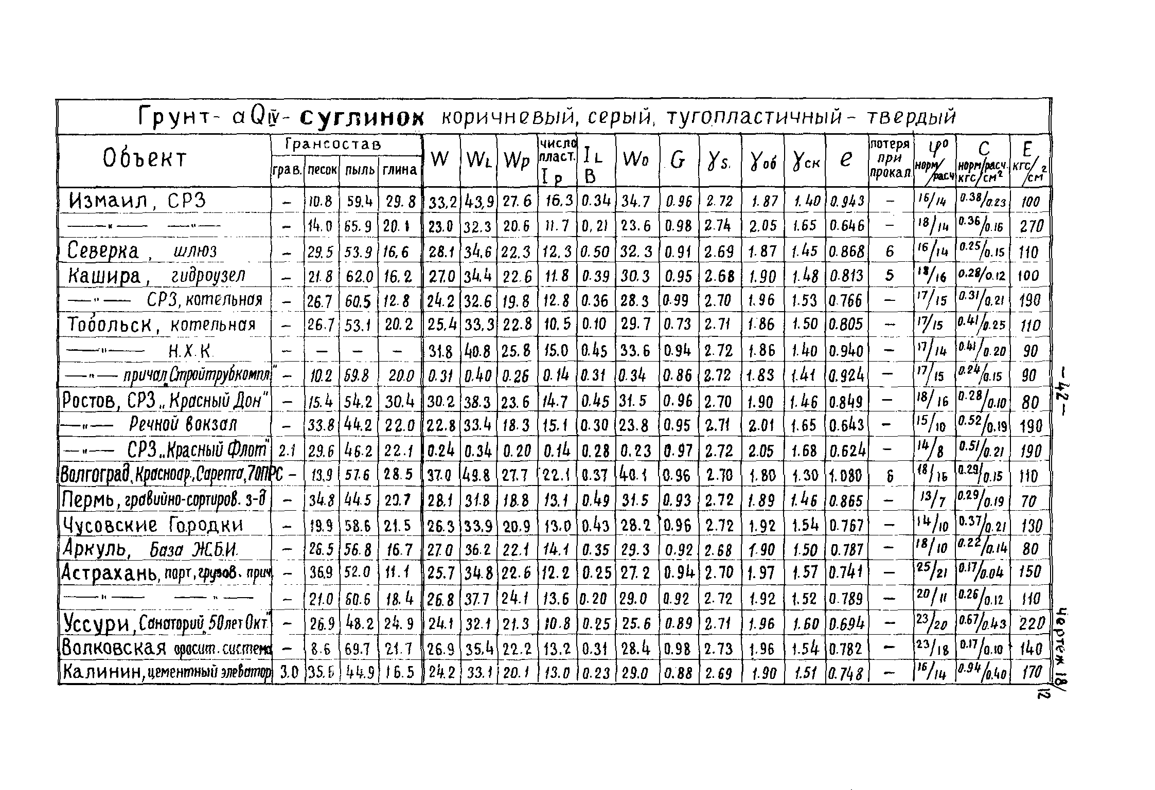 | Оглавление: | Введение 1. Геотехнические характеристики Формулы для расчета характеристик грунтов Песчаные грунты Глинистые грунты Физико-механические свойства грунтов по данным Гипроречтранса Насыпной грунт Торф Ил Современные аллювиальные отложения Грунты более раннего образования Физико-механические свойства скальных грунтов по данным справочника Ш.М.Шнайдера То же, по данным справочника техника-геолога Прочностные свойства скальных грунтов Украины Группы грунтов по трудности разработки их одноковшовым экскаватором Распределение грунтов по группам при разработке их плавучими земснарядами и гидромониторами 2. Просадочность грунтов Определение показателя просадочности П Определение коэффициента пористости, соответствующего влажности на границе текучести Расчетная схема вычисления просадки от бытового давления 3. Морозное пучение грунтов Схематическая карта нормативных глубин промерзания грунтов на территории СССР Пучение промерзающих грунтов и его влияние на фундаменты сооружений Номограмма для определения величины морозного пучения элювиальных глинистых грунтов 4. Динамическое зондирование 5. Статическое зондирование 6. Коррозионная активность 7. Агрессивность среды 8. Гидрогеологические расчеты 9. Прогноз переработки берегов Условные обозначения на геолого-литологических разрезах Основные условия применения шпунтовых и свайных конструкций Основные условия применения гравитационных конструкций |