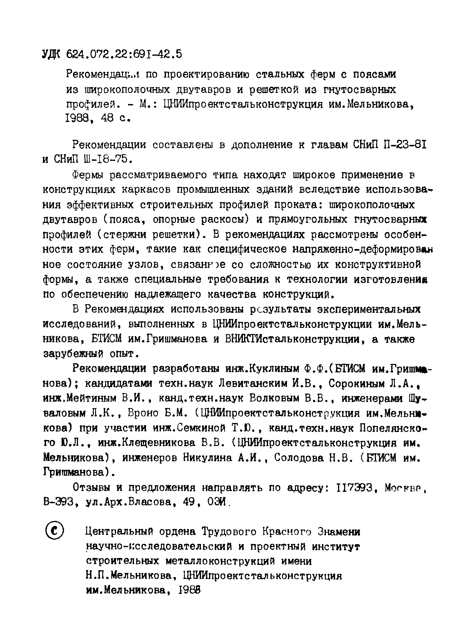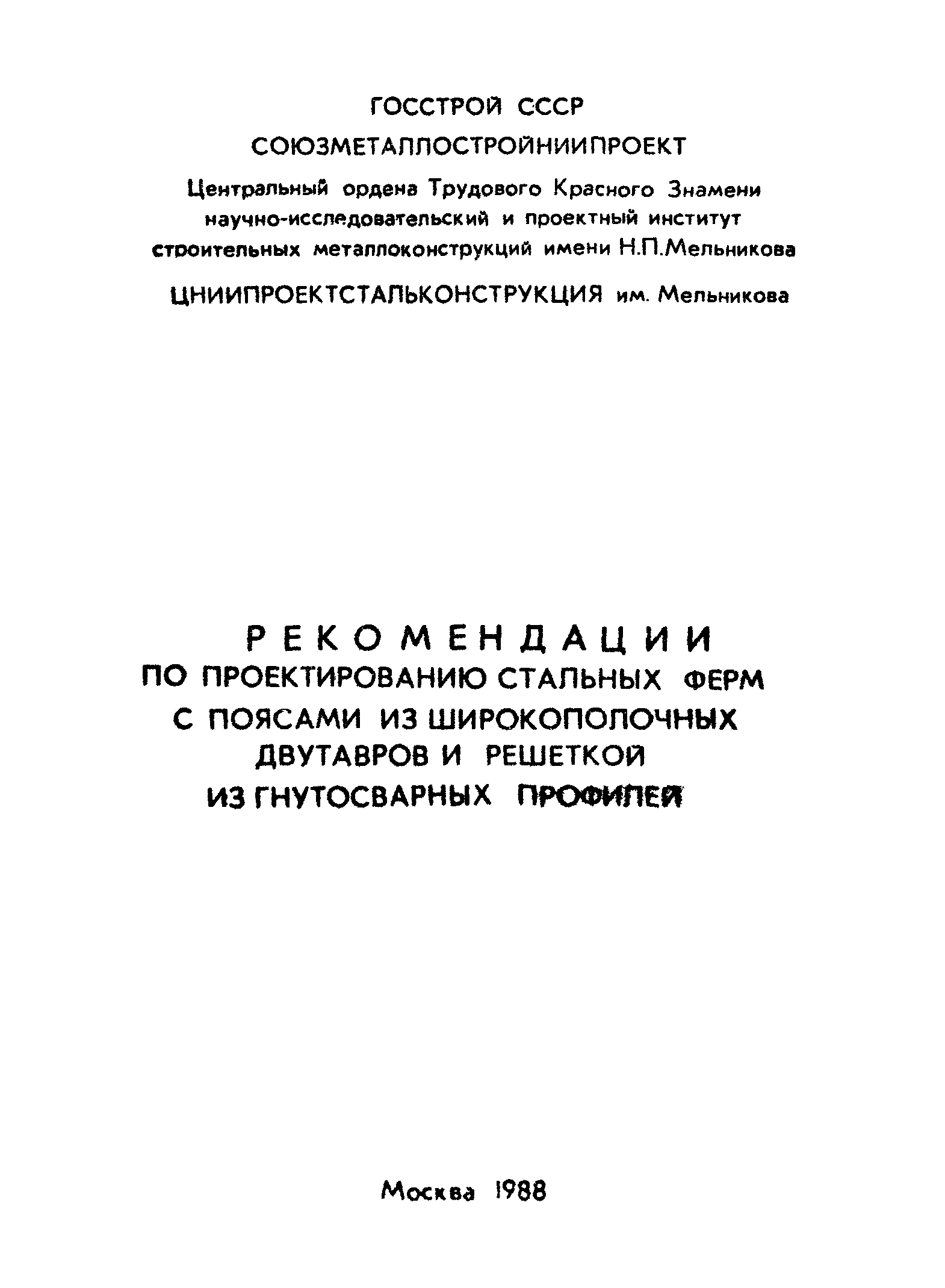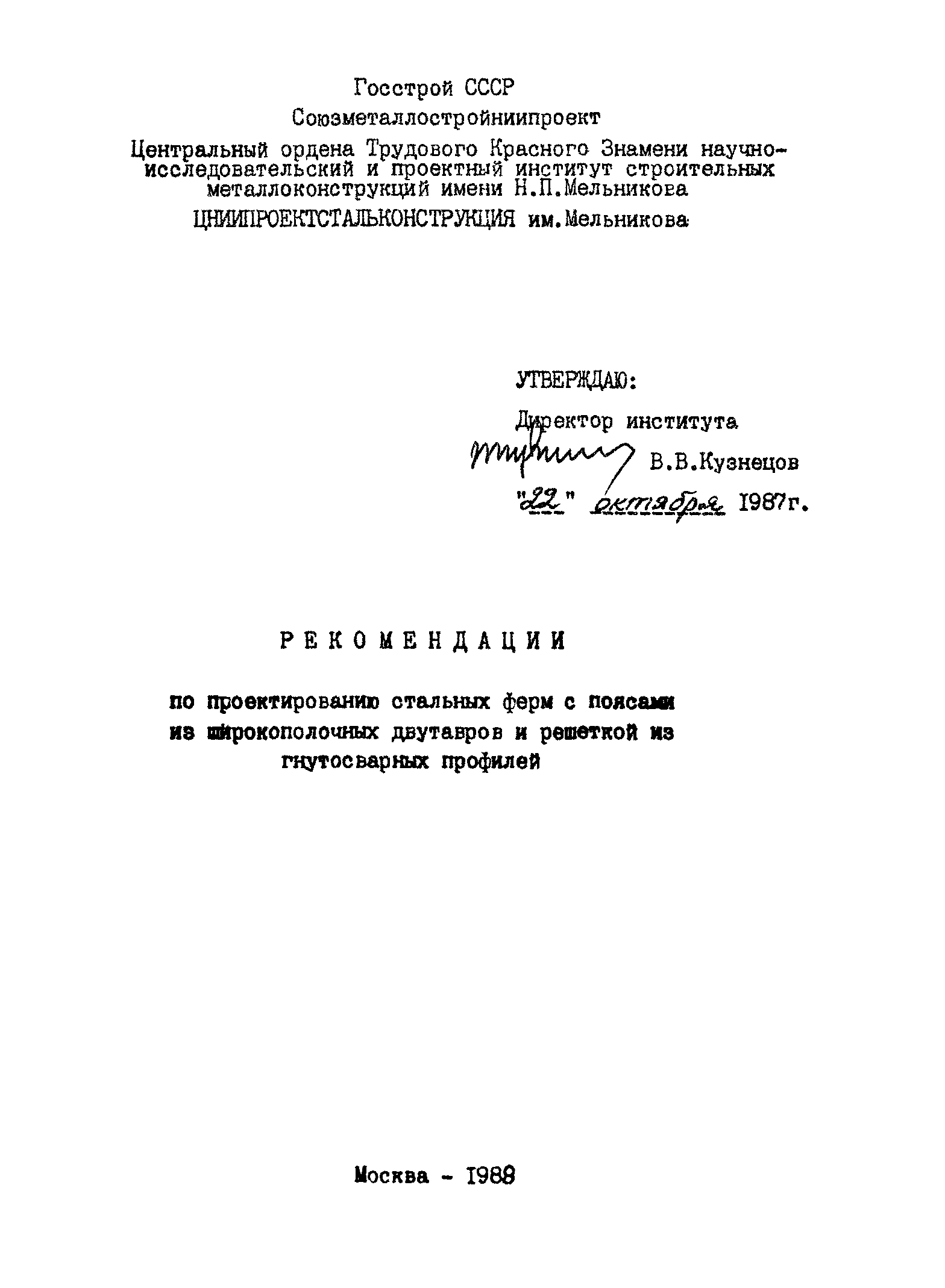 | Утверждён: | 22.10.1987 ЦНИИпроектстальконструкция им. Мельникова