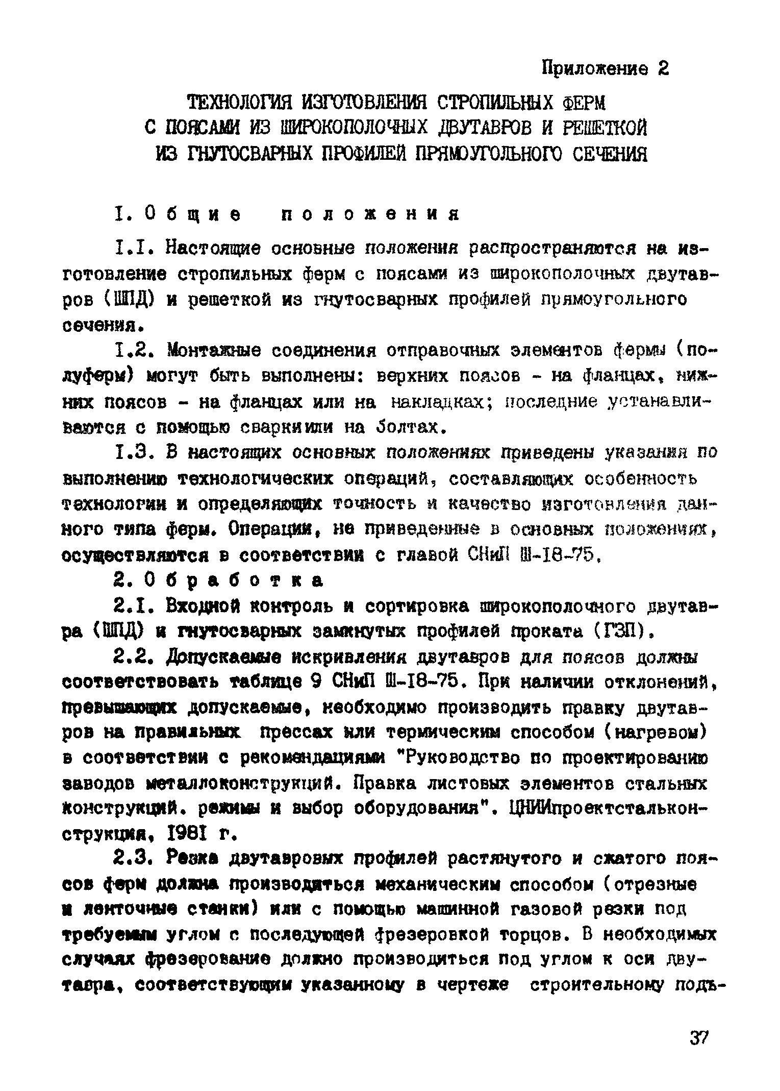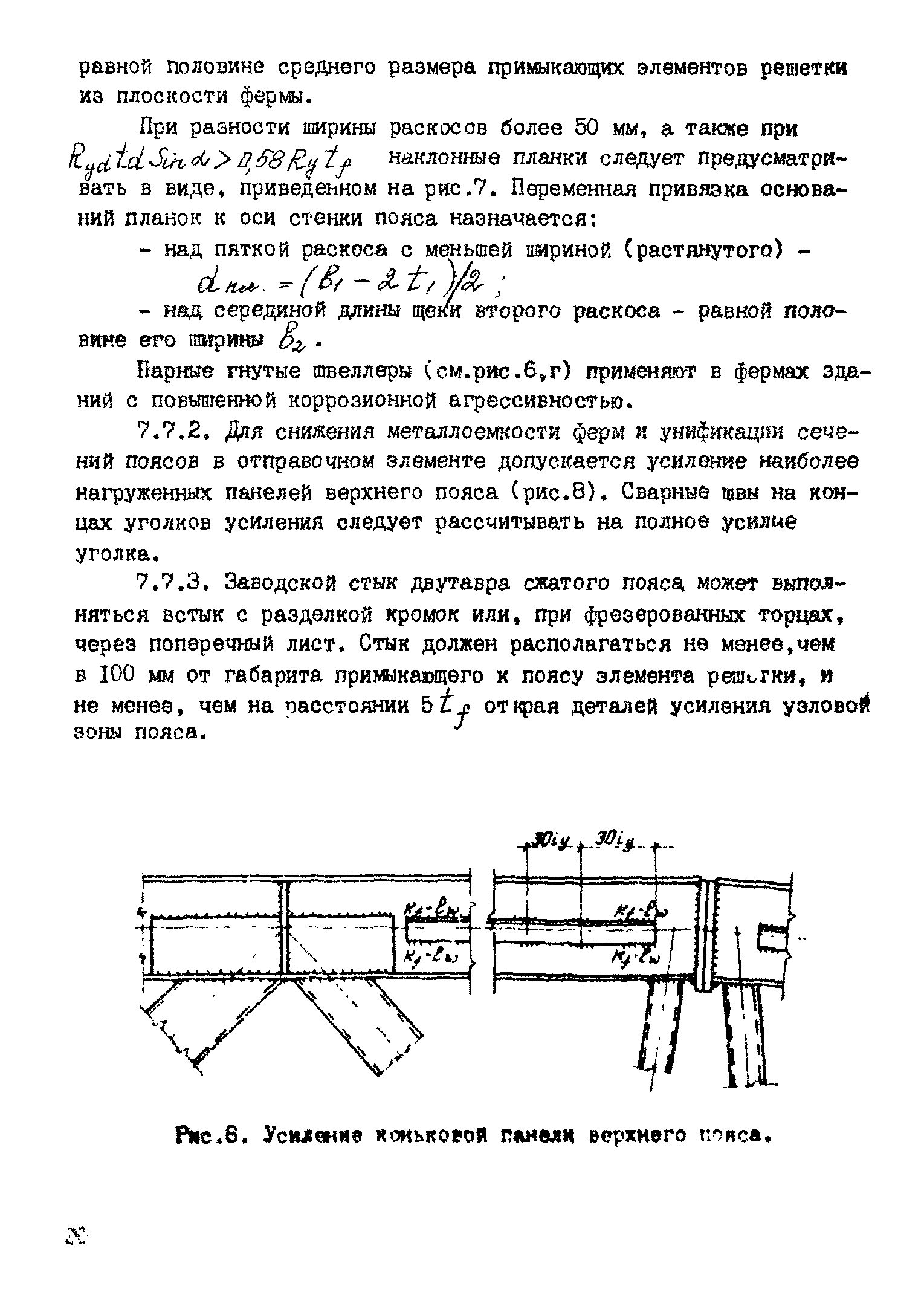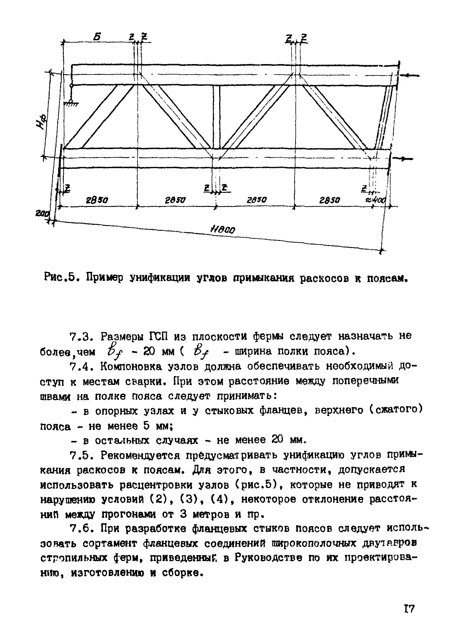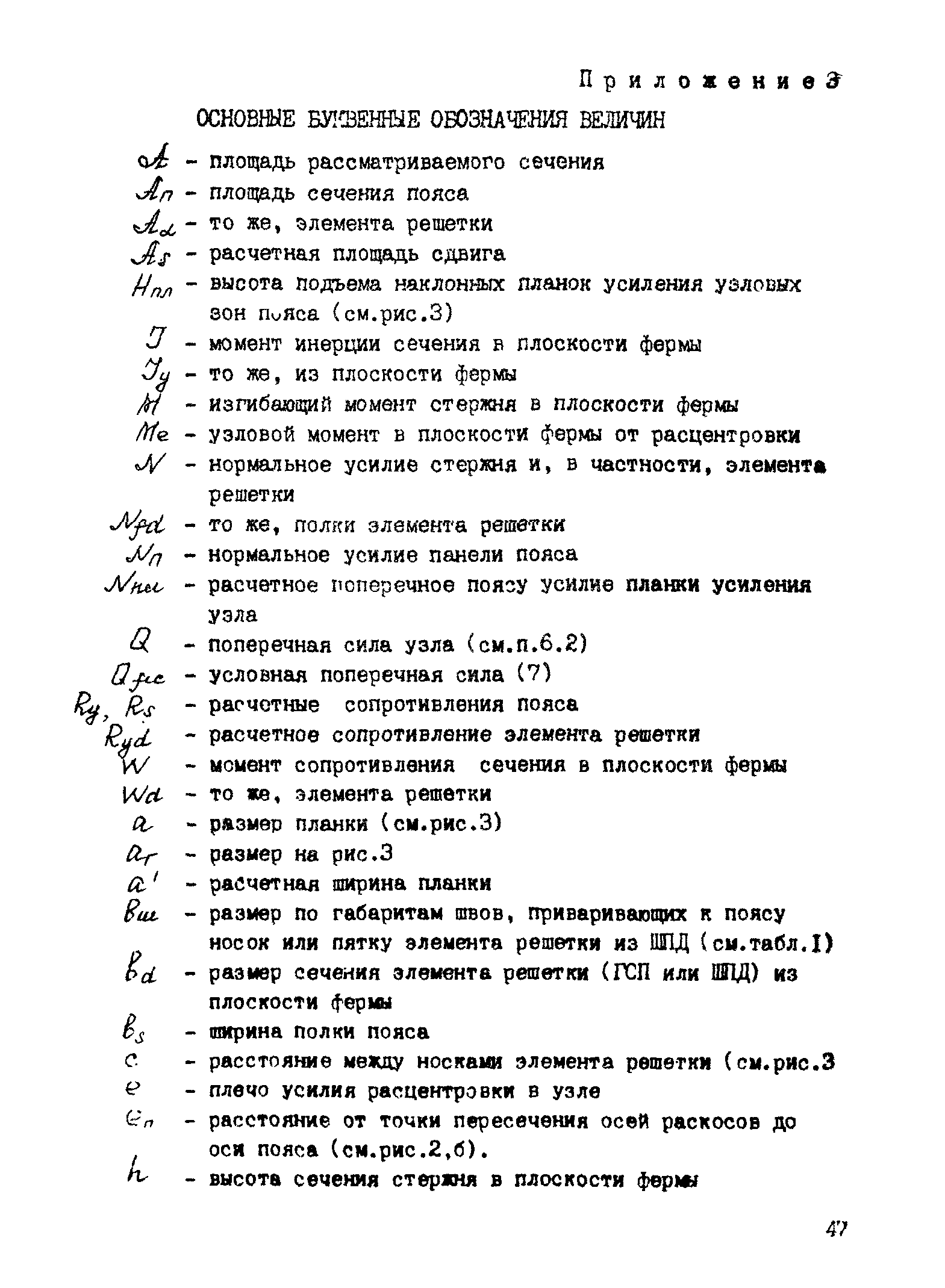 | Оглавление: | 1. Общие указания 2. Материалы и расчетные характеристики 3. Основные положения расчета 4. Расчет прочности стержней 5. Расчет устойчивости стержней 6. Расчет узлов 7. Рекомендации по конструированию 8. Сварные соединения 9. Дополнительные указания по технологии изготовления ферм Приложение 1. Пример статического расчета ферм Приложение 2. Технология изготовления стропильных ферм с поясами из широкополочных двутавров и решеткой из гнутосварных профилей прямоугольного сечения Приложение 3. Основные буквенные обозначения величин |
