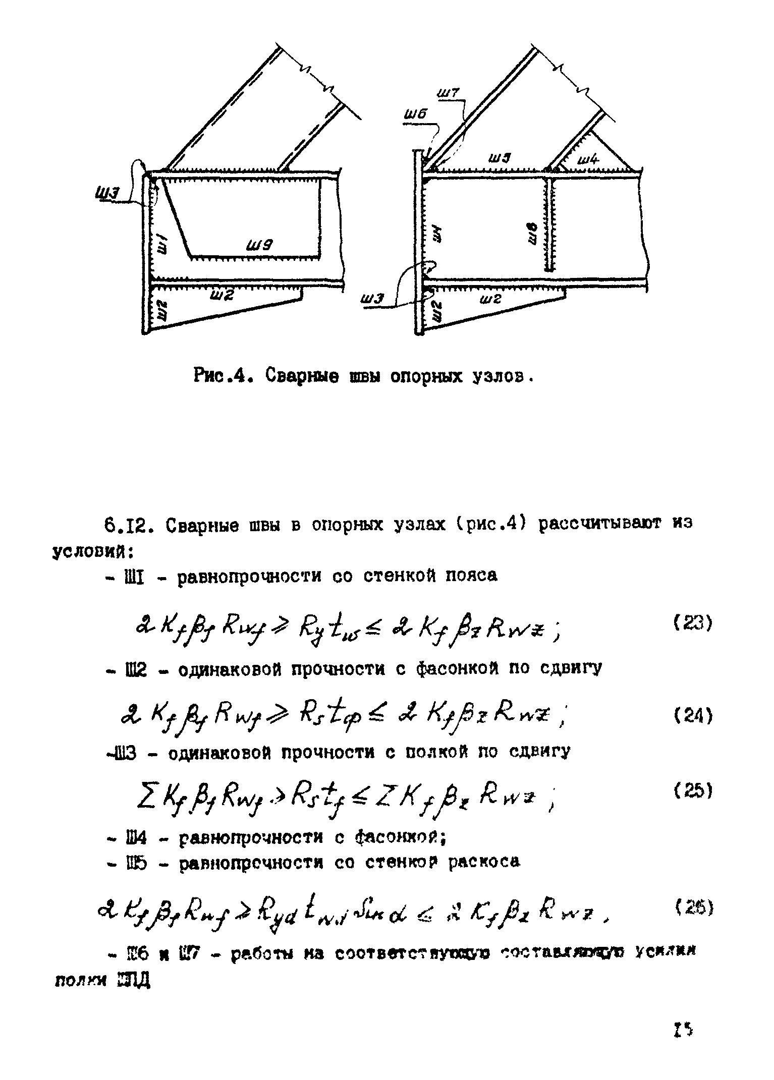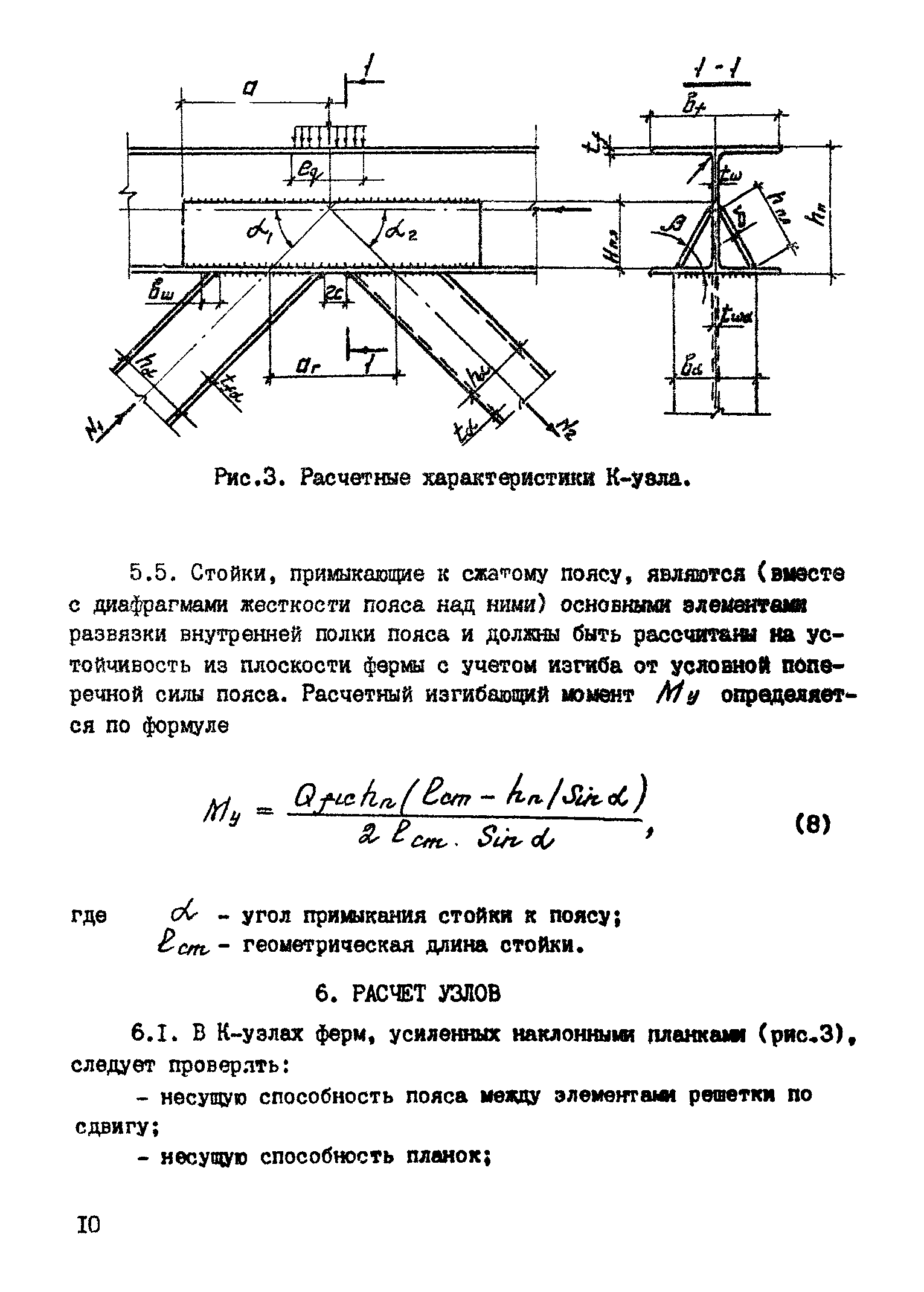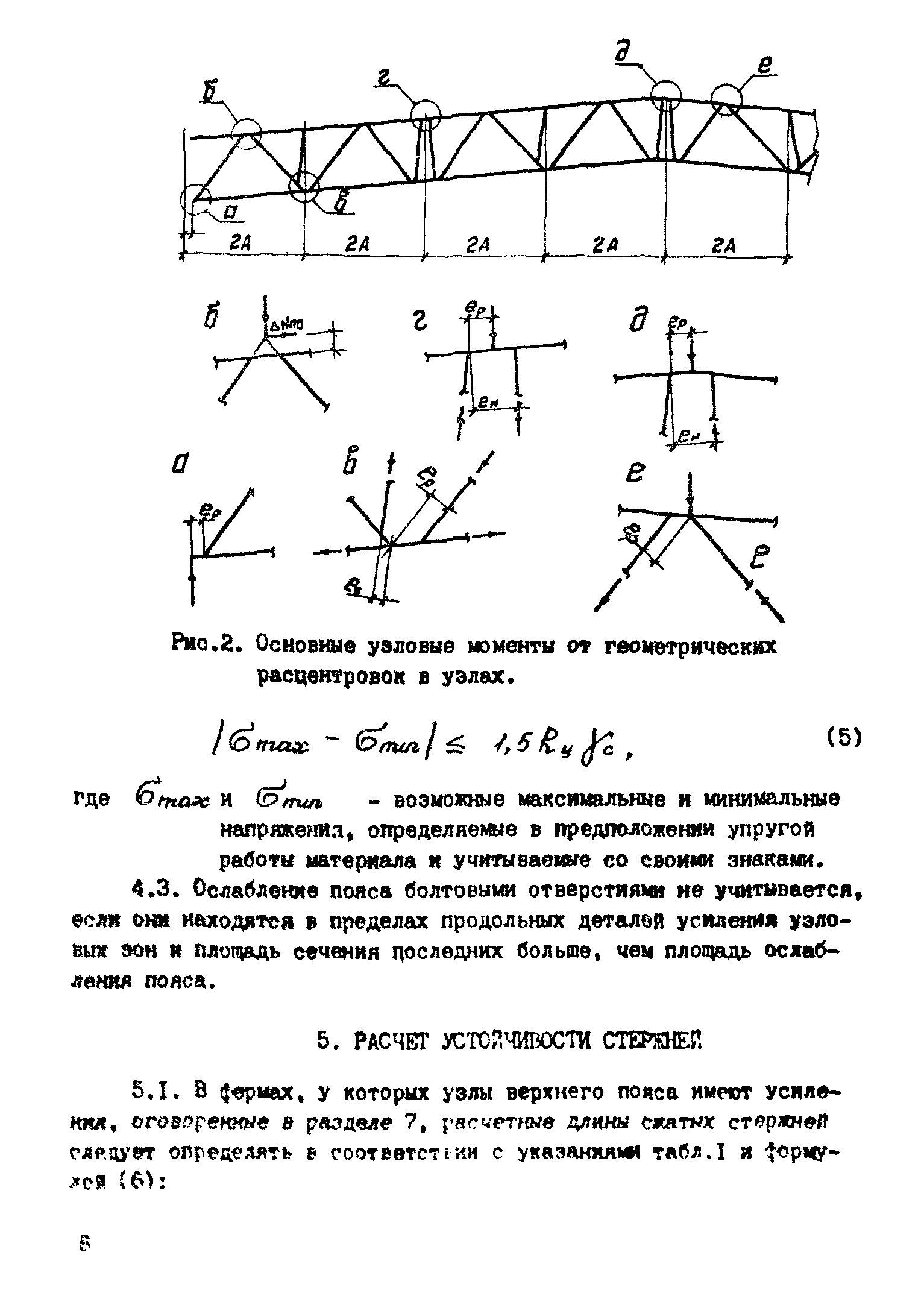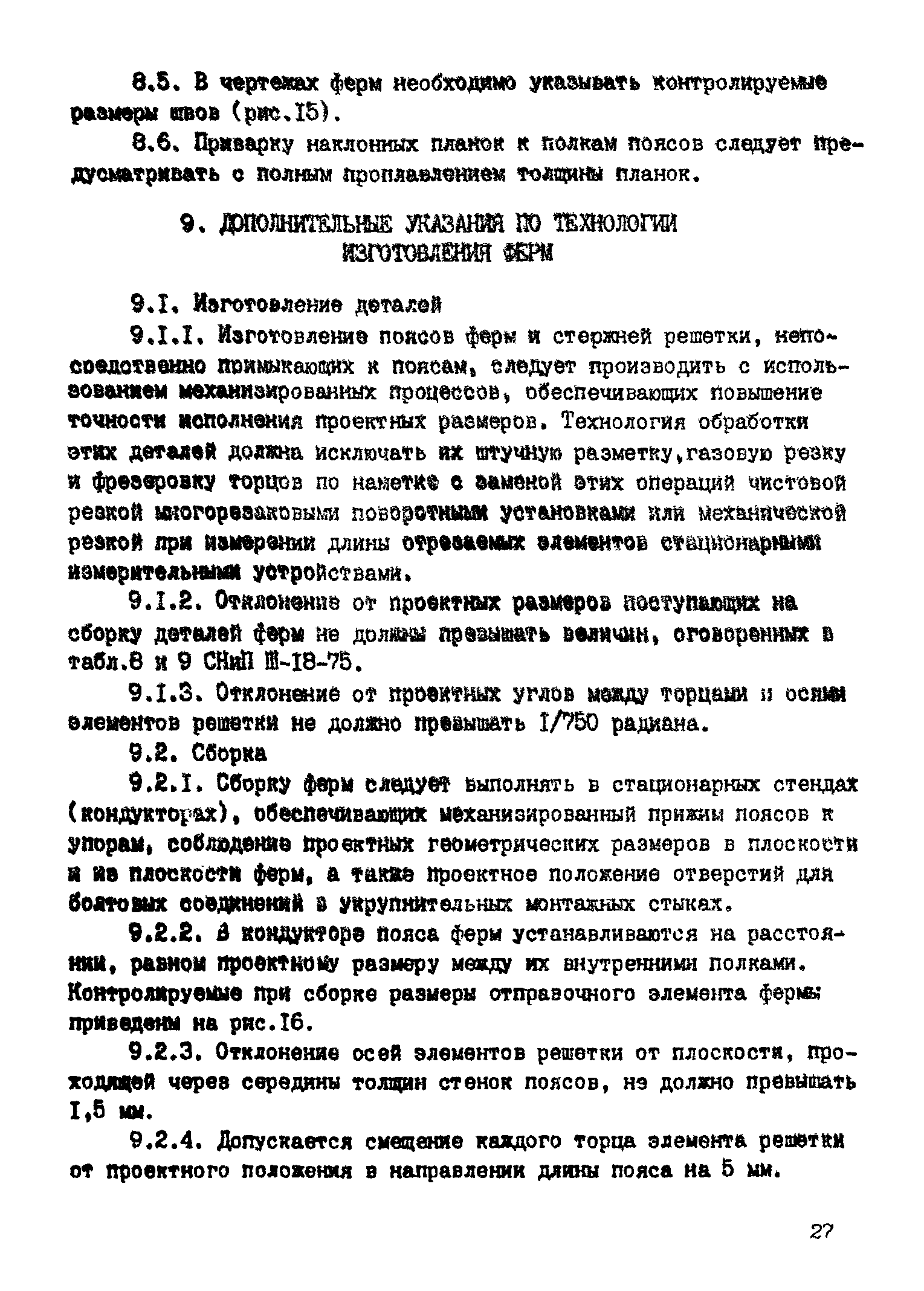 | Оглавление: | 1. Общие указания 2. Материалы и расчетные характеристики 3. Основные положения расчета 4. Расчет прочности стержней 5. Расчет устойчивости стержней 6. Расчет узлов 7. Рекомендации по конструированию 8. Сварные соединения 9. Дополнительные указания по технологии изготовления ферм Приложение 1. Пример статического расчета ферм Приложение 2. Технология изготовления стропильных ферм с поясами из широкополочных двутавров и решеткой из гнутосварных профилей прямоугольного сечения Приложение 3. Основные буквенные обозначения величин |