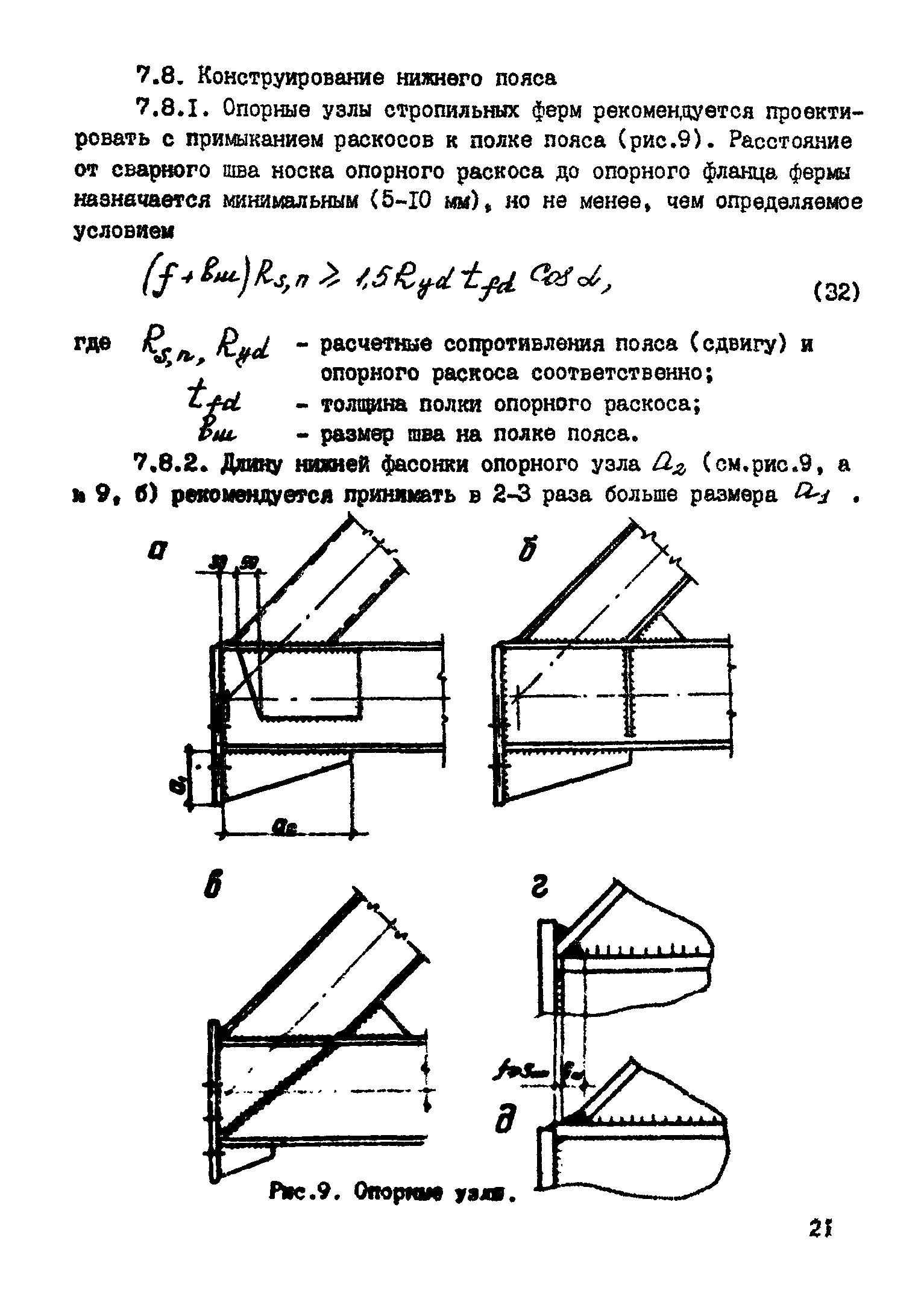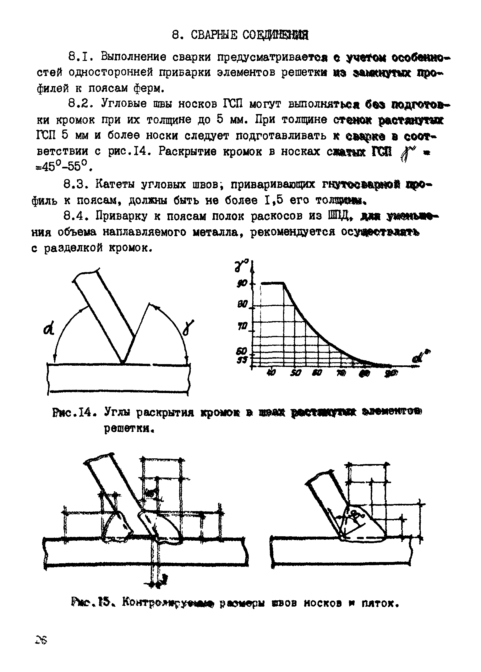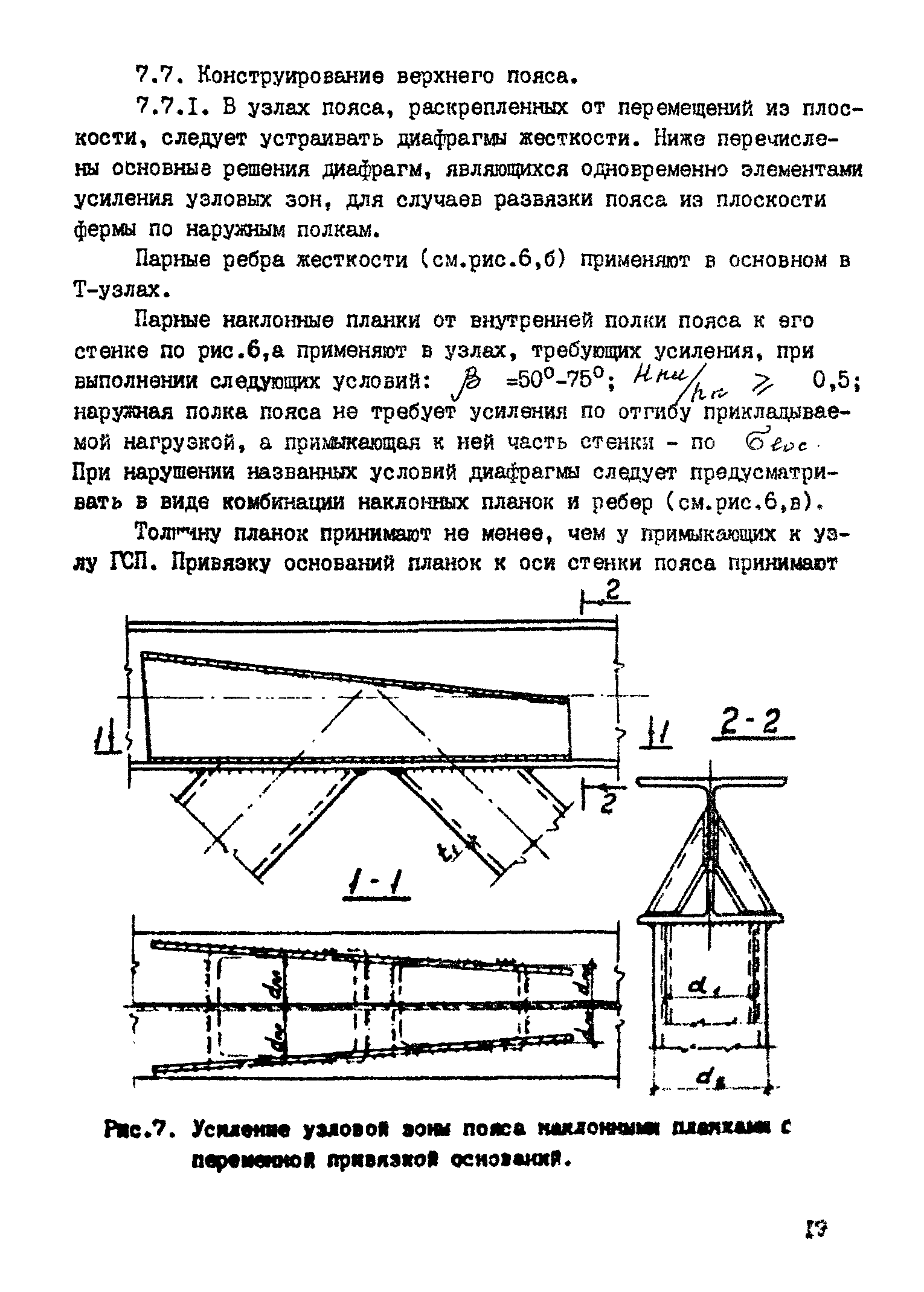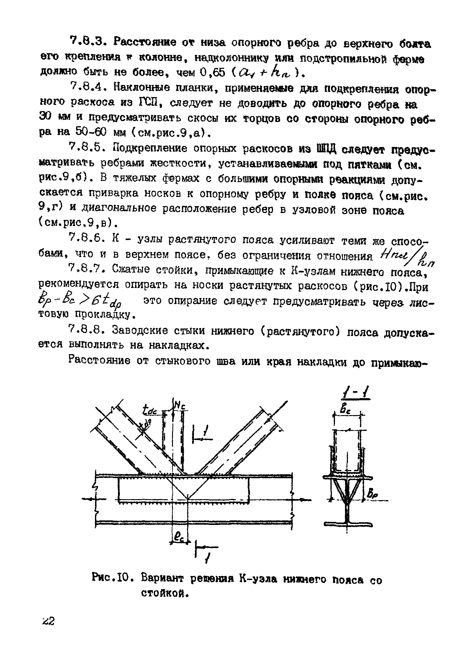 | Оглавление: | 1. Общие указания 2. Материалы и расчетные характеристики 3. Основные положения расчета 4. Расчет прочности стержней 5. Расчет устойчивости стержней 6. Расчет узлов 7. Рекомендации по конструированию 8. Сварные соединения 9. Дополнительные указания по технологии изготовления ферм Приложение 1. Пример статического расчета ферм Приложение 2. Технология изготовления стропильных ферм с поясами из широкополочных двутавров и решеткой из гнутосварных профилей прямоугольного сечения Приложение 3. Основные буквенные обозначения величин |