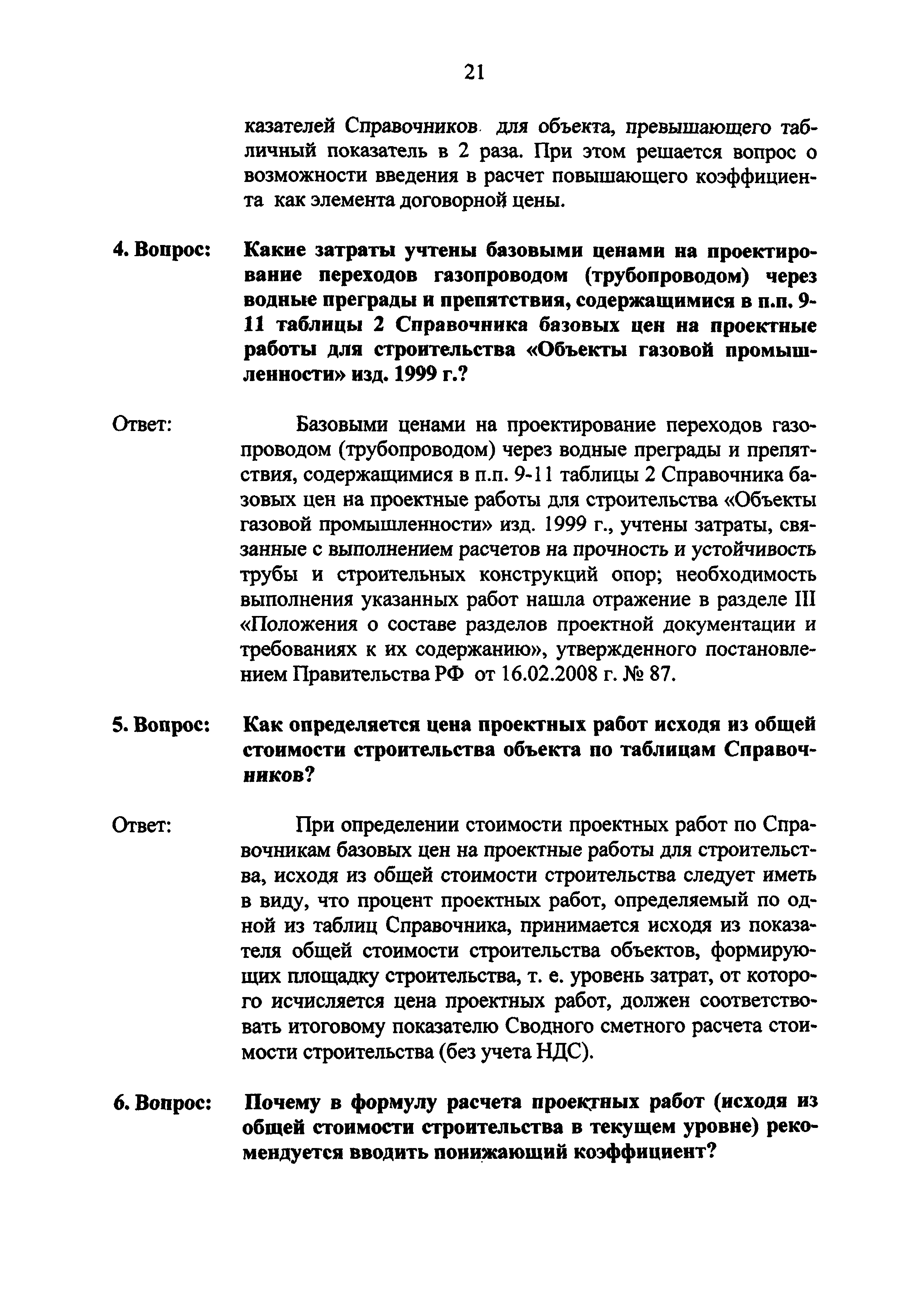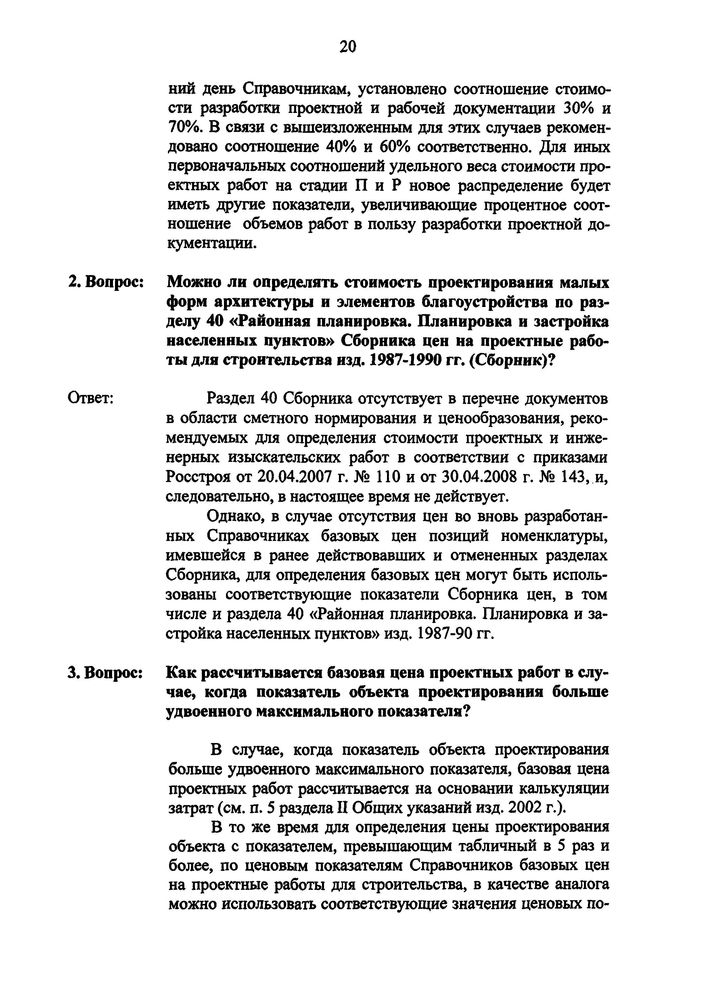 | Область применения: | В Сборнике даны разъяснения по определению базовой цены объектов жилищно-гражданского назначения, энергетики, водоснабжения и канализации, автомобильных дорог общего пользования и городских инженерных сооружений и коммуникаций, а также ответы на другие вопросы по определению стоимости проектных или связанных с проектированием работ, наиболее часто встречающихся в письмах организаций, применяющих соответствующие ценовые документы. |