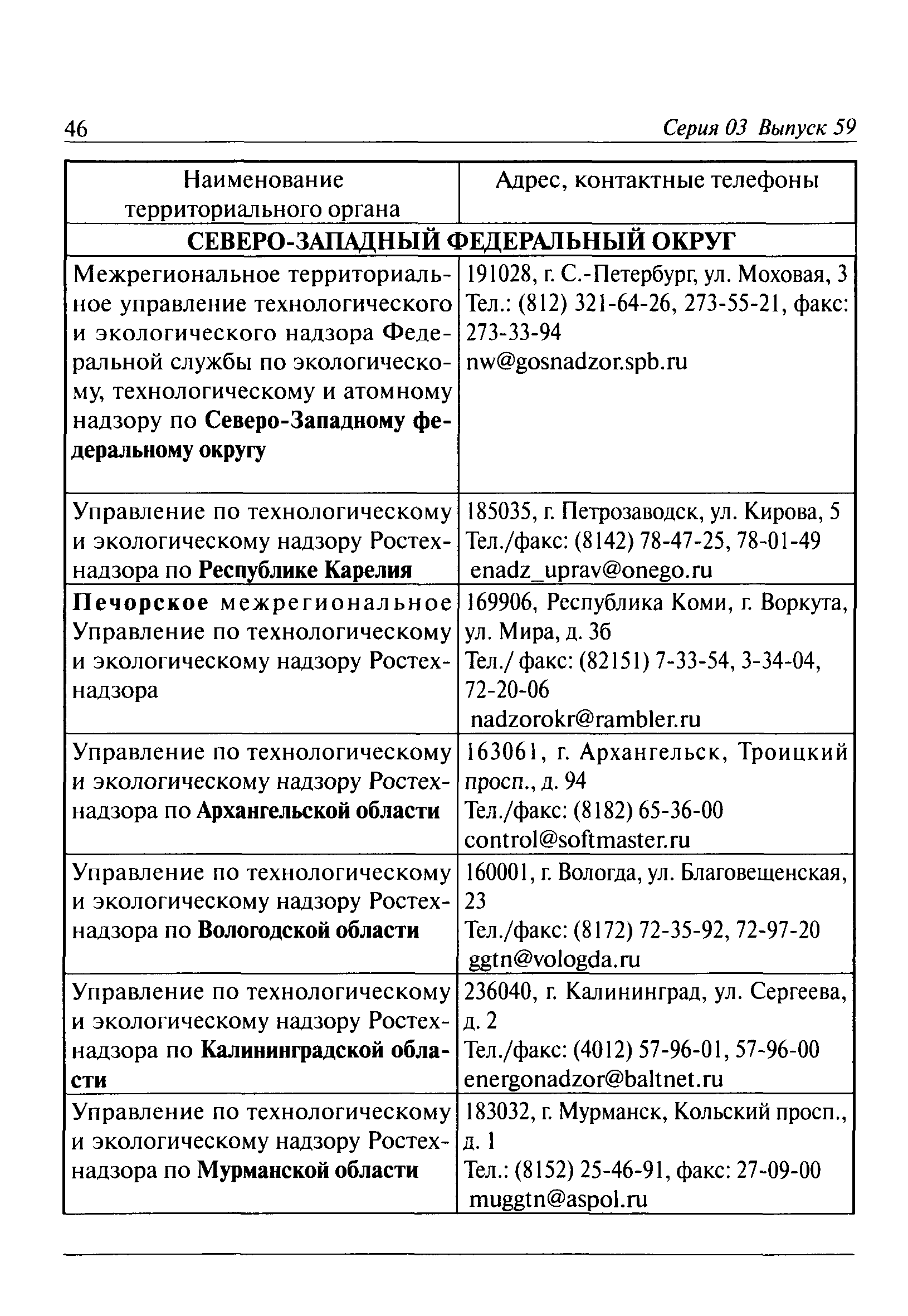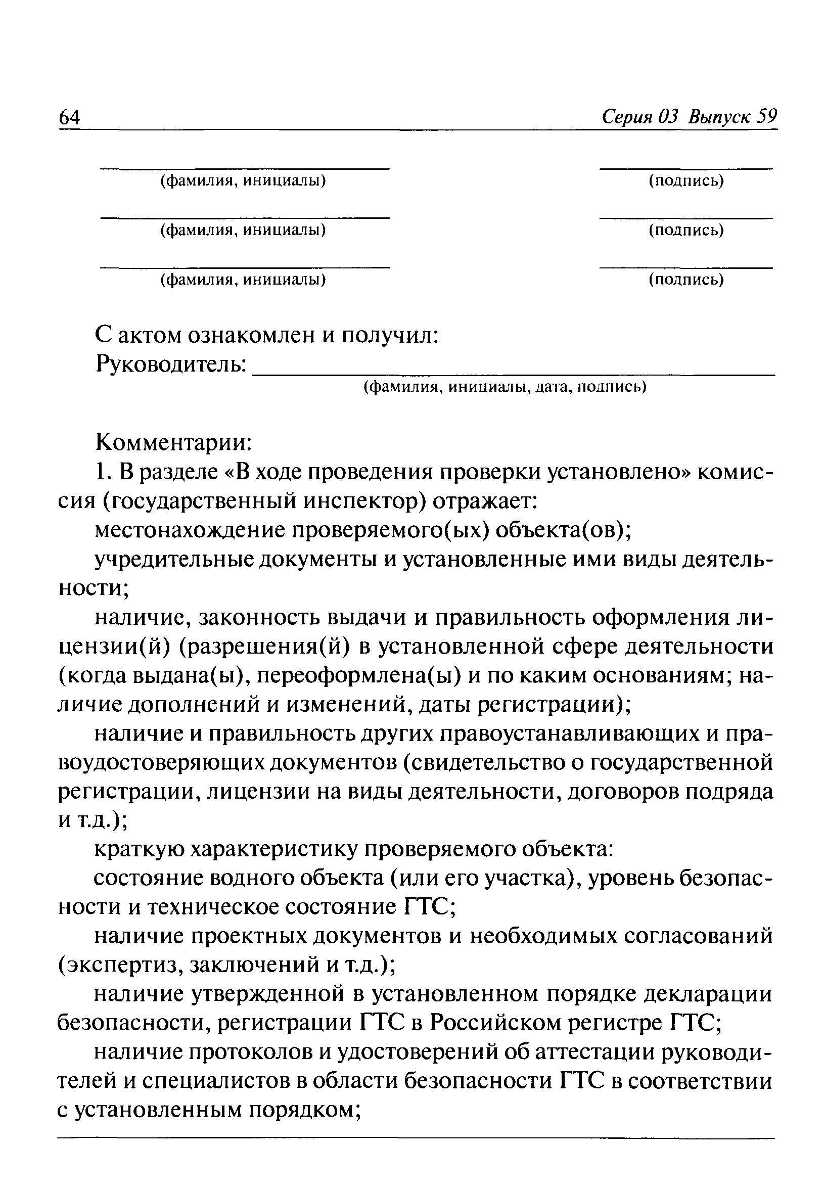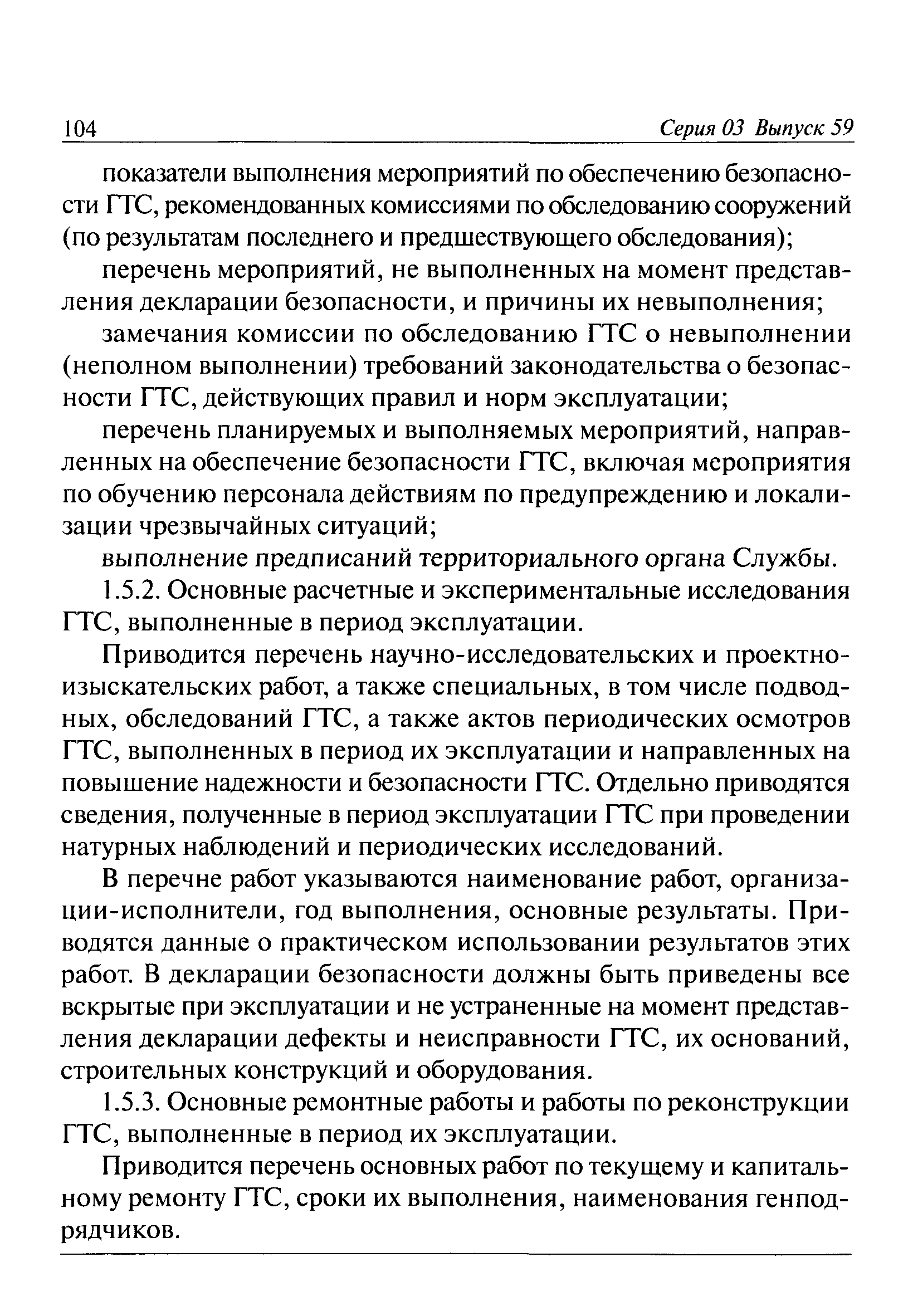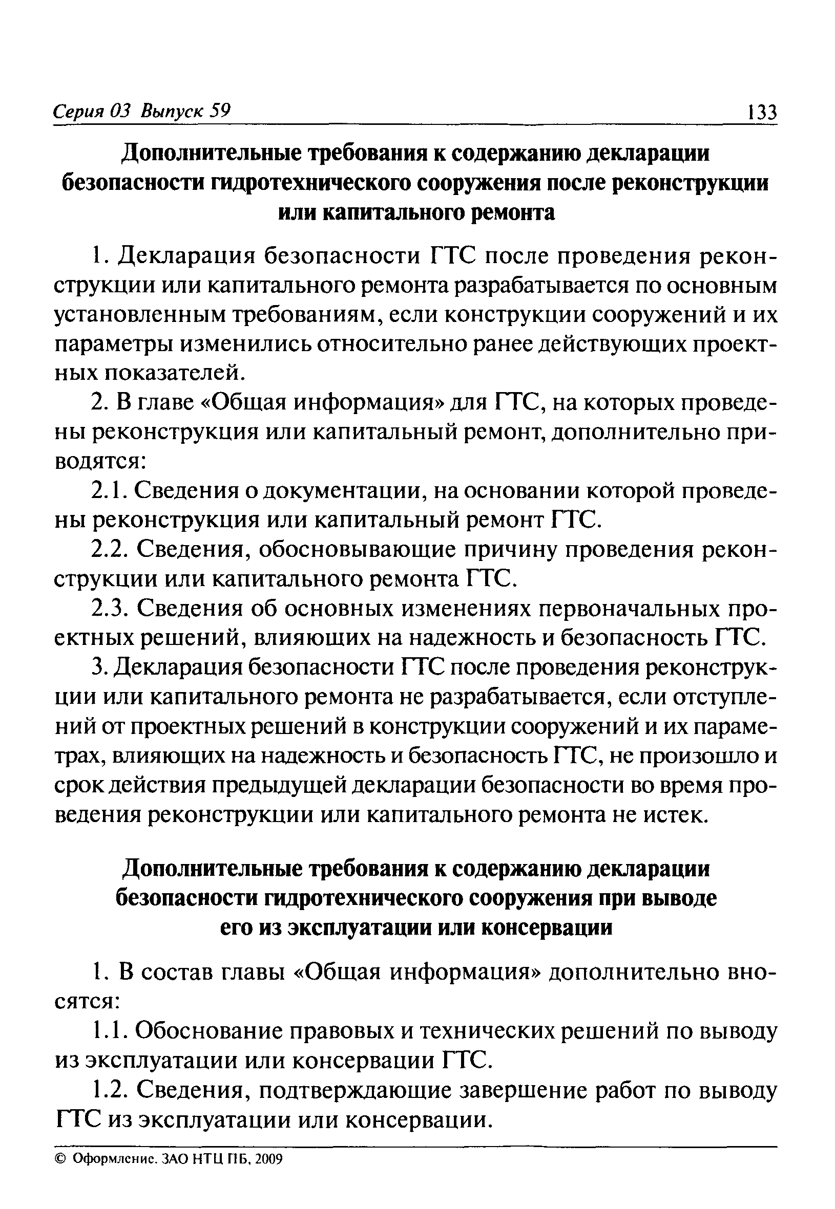 | Оглавление: | I. Общие положения II. Требования к порядку исполнения государственной функции III. Административные процедуры IV. Порядок и формы контроля за исполнением государственной функции V. Порядок обжалования действий (бездействий) должностного лица, а также принимаемого им решения при исполнении государственной функции Приложение № 1 Сведения о местонахождении и контактных телефонах центрального аппарата и территориальных органов Ростехнадзора Приложение № 2 Перечень должностных лиц Федеральной службы по экологическому, технологическому и атомному надзору, осуществляющих государственный контроль и надзор за безопасностью гидротехнических сооружений (соблюдением норм и правил безопасности), кроме судоходных гидротехнических сооружений, их права и обязанности Приложение № 3 Блок-схема по организации и проведению государственного контроля и надзора за безопасностью ГТС Приложение № 4 Форма акта проверки соблюдения требований законодательства в сфере безопасности гидротехнических сооружений Приложение № 5 Форма предписания об устранении нарушений законодательства в области безопасности гидротехнических сооружений Приложение № 6 Форма протокола об административном правонарушении Приложение № 7 Форма постановления о назначении административного наказания Приложение № 8 Форма Акта преддекларационного обследования гидротехнического сооружения Приложение № 9 Дополнительные требования к содержанию декларации безопасности, учитывающие особенности декларирования безопасности гидротехнических сооружений объектов энергетики I. Общая информация II. Анализ безопасности гидротехнических сооружений III. Обеспечение готовности объекта к локализации и ликвидации опасных повреждений и аварий гидротехнических сооружений и действиям в условиях возникновения чрезвычайной ситуации IV. Информирование населения и органов исполнительной власти V. Заключение VI. Список источников информации, использованных при разработке декларации безопасности гидротехнических сооружений VII. Приложения к декларации безопасности Дополнительные требования к содержанию декларации безопасности проектируемого гидротехнического сооружения Дополнительные требования к содержанию декларации безопасности строящегося гидротехнического сооружения Дополнительные требования к содержанию декларации безопасности гидротехнических сооружений тепловых электростанций при наличии в составе сооружений золошлакоотвалов Приложение № 10 Дополнительные требования к содержанию декларации безопасности, учитывающие особенности декларирования безопасности гидротехнических сооружений объектов промышленности (организаций, производств и объектов) I. Аннотация II. Список разработчиков декларации III. Оглавление IV. Общая информация V. Анализ безопасности ГТС VI. Обеспечение готовности ГТС к локализации и ликвидации опасных повреждений и аварийных ситуаций VII. Информировании общественности VIII. Заключение IX. Приложения к декларации безопасности Дополнительные требования к содержанию декларации безопасности проектируемого гидротехнического сооружения Дополнительные требования к содержанию декларации безопасности строящегося гидротехнического сооружения Дополнительные требования к содержанию декларации безопасности гидротехн