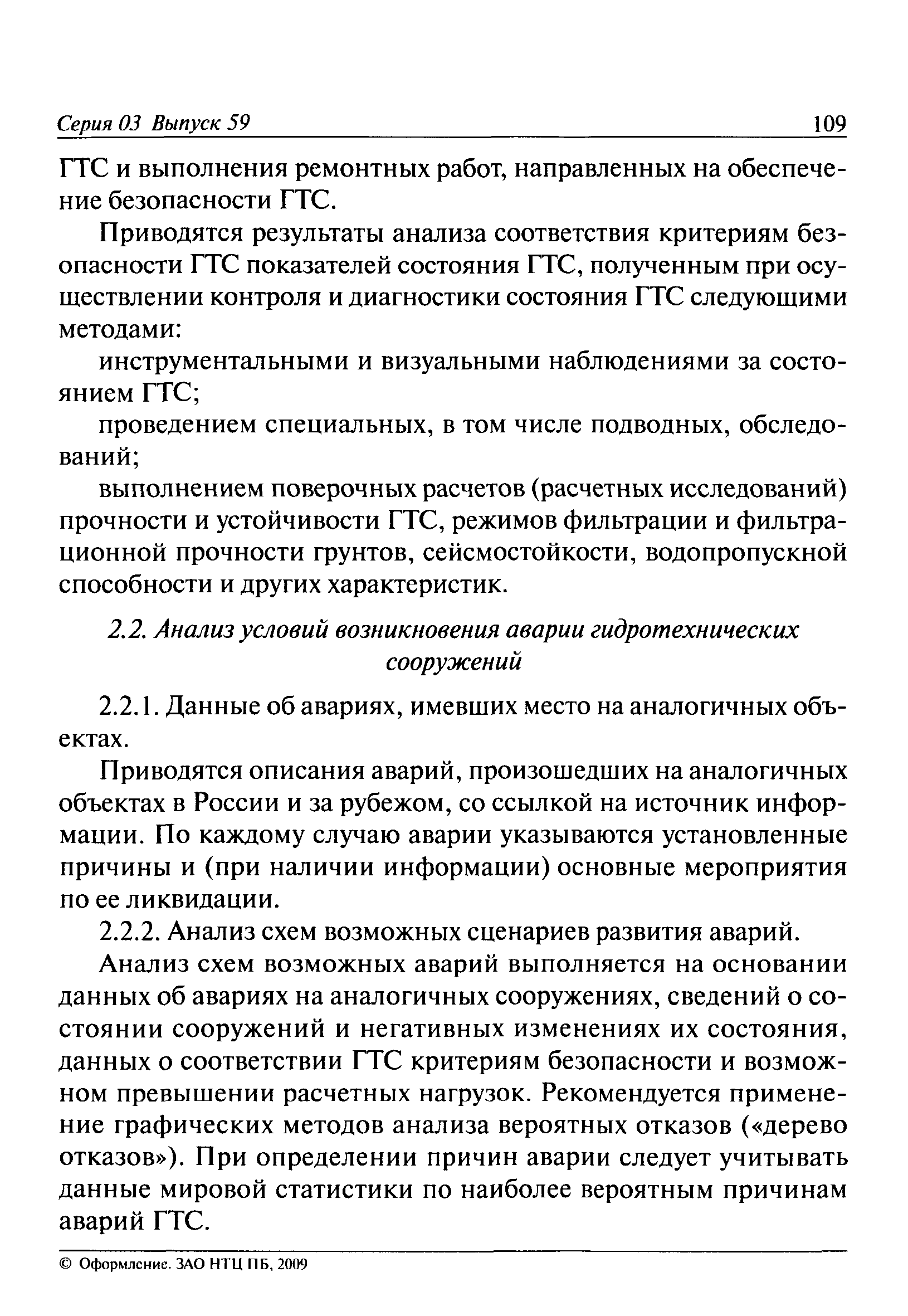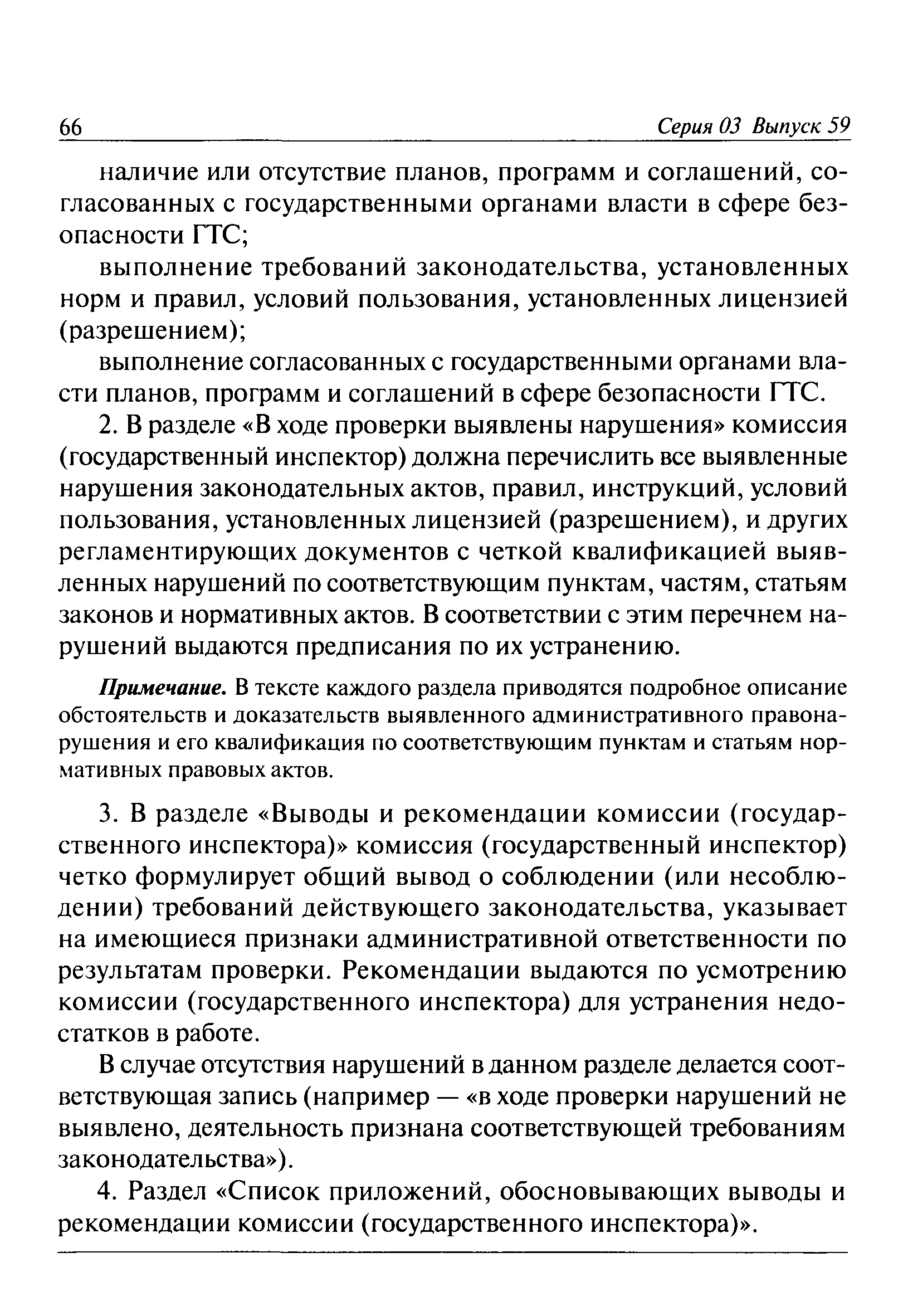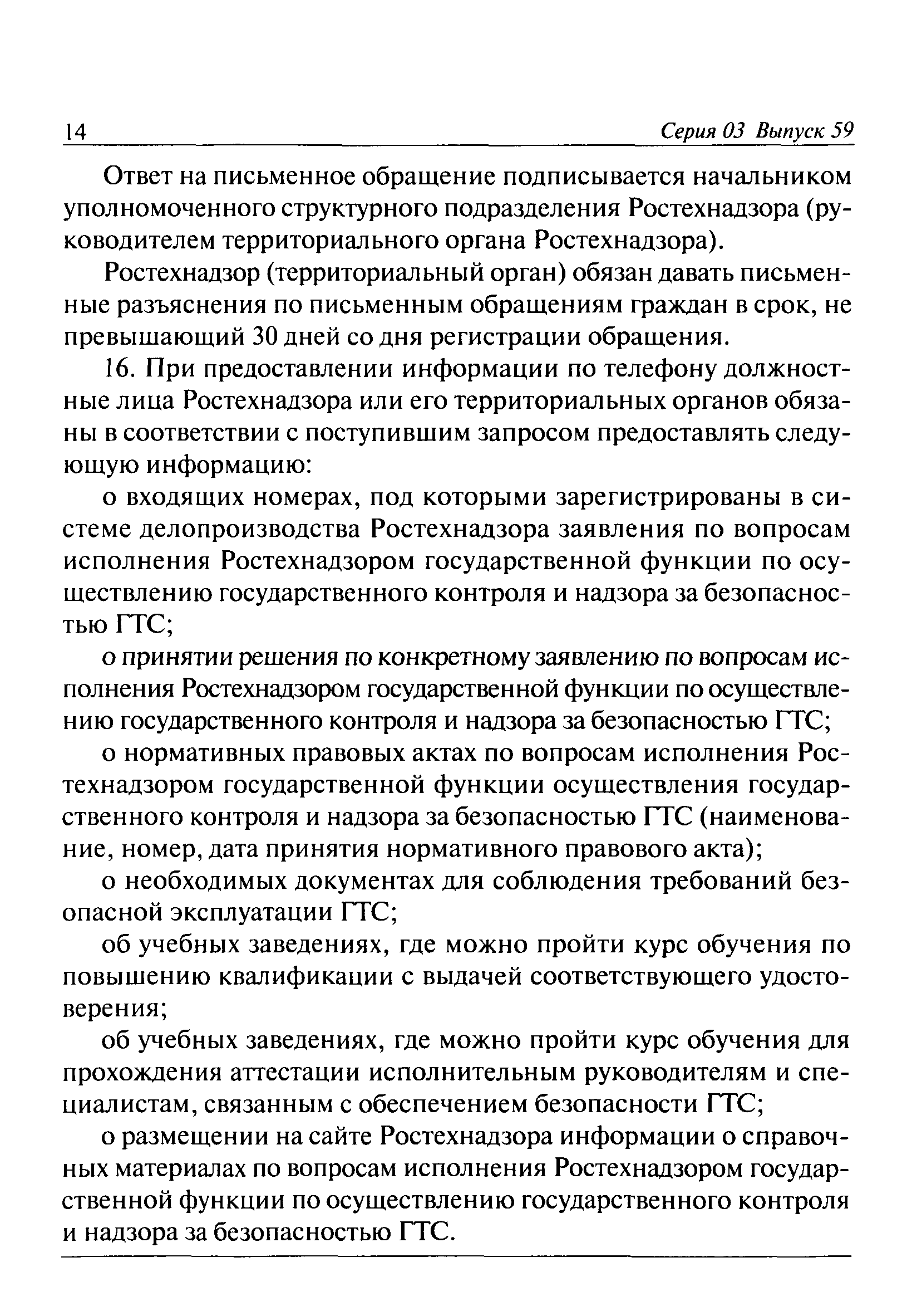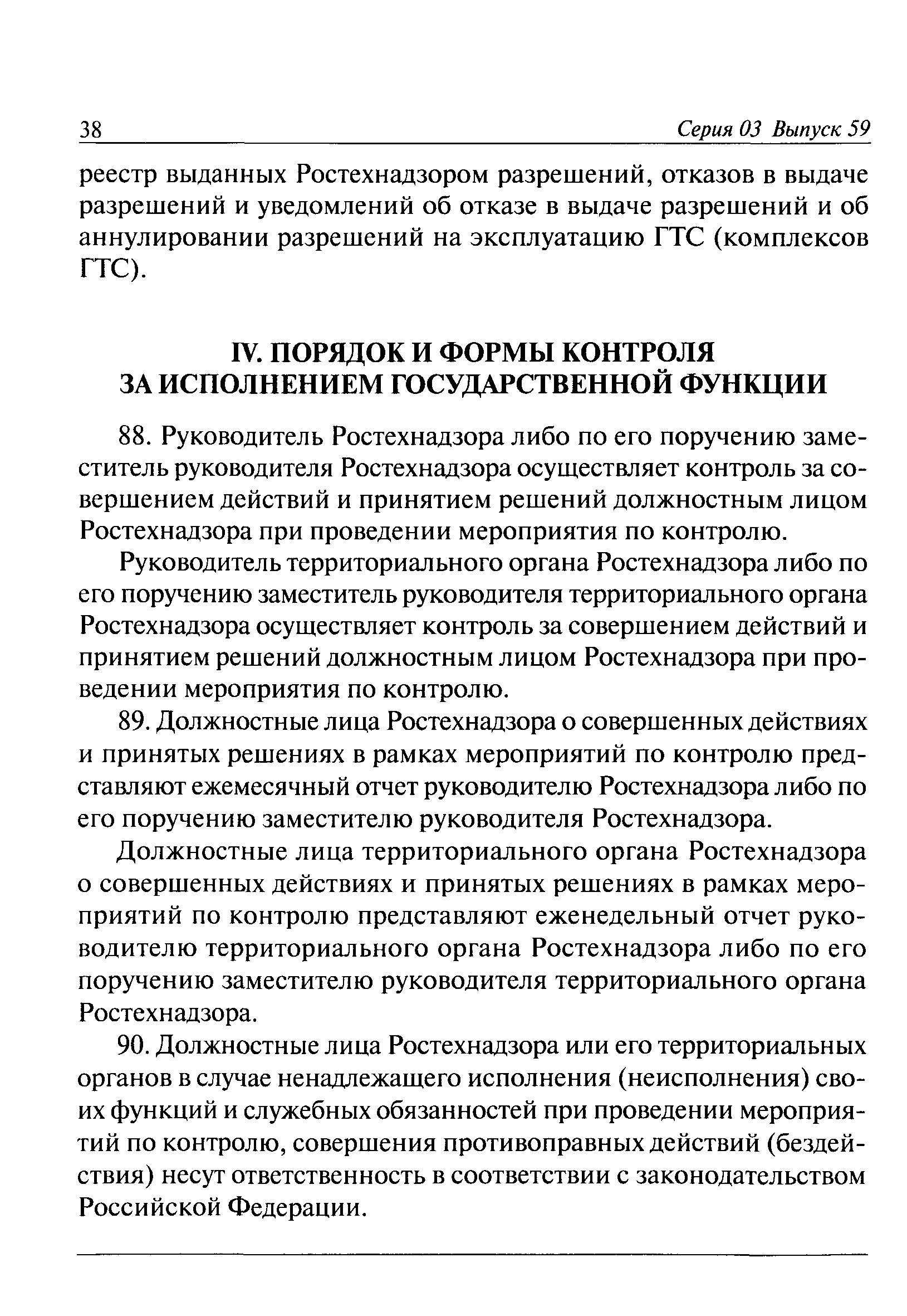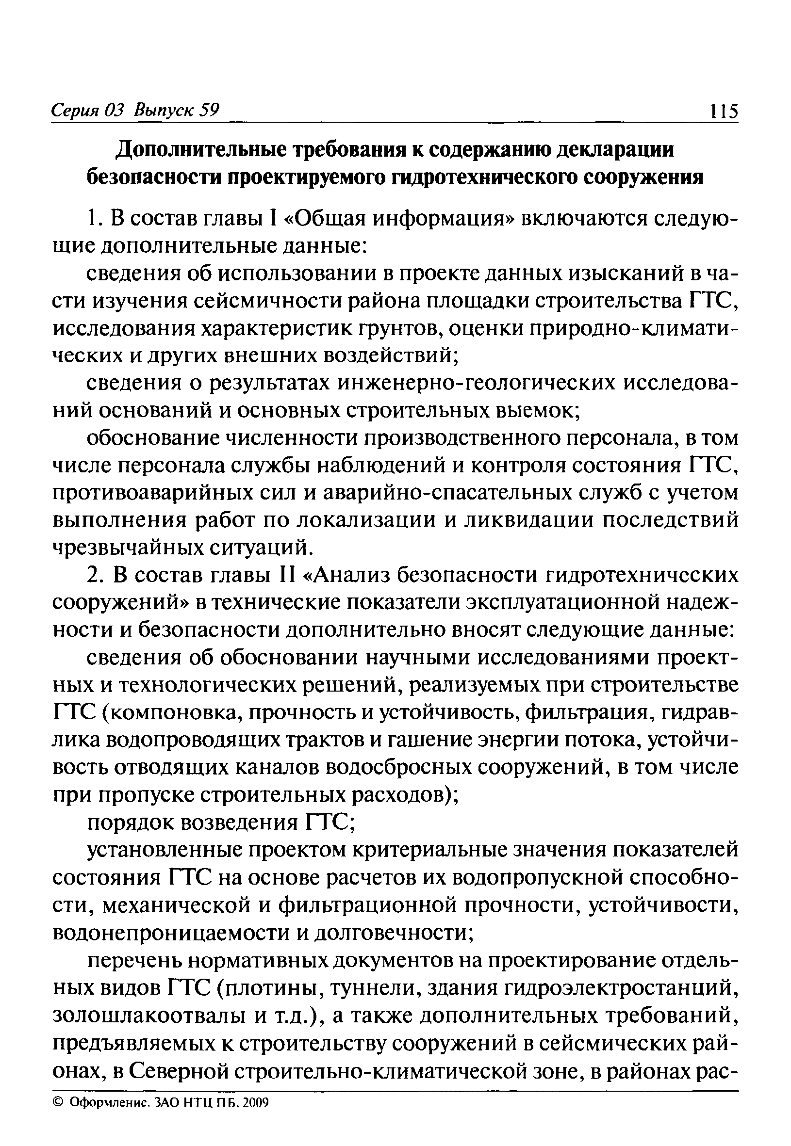 | Оглавление: | I. Общие положения II. Требования к порядку исполнения государственной функции III. Административные процедуры IV. Порядок и формы контроля за исполнением государственной функции V. Порядок обжалования действий (бездействий) должностного лица, а также принимаемого им решения при исполнении государственной функции Приложение № 1 Сведения о местонахождении и контактных телефонах центрального аппарата и территориальных органов Ростехнадзора Приложение № 2 Перечень должностных лиц Федеральной службы по экологическому, технологическому и атомному надзору, осуществляющих государственный контроль и надзор за безопасностью гидротехнических сооружений (соблюдением норм и правил безопасности), кроме судоходных гидротехнических сооружений, их права и обязанности Приложение № 3 Блок-схема по организации и проведению государственного контроля и надзора за безопасностью ГТС Приложение № 4 Форма акта проверки соблюдения требований законодательства в сфере безопасности гидротехнических сооружений Приложение № 5 Форма предписания об устранении нарушений законодательства в области безопасности гидротехнических сооружений Приложение № 6 Форма протокола об административном правонарушении Приложение № 7 Форма постановления о назначении административного наказания Приложение № 8 Форма Акта преддекларационного обследования гидротехнического сооружения Приложение № 9 Дополнительные требования к содержанию декларации безопасности, учитывающие особенности декларирования безопасности гидротехнических сооружений объектов энергетики I. Общая информация II. Анализ безопасности гидротехнических сооружений III. Обеспечение готовности объекта к локализации и ликвидации опасных повреждений и аварий гидротехнических сооружений и действиям в условиях возникновения чрезвычайной ситуации IV. Информирование населения и органов исполнительной власти V. Заключение VI. Список источников информации, использованных при разработке декларации безопасности гидротехнических сооружений VII. Приложения к декларации безопасности Дополнительные требования к содержанию декларации безопасности проектируемого гидротехнического сооружения Дополнительные требования к содержанию декларации безопасности строящегося гидротехнического сооружения Дополнительные требования к содержанию декларации безопасности гидротехнических сооружений тепловых электростанций при наличии в составе сооружений золошлакоотвалов Приложение № 10 Дополнительные требования к содержанию декларации безопасности, учитывающие особенности декларирования безопасности гидротехнических сооружений объектов промышленности (организаций, производств и объектов) I. Аннотация II. Список разработчиков декларации III. Оглавление IV. Общая информация V. Анализ безопасности ГТС VI. Обеспечение готовности ГТС к локализации и ликвидации опасных повреждений и аварийных ситуаций VII. Информировании общественности VIII. Заключение IX. Приложения к декларации безопасности Дополнительные требования к содержанию декларации безопасности проектируемого гидротехнического сооружения Дополнительные требования к содержанию декларации безопасности строящегося гидротехнического сооружения Дополнительные требования к содержанию декларации безопасности гидротехн
