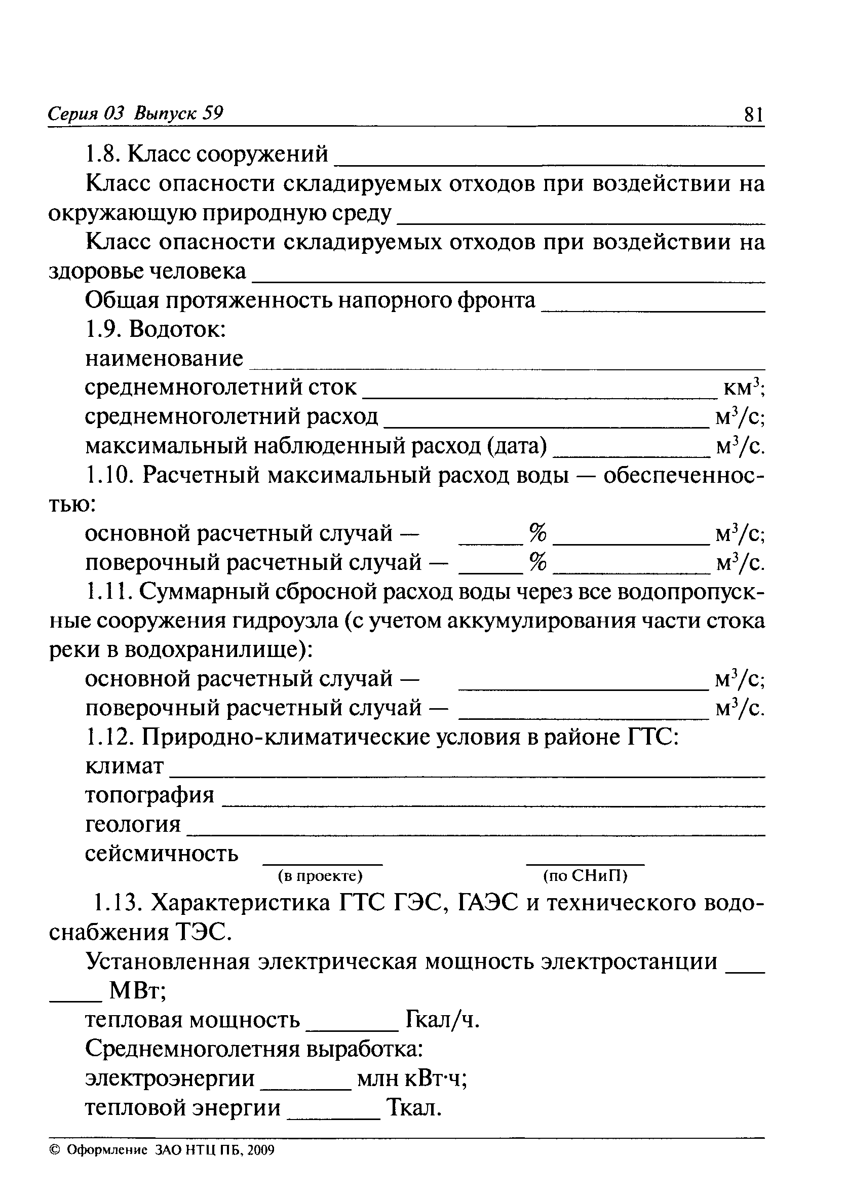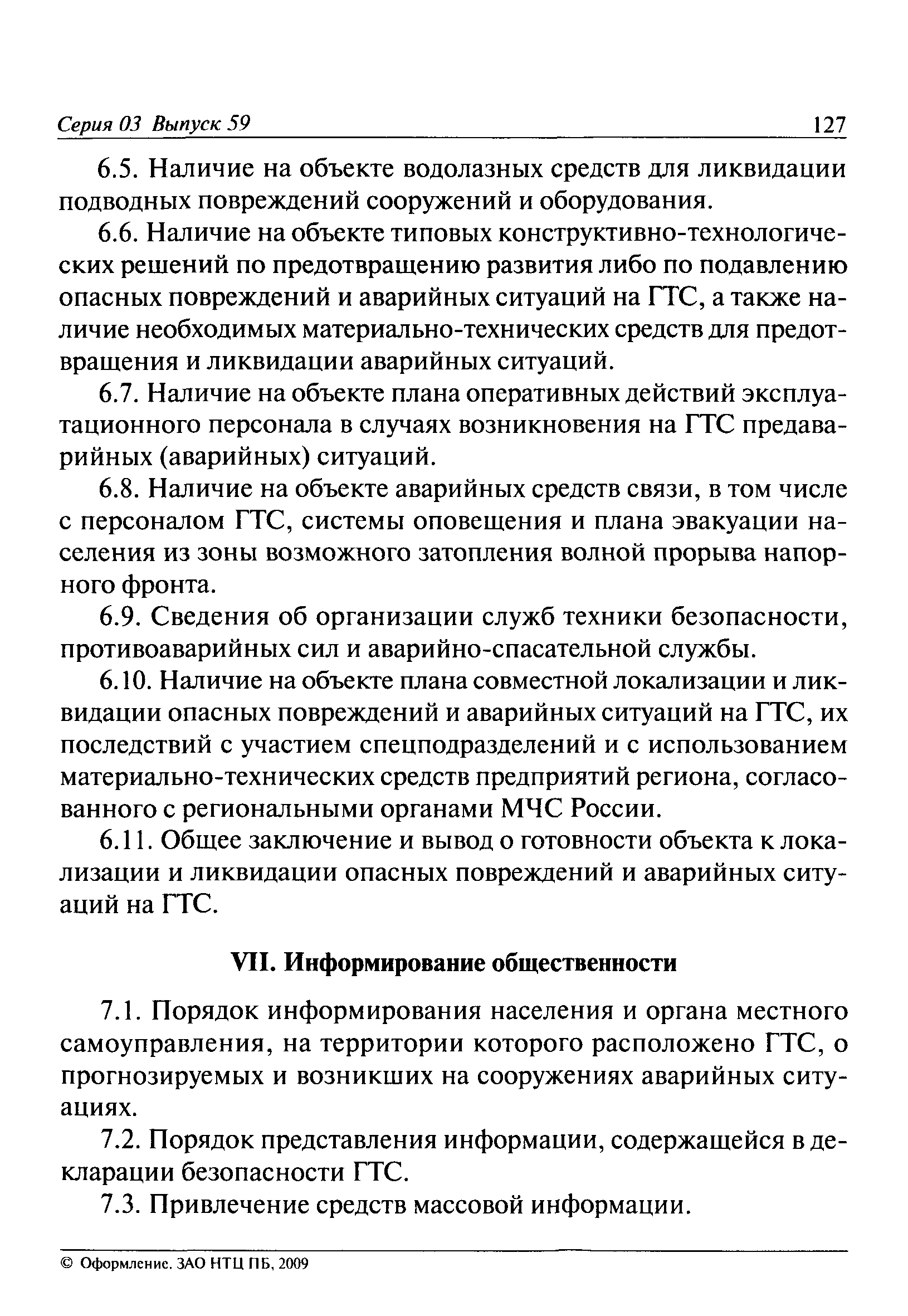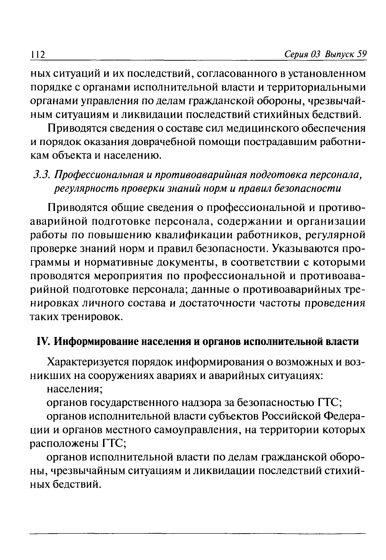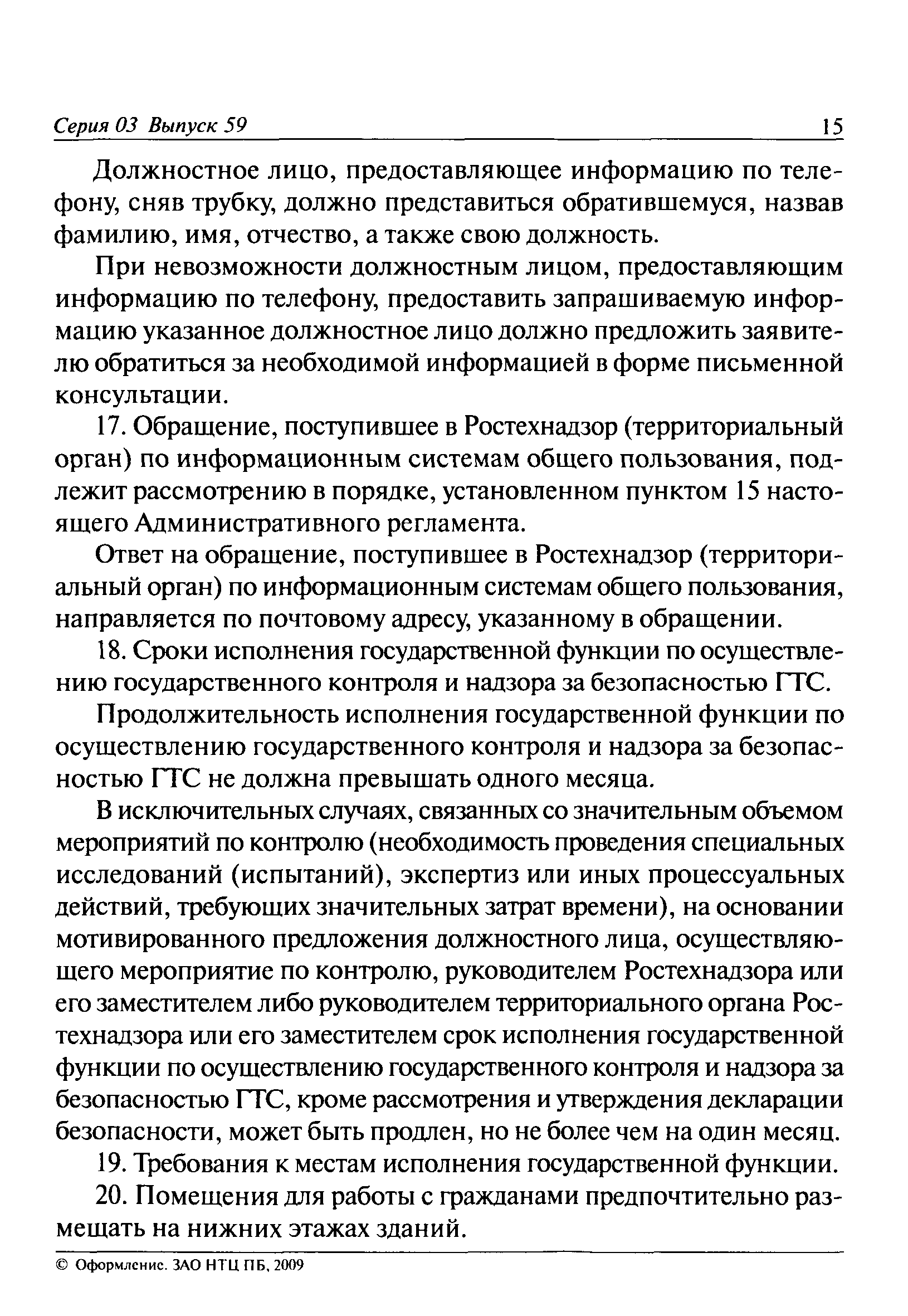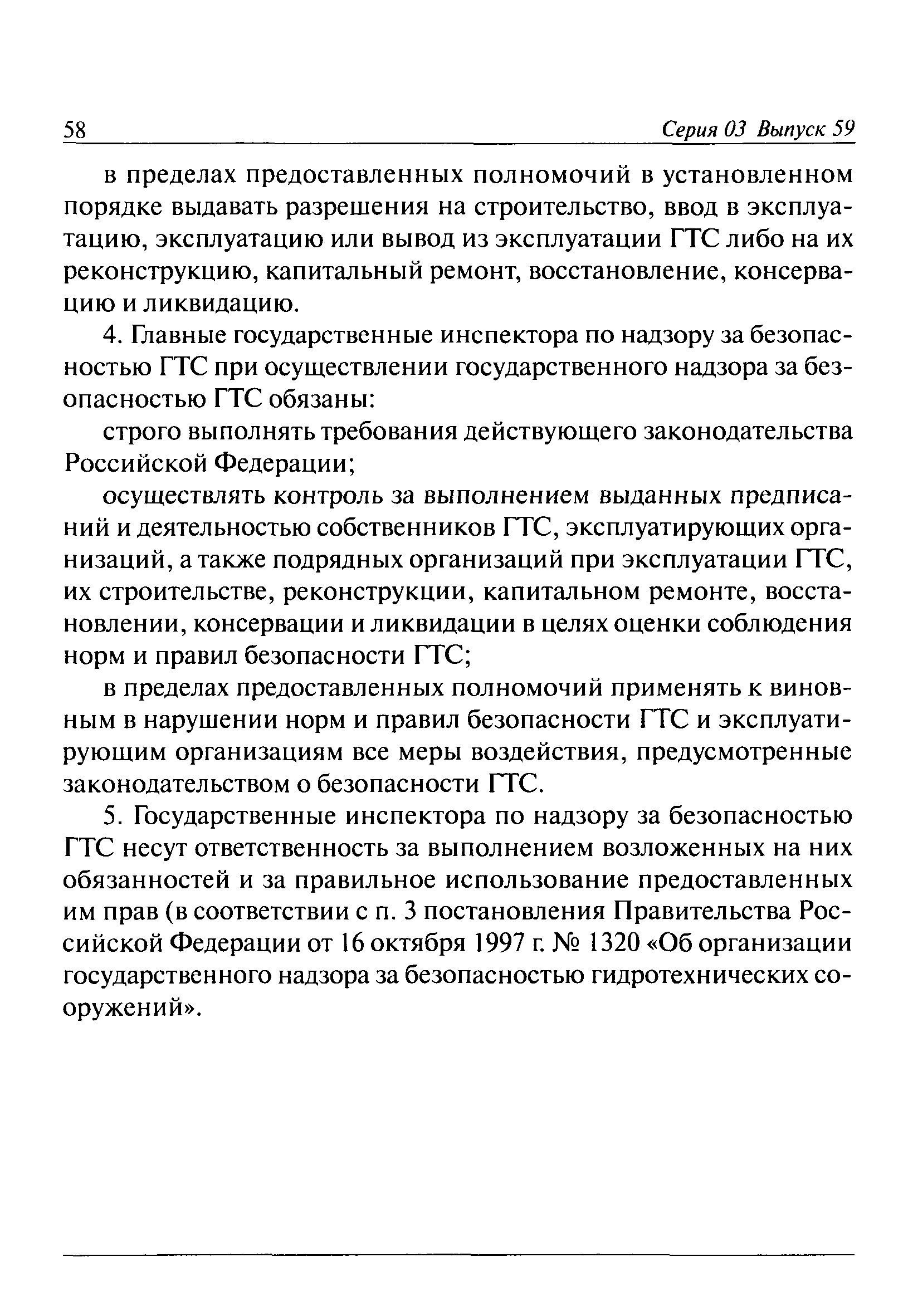 | Оглавление: | I. Общие положения II. Требования к порядку исполнения государственной функции III. Административные процедуры IV. Порядок и формы контроля за исполнением государственной функции V. Порядок обжалования действий (бездействий) должностного лица, а также принимаемого им решения при исполнении государственной функции Приложение № 1 Сведения о местонахождении и контактных телефонах центрального аппарата и территориальных органов Ростехнадзора Приложение № 2 Перечень должностных лиц Федеральной службы по экологическому, технологическому и атомному надзору, осуществляющих государственный контроль и надзор за безопасностью гидротехнических сооружений (соблюдением норм и правил безопасности), кроме судоходных гидротехнических сооружений, их права и обязанности Приложение № 3 Блок-схема по организации и проведению государственного контроля и надзора за безопасностью ГТС Приложение № 4 Форма акта проверки соблюдения требований законодательства в сфере безопасности гидротехнических сооружений Приложение № 5 Форма предписания об устранении нарушений законодательства в области безопасности гидротехнических сооружений Приложение № 6 Форма протокола об административном правонарушении Приложение № 7 Форма постановления о назначении административного наказания Приложение № 8 Форма Акта преддекларационного обследования гидротехнического сооружения Приложение № 9 Дополнительные требования к содержанию декларации безопасности, учитывающие особенности декларирования безопасности гидротехнических сооружений объектов энергетики I. Общая информация II. Анализ безопасности гидротехнических сооружений III. Обеспечение готовности объекта к локализации и ликвидации опасных повреждений и аварий гидротехнических сооружений и действиям в условиях возникновения чрезвычайной ситуации IV. Информирование населения и органов исполнительной власти V. Заключение VI. Список источников информации, использованных при разработке декларации безопасности гидротехнических сооружений VII. Приложения к декларации безопасности Дополнительные требования к содержанию декларации безопасности проектируемого гидротехнического сооружения Дополнительные требования к содержанию декларации безопасности строящегося гидротехнического сооружения Дополнительные требования к содержанию декларации безопасности гидротехнических сооружений тепловых электростанций при наличии в составе сооружений золошлакоотвалов Приложение № 10 Дополнительные требования к содержанию декларации безопасности, учитывающие особенности декларирования безопасности гидротехнических сооружений объектов промышленности (организаций, производств и объектов) I. Аннотация II. Список разработчиков декларации III. Оглавление IV. Общая информация V. Анализ безопасности ГТС VI. Обеспечение готовности ГТС к локализации и ликвидации опасных повреждений и аварийных ситуаций VII. Информировании общественности VIII. Заключение IX. Приложения к декларации безопасности Дополнительные требования к содержанию декларации безопасности проектируемого гидротехнического сооружения Дополнительные требования к содержанию декларации безопасности строящегося гидротехнического сооружения Дополнительные требования к содержанию декларации безопасности гидротехн