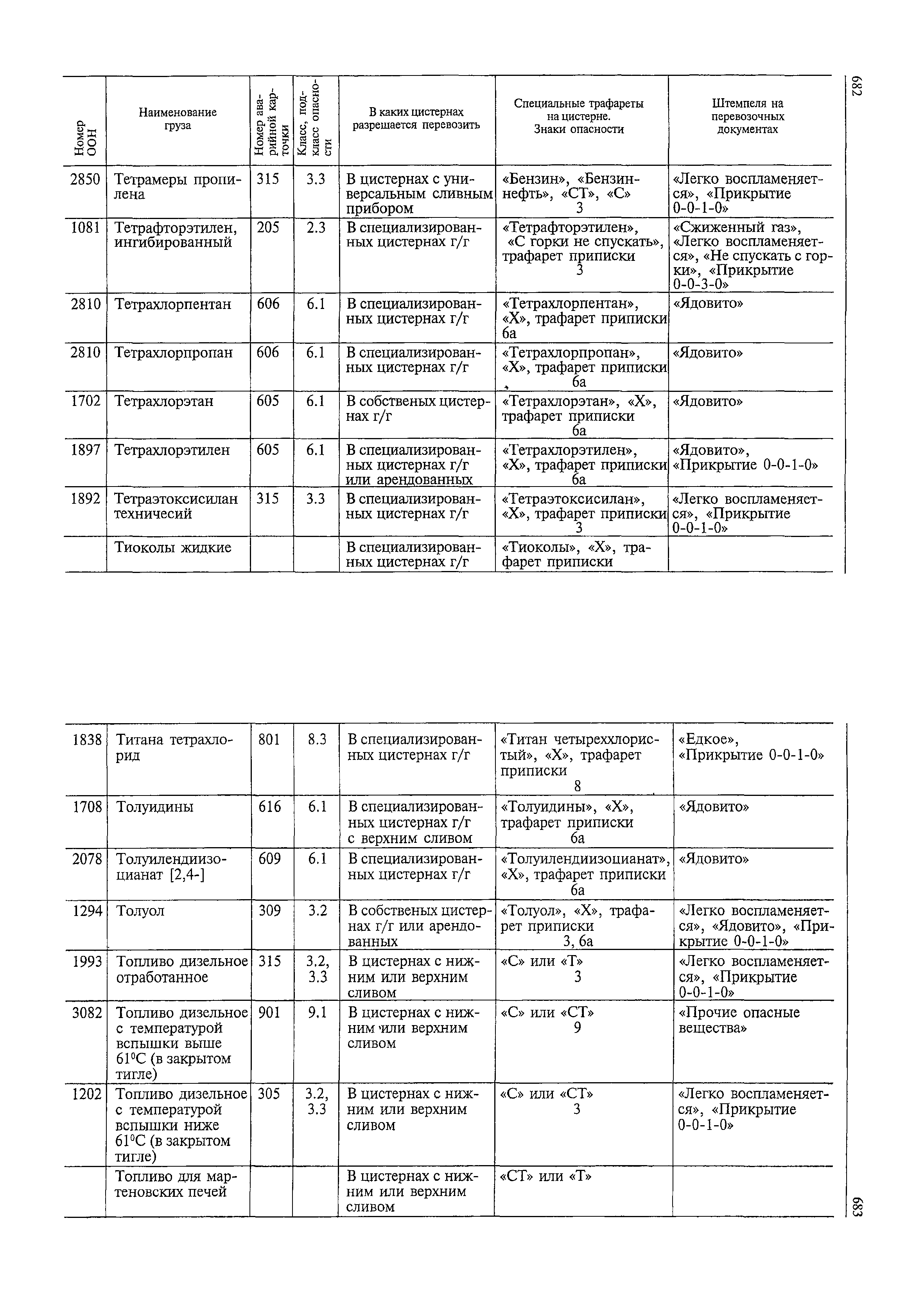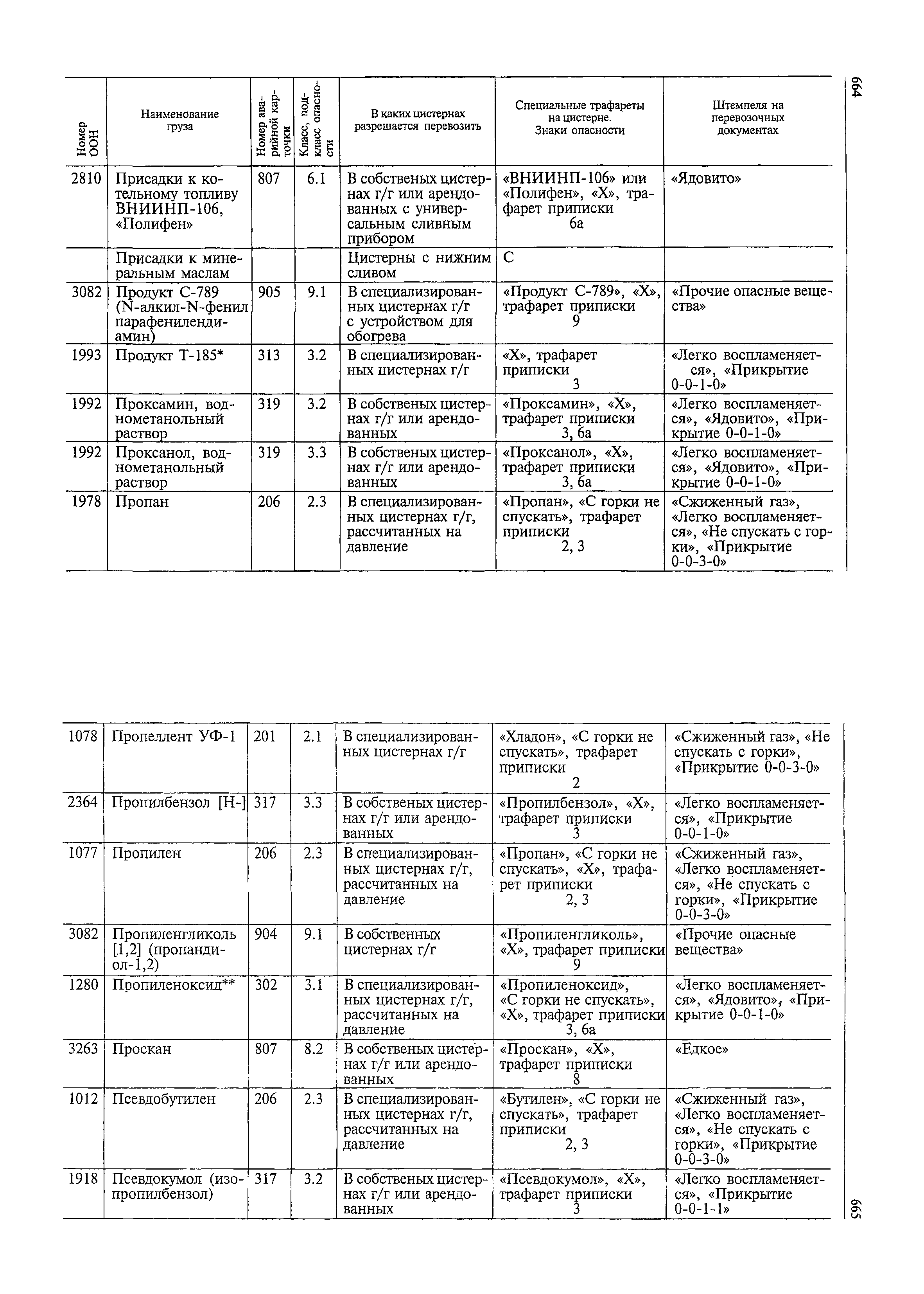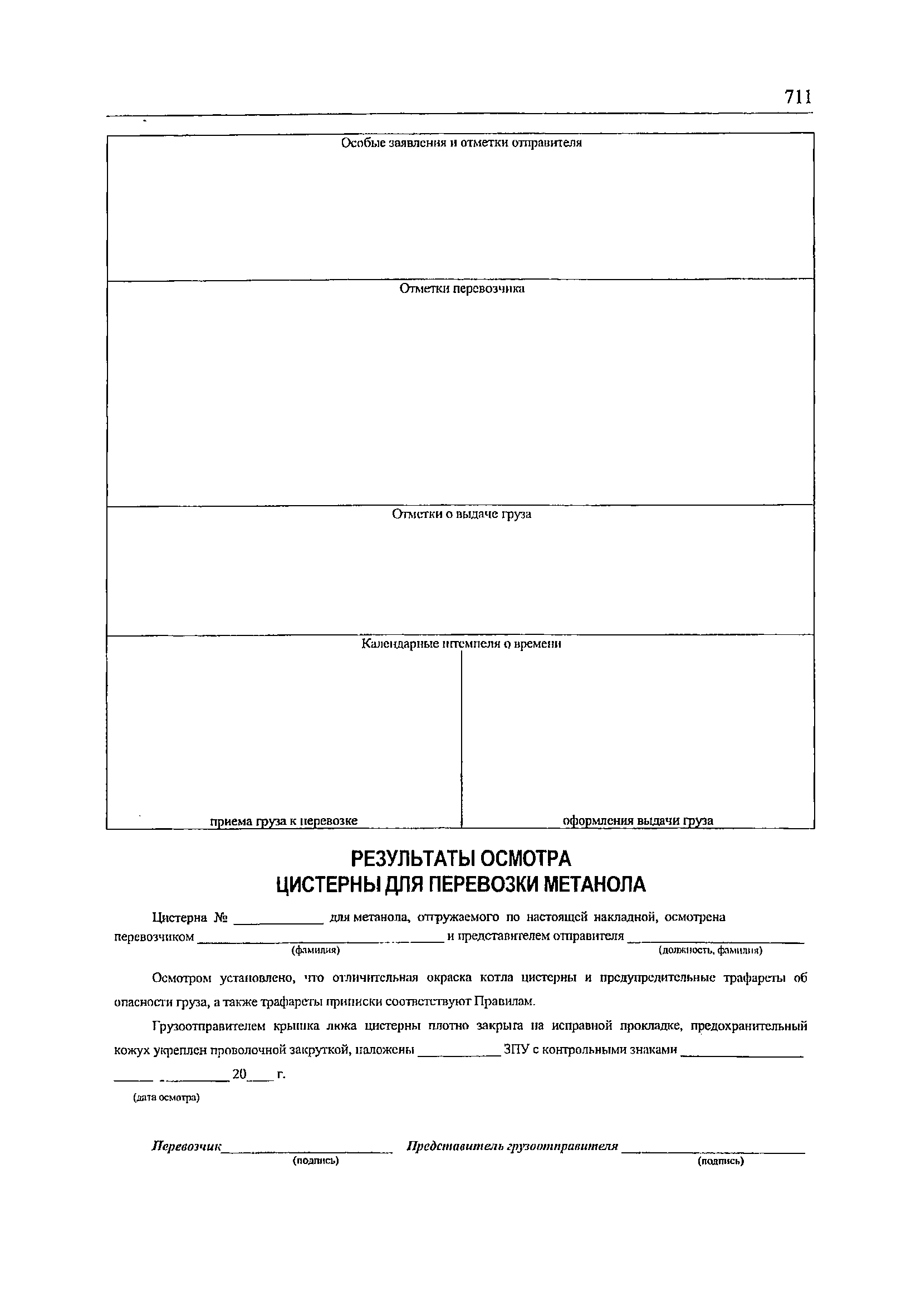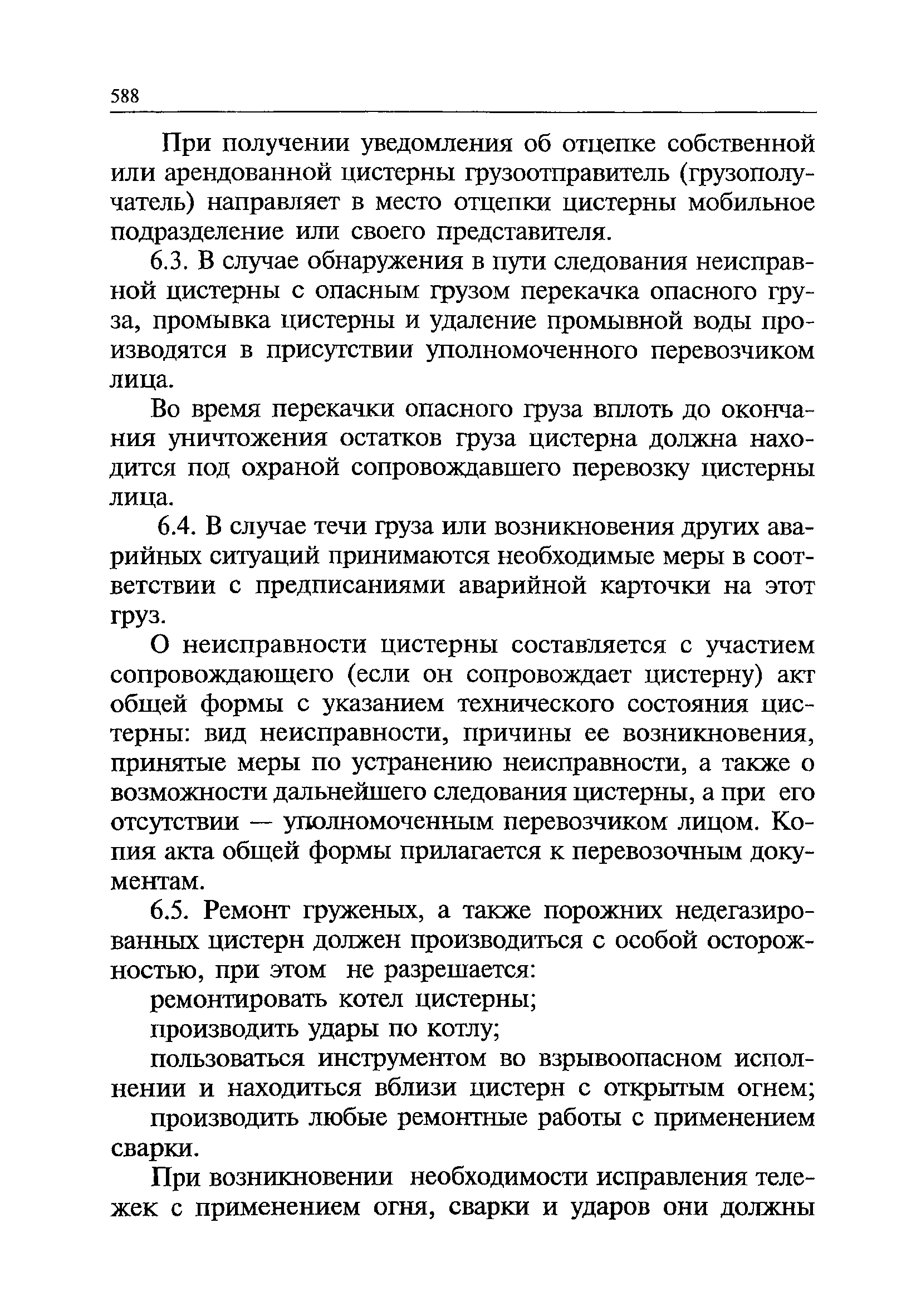 | Оглавление: | 1. Общие положения 2. Требования к цистернам и бункерным полувагонам 3. Налив и слив грузов 4. Оформление перевозочных документов 5. Специальные условия перевозок опасных грузов наливом в цистернах 6. Порядок действий при обнаружении неисправности цистерн Приложение № 1. Алфавитный указатель перевозимых грузов наливом в вагонах- цистернах и в вагонах бункерного типа для перевозки нефтебитума (кроме скоропортящихся) Приложение № 2 Свидетельство о техническом состоянии вагона-цистерны для перевозки опасного груза Приложение № 3 Расчет степени заполнения цистерн грузами, перевозимыми наливом Приложение № 4 Образцы накладных |