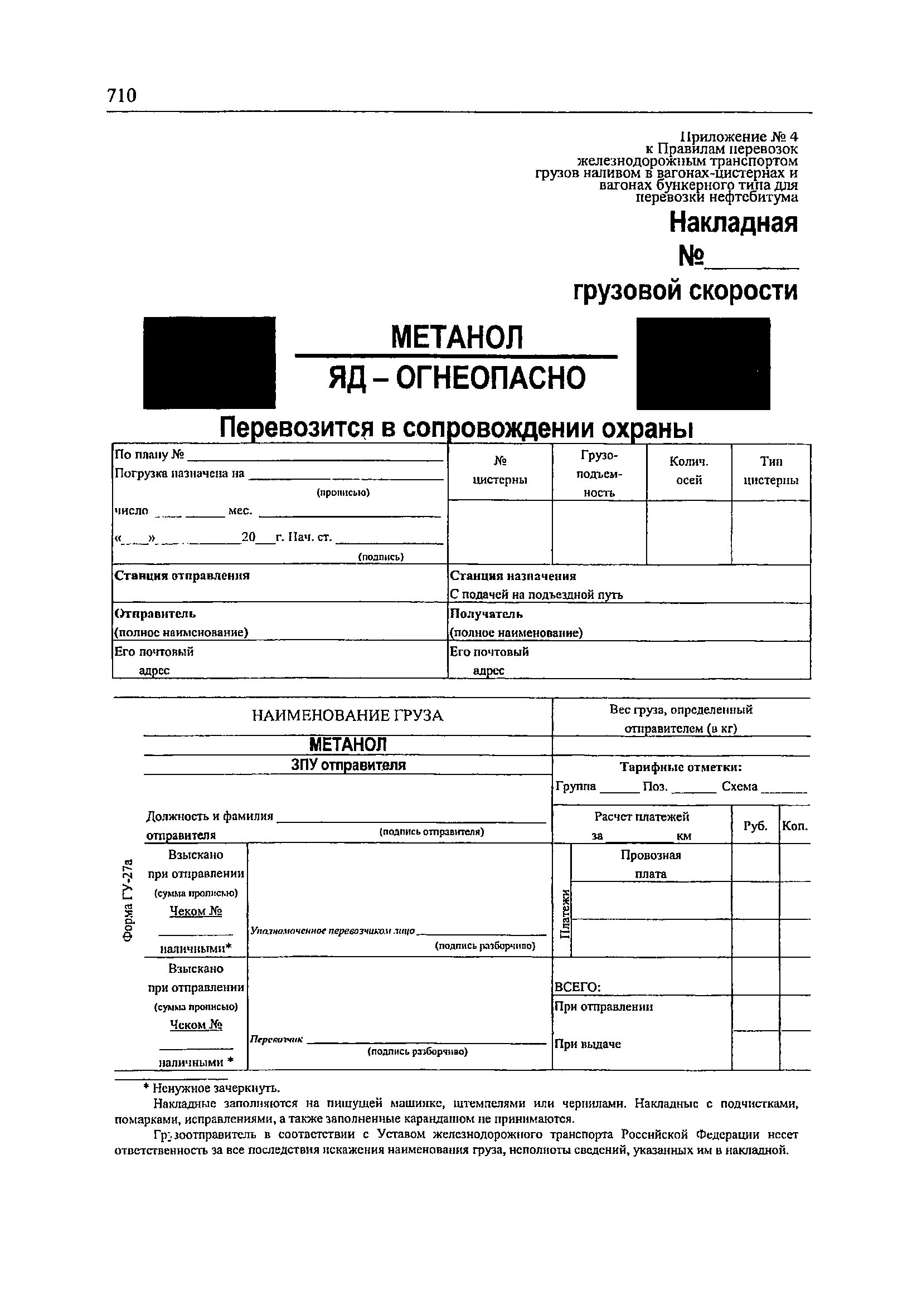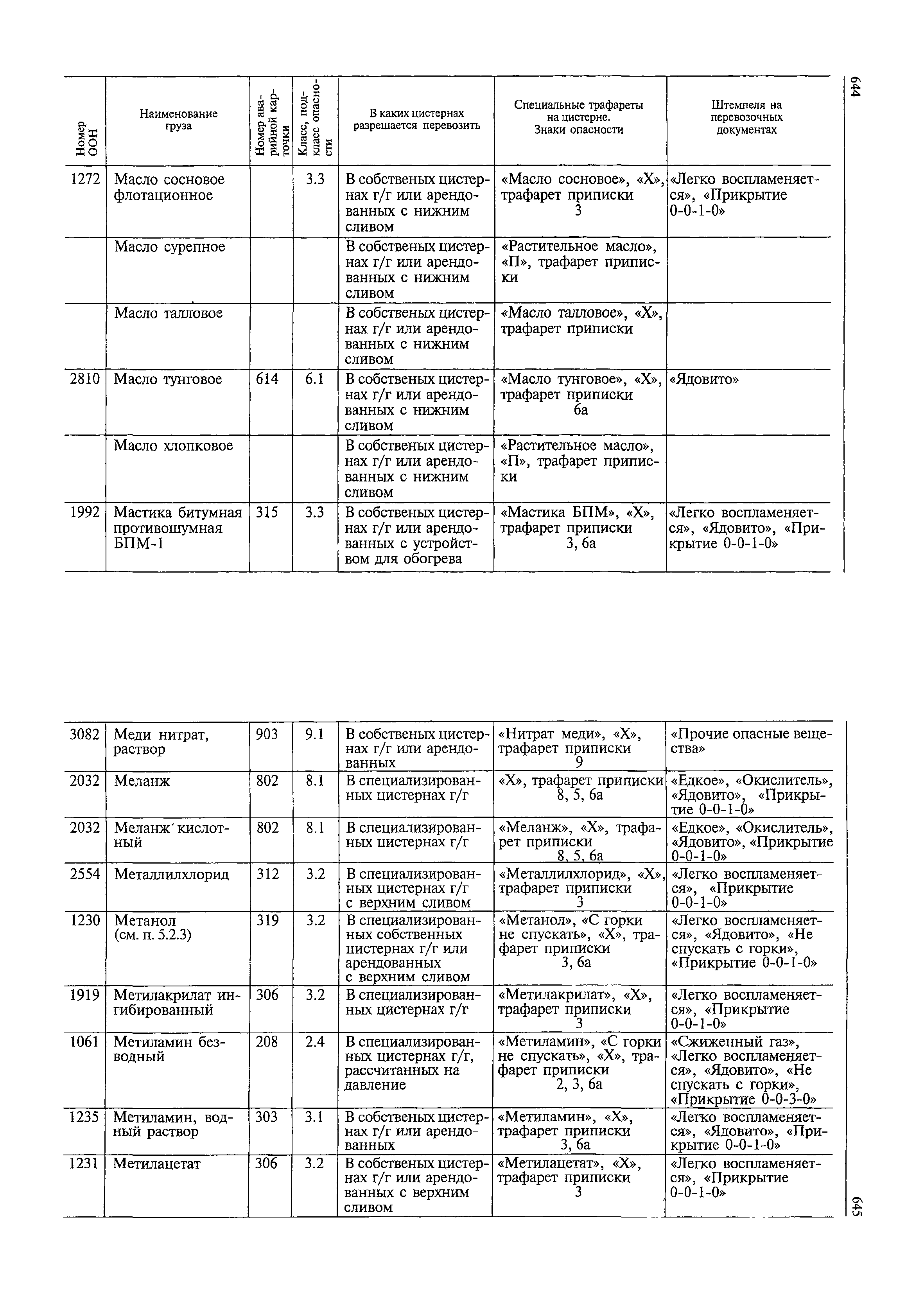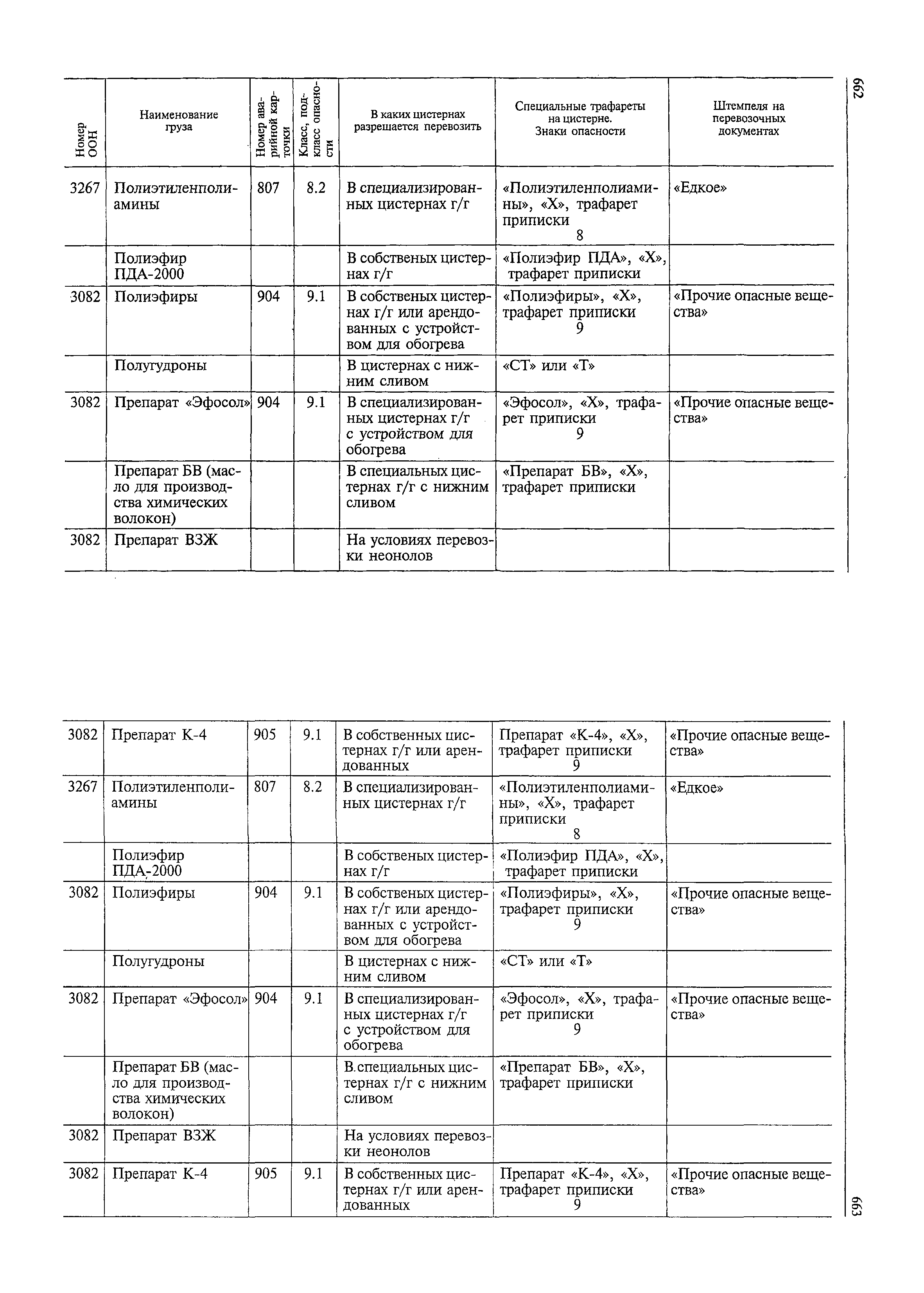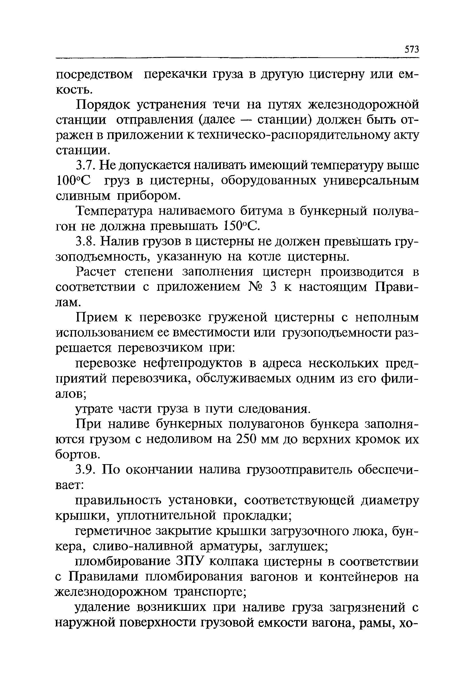 | Область применения: | Правила разработаны в соответствии со статьей 3 Федерального закона от 10 января 2003 года № 18-ФЗ "Устав железнодорожного транспорта Российской Федерации" (Собрание законодательства Российской Федерации, 2003, № 2, ст. 170) и определяют порядок и условия перевозки железнодорожным транспортом грузов наливом, в том числе опасных, в вагонах-цистернах и вагонах бункерного типа для перевозки нефтебитума, указанных в приложении 1 к Правилам |