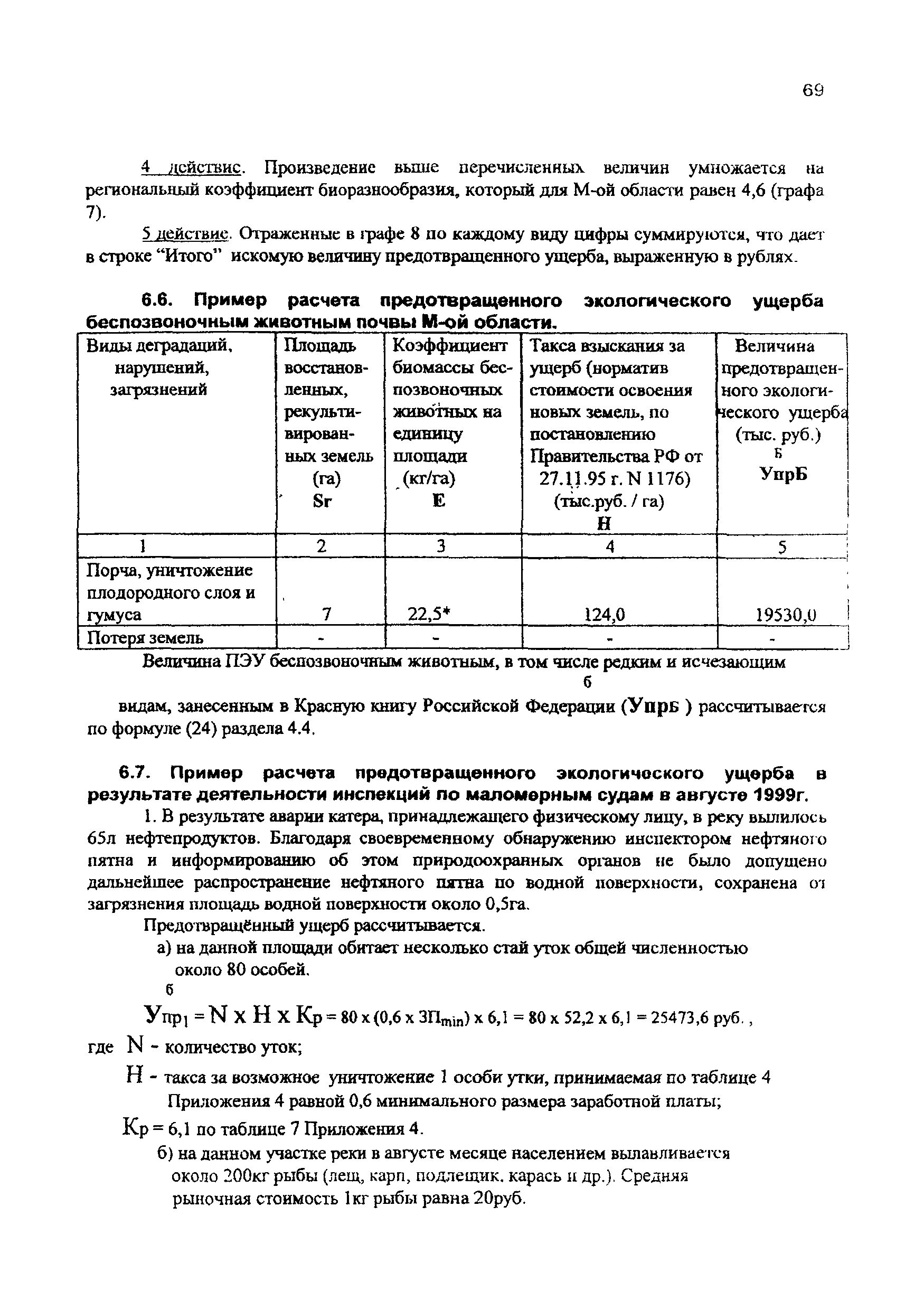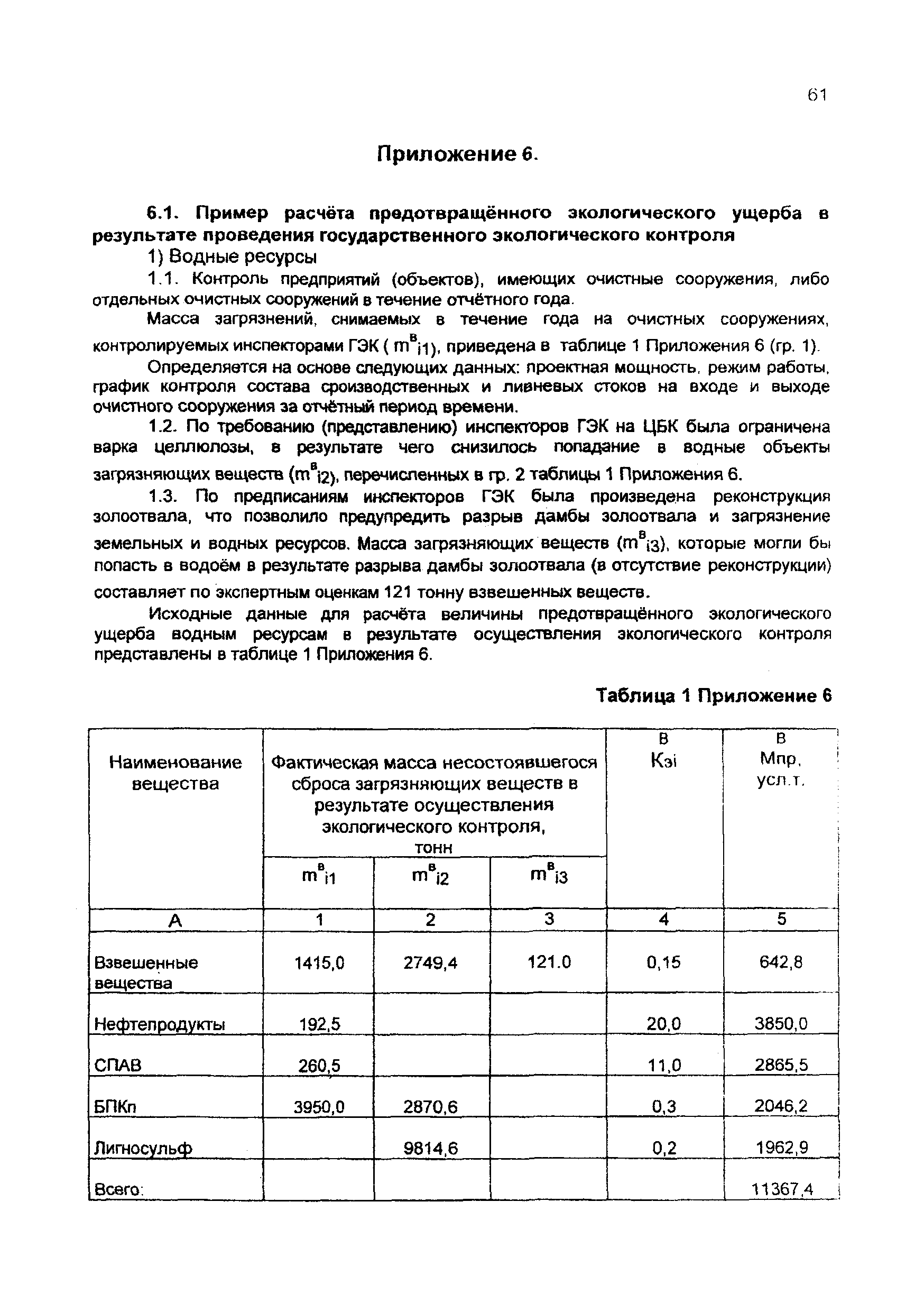 | Оглавление: | I. Общие положения II. Термины и определения III. Определение предотвращенного экологического ущерба по основным направлениям природоохранной деятельности территориальных природоохранных органов 3.1. Государственный экологический контроль 3.2. Государственная экологическая экспертиза 3.3. Реализация экологических программ 3.4. Организация и функционирование особо охраняемых природных территорий 3.5. Выполнение обязательств по международному сотрудничеству 3.6. Природоохранная деятельность государственных инспекций по маломерным судам 3.7. Государственный контроль по охране морской среды и природных ресурсов во внутренних морских территориальных водах, континентальном шельфе и в исключительной экономической зоне РФ 3.8. Государственный аналитический контроль 3.9. Определение общей величины предотвращенного экологического ущерба IV. Определение величины предотвращенного экологического ущерба от антропогенного воздействия на 4.1. Водные ресурсы 4.2. Атмосферный воздух 4.3. Земельные ресурсы 4.4. Биоресурсы V. Определение величины предотвращенного экологического ущерба окружающей природной среды от снижения загрязнения отходами производства и потребления Приложение 1 Приложение 2 Приложение 3 Приложение 4 Приложение 5 Приложение 6 Список литературы |