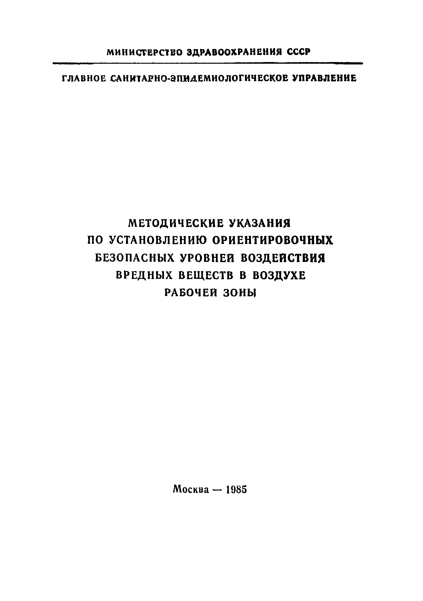 | Название рус.: | Методические указания по установлению ориентировочных безопасных уровней воздействия вредных веществ в воздухе рабочей зоны |