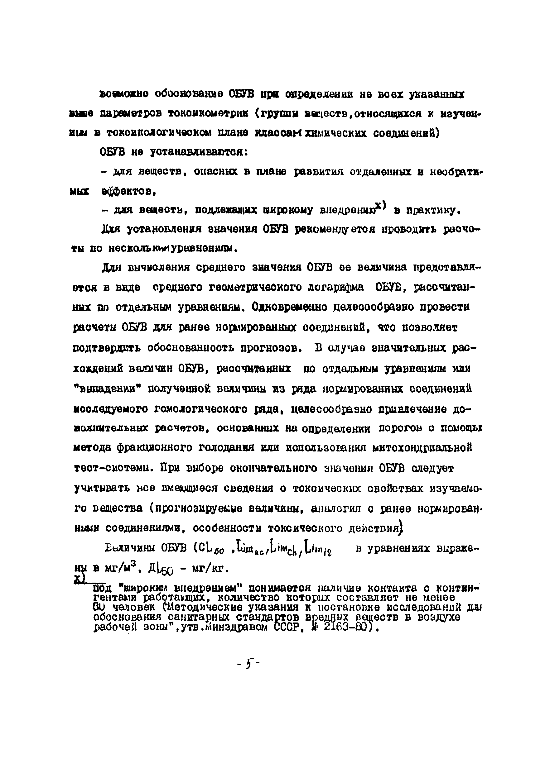 | Область применения: | Указания предназначены для определения величин ориентировочных безопасных уровней воздействия (ОБУВ) вредных веществ в воздухе рабочей зоны и рекомендованы для НИИ гигиенического профиля, медицинских институтов, токсикологических лабораторий различных министерств и ведомств. |