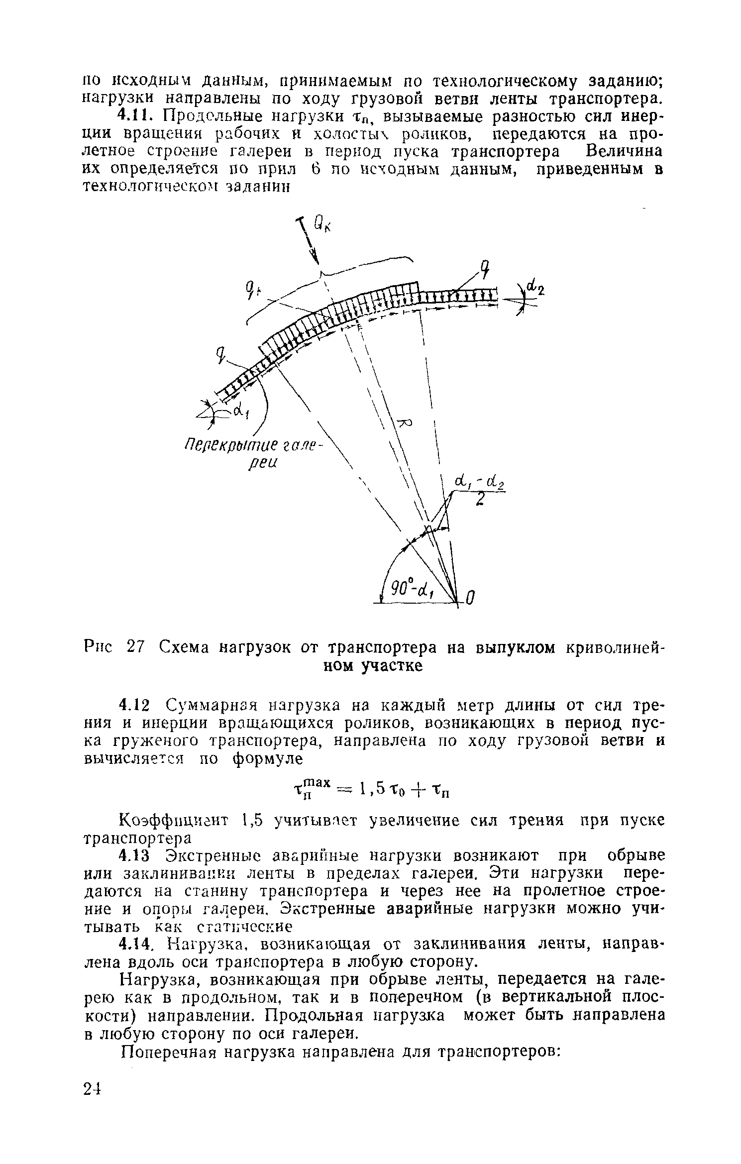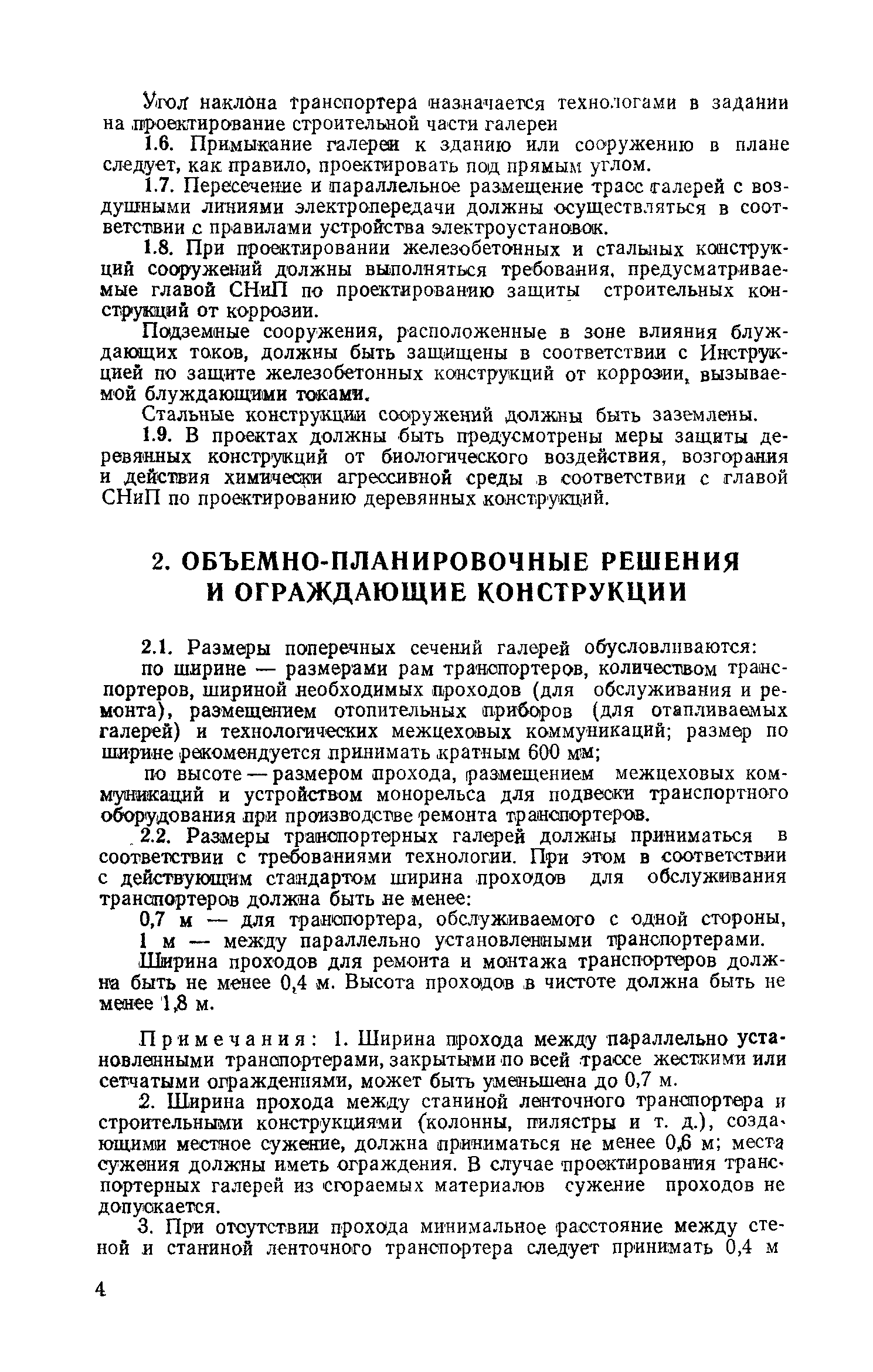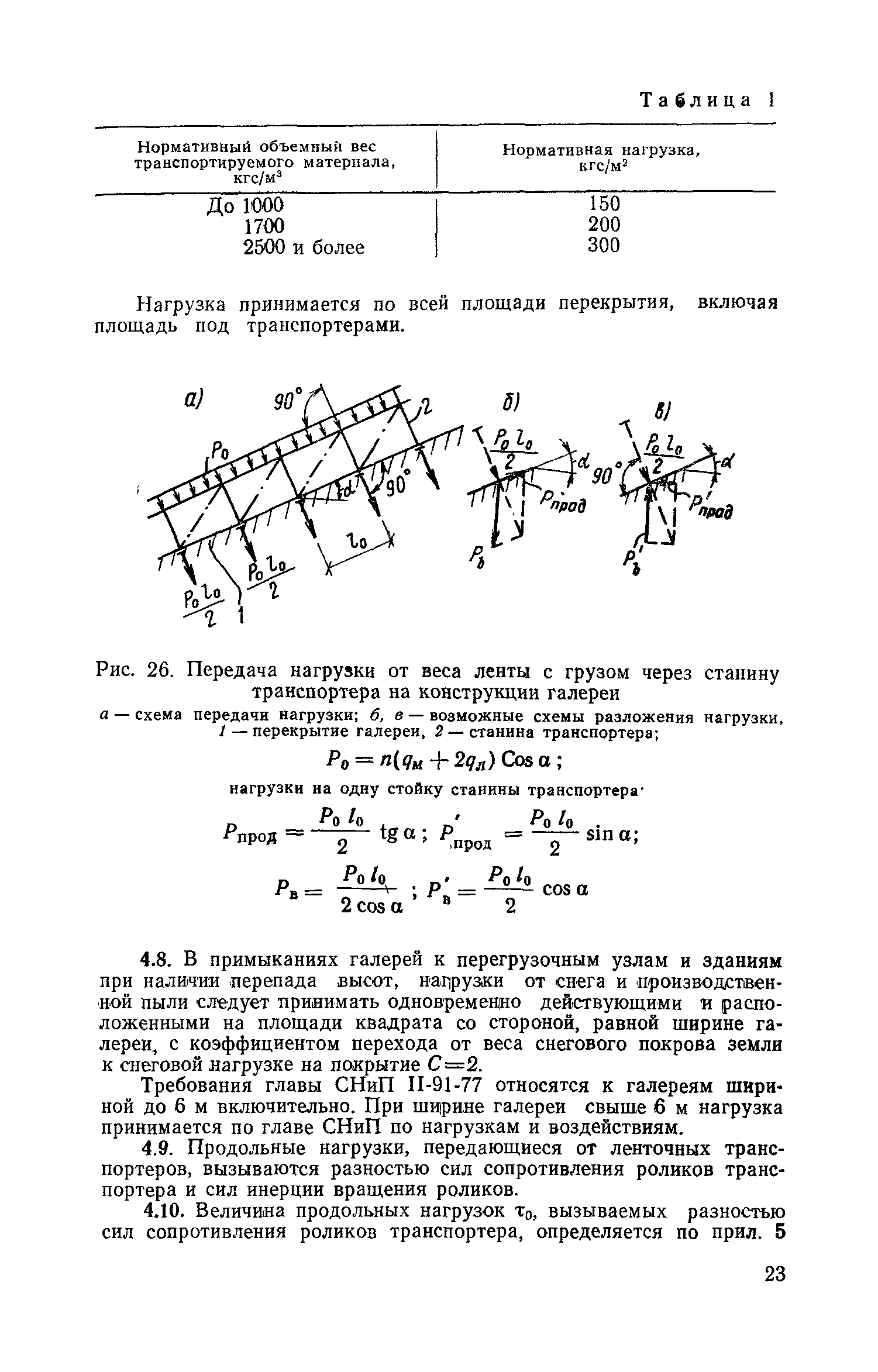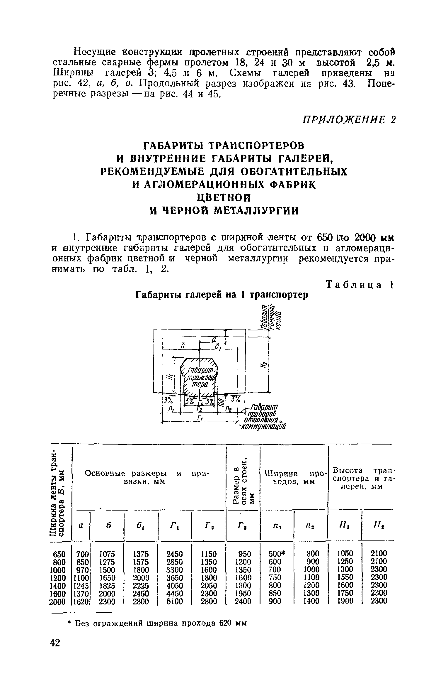 | Оглавление: | 1 Общие положения 2 Объемно-планировочные решения и ограждающие конструкции 3 Конструктивные решения 4 Нагрузки и воздействия 5 Расчет строительных конструкций Приложение 1 Примеры решений галерей с различными конструктивными схемами Приложение 2 Габариты транспортеров и внутренние габариты галерей, рекомендуемые для обогатительных и агломерационных фабрик цветной и черной металлургии Приложение 3 Форма задания (образец) на проектирование строительной части галереи Приложение 4 Унифицированные технологические статические нагрузки от веса транспортируемого груза, ленты, роликоопор, металлоконструкций и просыпи на настиле средней части транспортера и нагрузки от подъемно-транспортных устройств Приложение 5 Определение продольных нагрузок от разности сил сопротивления рабочих и холостых роликов Приложение 6 Определение продольных нагрузок вызываемых разностью сил инерции вращения рабочих и холостых роликов Приложение 7 Определение экстренных (аварийных) нагрузок, вызываемых заклиниванием или обрывом ленты транспортера Приложение 8 Определение динамических нагрузок и расчет пролетных строений галерей на динамические нагрузки Приложение 9 Пример расчета конструкций галереи |