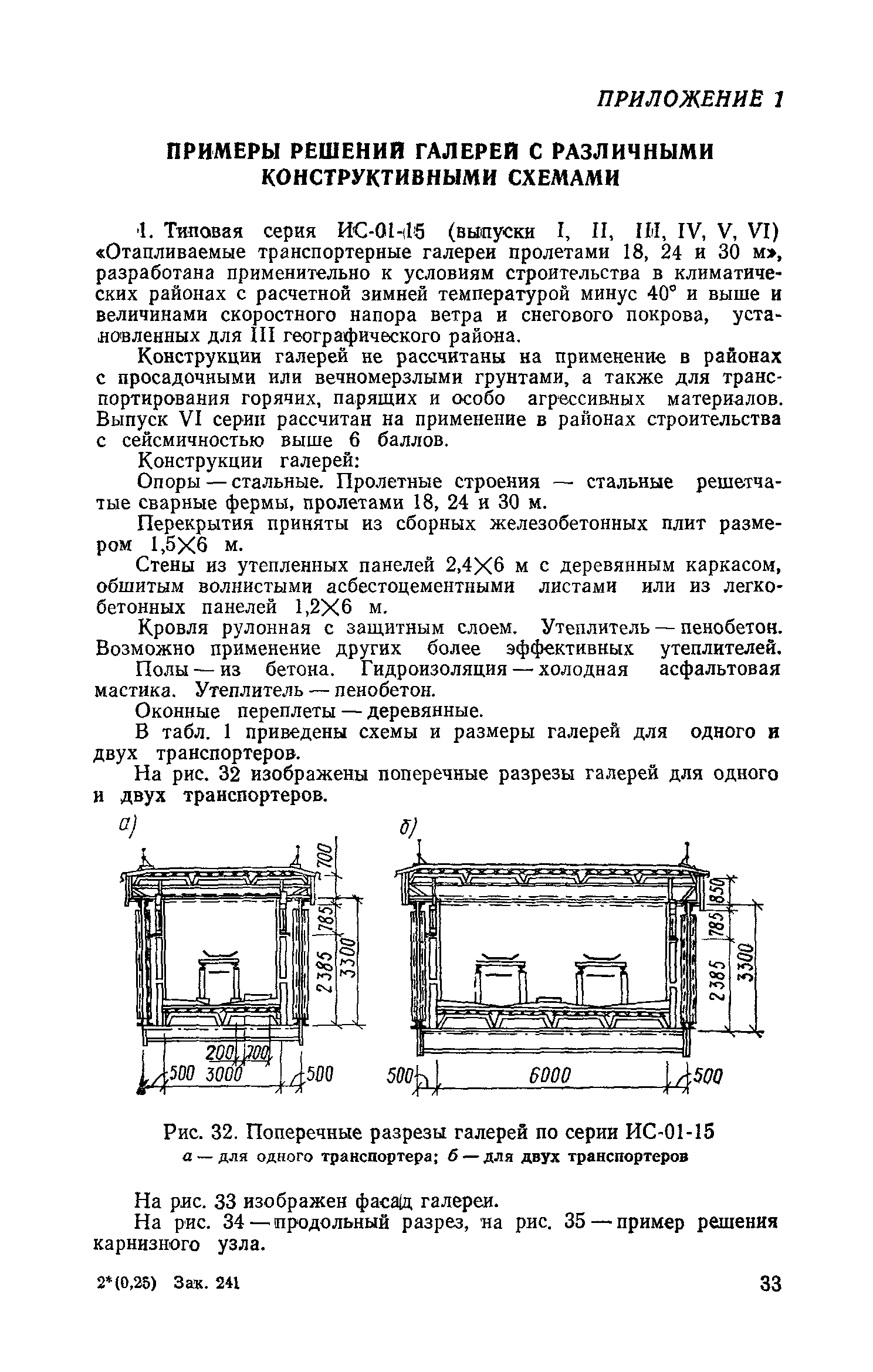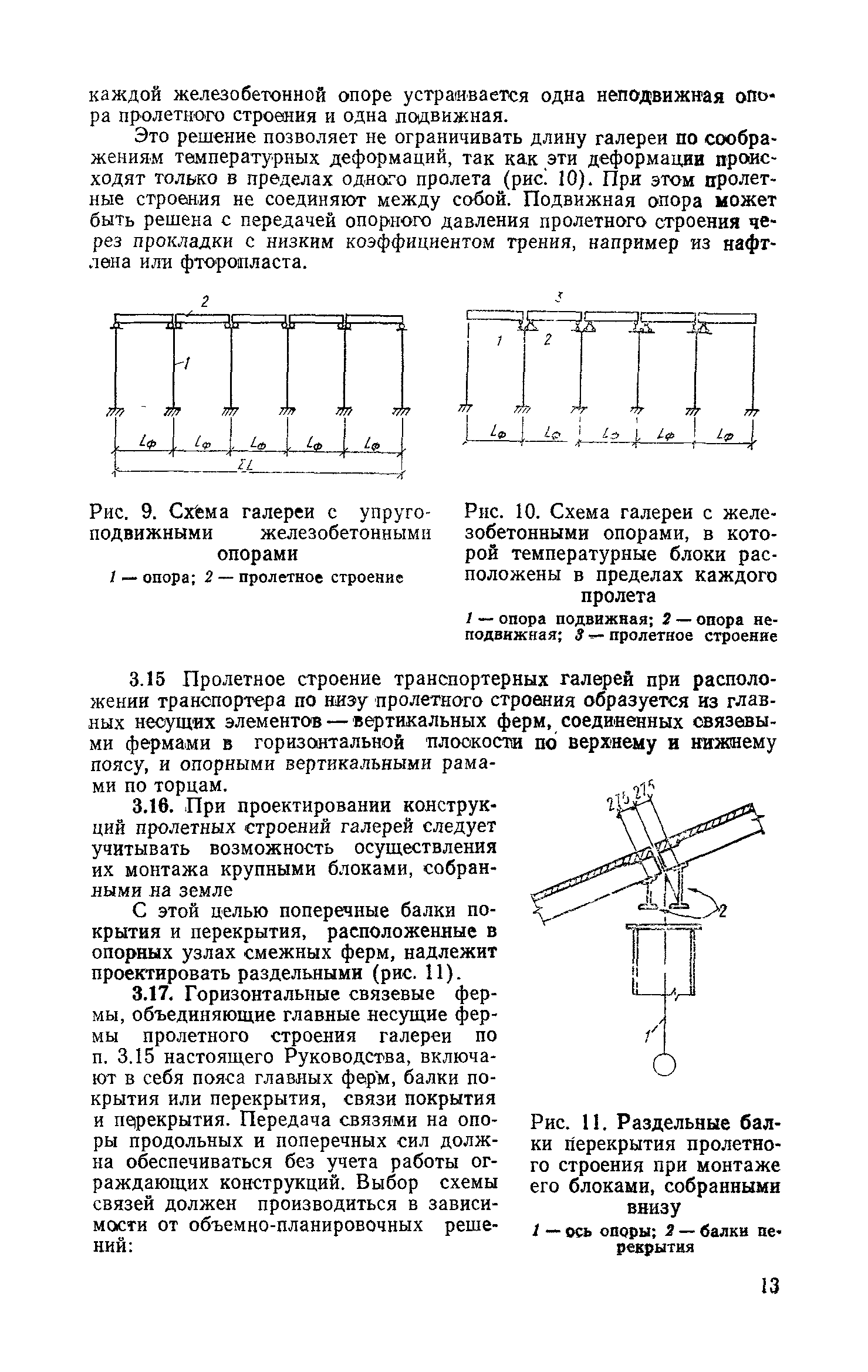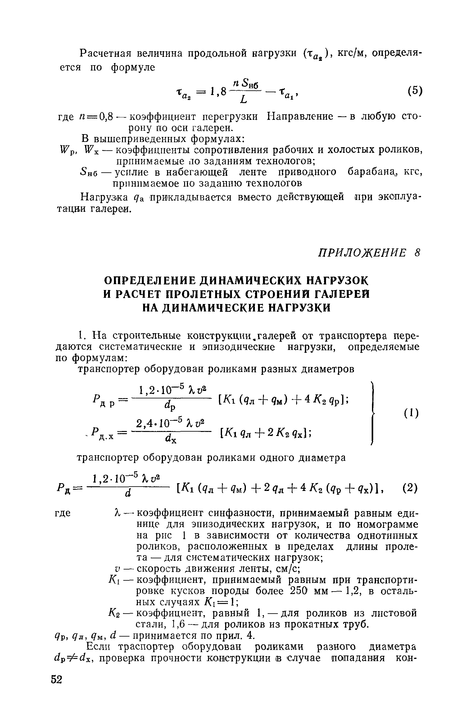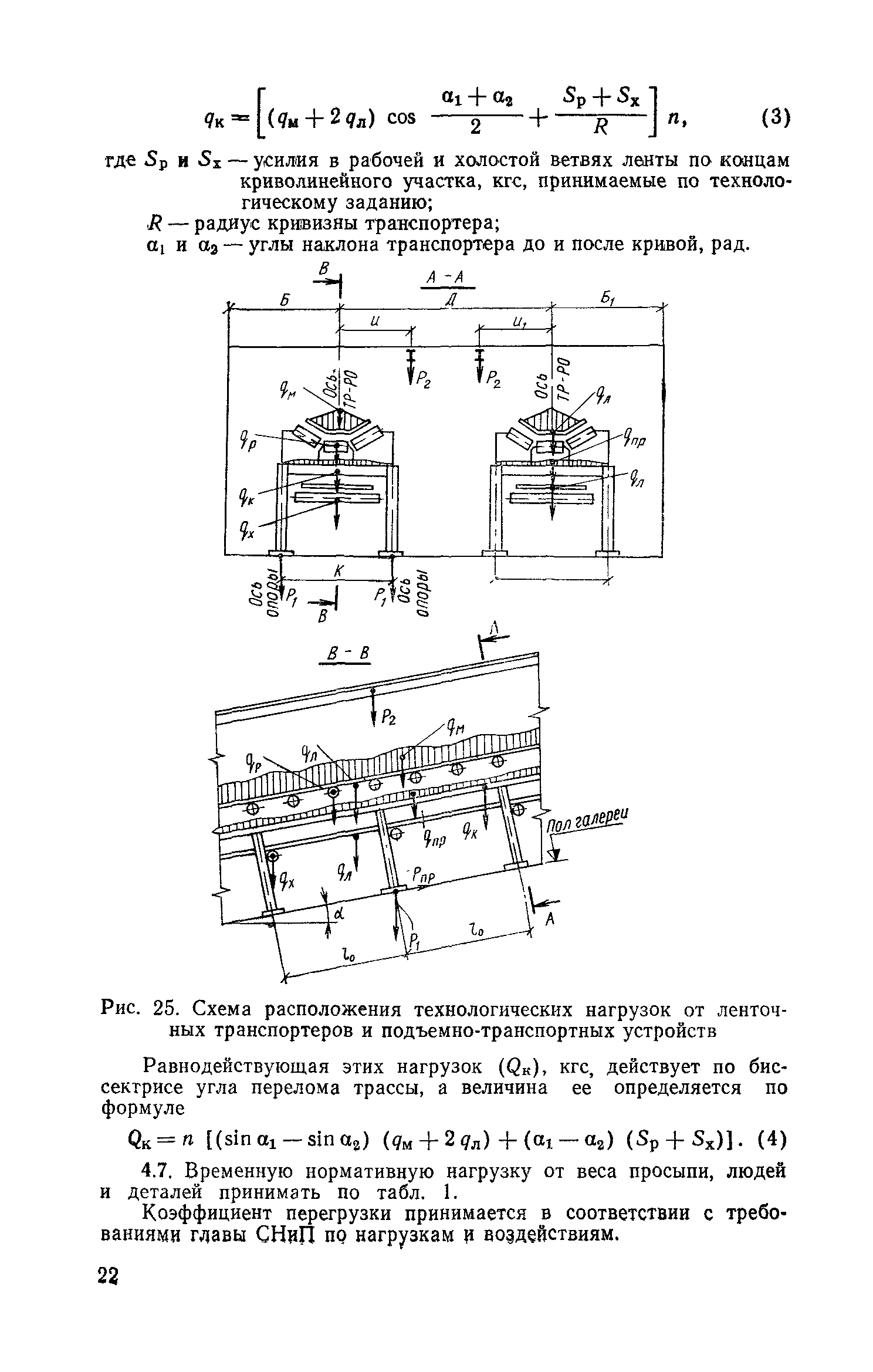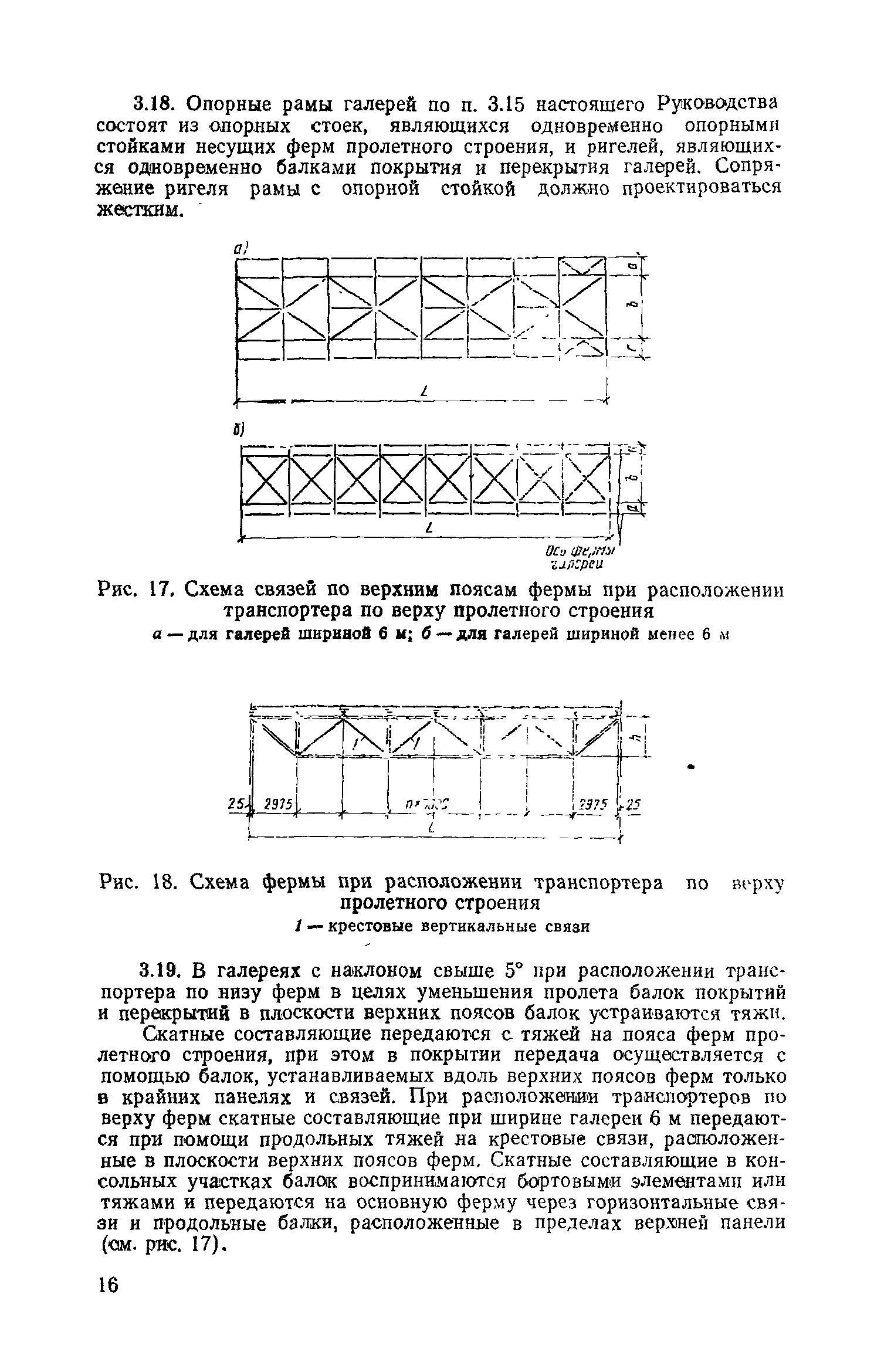 | Оглавление: | 1 Общие положения 2 Объемно-планировочные решения и ограждающие конструкции 3 Конструктивные решения 4 Нагрузки и воздействия 5 Расчет строительных конструкций Приложение 1 Примеры решений галерей с различными конструктивными схемами Приложение 2 Габариты транспортеров и внутренние габариты галерей, рекомендуемые для обогатительных и агломерационных фабрик цветной и черной металлургии Приложение 3 Форма задания (образец) на проектирование строительной части галереи Приложение 4 Унифицированные технологические статические нагрузки от веса транспортируемого груза, ленты, роликоопор, металлоконструкций и просыпи на настиле средней части транспортера и нагрузки от подъемно-транспортных устройств Приложение 5 Определение продольных нагрузок от разности сил сопротивления рабочих и холостых роликов Приложение 6 Определение продольных нагрузок вызываемых разностью сил инерции вращения рабочих и холостых роликов Приложение 7 Определение экстренных (аварийных) нагрузок, вызываемых заклиниванием или обрывом ленты транспортера Приложение 8 Определение динамических нагрузок и расчет пролетных строений галерей на динамические нагрузки Приложение 9 Пример расчета конструкций галереи |