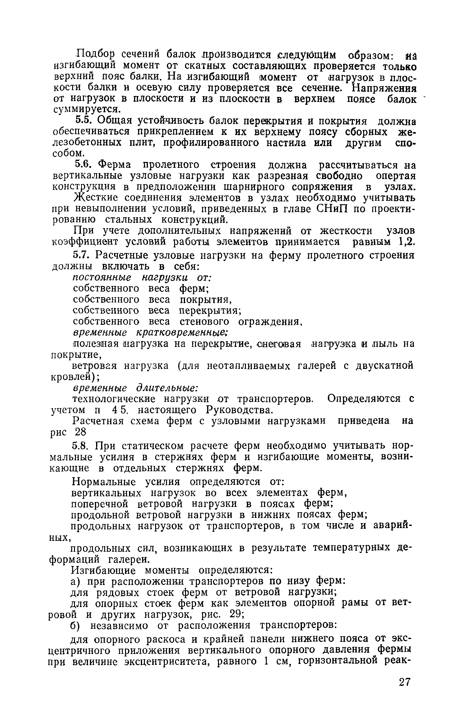 | Область применения: | Руководство составлено к главе СНиП II-91-77 "Сооружения промышленных предприятий". Руководство содержит основные положения по проектированию транспортерных галерей промышленных предприятий: материалы по объемно-планировочным и конструктивным решениям, определению статических и динамических нагрузок и воздействий, расчету несущих конструкций и рекомендации по конструированию. |