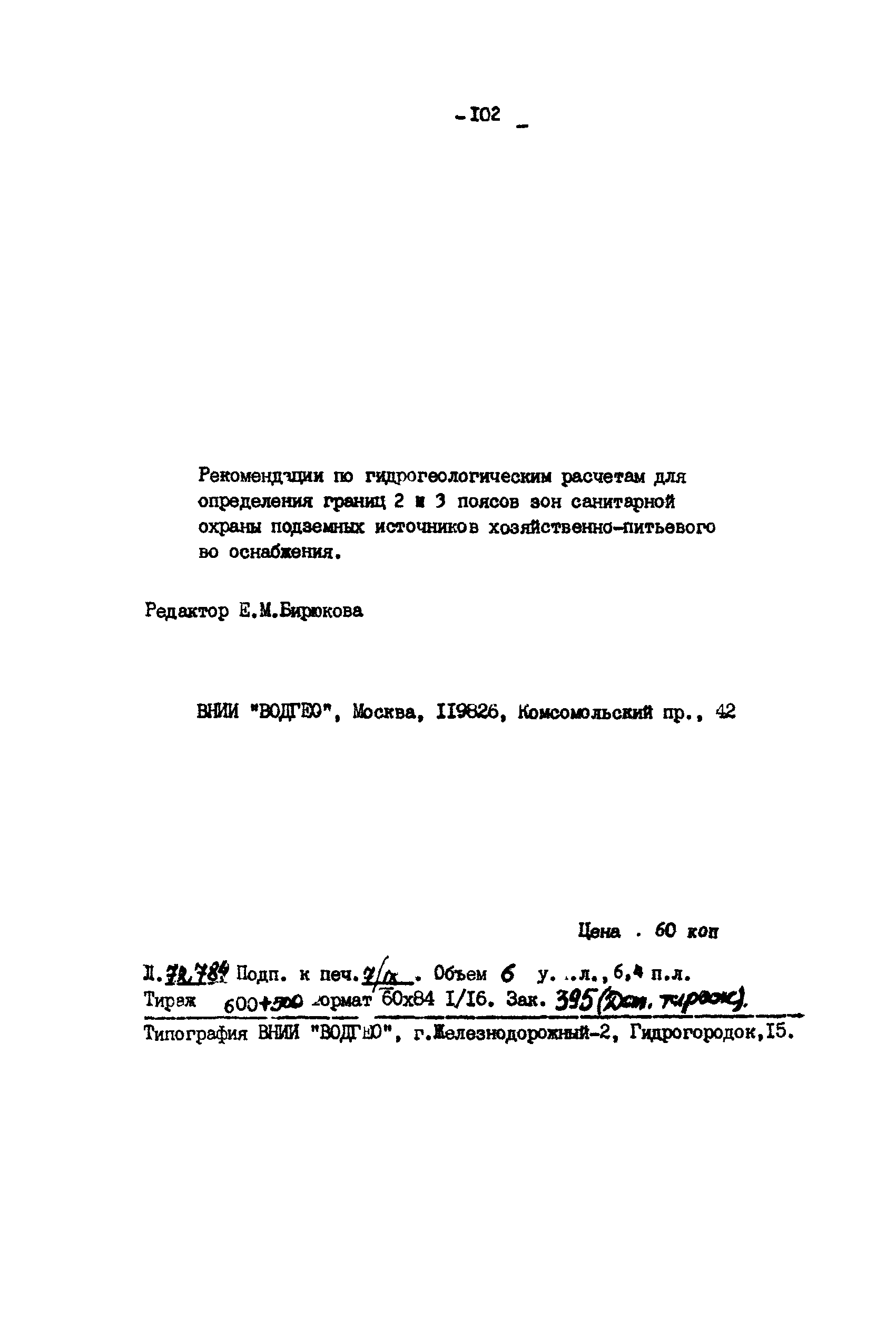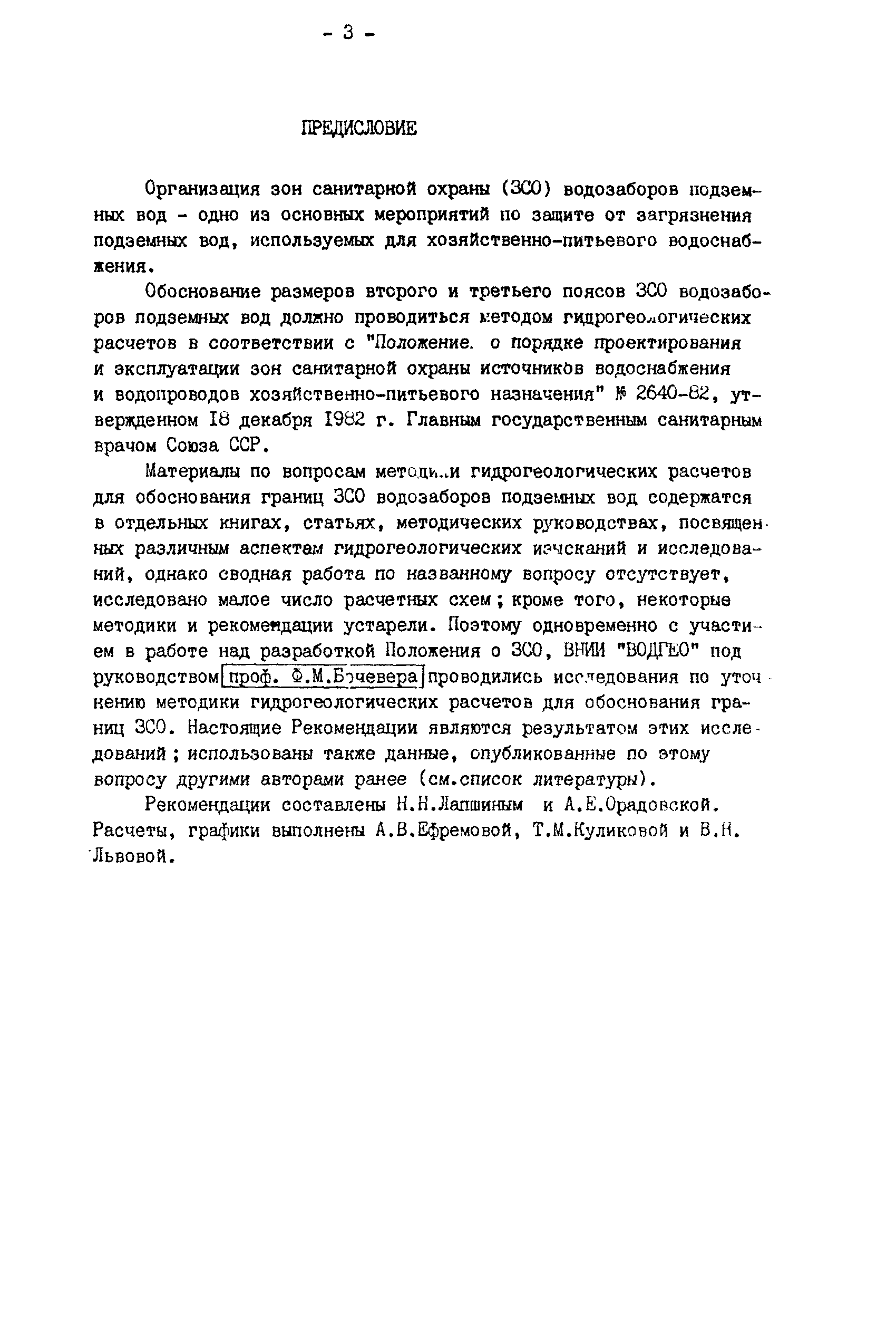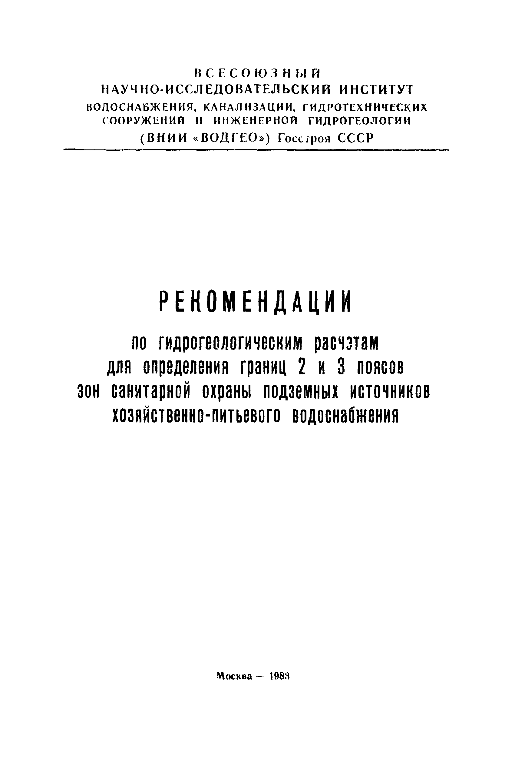 | Название рус.: | Рекомендации по гидрогеологическим расчетам для определения границ 2 и 3 поясов зон санитарной охраны подземных источников хозяйственно-питьевого водоснабжения |