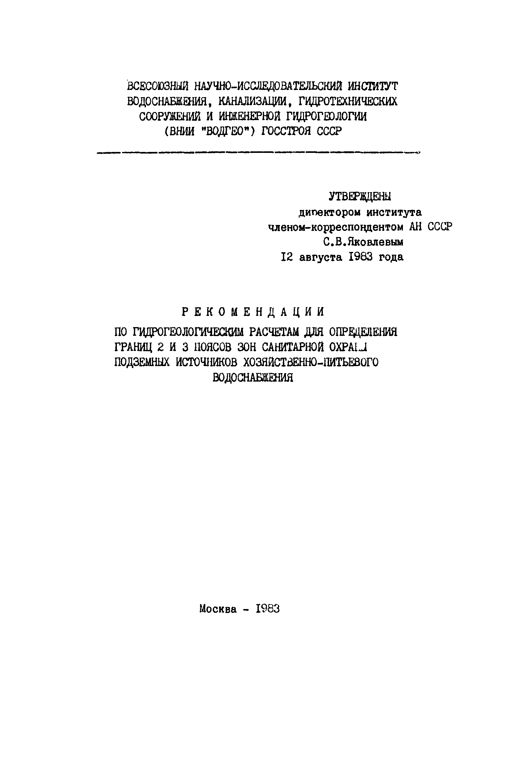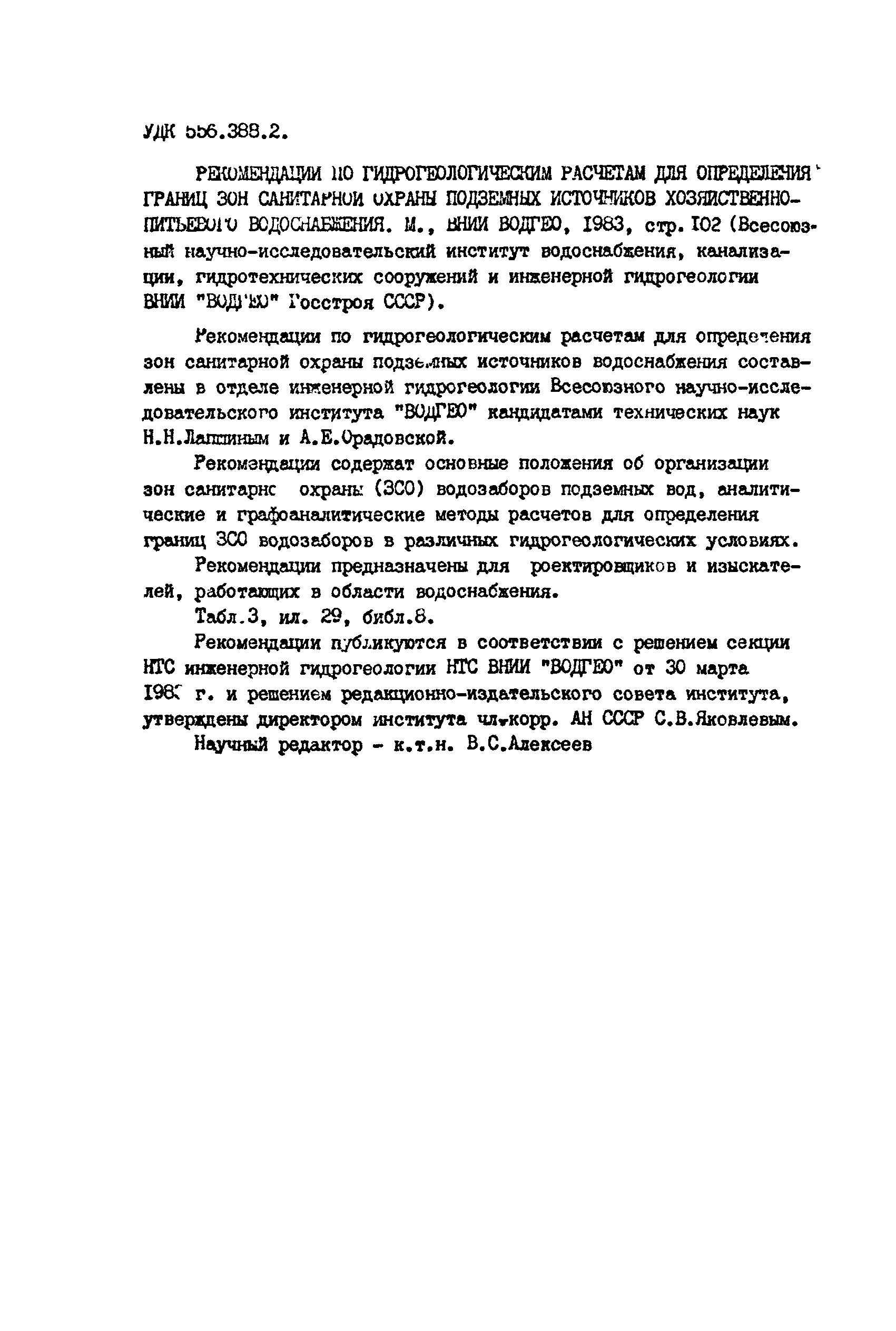| Утверждён: | 12.08.1983 ВНИИ ВОДГЕО (VODGEO VNII )