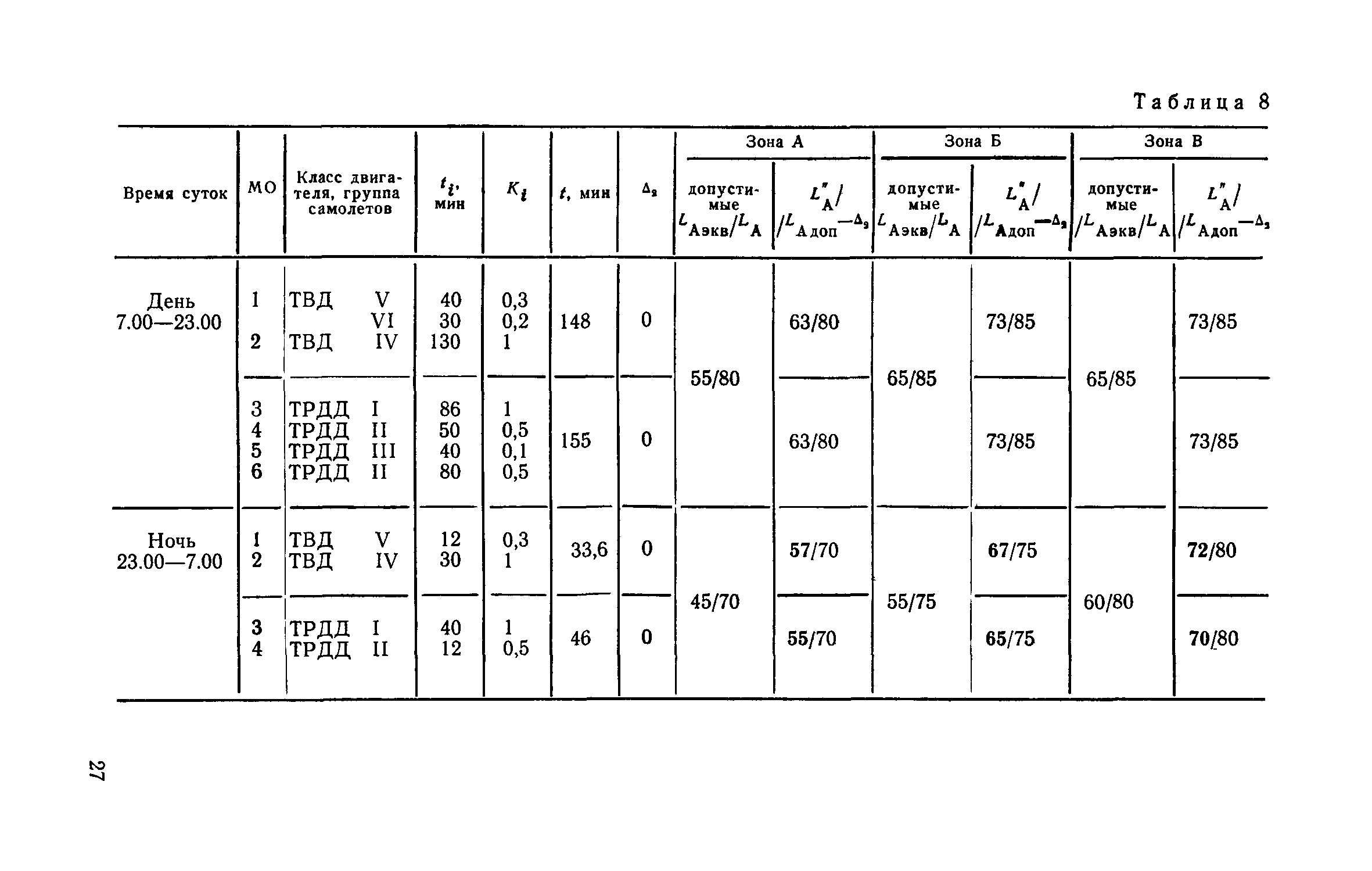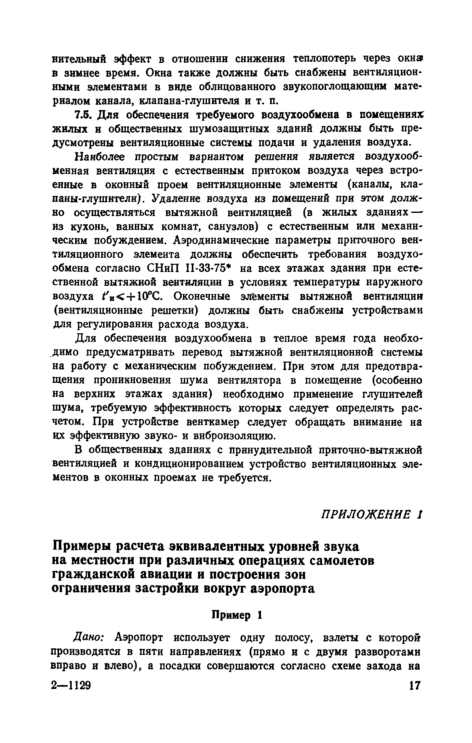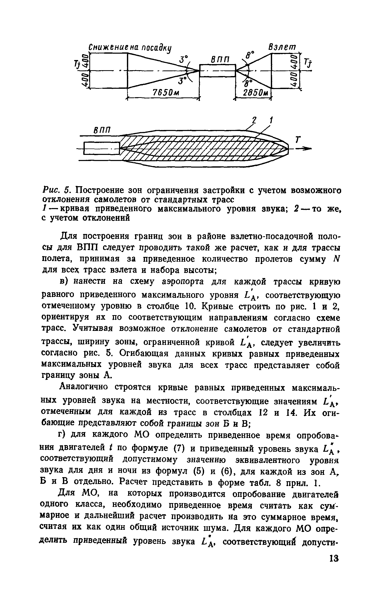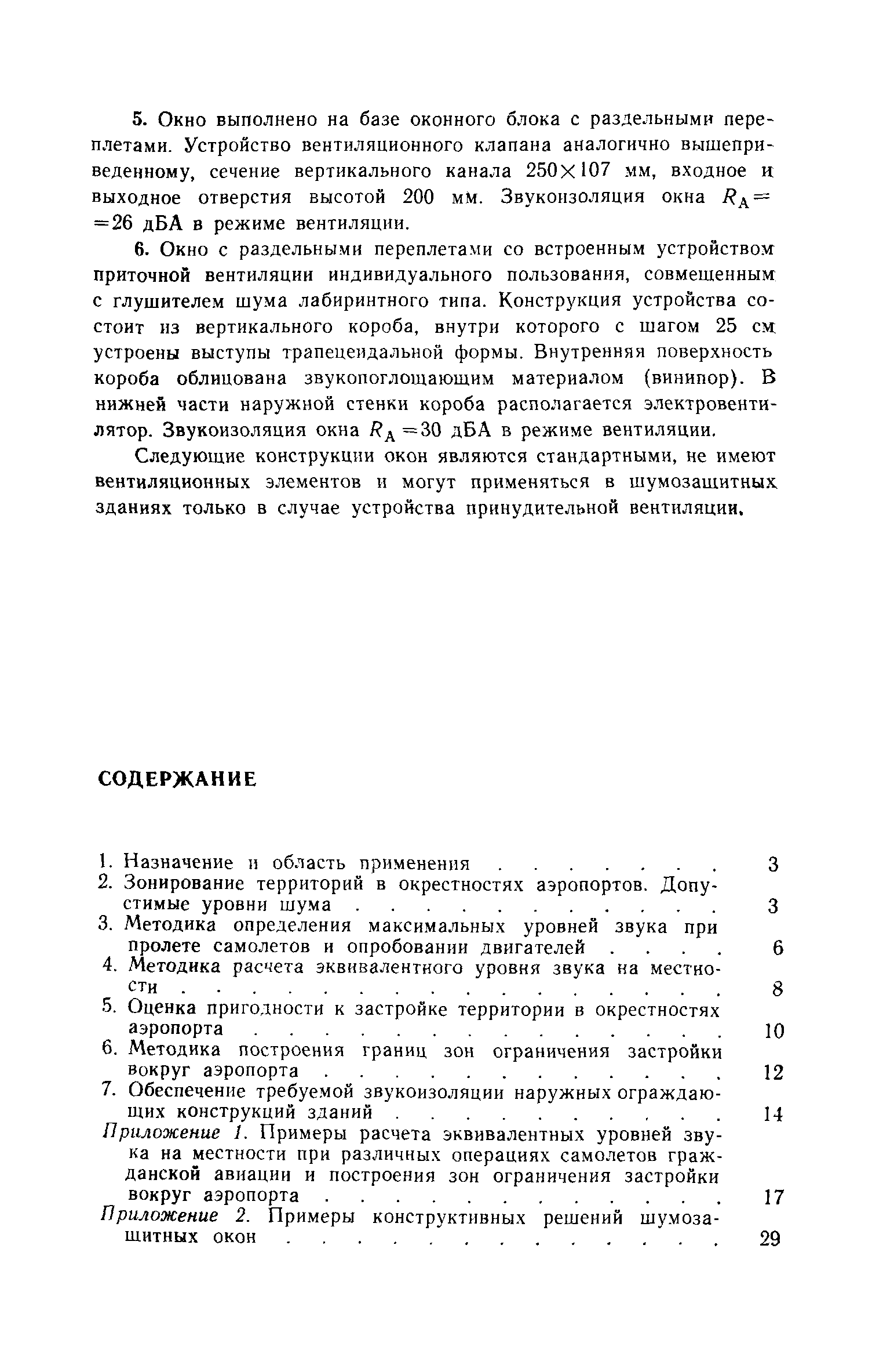 | Оглавление: | 1 Назначение и область применения 2 Зонирование территорий в окрестностях аэропортов. Допустимые уровни шума 3 Методика определения максимальных уровней звука при пролете самолетов и опробовании двигателей 4 Методика расчета эквивалентного уровня звука на местности 5 Оценка пригодности к застройке территории в окрестностях аэропорта 6 Методика построения границ зон ограничения застройки вокруг аэропорта 7 Обеспечение требуемой звукоизоляции наружных ограждающих конструкций зданий Приложение 1 Примеры расчета эквивалентных уровней звука на местности при различных операциях самолетов гражданской авиации и построения зон ограничения застройки вокруг аэропорта Приложение 2 Примеры конструктивных решений шумозащитных окон |