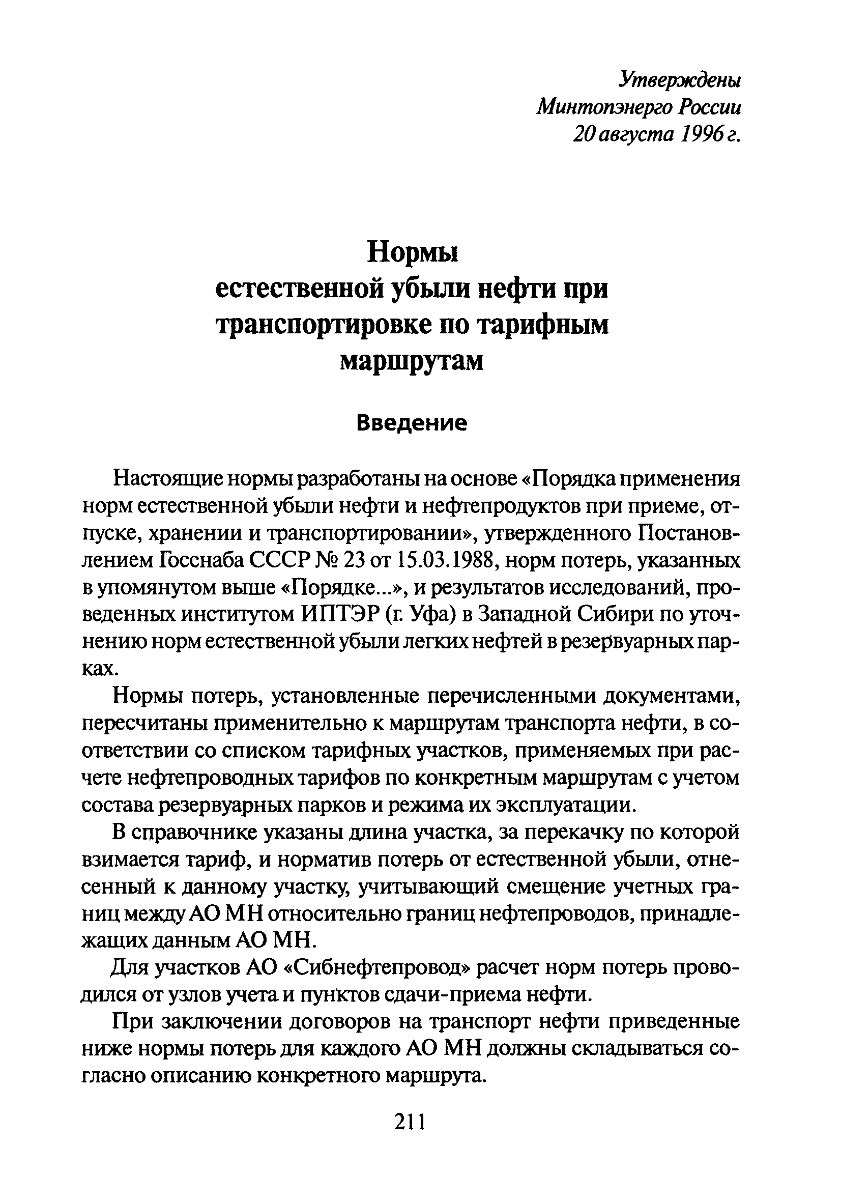 | Название рус.: | Нормы естественной убыли нефти при транспортировке по тарифным маршрутам |