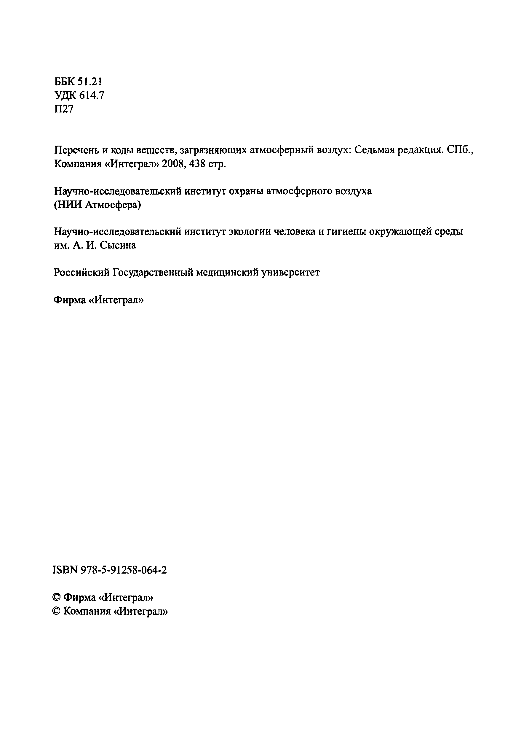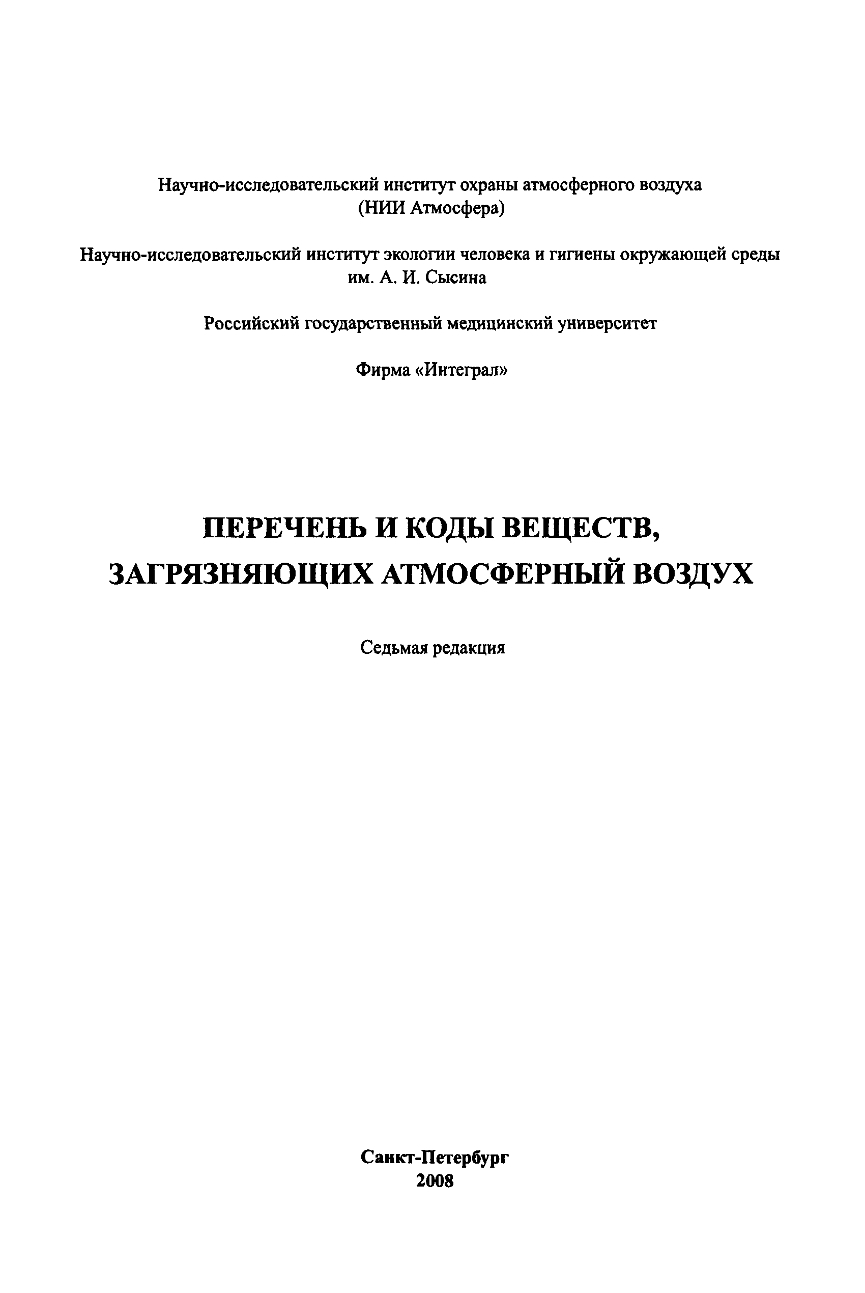 | Название рус.: | Перечень и коды веществ, загрязняющих атмосферный воздух (7 издание) |