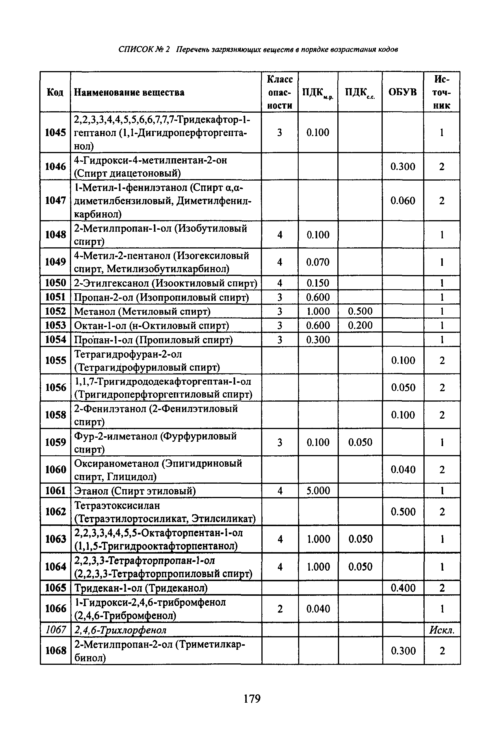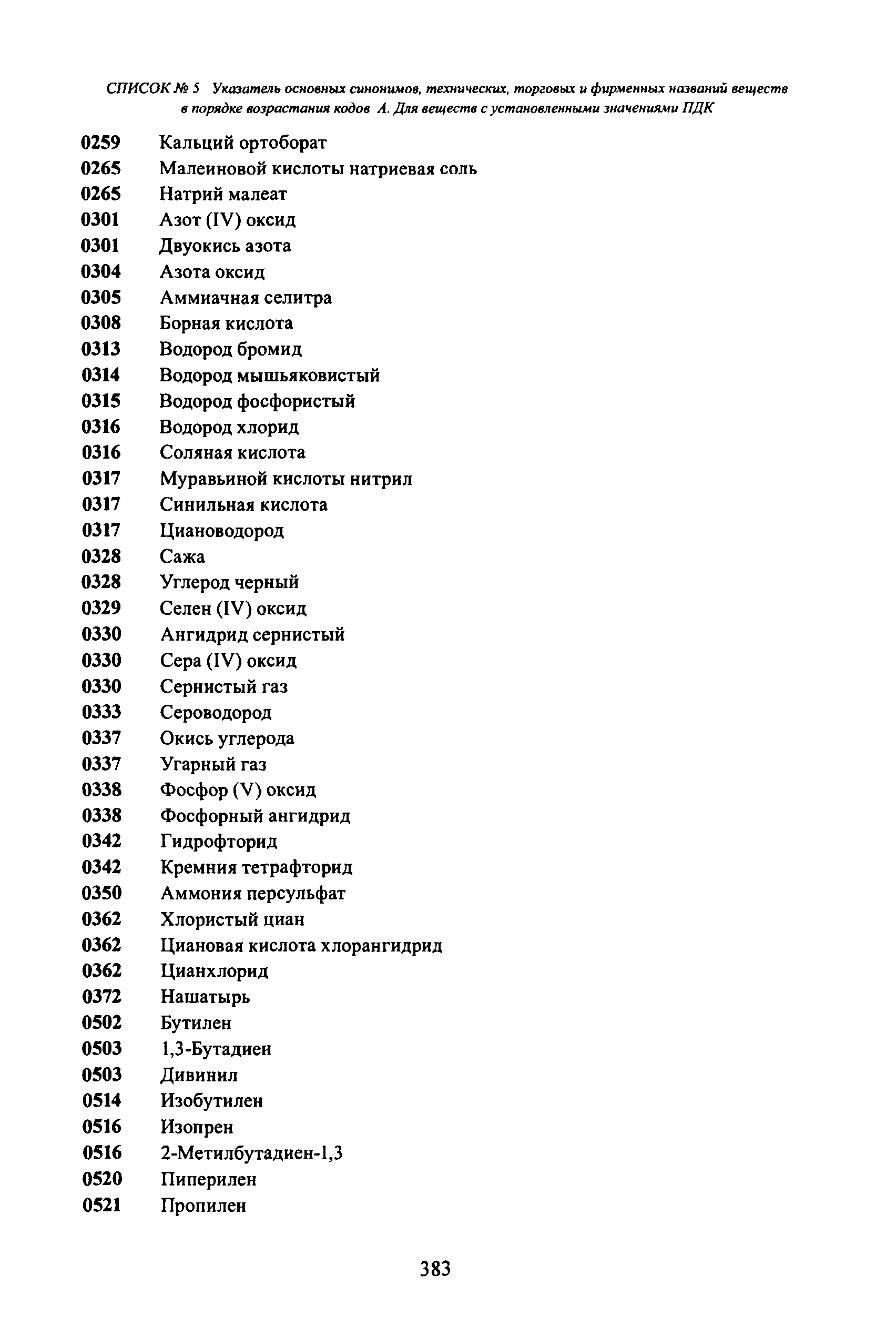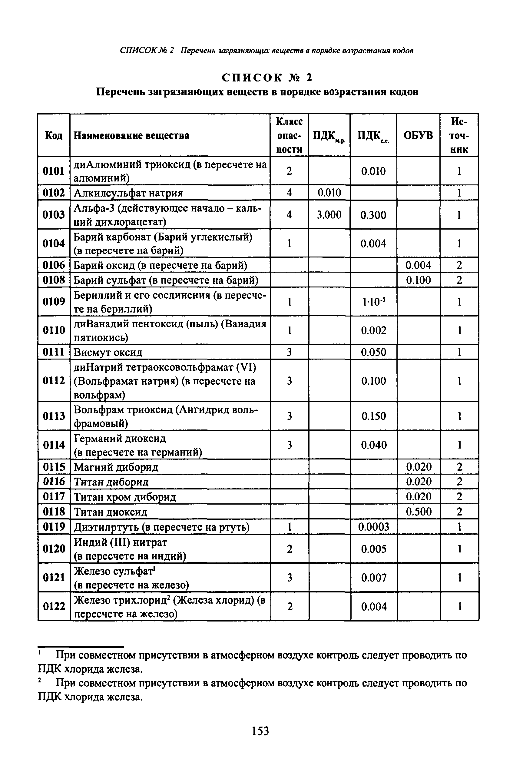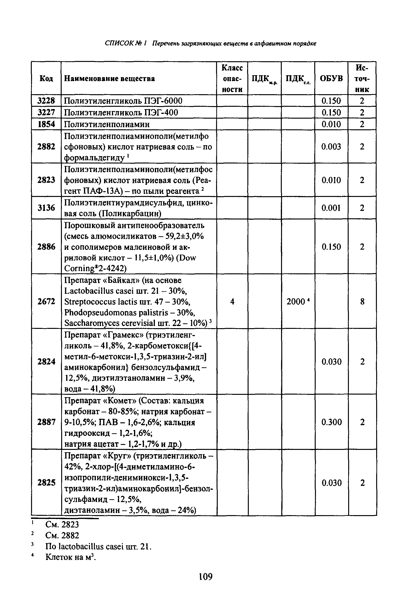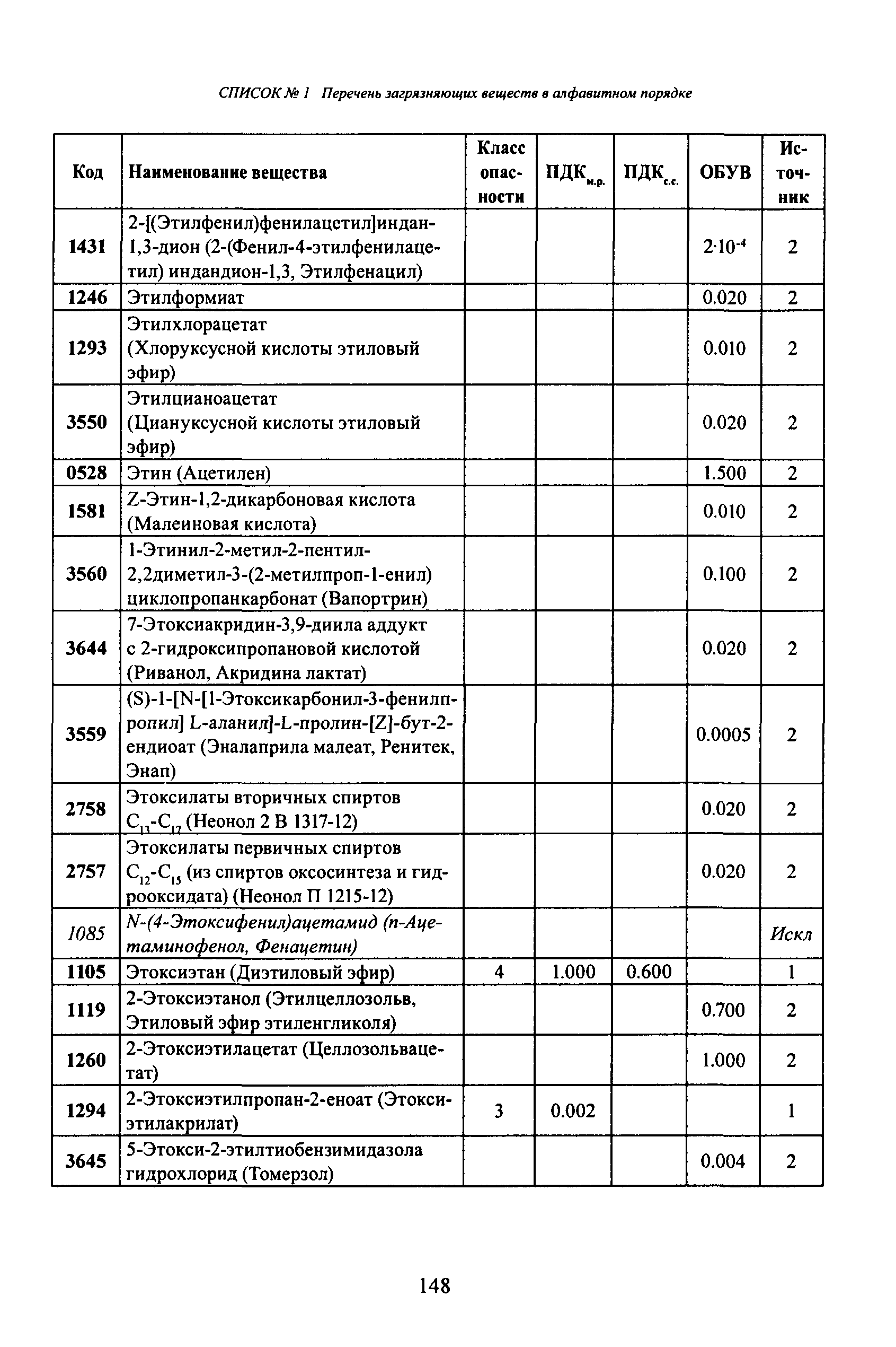 | Оглавление: | Введение Список № 1 Перечень загрязняющих веществ в алфавитном порядке Список № 2 Перечень загрязняющих веществ в порядке возрастания кодов Список № 3 Перечень ЛОС в порядке возрастания кодов Список № 4 Указатель основных синонимов, технических, торговых и фирменных названий веществ в алфавитном порядке А. Для веществ с установленными значениями ПДК Б. Для веществ с установленными значениями ОБУВ Список № 5 Указатель основных синонимов, технических, торговых и фирменных названий веществ в порядке возрастания кодов А. Для веществ с установленными значениями ПДК Б. Для веществ с установленными значениями ОБУВ |
