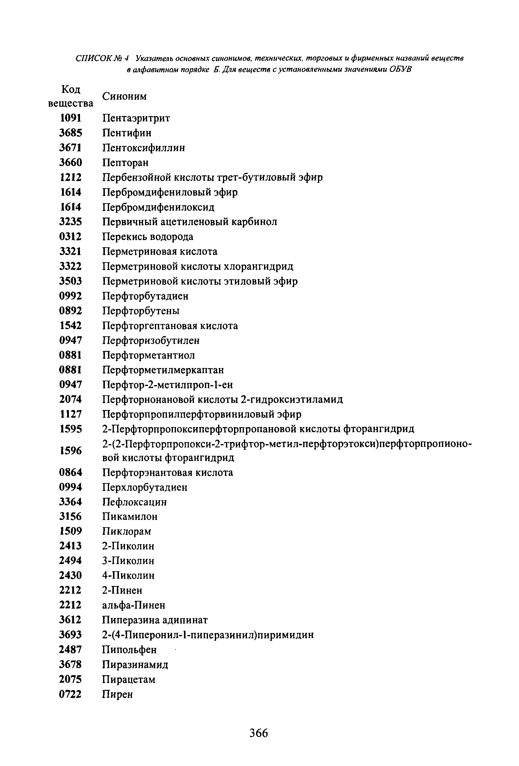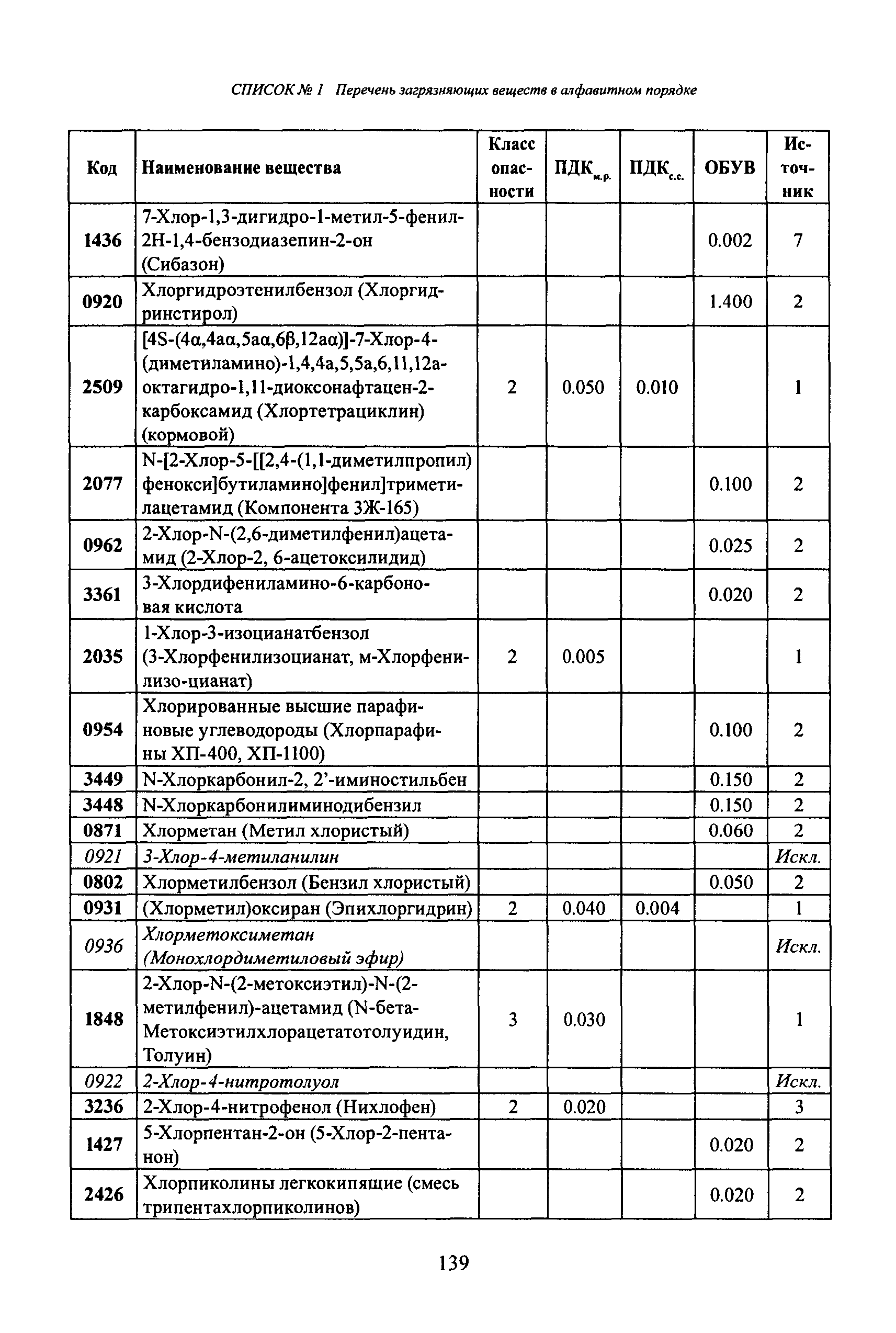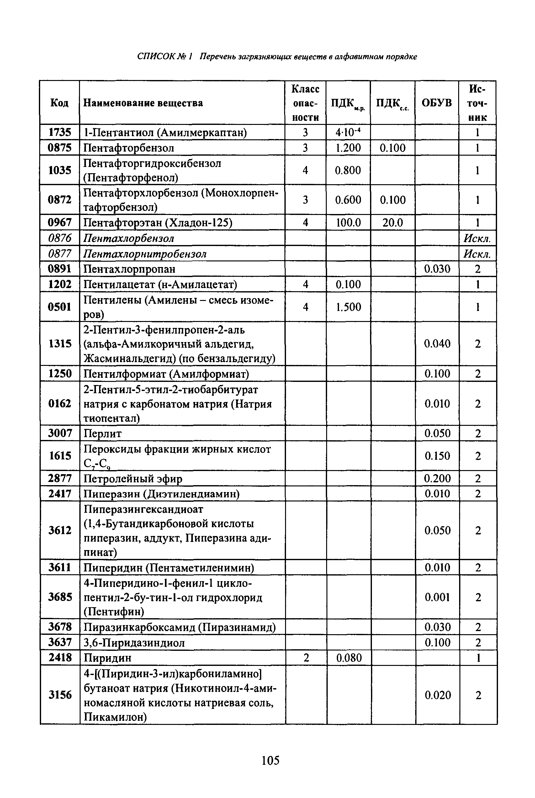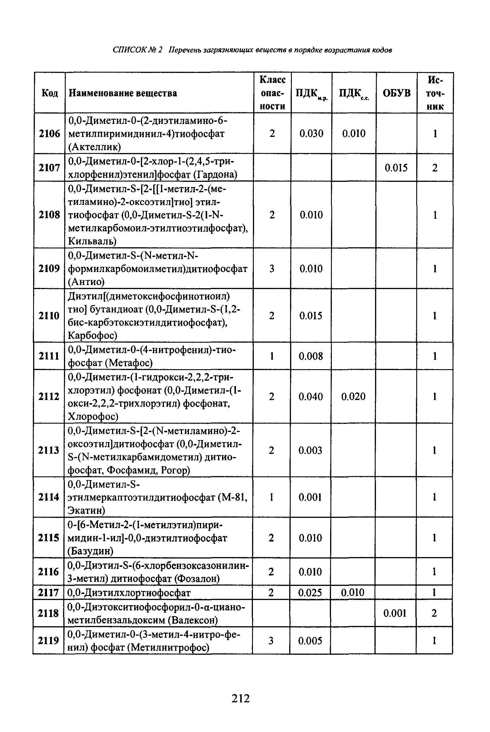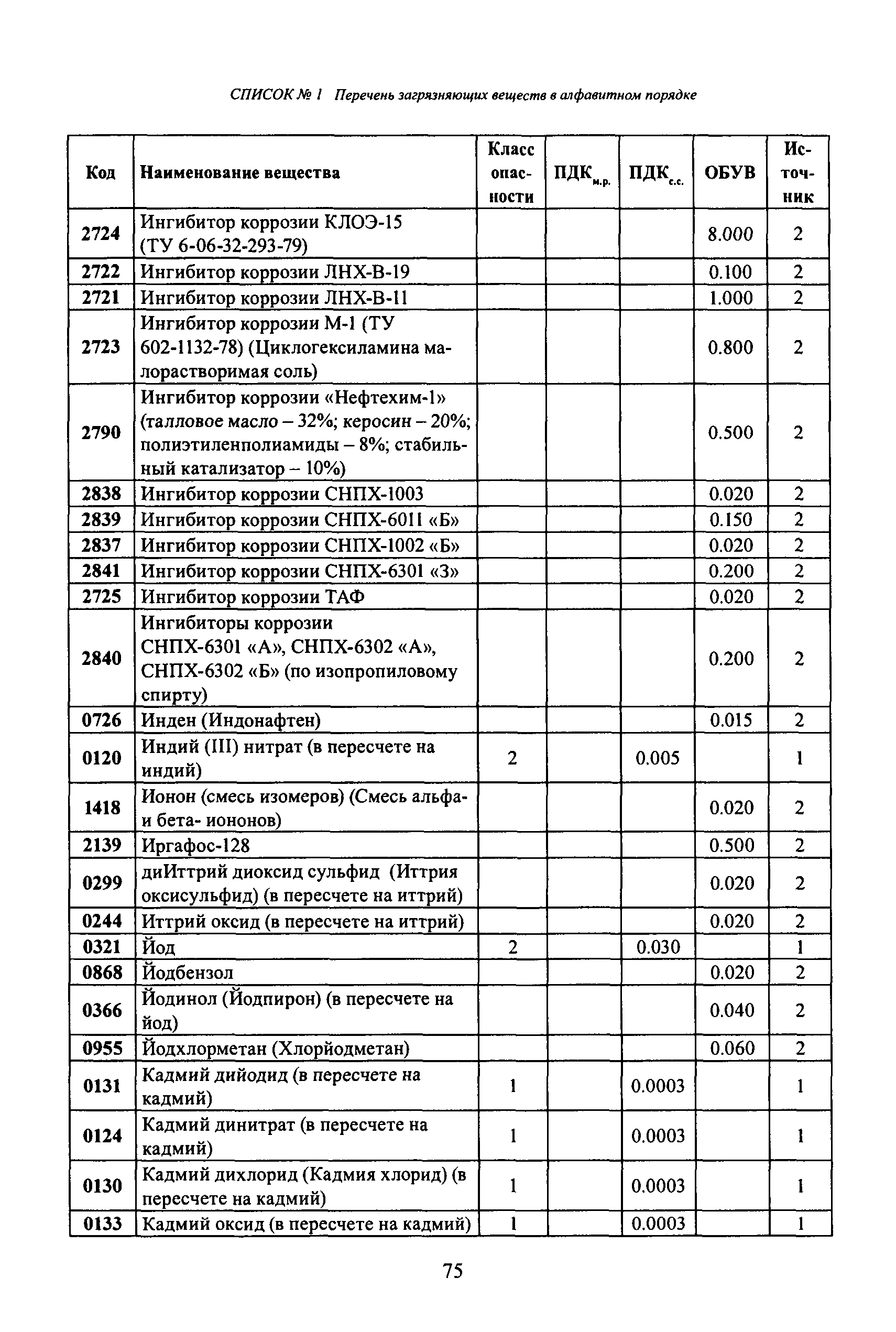 | Оглавление: | Введение Список № 1 Перечень загрязняющих веществ в алфавитном порядке Список № 2 Перечень загрязняющих веществ в порядке возрастания кодов Список № 3 Перечень ЛОС в порядке возрастания кодов Список № 4 Указатель основных синонимов, технических, торговых и фирменных названий веществ в алфавитном порядке А. Для веществ с установленными значениями ПДК Б. Для веществ с установленными значениями ОБУВ Список № 5 Указатель основных синонимов, технических, торговых и фирменных названий веществ в порядке возрастания кодов А. Для веществ с установленными значениями ПДК Б. Для веществ с установленными значениями ОБУВ |