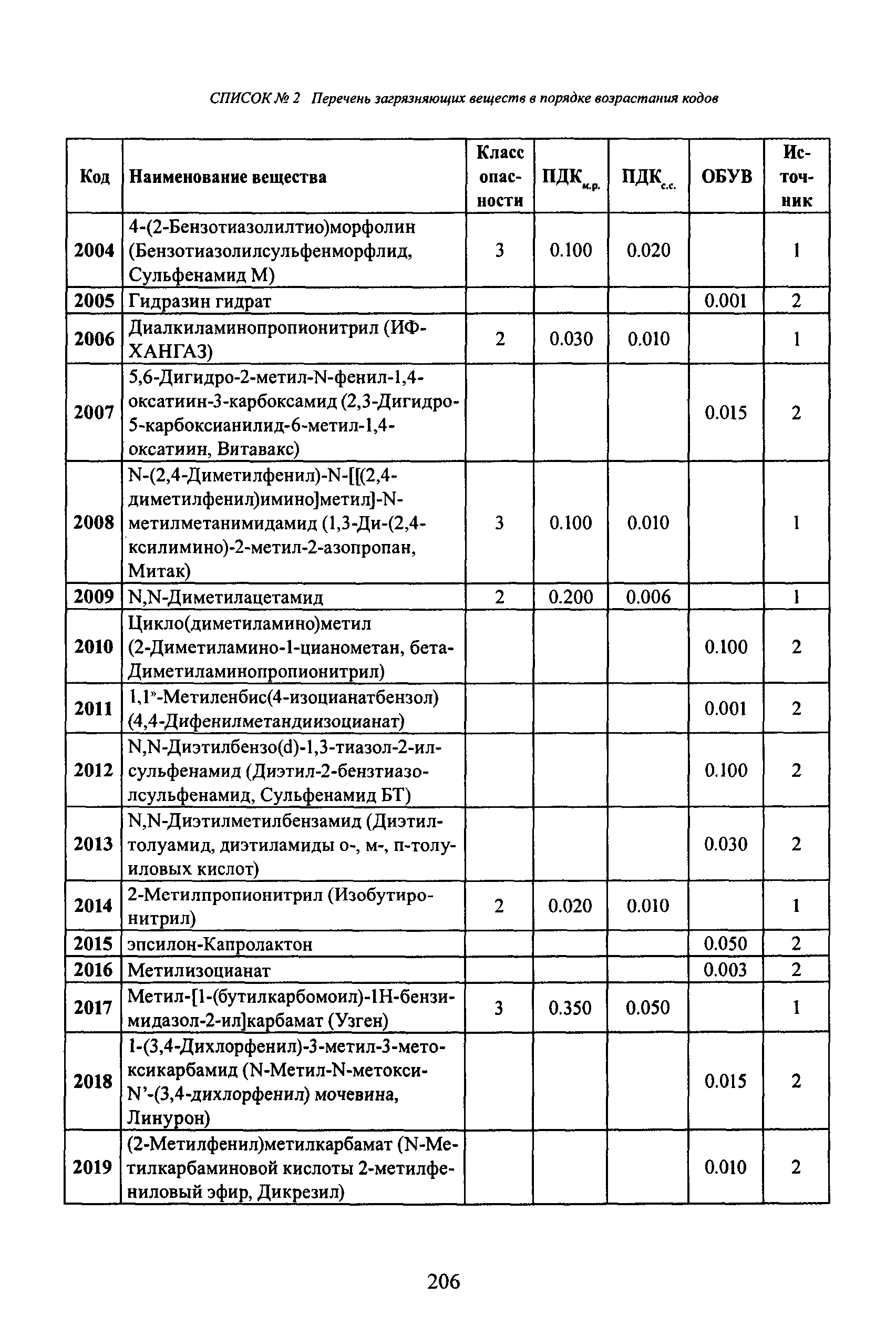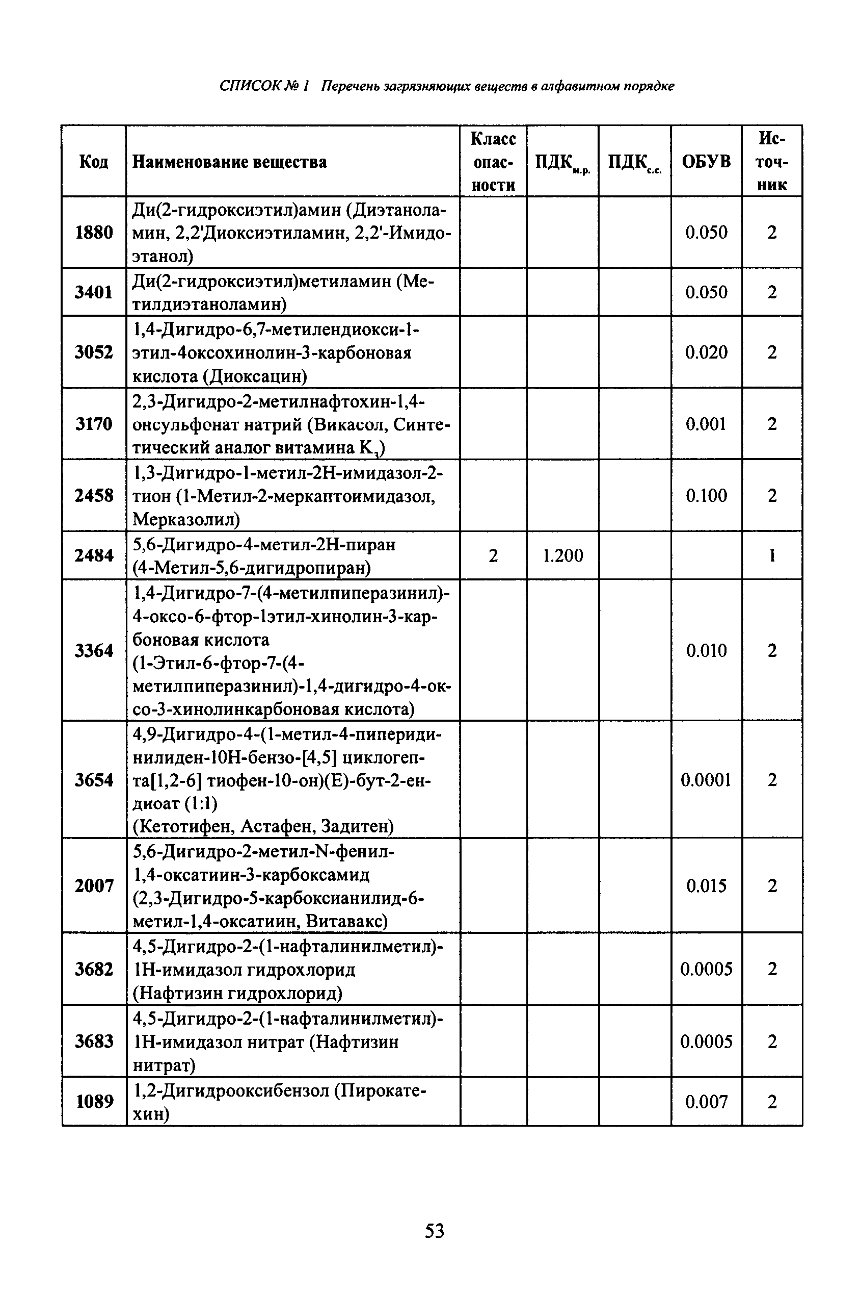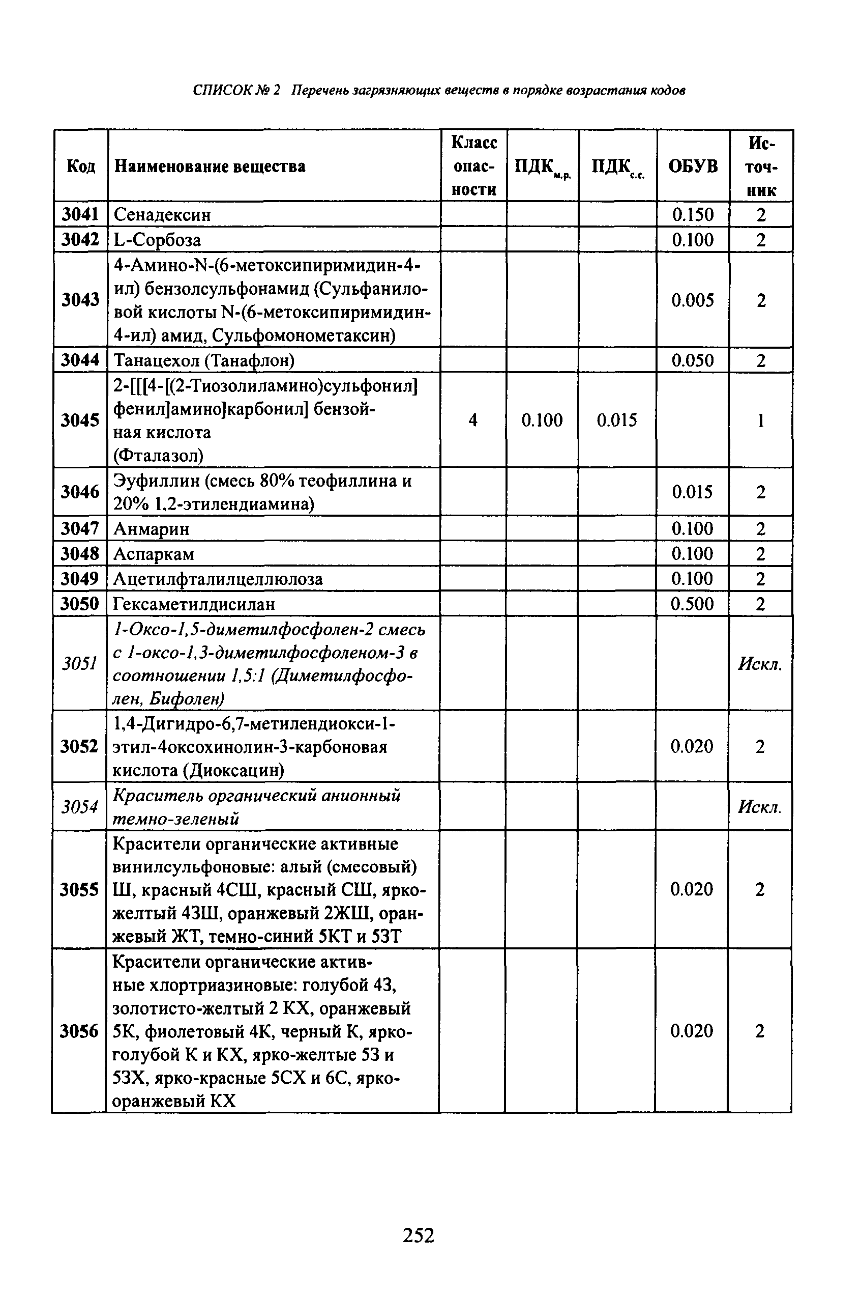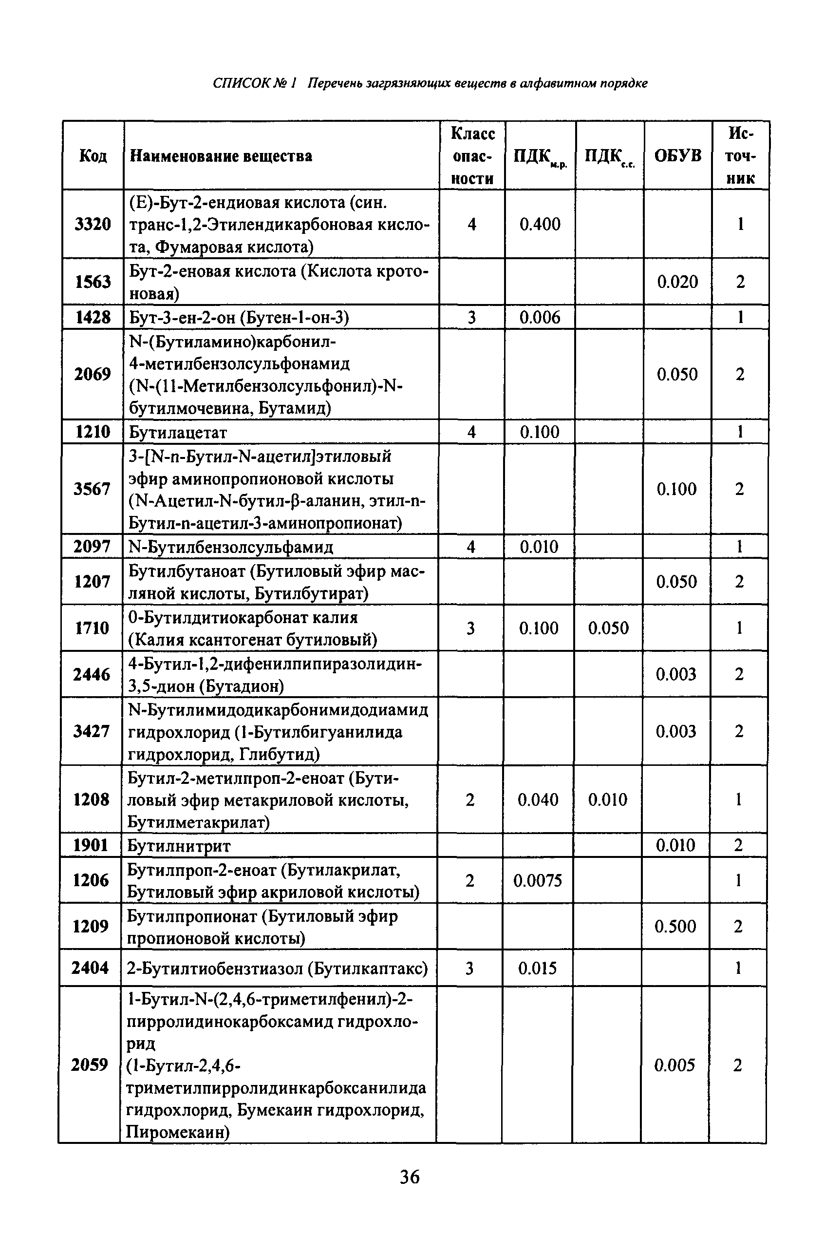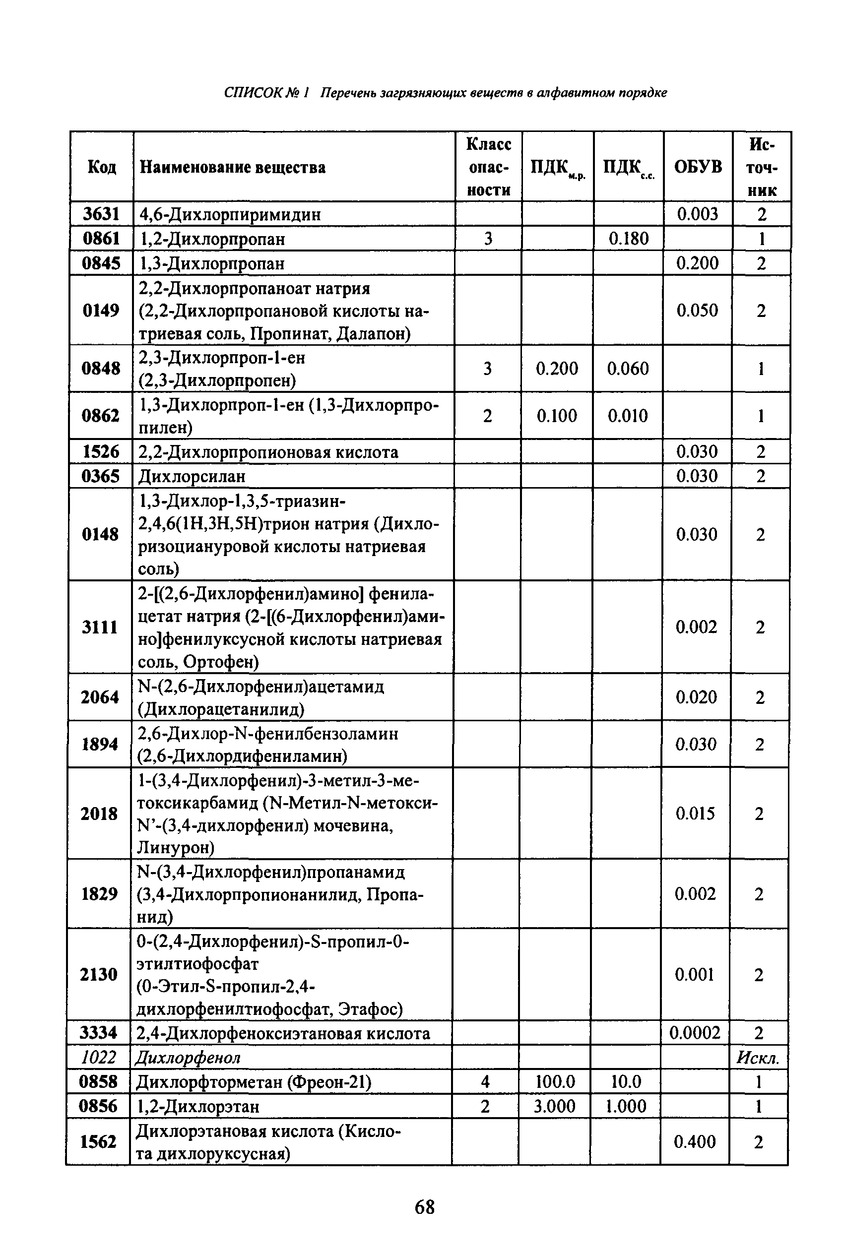 | Оглавление: | Введение Список № 1 Перечень загрязняющих веществ в алфавитном порядке Список № 2 Перечень загрязняющих веществ в порядке возрастания кодов Список № 3 Перечень ЛОС в порядке возрастания кодов Список № 4 Указатель основных синонимов, технических, торговых и фирменных названий веществ в алфавитном порядке А. Для веществ с установленными значениями ПДК Б. Для веществ с установленными значениями ОБУВ Список № 5 Указатель основных синонимов, технических, торговых и фирменных названий веществ в порядке возрастания кодов А. Для веществ с установленными значениями ПДК Б. Для веществ с установленными значениями ОБУВ |