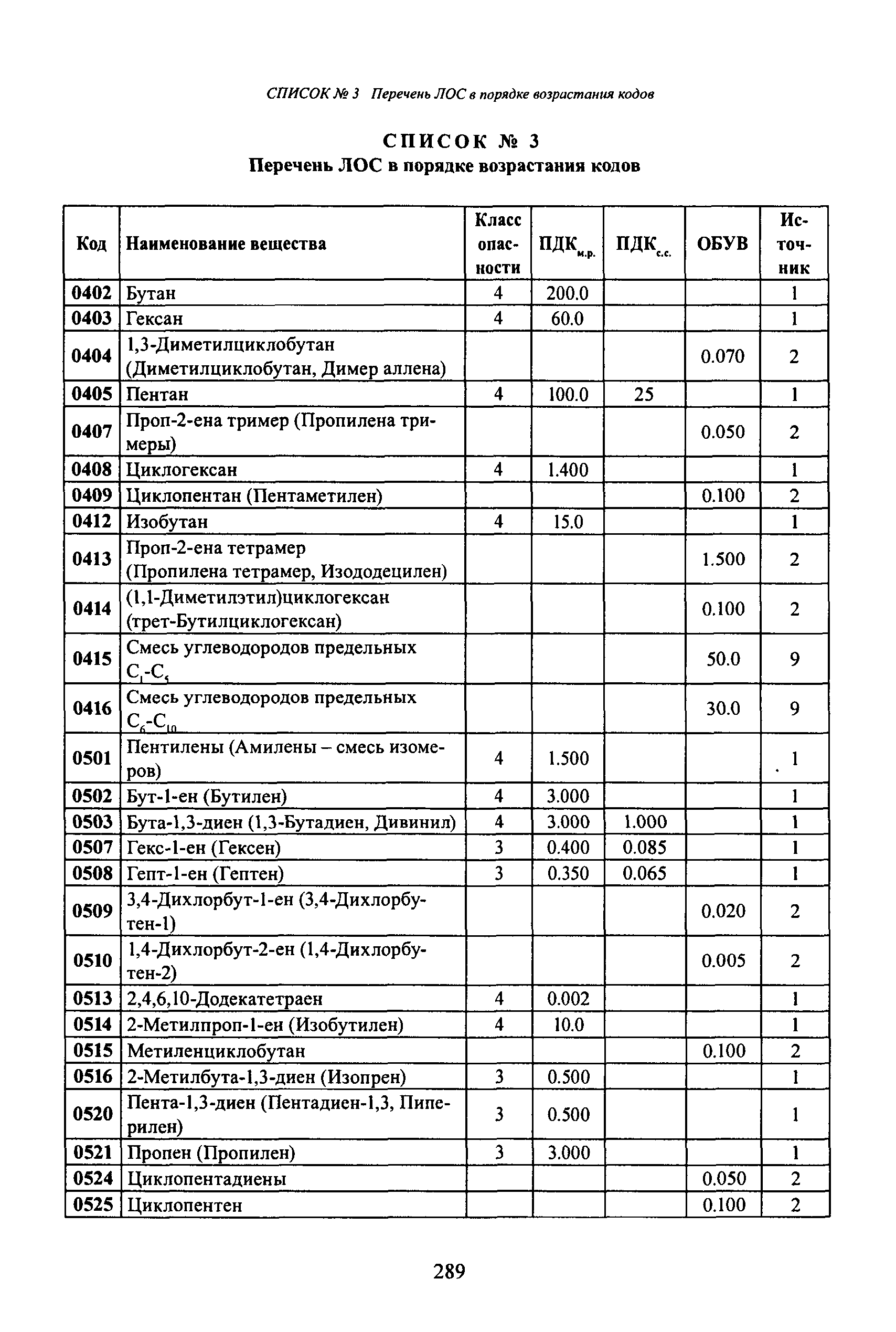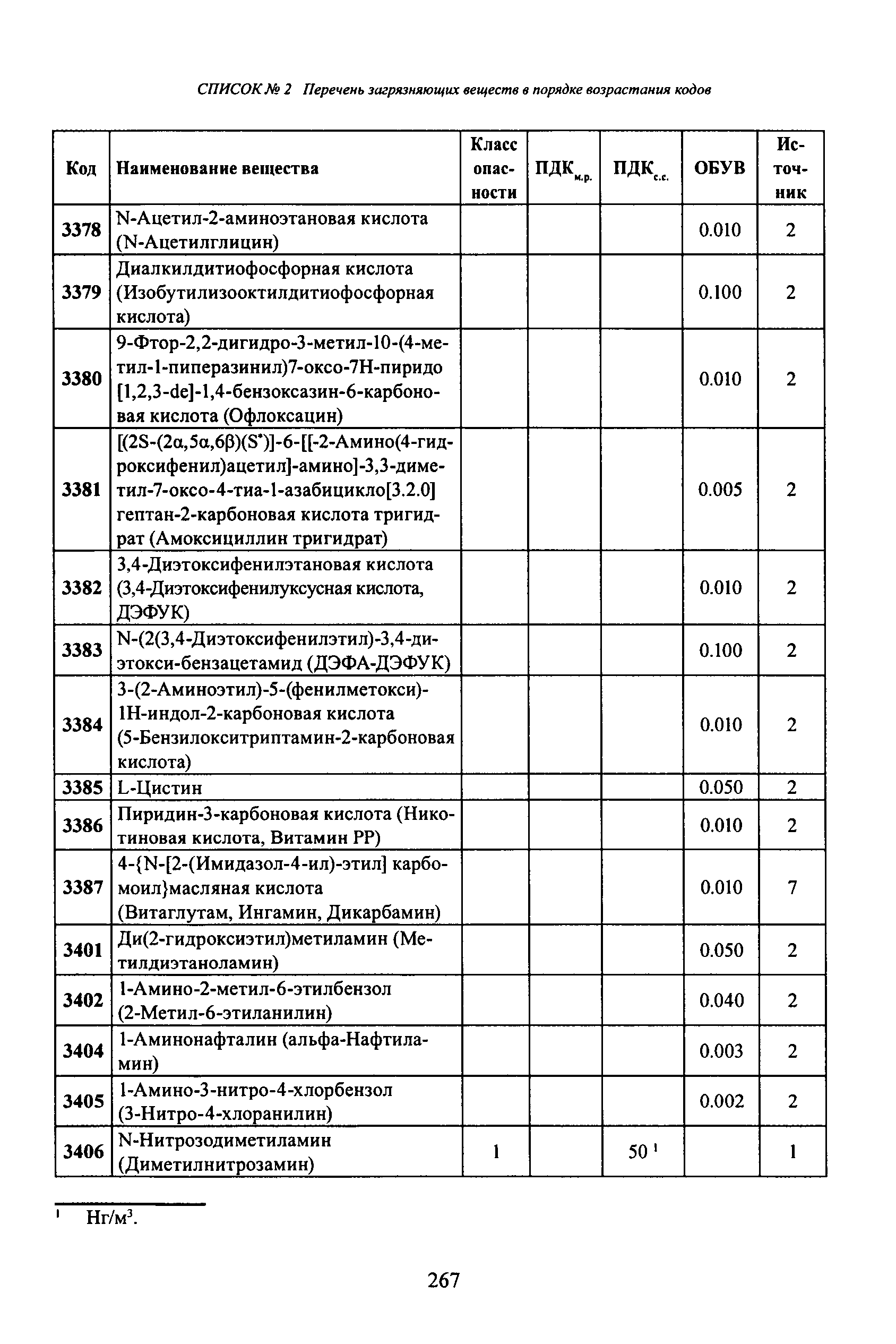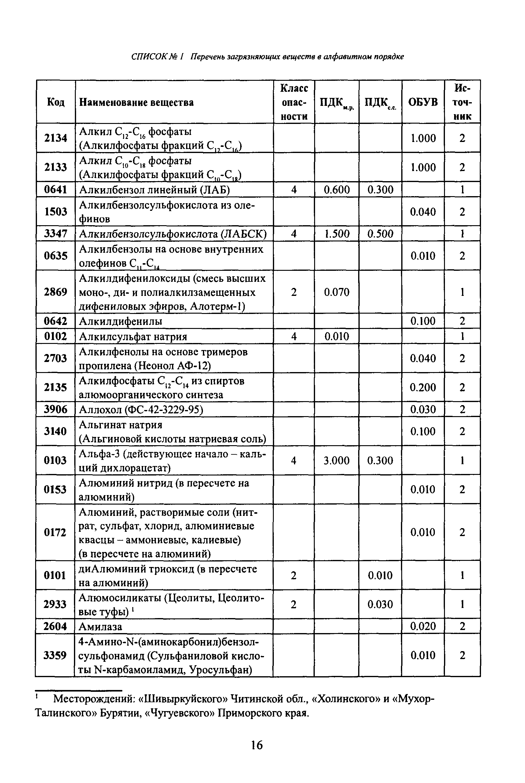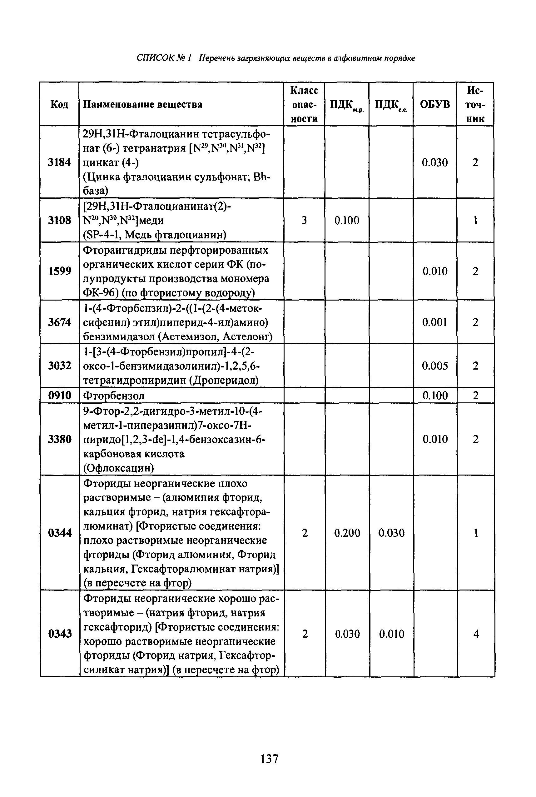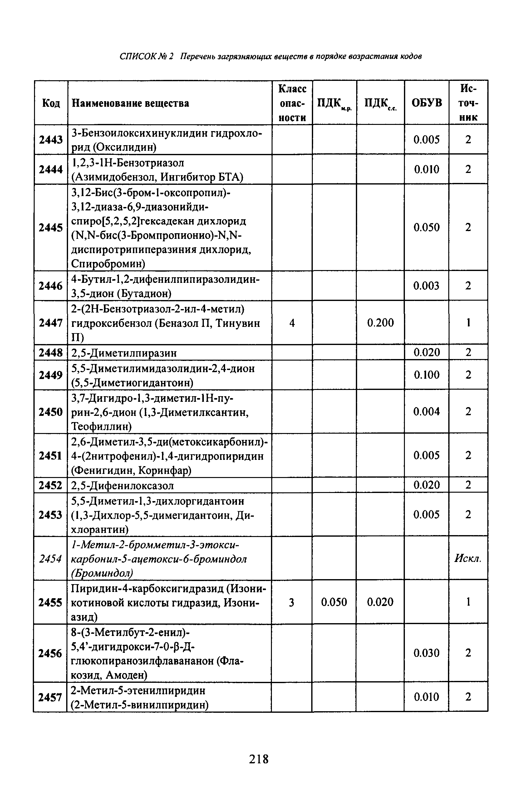 | Оглавление: | Введение Список № 1 Перечень загрязняющих веществ в алфавитном порядке Список № 2 Перечень загрязняющих веществ в порядке возрастания кодов Список № 3 Перечень ЛОС в порядке возрастания кодов Список № 4 Указатель основных синонимов, технических, торговых и фирменных названий веществ в алфавитном порядке А. Для веществ с установленными значениями ПДК Б. Для веществ с установленными значениями ОБУВ Список № 5 Указатель основных синонимов, технических, торговых и фирменных названий веществ в порядке возрастания кодов А. Для веществ с установленными значениями ПДК Б. Для веществ с установленными значениями ОБУВ |