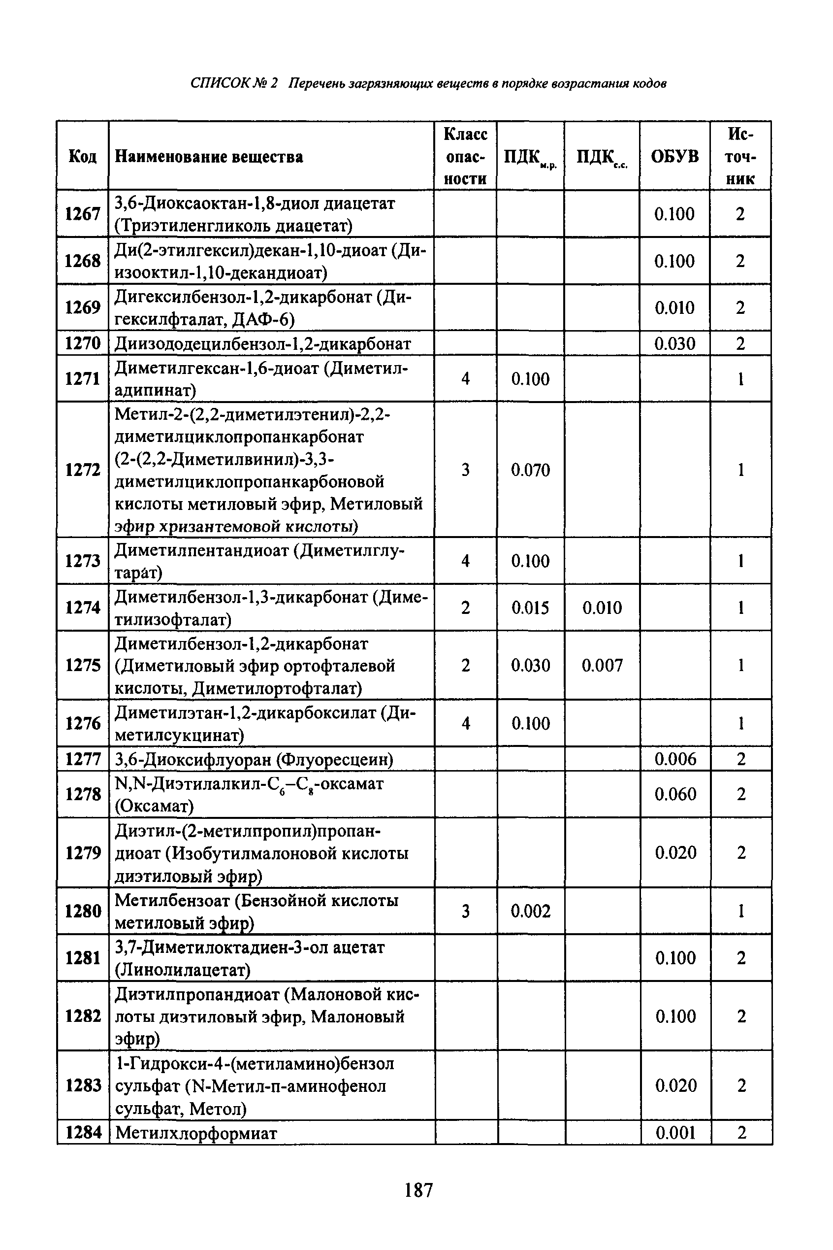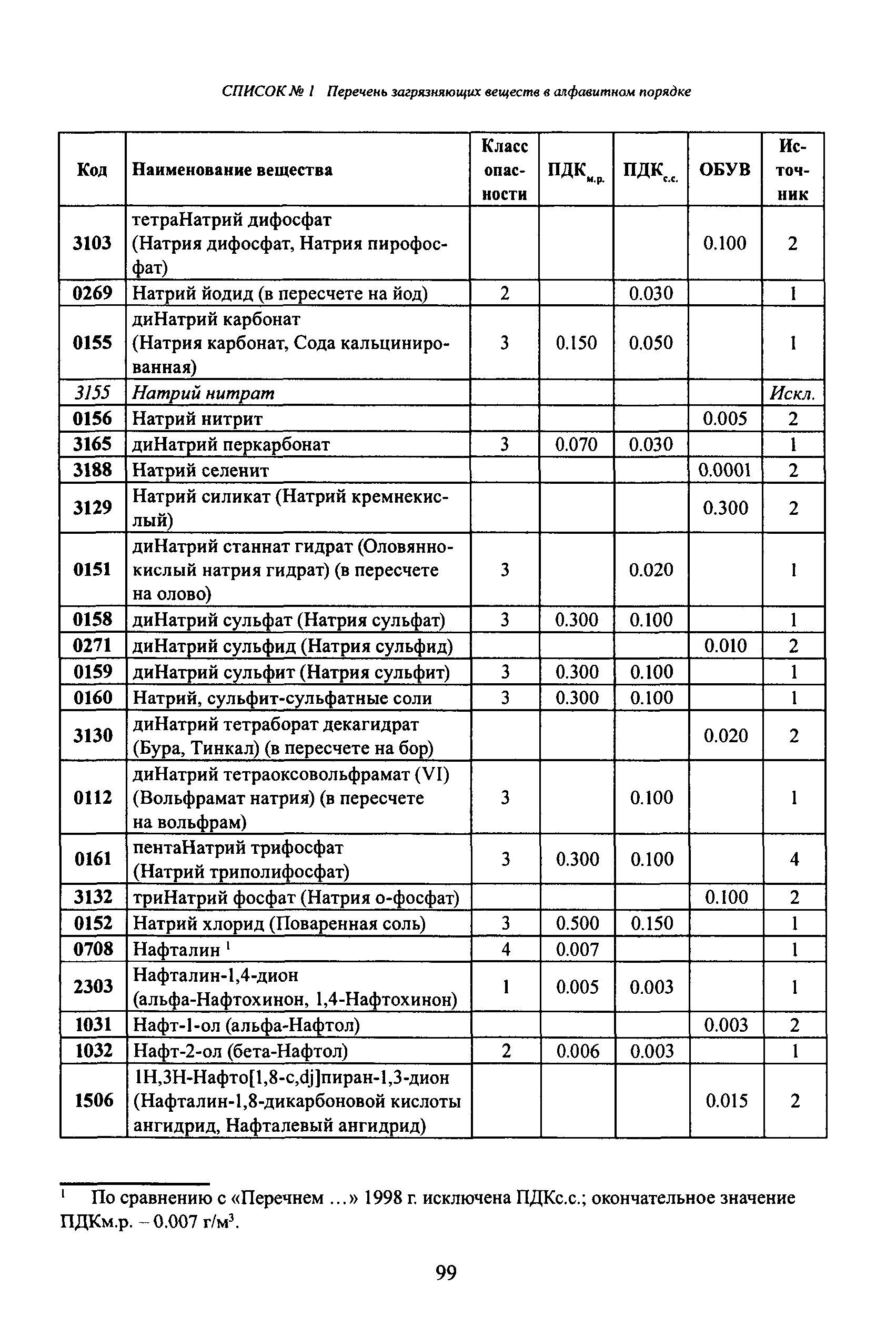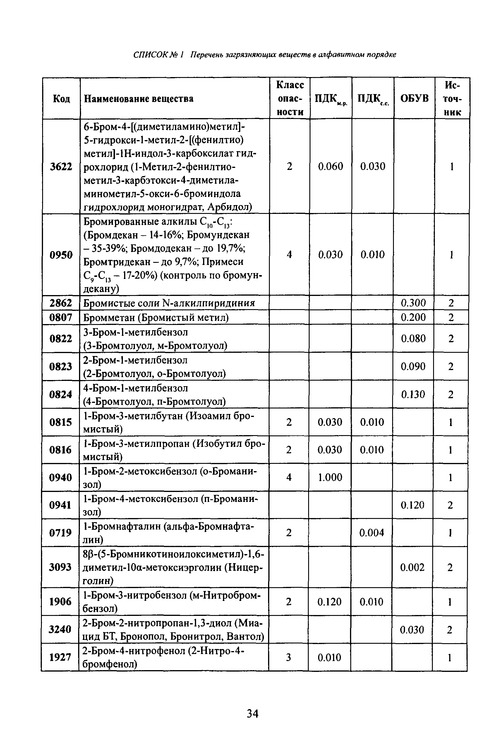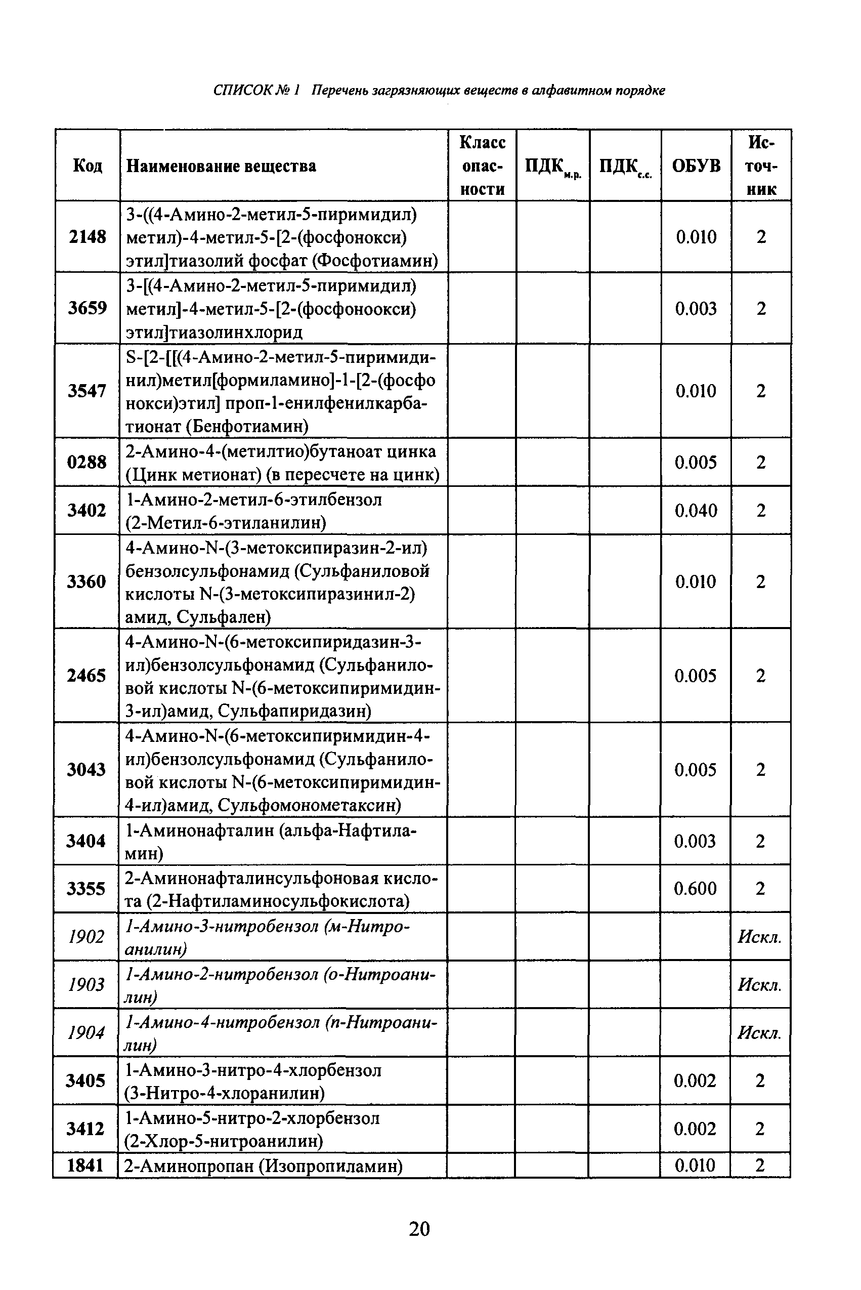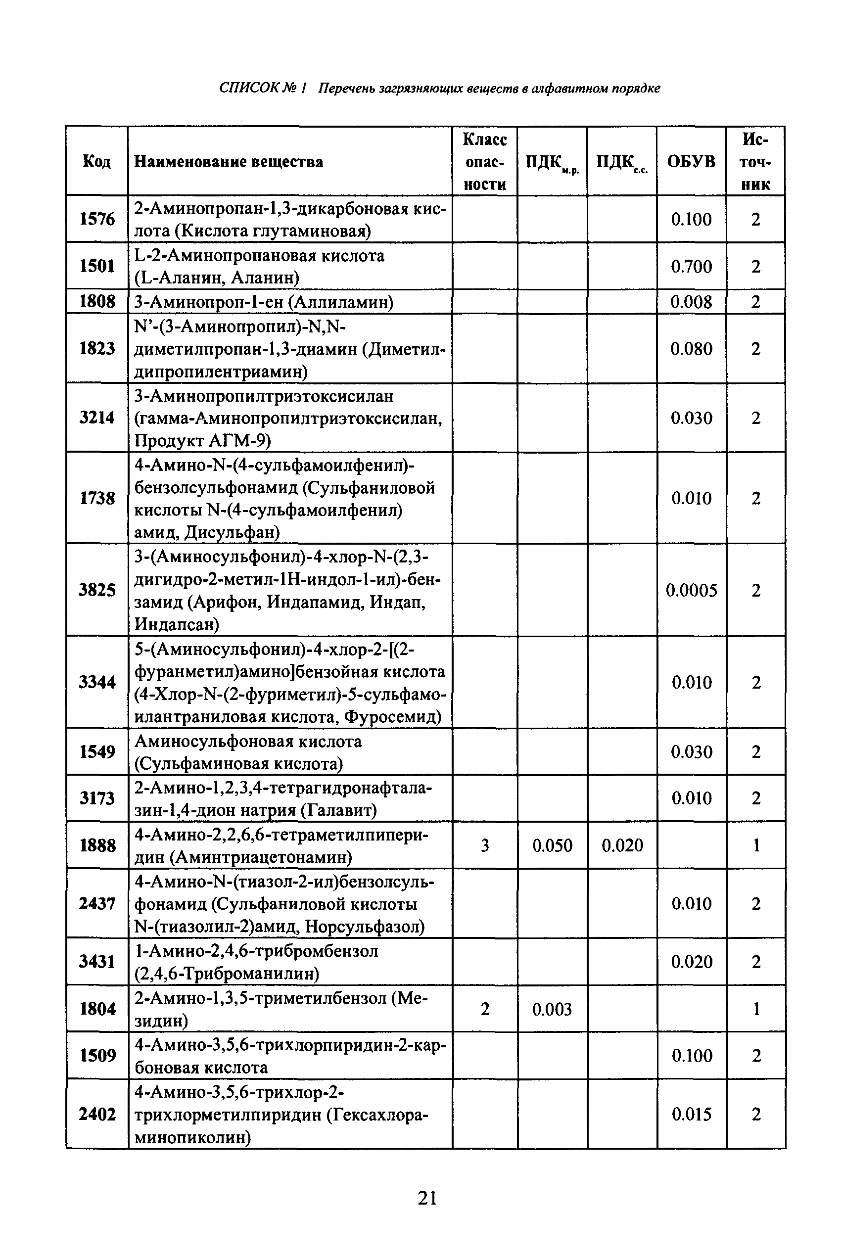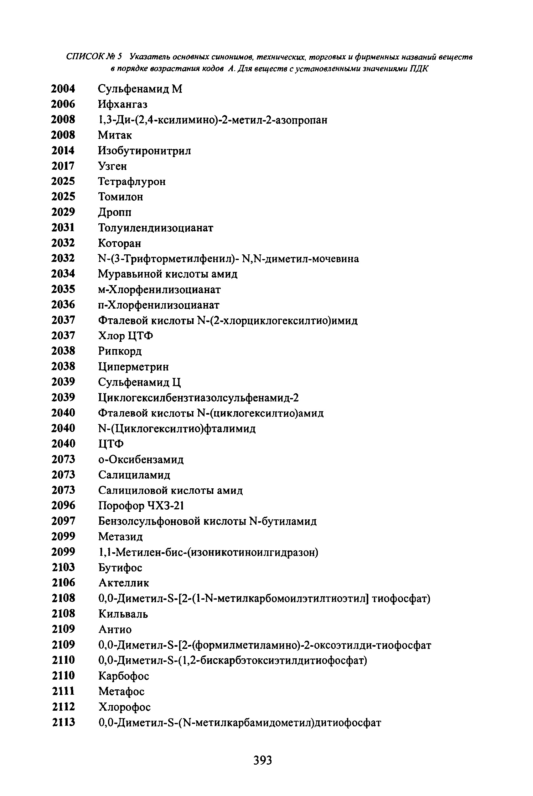 | Оглавление: | Введение Список № 1 Перечень загрязняющих веществ в алфавитном порядке Список № 2 Перечень загрязняющих веществ в порядке возрастания кодов Список № 3 Перечень ЛОС в порядке возрастания кодов Список № 4 Указатель основных синонимов, технических, торговых и фирменных названий веществ в алфавитном порядке А. Для веществ с установленными значениями ПДК Б. Для веществ с установленными значениями ОБУВ Список № 5 Указатель основных синонимов, технических, торговых и фирменных названий веществ в порядке возрастания кодов А. Для веществ с установленными значениями ПДК Б. Для веществ с установленными значениями ОБУВ |