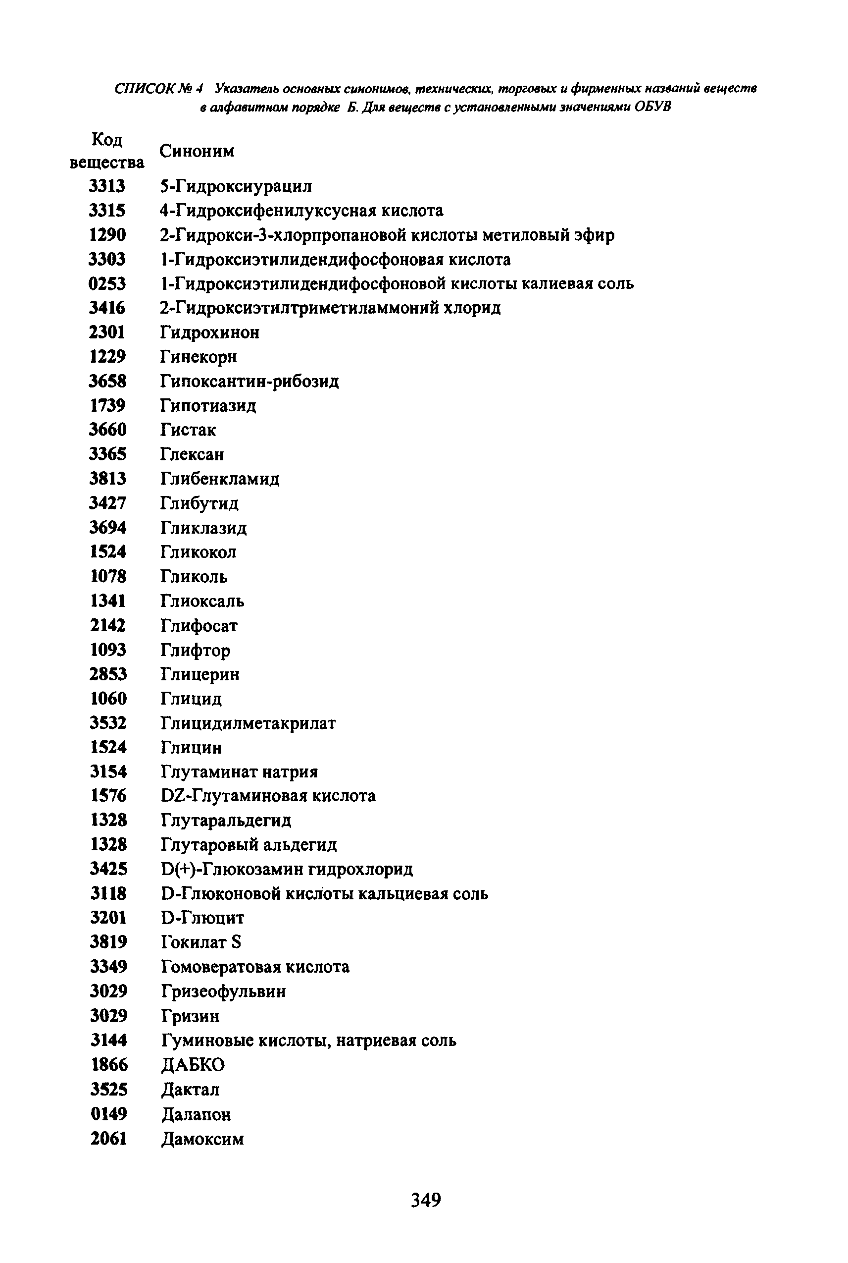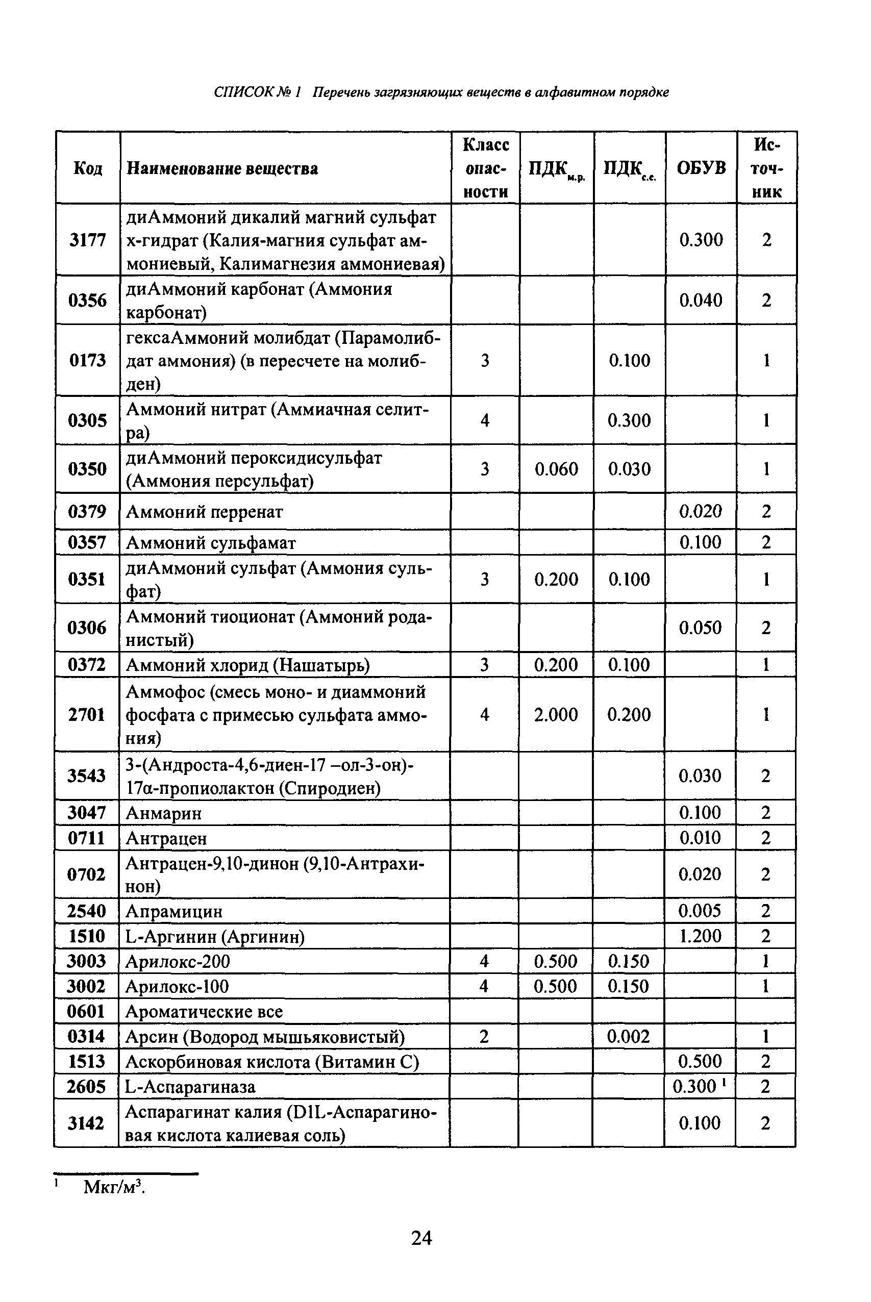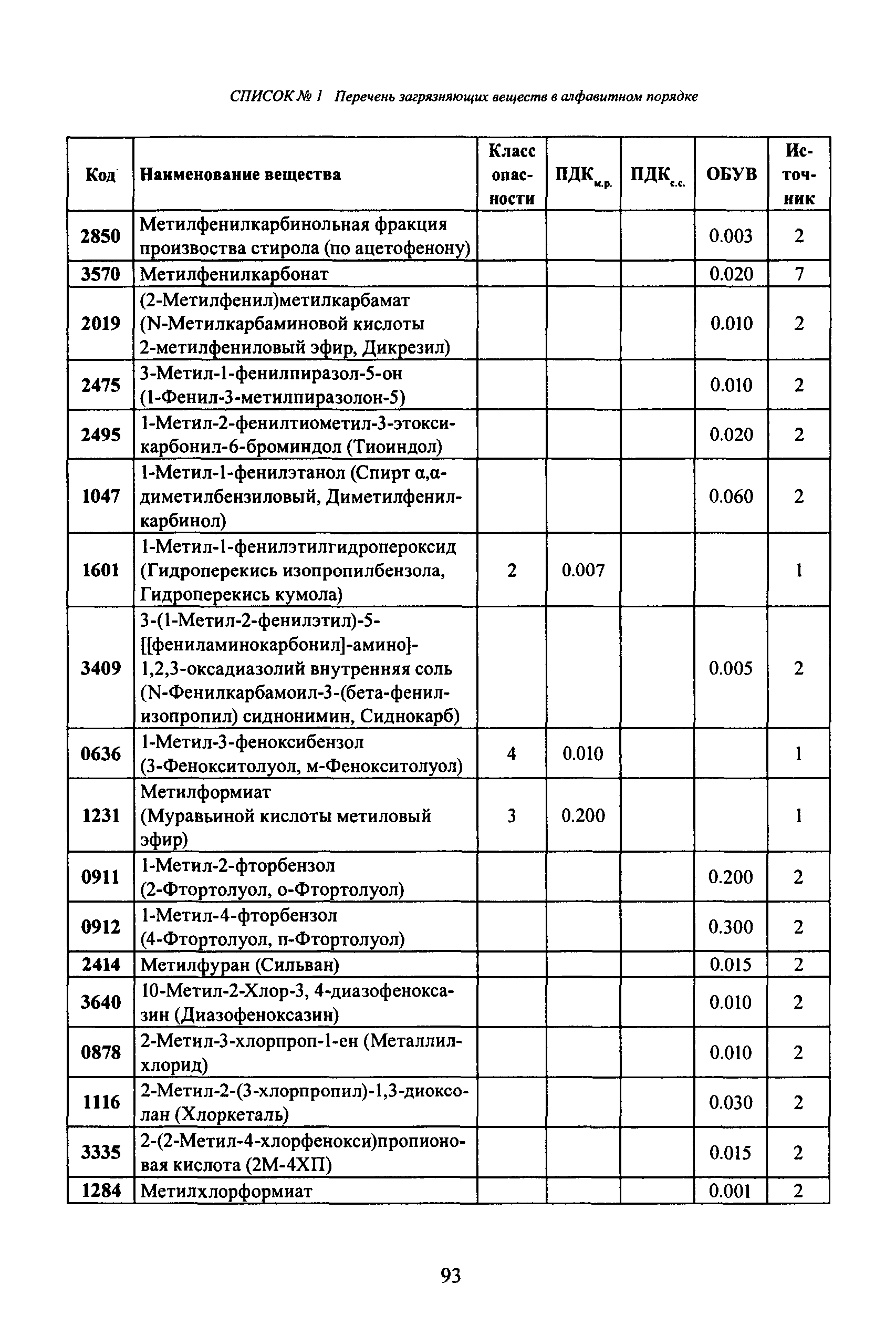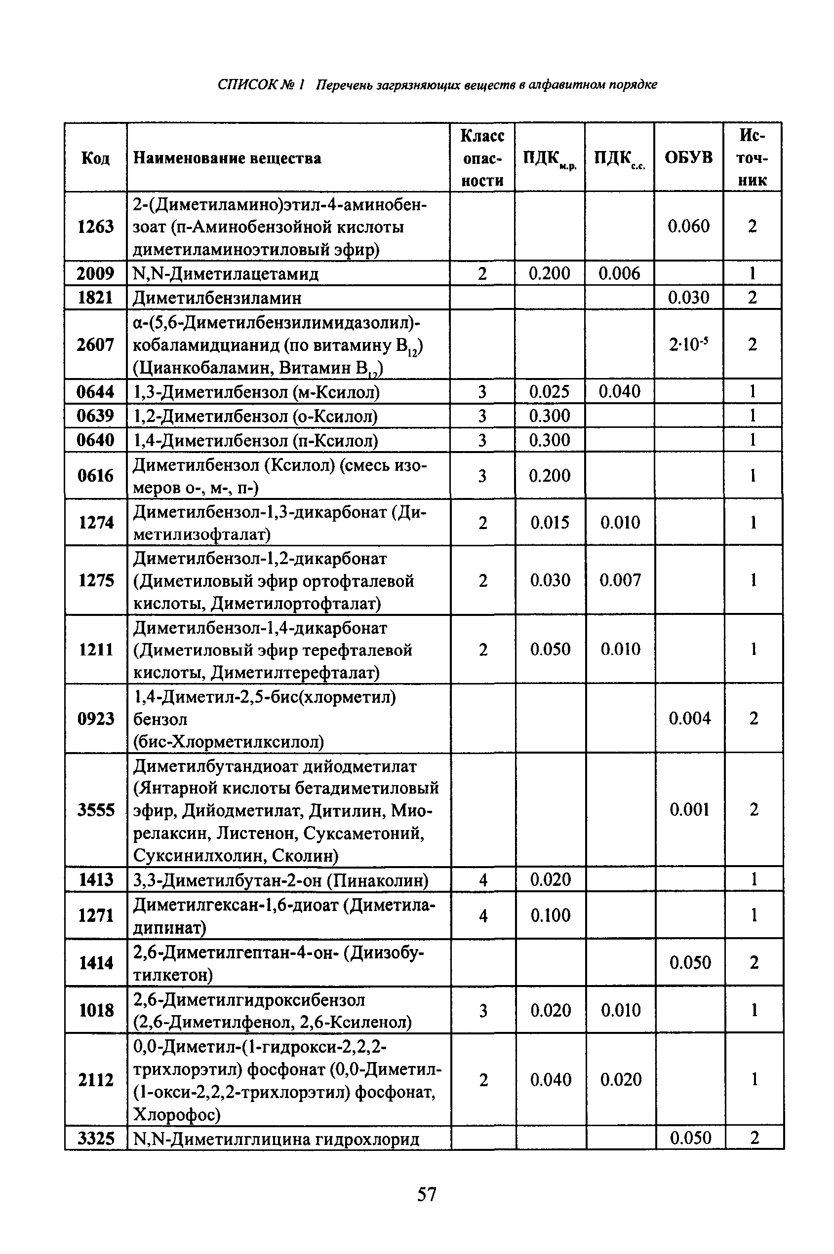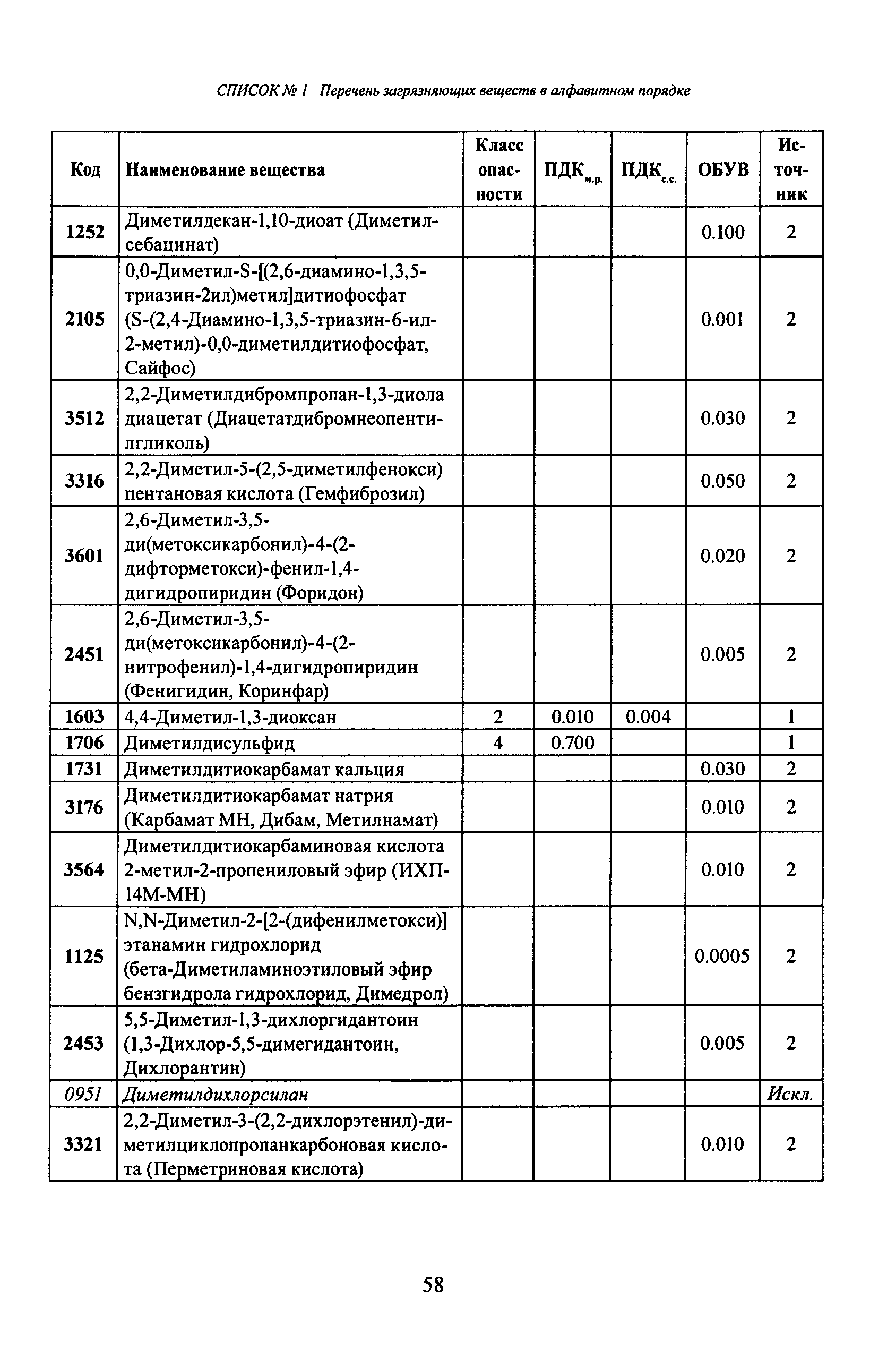 | Оглавление: | Введение Список № 1 Перечень загрязняющих веществ в алфавитном порядке Список № 2 Перечень загрязняющих веществ в порядке возрастания кодов Список № 3 Перечень ЛОС в порядке возрастания кодов Список № 4 Указатель основных синонимов, технических, торговых и фирменных названий веществ в алфавитном порядке А. Для веществ с установленными значениями ПДК Б. Для веществ с установленными значениями ОБУВ Список № 5 Указатель основных синонимов, технических, торговых и фирменных названий веществ в порядке возрастания кодов А. Для веществ с установленными значениями ПДК Б. Для веществ с установленными значениями ОБУВ |