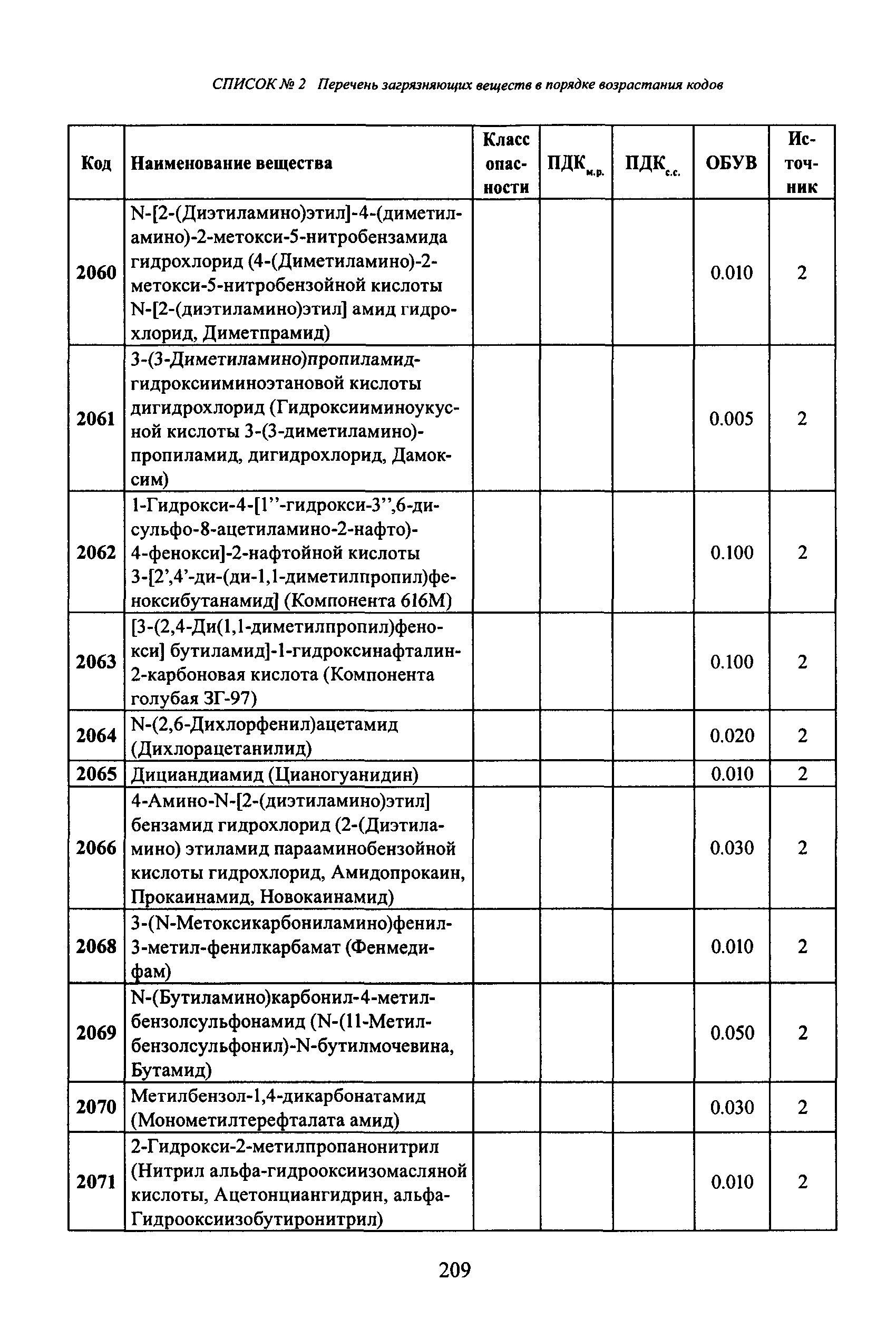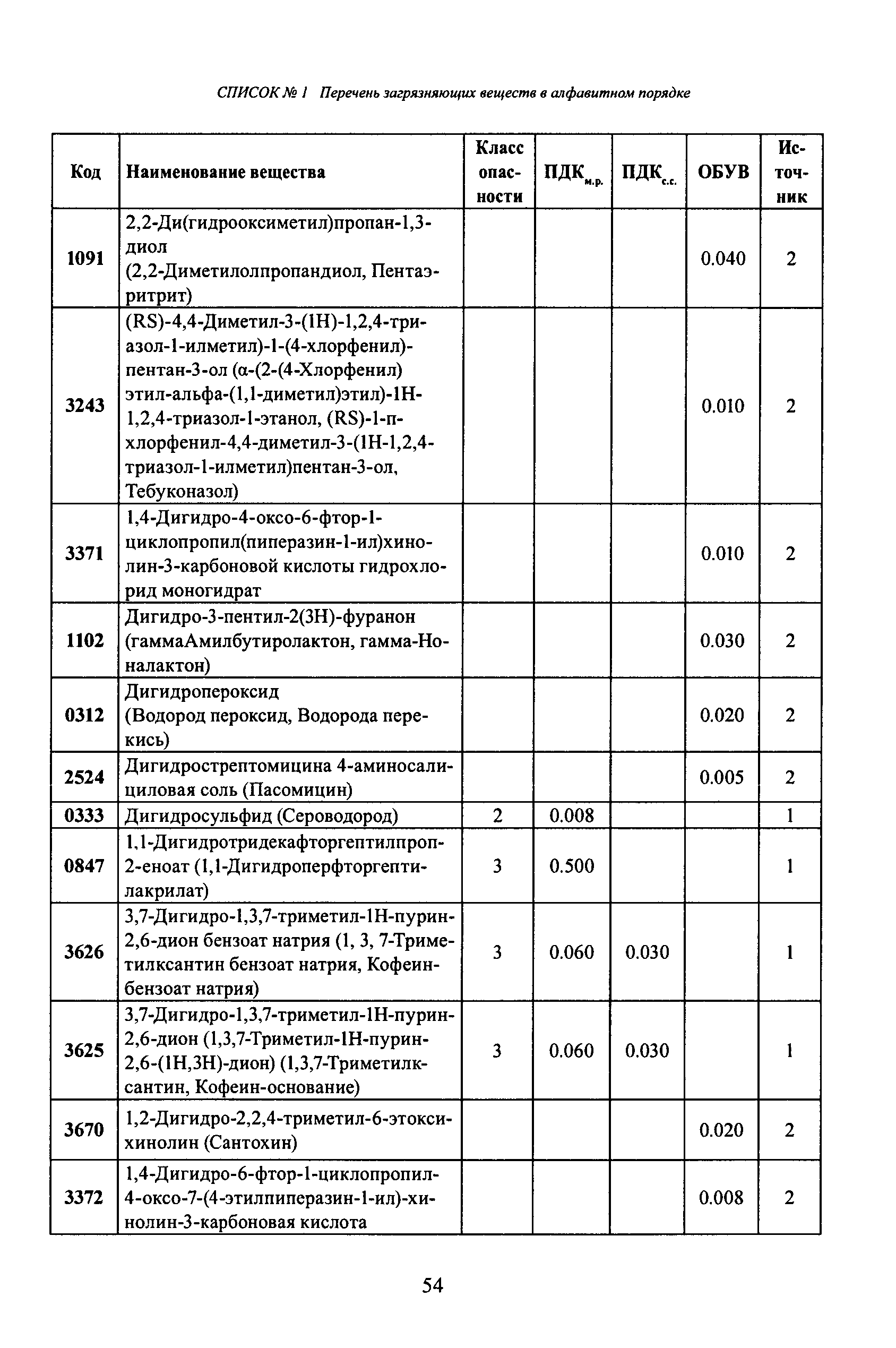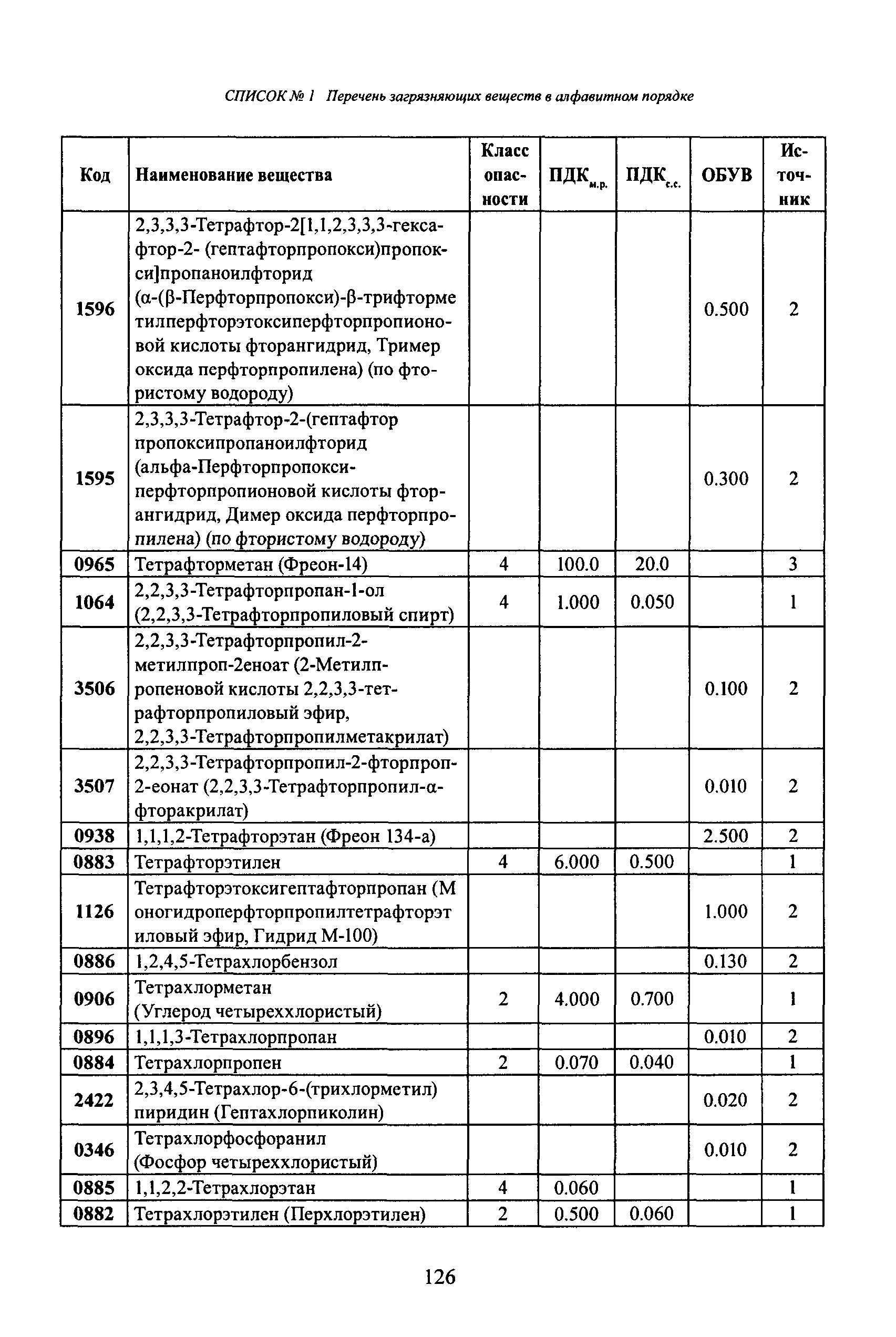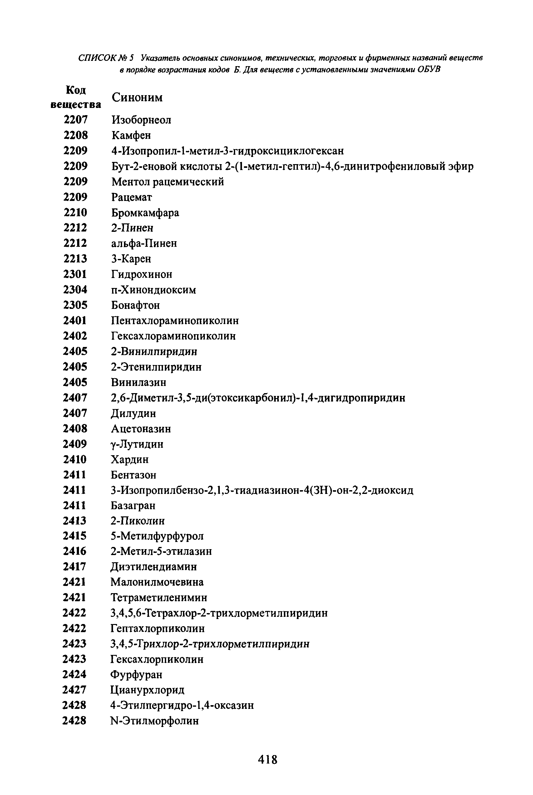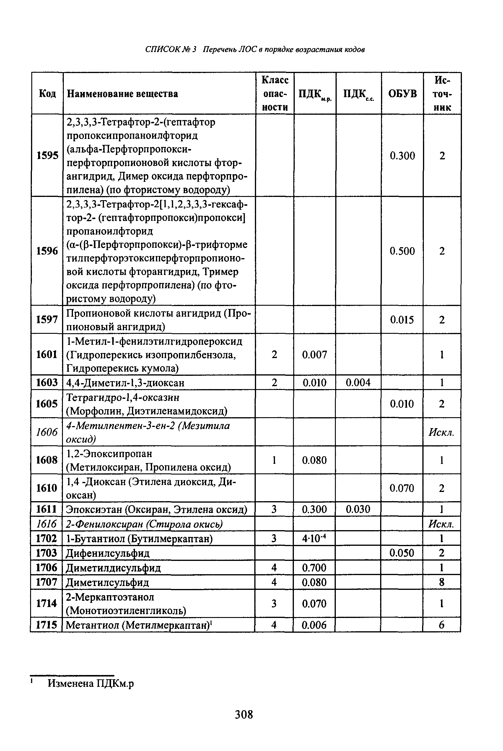 | Оглавление: | Введение Список № 1 Перечень загрязняющих веществ в алфавитном порядке Список № 2 Перечень загрязняющих веществ в порядке возрастания кодов Список № 3 Перечень ЛОС в порядке возрастания кодов Список № 4 Указатель основных синонимов, технических, торговых и фирменных названий веществ в алфавитном порядке А. Для веществ с установленными значениями ПДК Б. Для веществ с установленными значениями ОБУВ Список № 5 Указатель основных синонимов, технических, торговых и фирменных названий веществ в порядке возрастания кодов А. Для веществ с установленными значениями ПДК Б. Для веществ с установленными значениями ОБУВ |