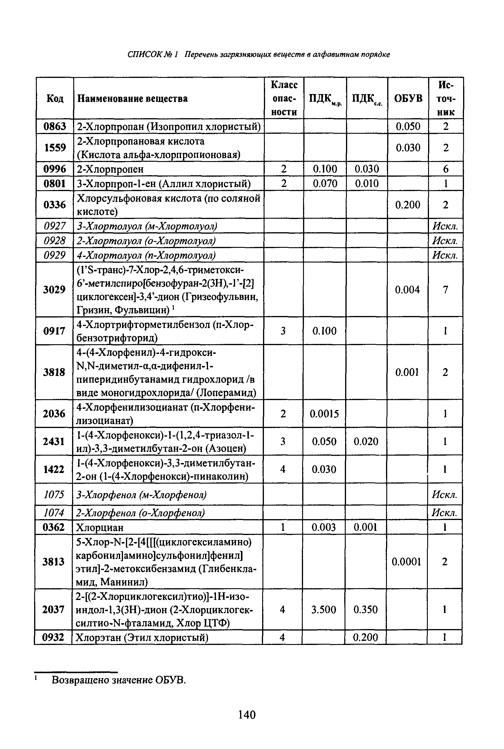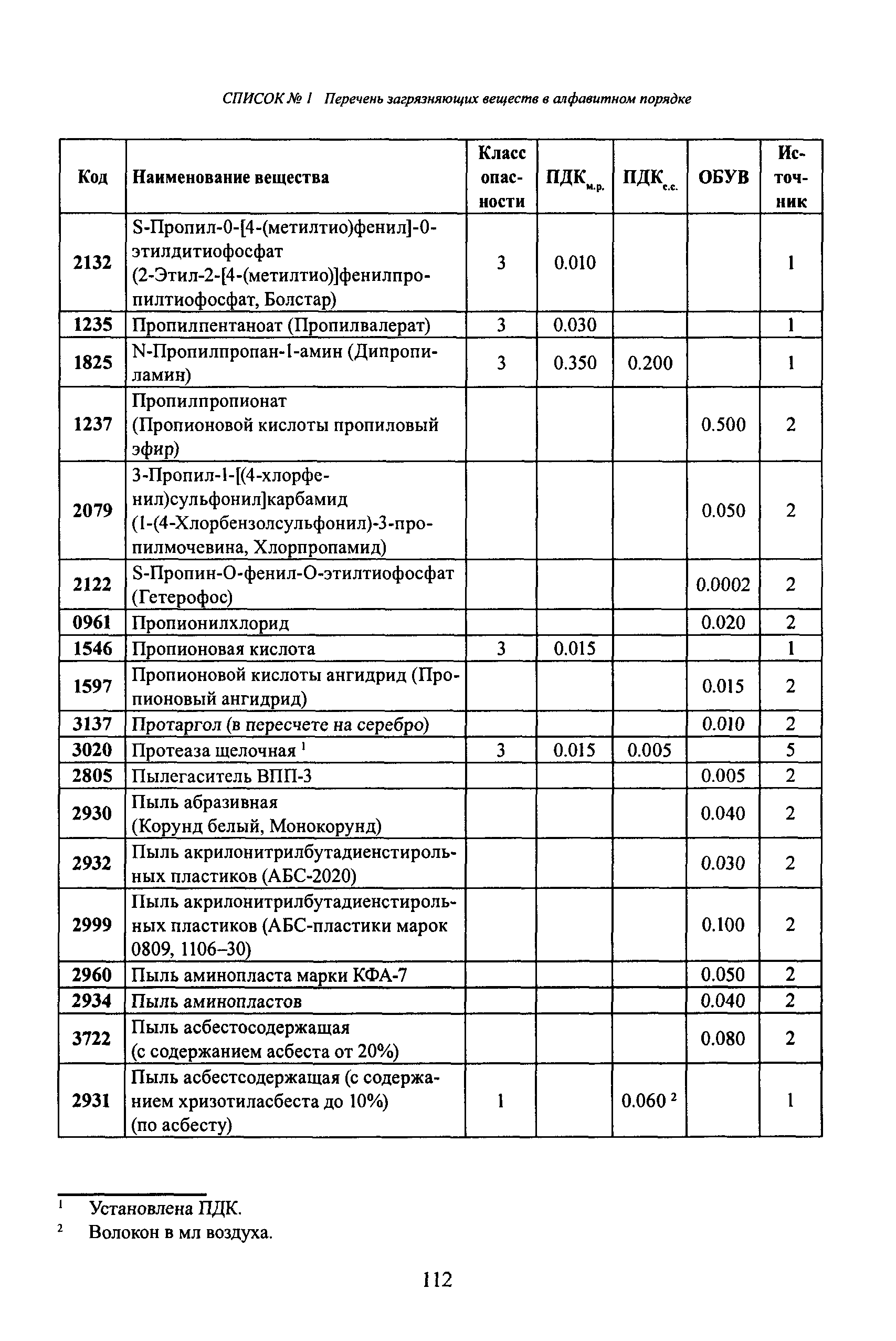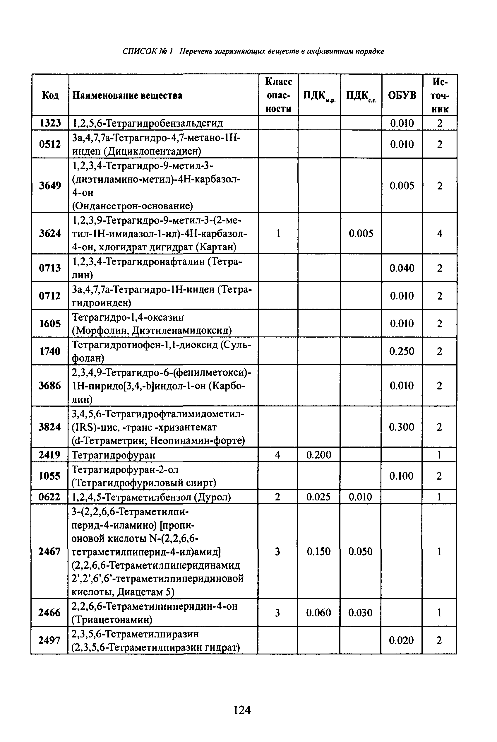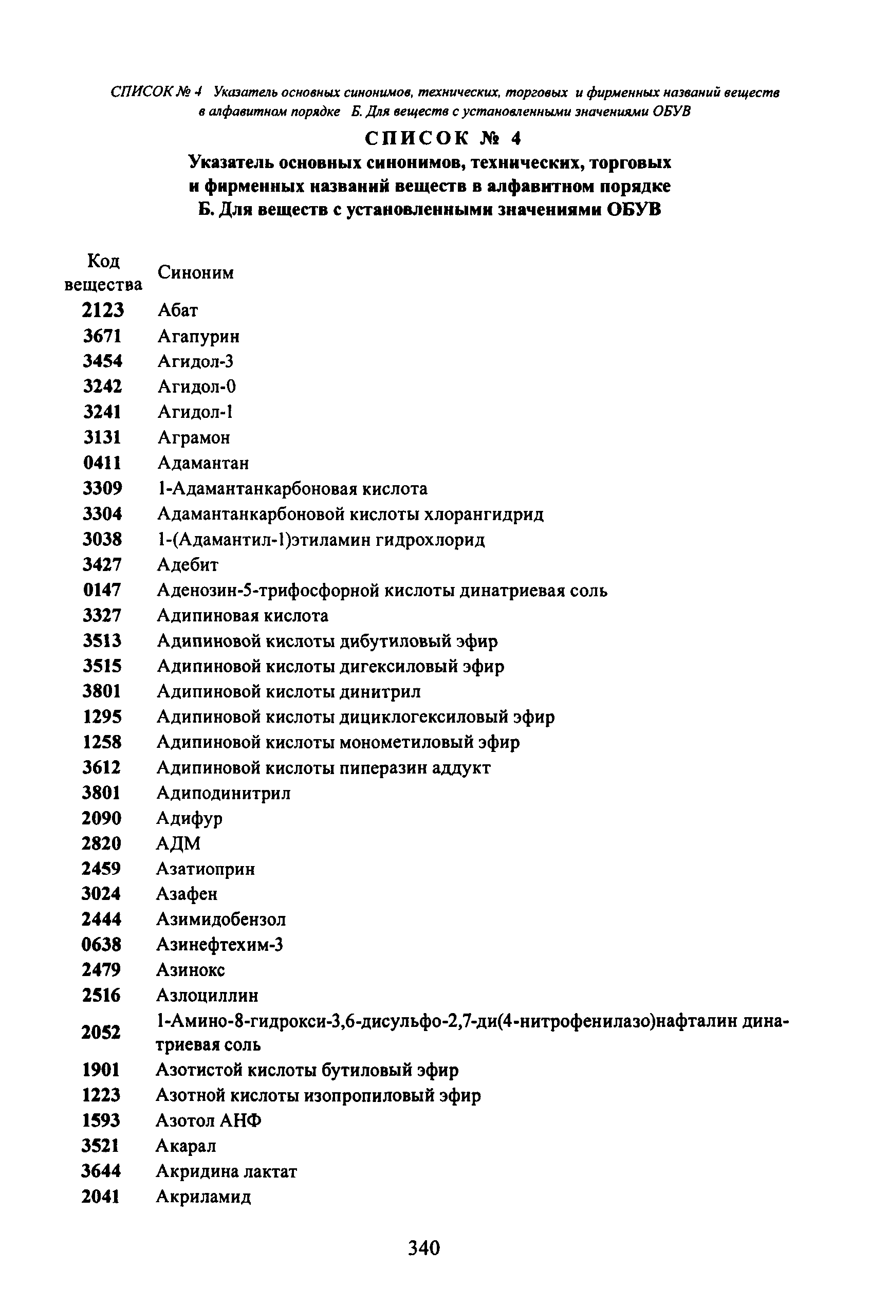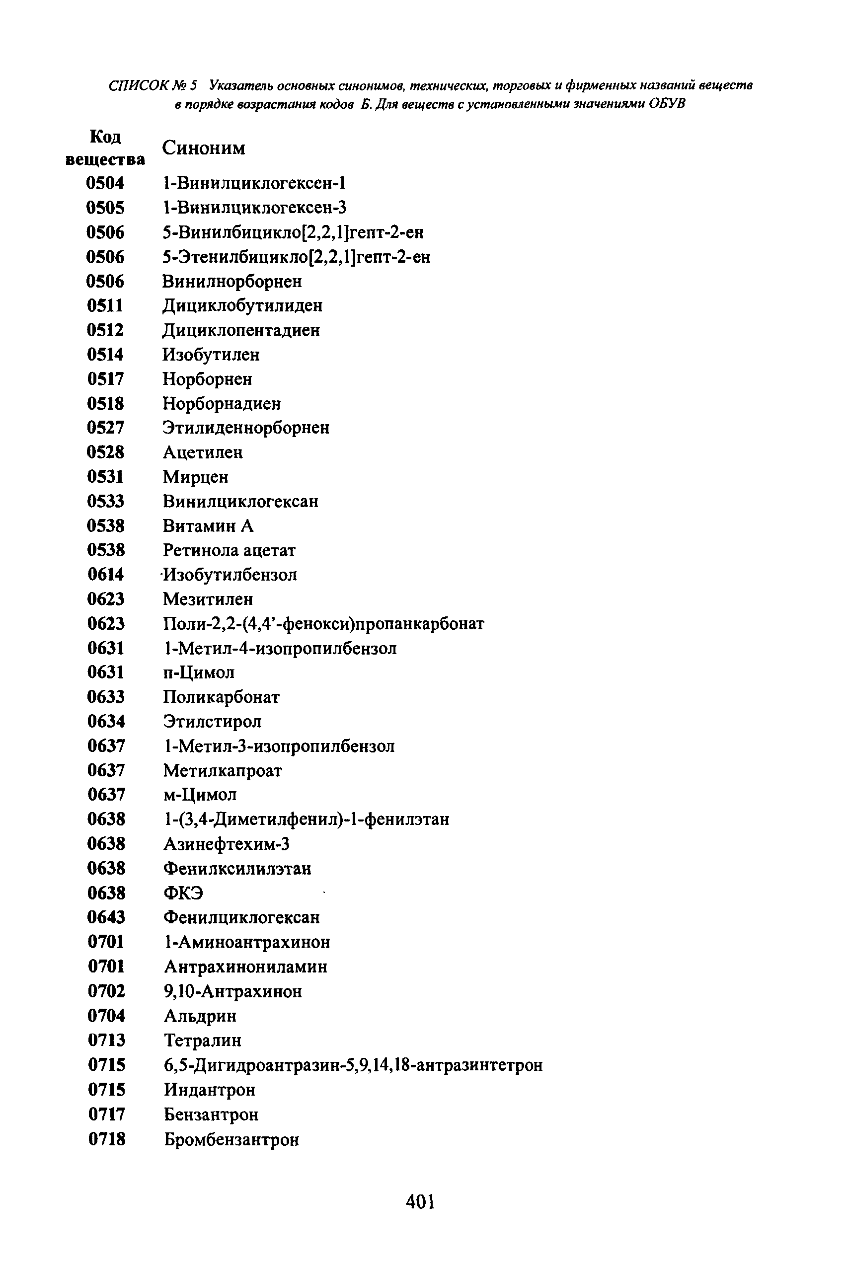 | Оглавление: | Введение Список № 1 Перечень загрязняющих веществ в алфавитном порядке Список № 2 Перечень загрязняющих веществ в порядке возрастания кодов Список № 3 Перечень ЛОС в порядке возрастания кодов Список № 4 Указатель основных синонимов, технических, торговых и фирменных названий веществ в алфавитном порядке А. Для веществ с установленными значениями ПДК Б. Для веществ с установленными значениями ОБУВ Список № 5 Указатель основных синонимов, технических, торговых и фирменных названий веществ в порядке возрастания кодов А. Для веществ с установленными значениями ПДК Б. Для веществ с установленными значениями ОБУВ |