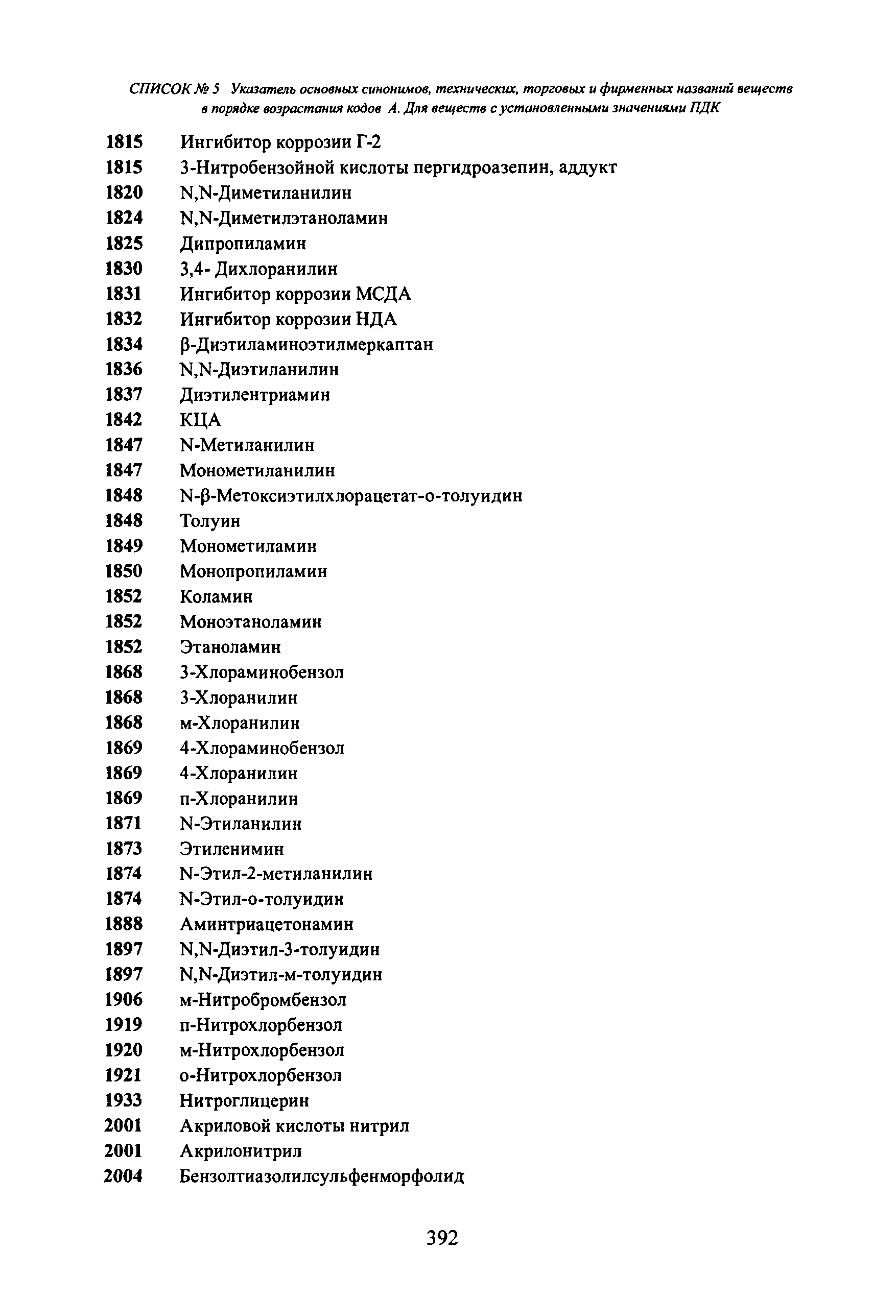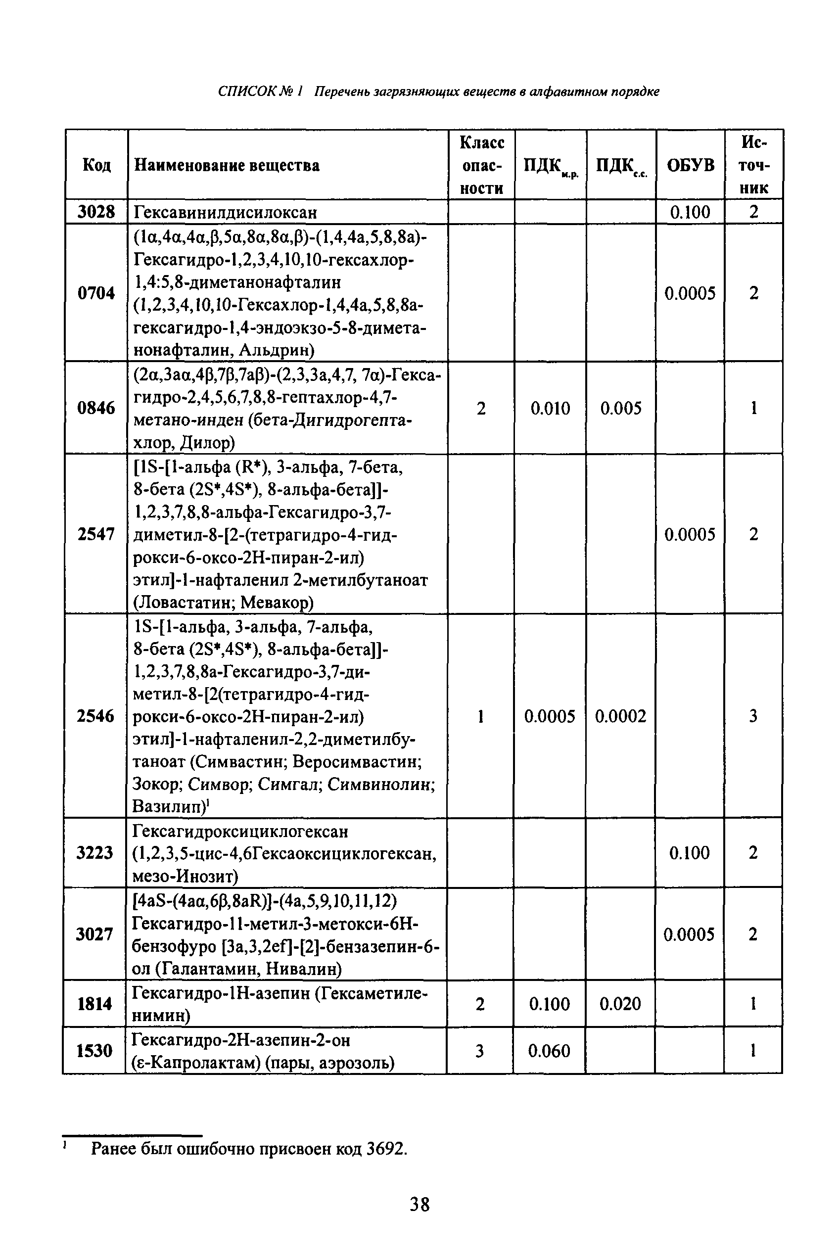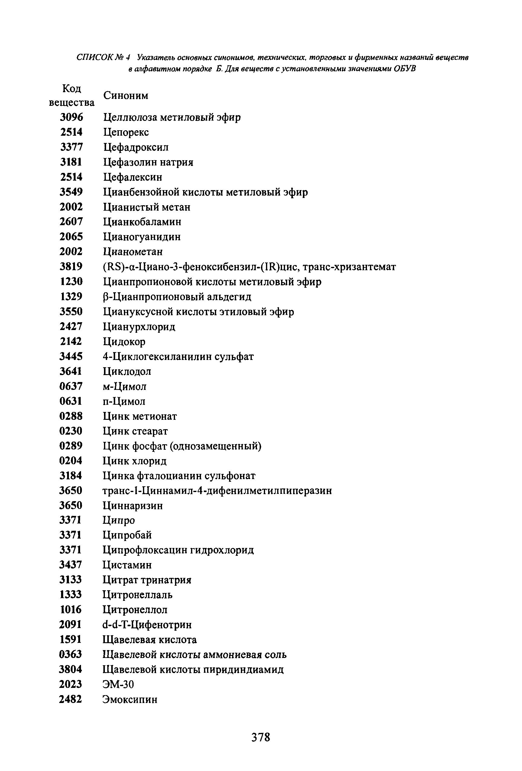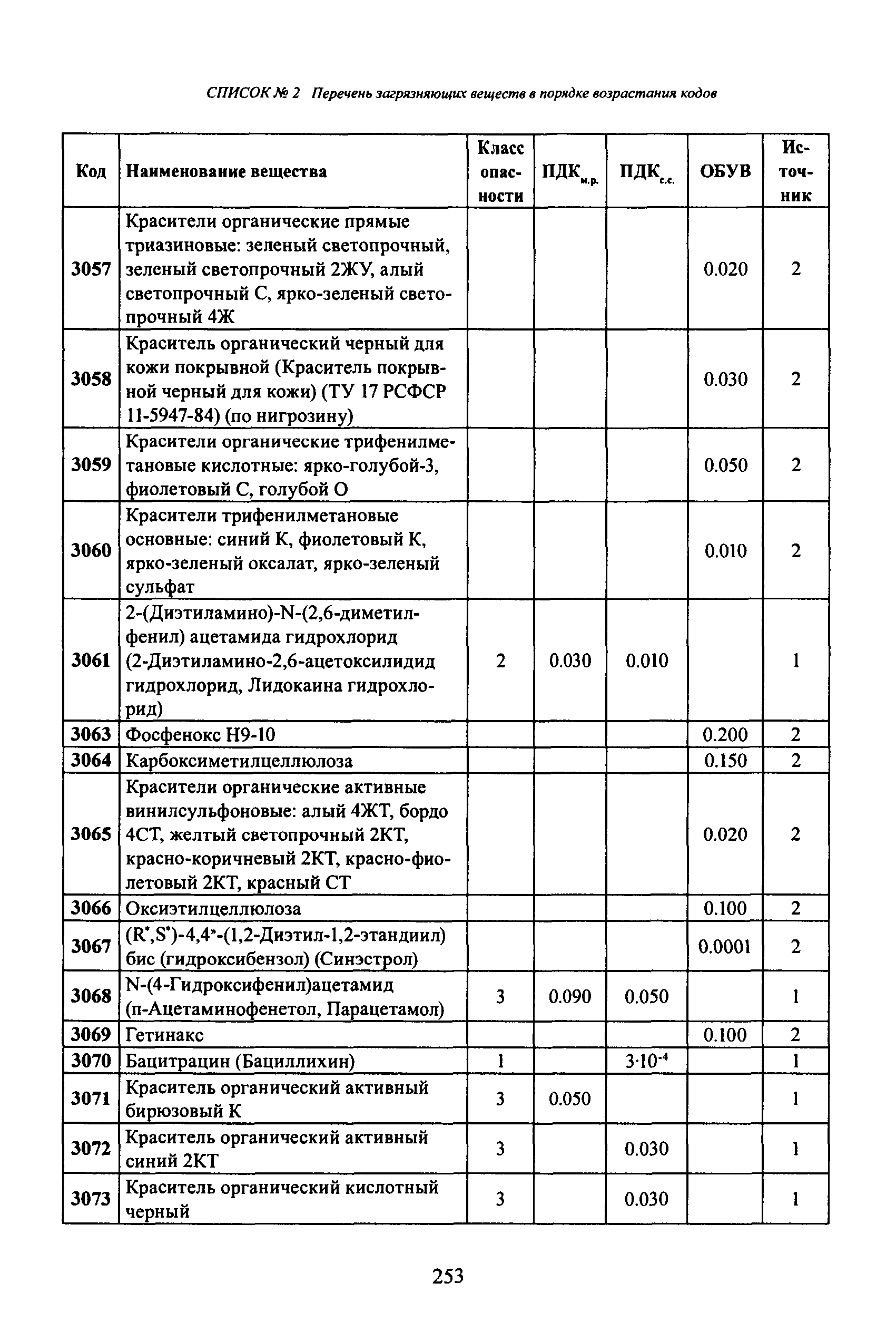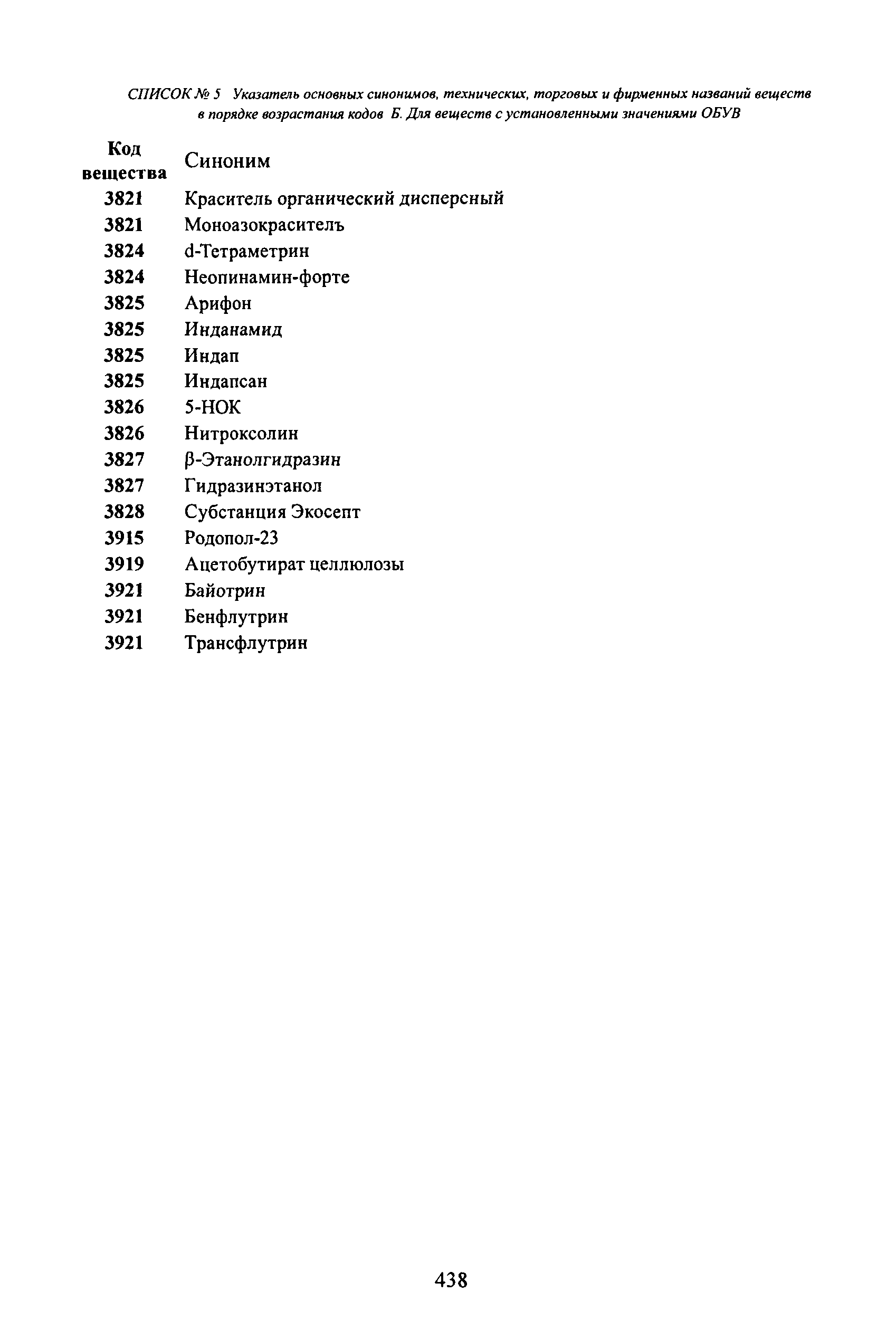| Оглавление: | Введение Список № 1 Перечень загрязняющих веществ в алфавитном порядке Список № 2 Перечень загрязняющих веществ в порядке возрастания кодов Список № 3 Перечень ЛОС в порядке возрастания кодов Список № 4 Указатель основных синонимов, технических, торговых и фирменных названий веществ в алфавитном порядке А. Для веществ с установленными значениями ПДК Б. Для веществ с установленными значениями ОБУВ Список № 5 Указатель основных синонимов, технических, торговых и фирменных названий веществ в порядке возрастания кодов А. Для веществ с установленными значениями ПДК Б. Для веществ с установленными значениями ОБУВ |