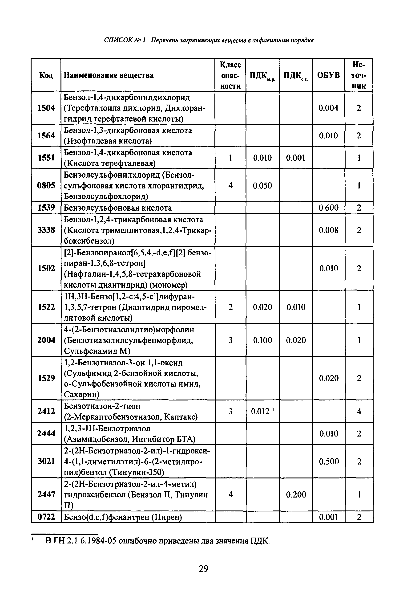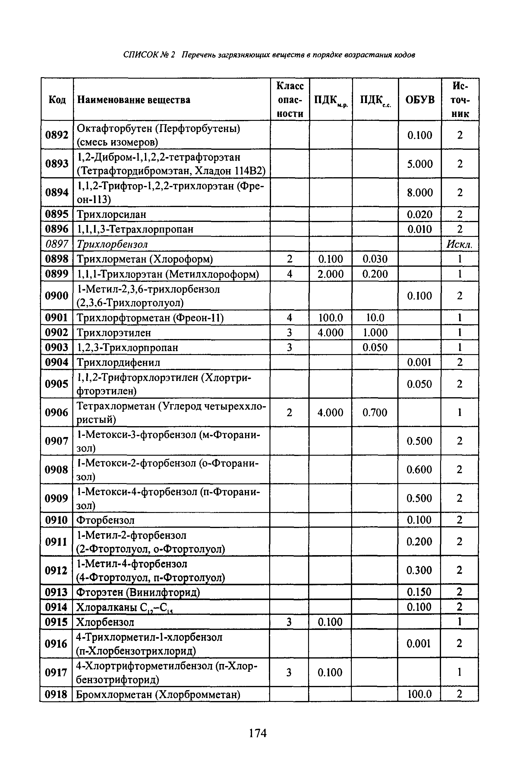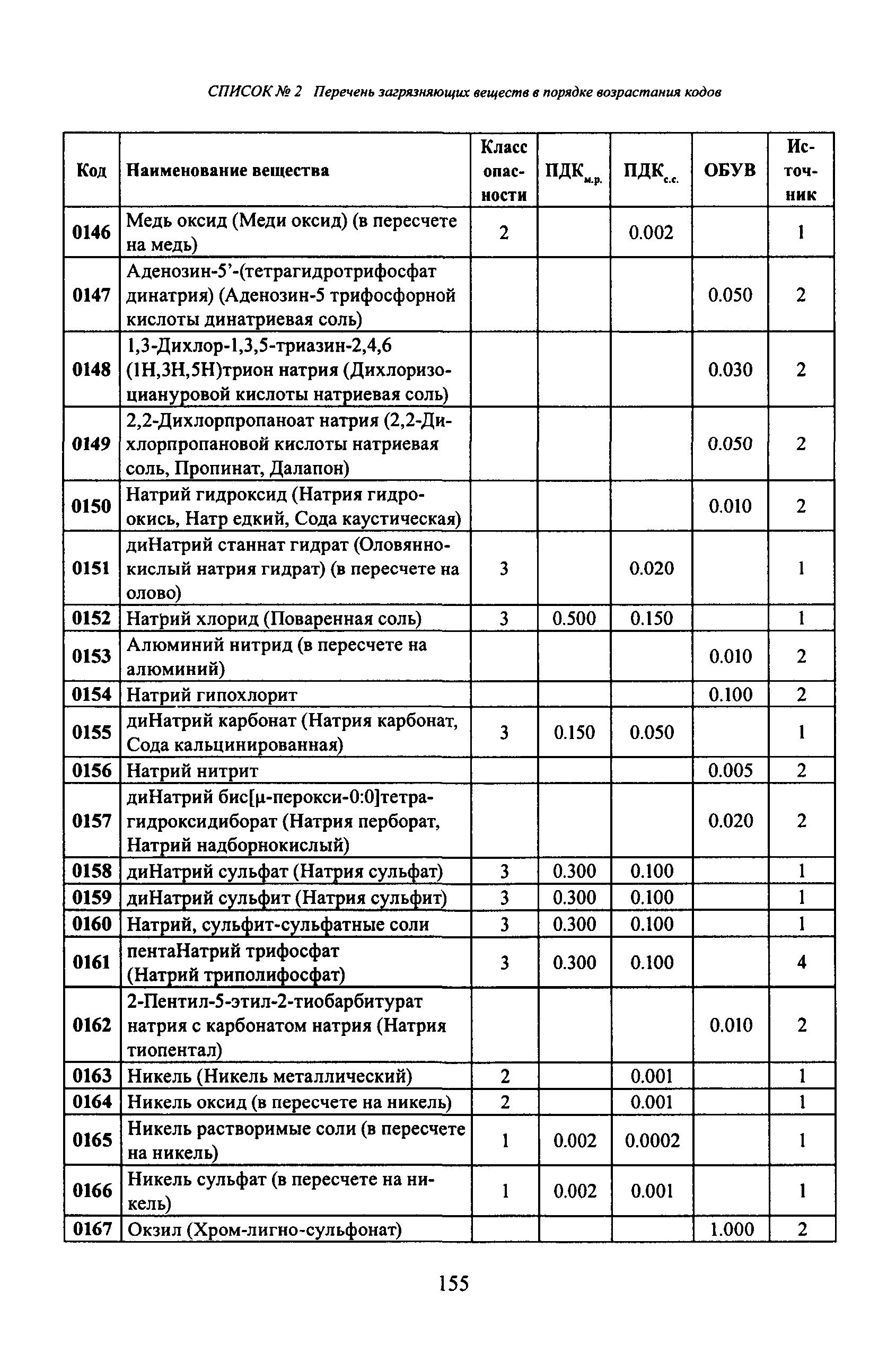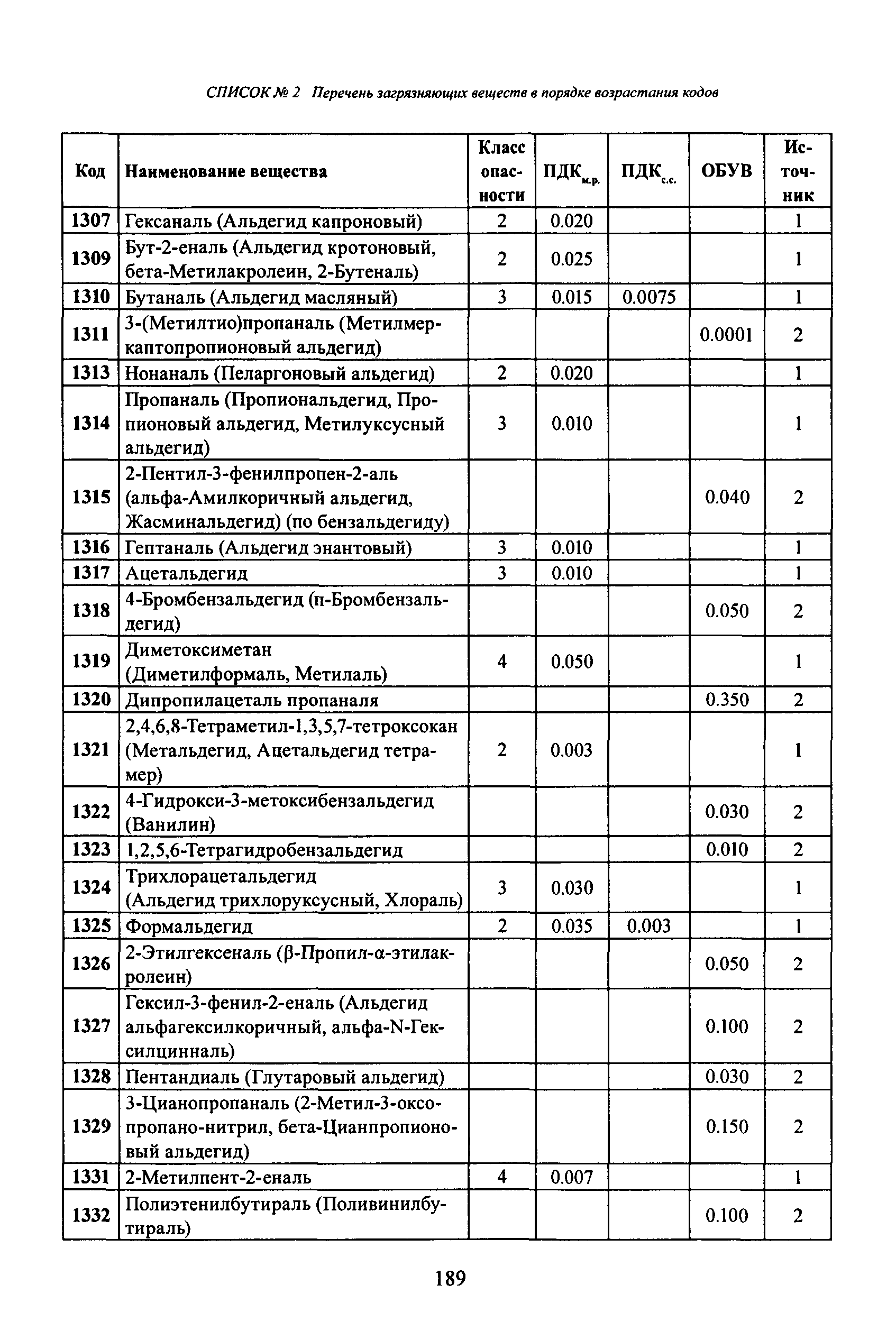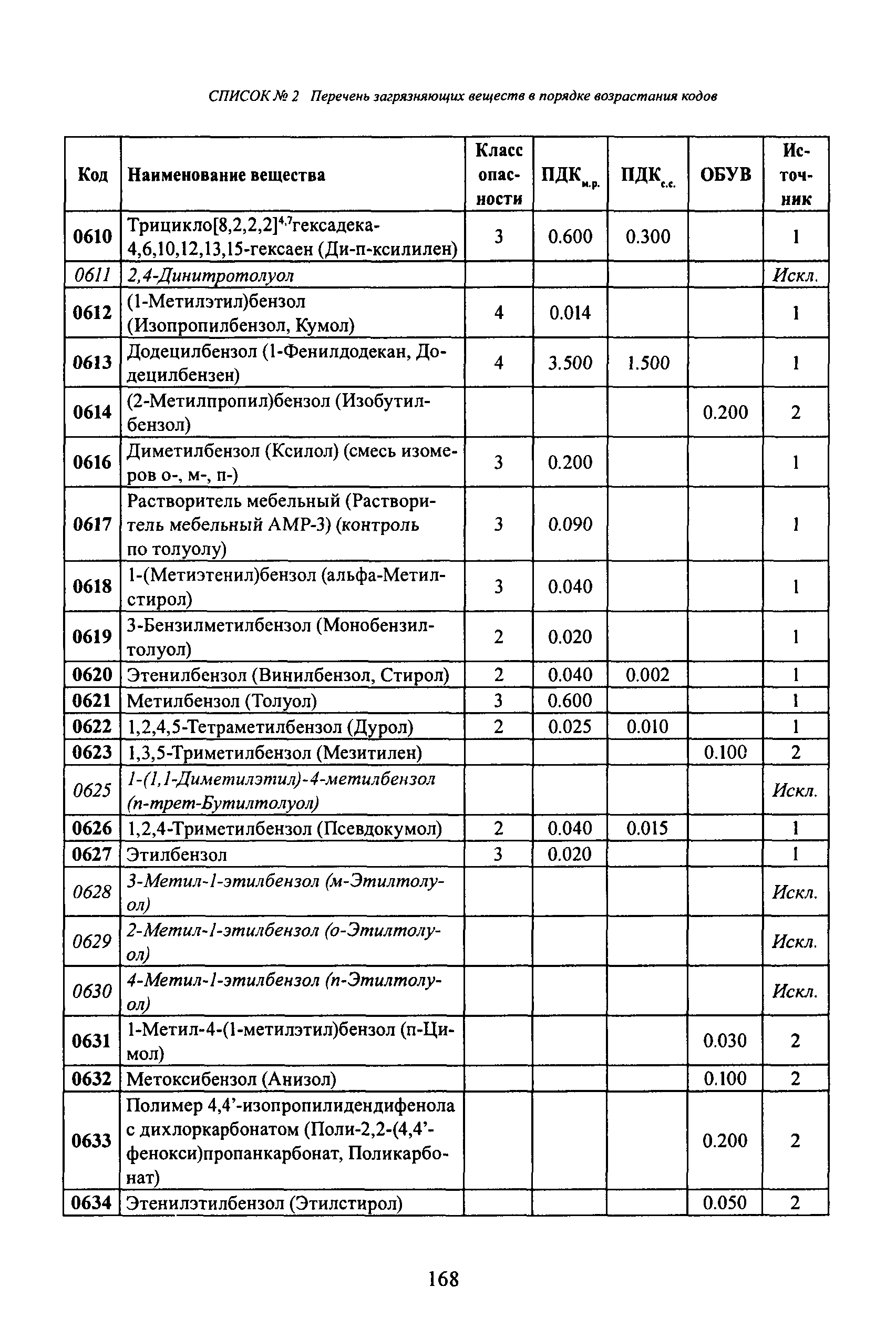 | Оглавление: | Введение Список № 1 Перечень загрязняющих веществ в алфавитном порядке Список № 2 Перечень загрязняющих веществ в порядке возрастания кодов Список № 3 Перечень ЛОС в порядке возрастания кодов Список № 4 Указатель основных синонимов, технических, торговых и фирменных названий веществ в алфавитном порядке А. Для веществ с установленными значениями ПДК Б. Для веществ с установленными значениями ОБУВ Список № 5 Указатель основных синонимов, технических, торговых и фирменных названий веществ в порядке возрастания кодов А. Для веществ с установленными значениями ПДК Б. Для веществ с установленными значениями ОБУВ |